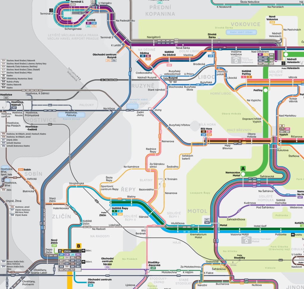 Zličín: přestup na metro B a navazující městské i příměstské autobusové linky