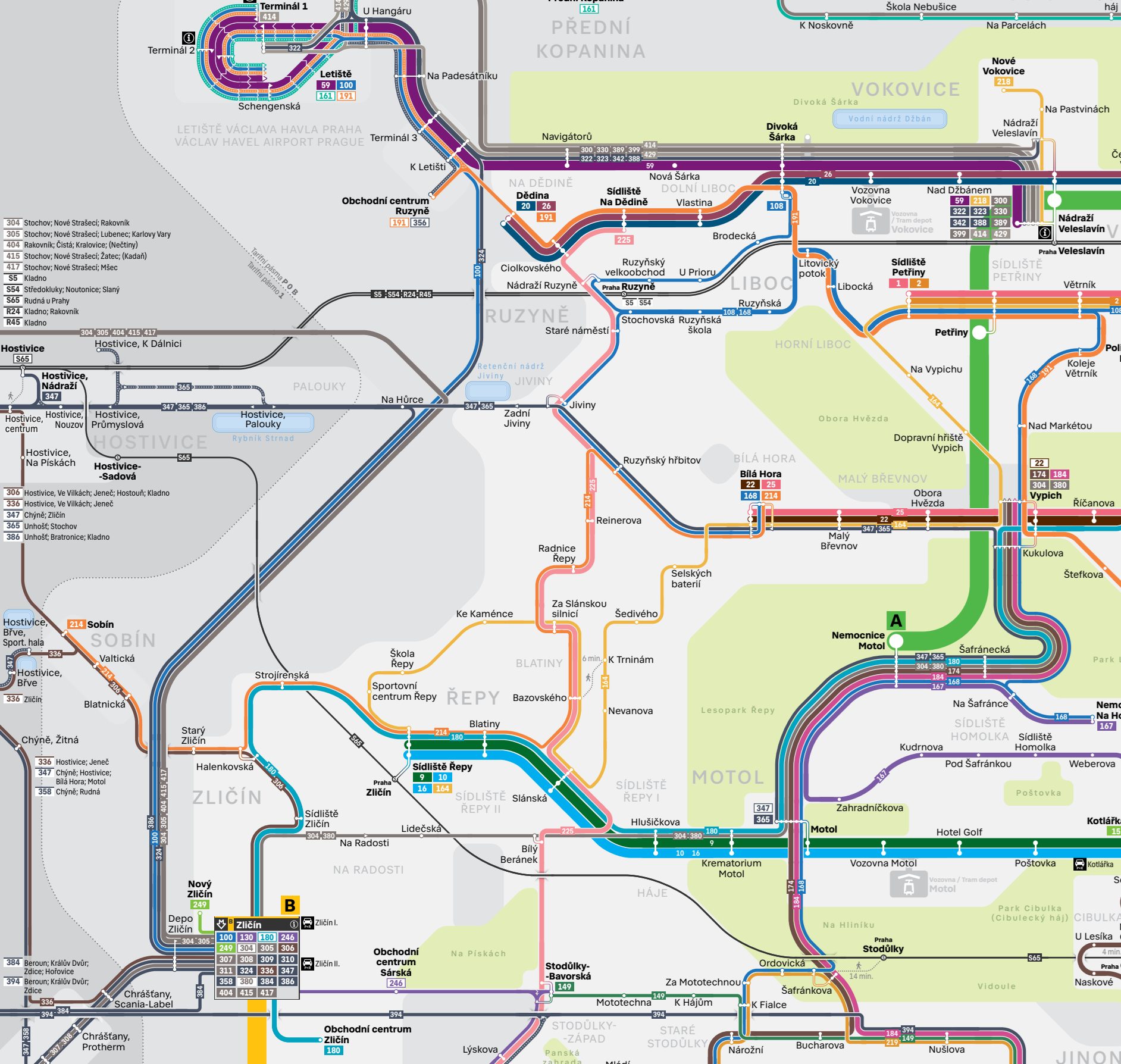 ZLIČÍN – K Letišti – Terminál 3 – U Hangáru – Schengenská – Terminál 1 (směr tam) – Terminál 2 (směr tam) – TERMINÁL 1 (směr zpět) – LETIŠTĚ (směr tam)