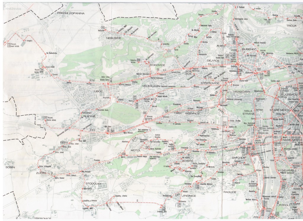 mapa z roku 1978 – vedení linky 143 mezi lety 1976 – 1985 (screen: MCH)