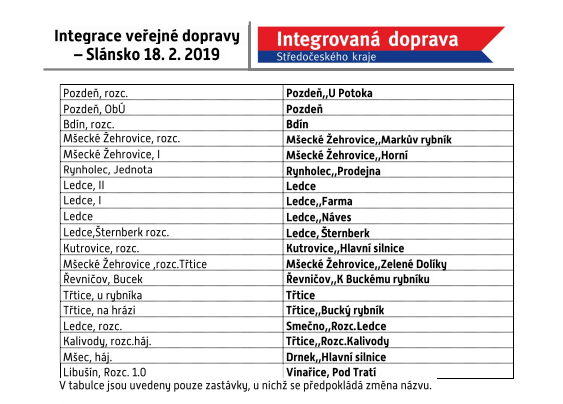 V rámci zlepšení orientace cestujících, nových pravidel českého pravopisu a zpřehlednění jízdních řádů budou v souvislosti s integrací (udělování nových licencí) upraveny názvy zastávek.