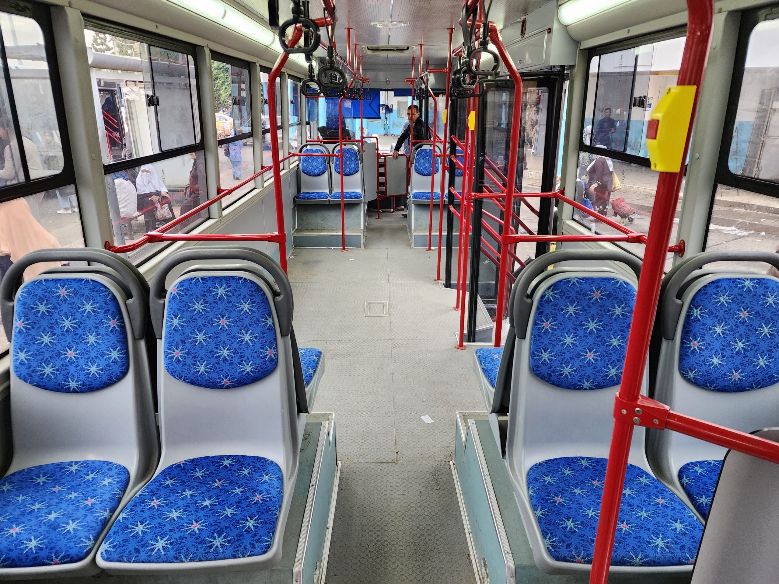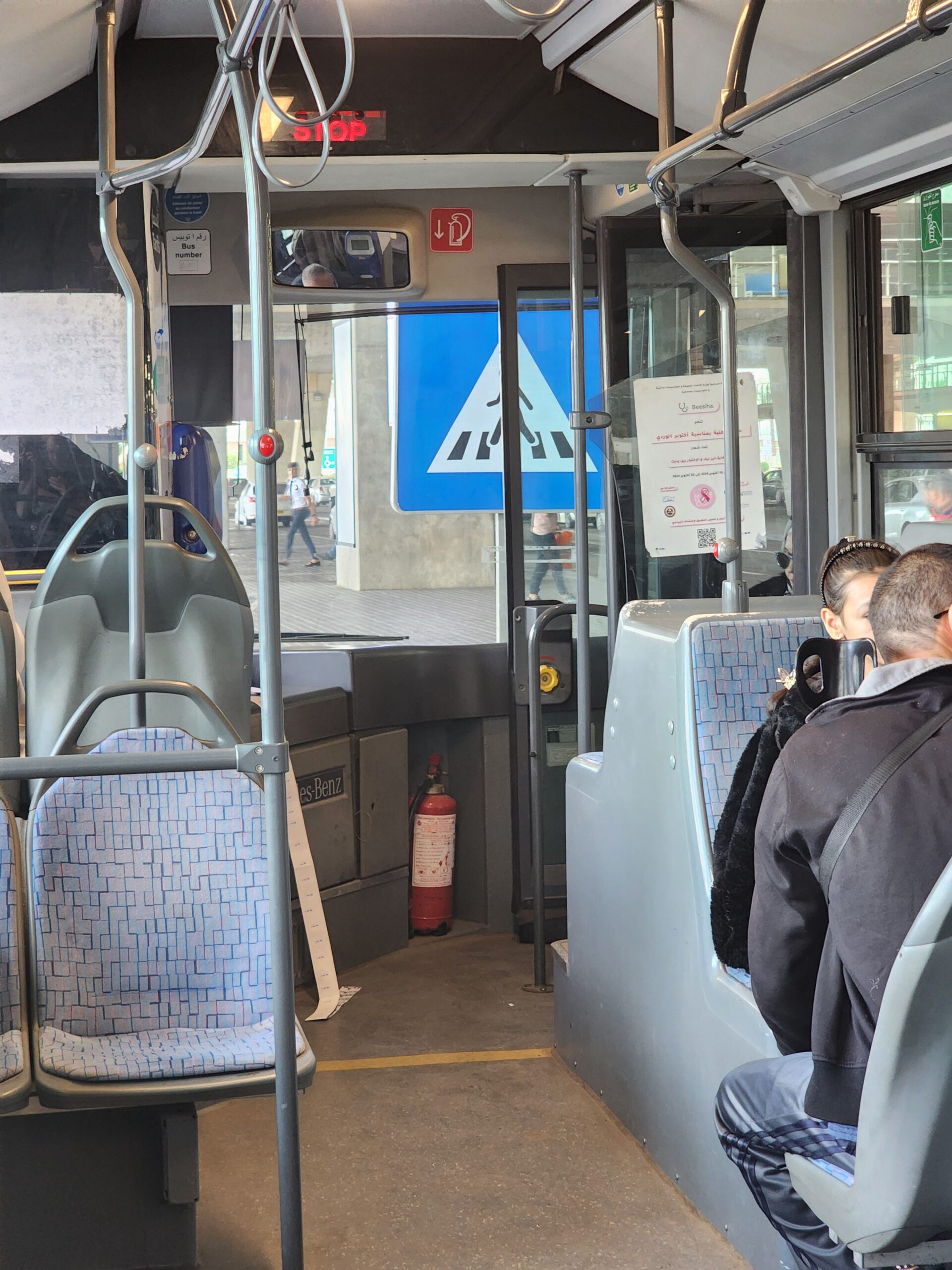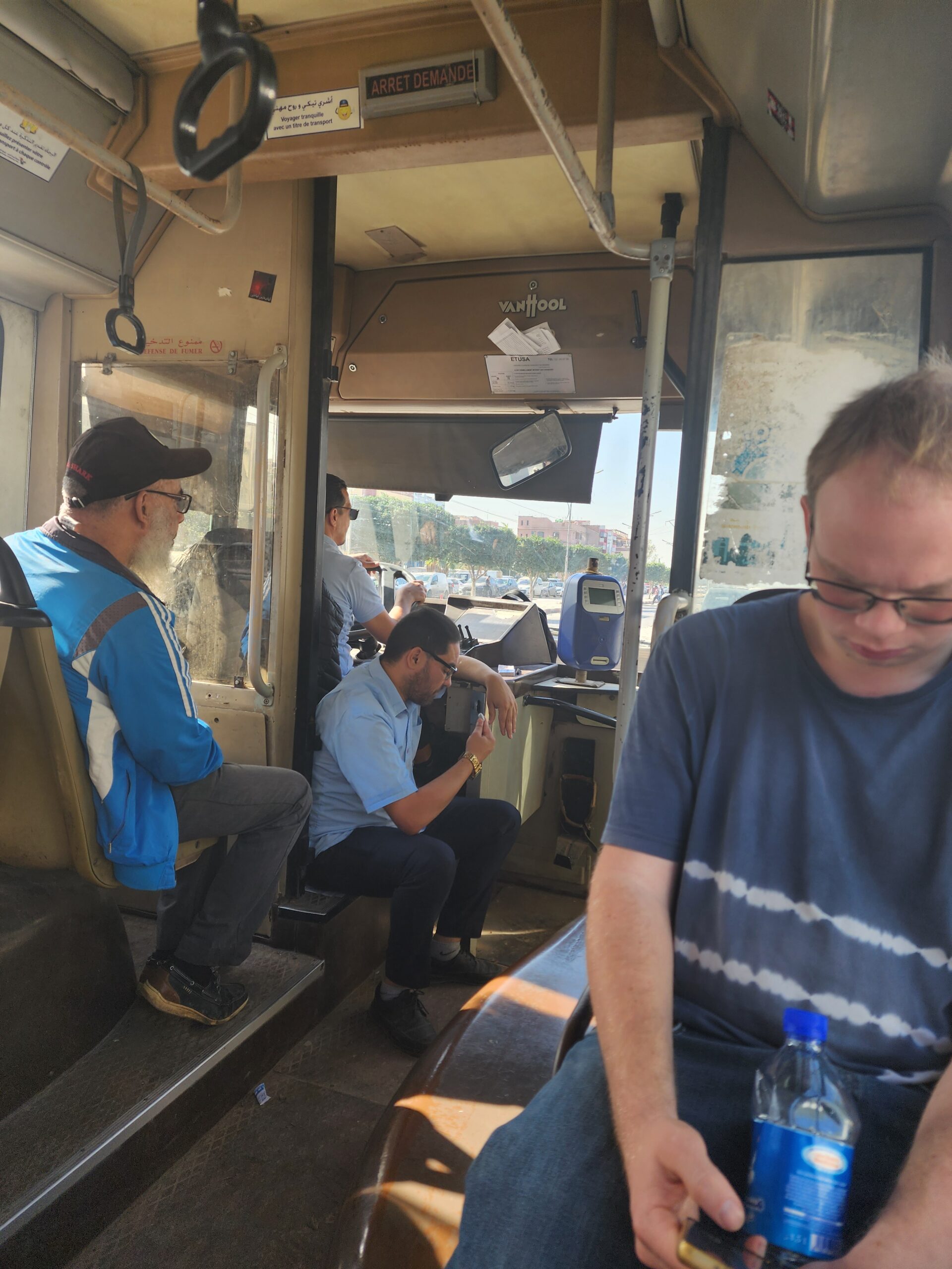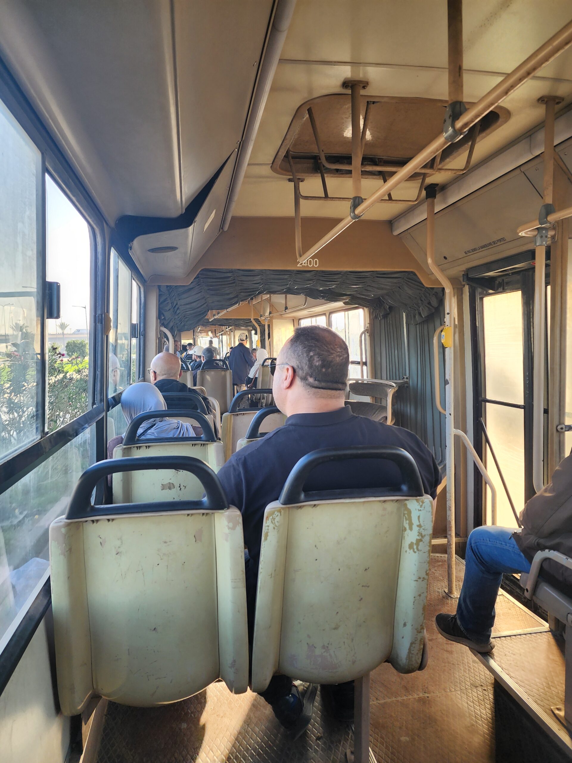 Přesuňme se k městskému podniku ETUSA. V roce 2005 a 2006 byly městskému podniku dodány dvoukloubové vysokopodlažní autobusy Van Hool AGG500 v počtu cca 12 ks, které jezdí pouze na městské lince 113, jež propojuje autobusové nádráží pro dálkovou dopravu s terminálem městské dopravy 2. Mai a centrem města (Kasbah), tedy nejrušnější místa ve městě. Autobus jede expresně každých cca 10 minut a jízdné vás vyjde na 20 dinárů. V zadní části dvoukloubových Van Hoolů najdeme kabinu pro průvodčího, která se nepoužívá. Podobné autobusy byly testovány v roce 2017 i v Praze, byť v nízkopodlažní verzi. V provozu jsme potkali celkem 5 těchto dvoukloubových autobusů, které nesou ev.č. 24001 – 24012, a to pouze na lince č. 113 (ev.č. 24002, 24004, 24007, 24008, 24012).