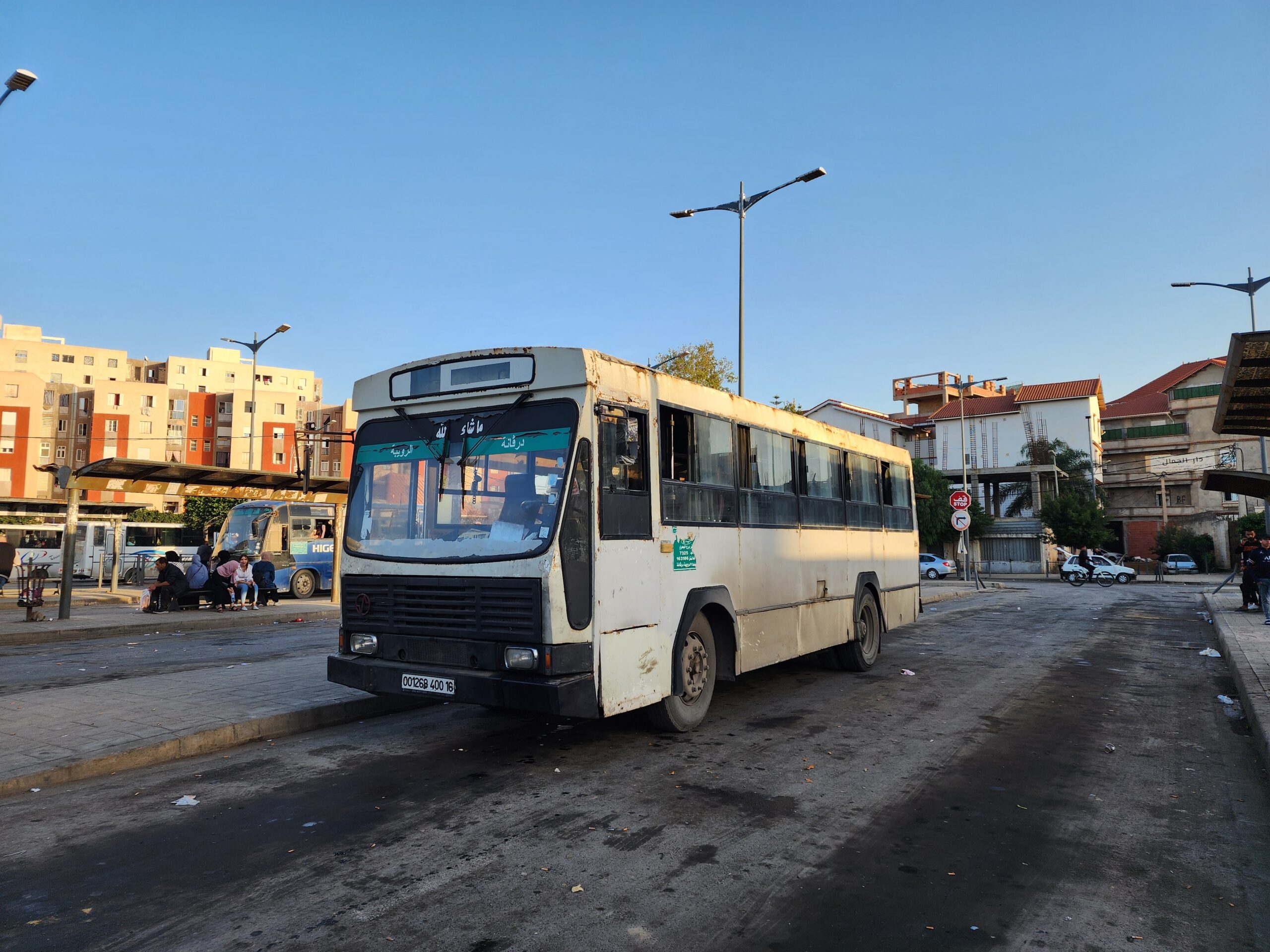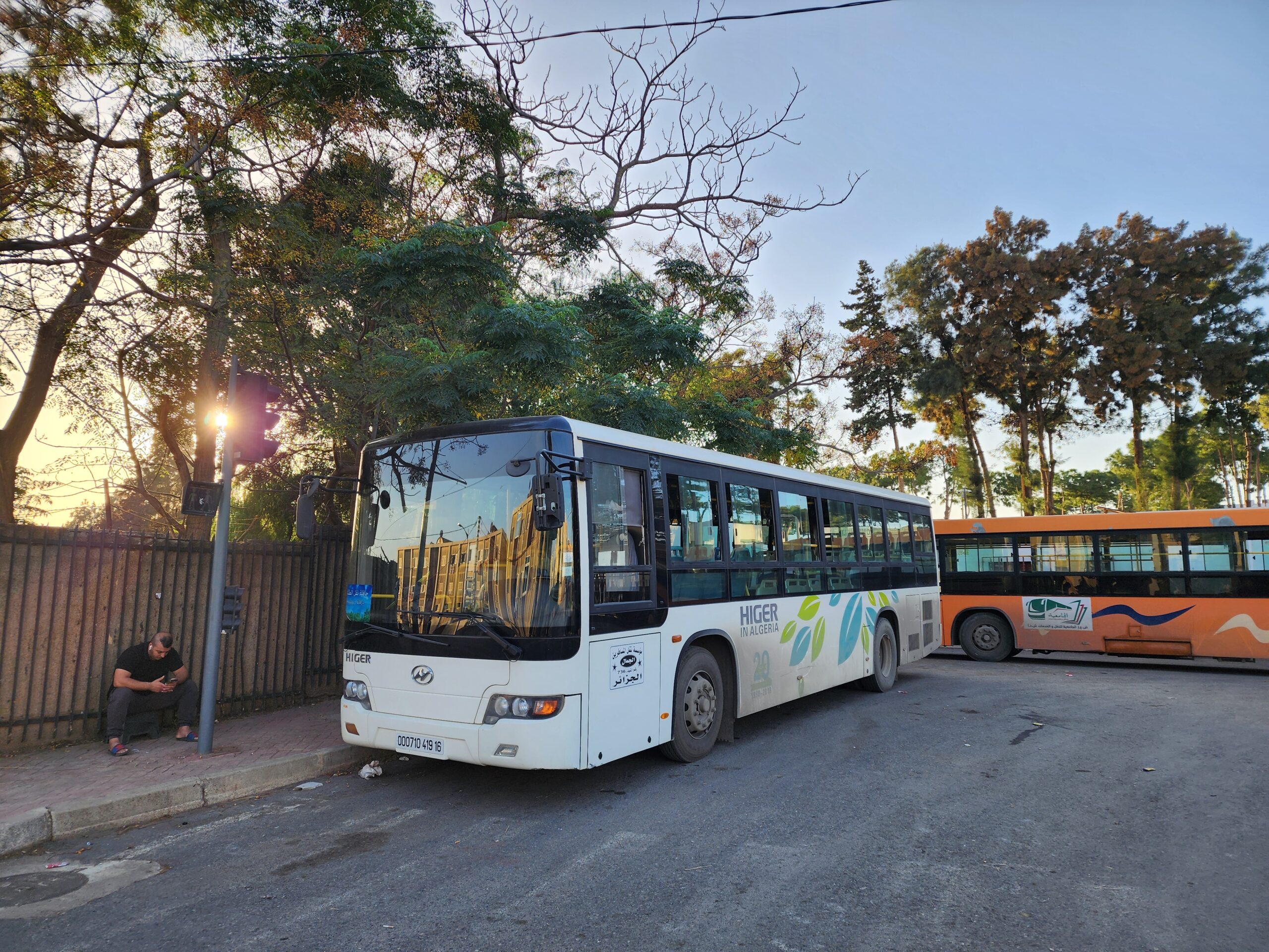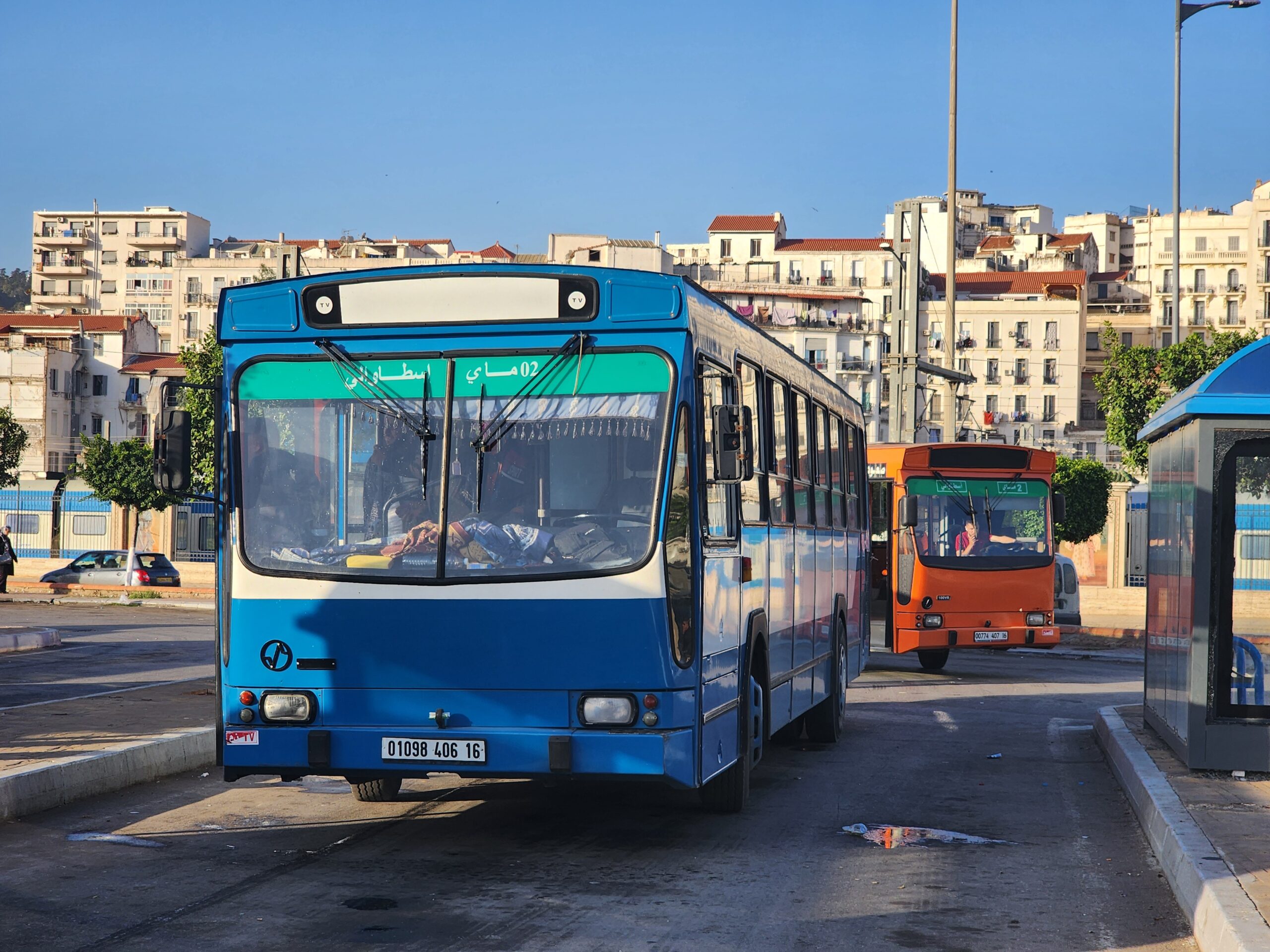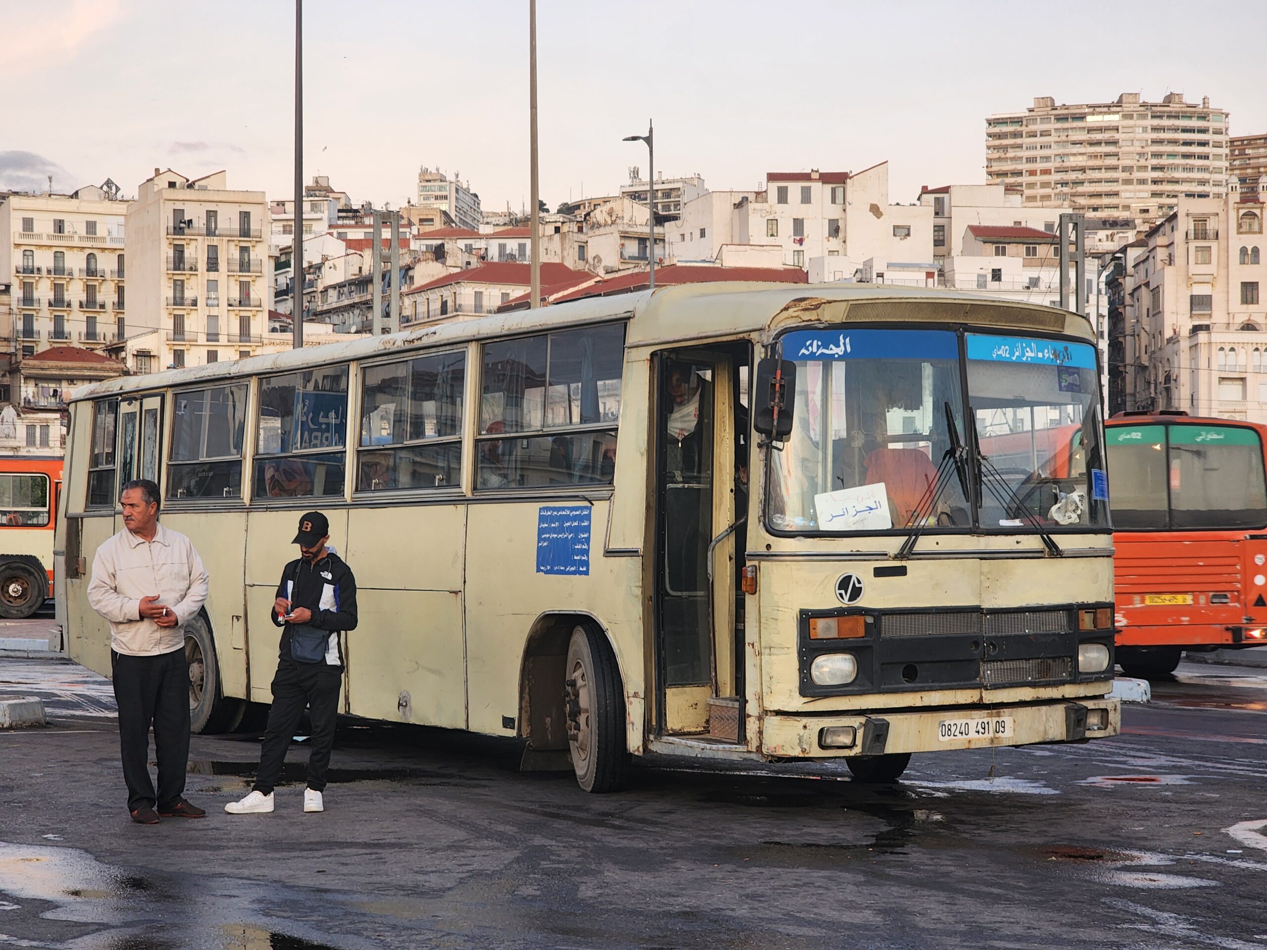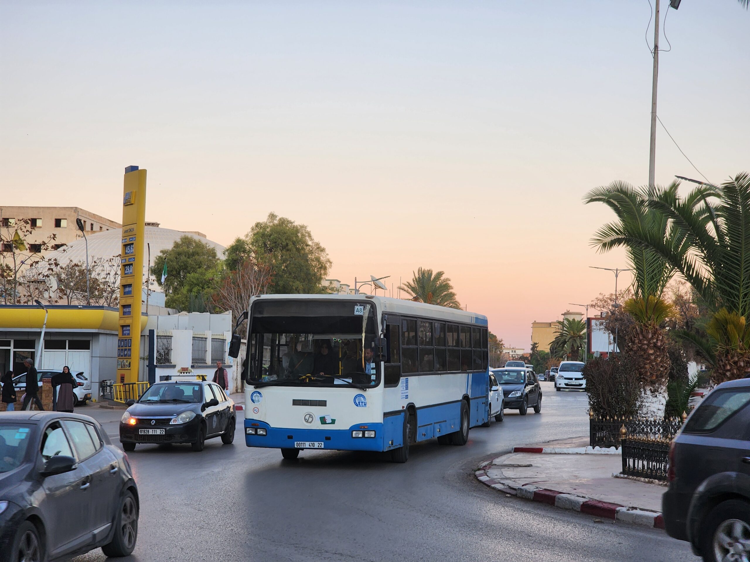Ve venkovských oblastech a na periferiích Alžíru narazíte stále také na Peugeoty J9, které se vyráběly mezi lety 1991 – 2006. Licenčně je vyráběl také turecký Karsan. Např. v Turecku se s nimi již téměř nesetkáme v linkové dopravě (v roce 2025 jsme potkali pouze jeden v Yalově na lince) – např. Peugeoty J9 Premier v Alžírsku nejezdí a v Turecku jich jezdí spousty (vyráběné od roku 2006). Tato fotografie pochází z Reghaïy, ale potkány byly i v oblasti Sidi Bel Abbes a Oranu.