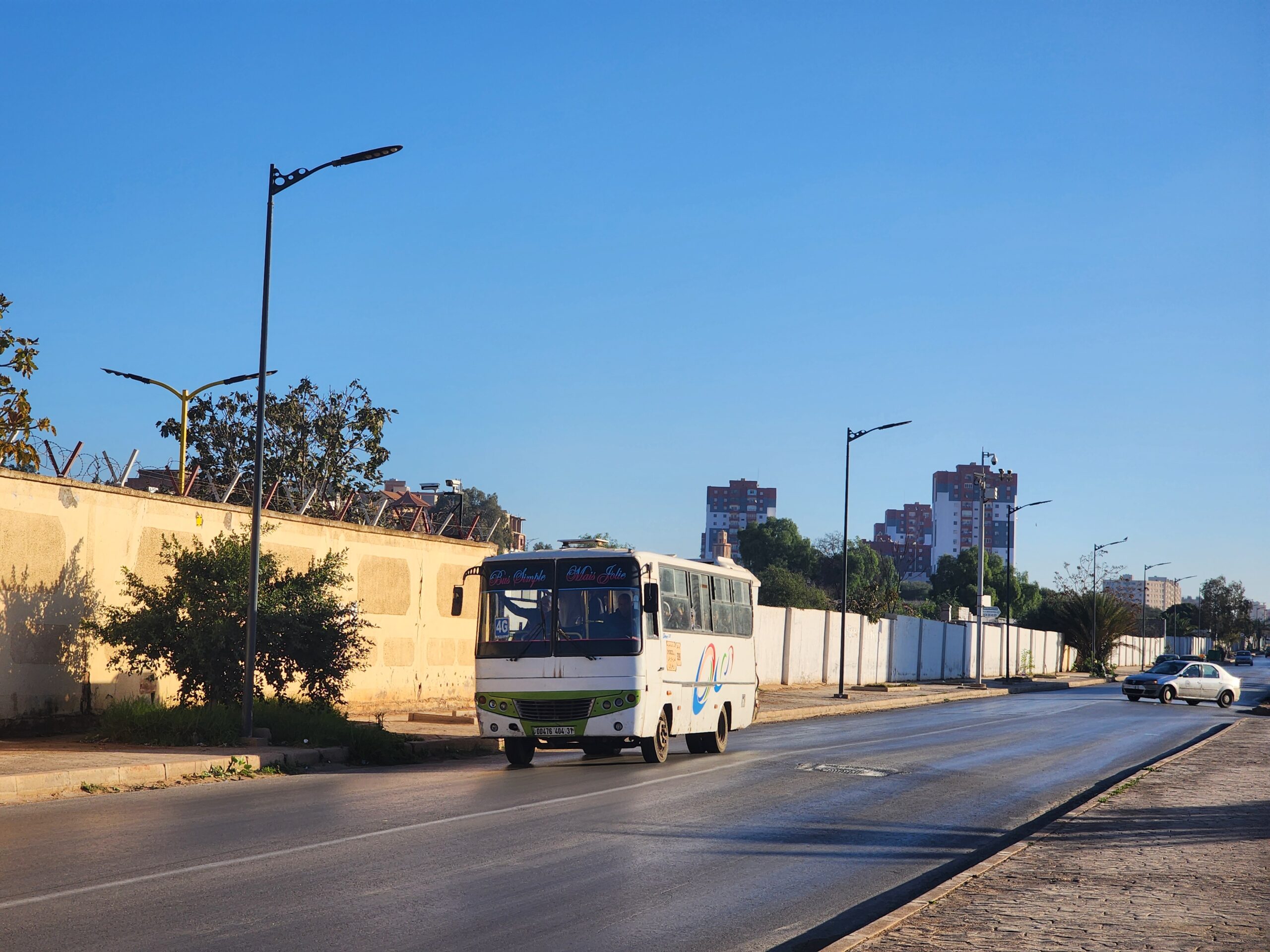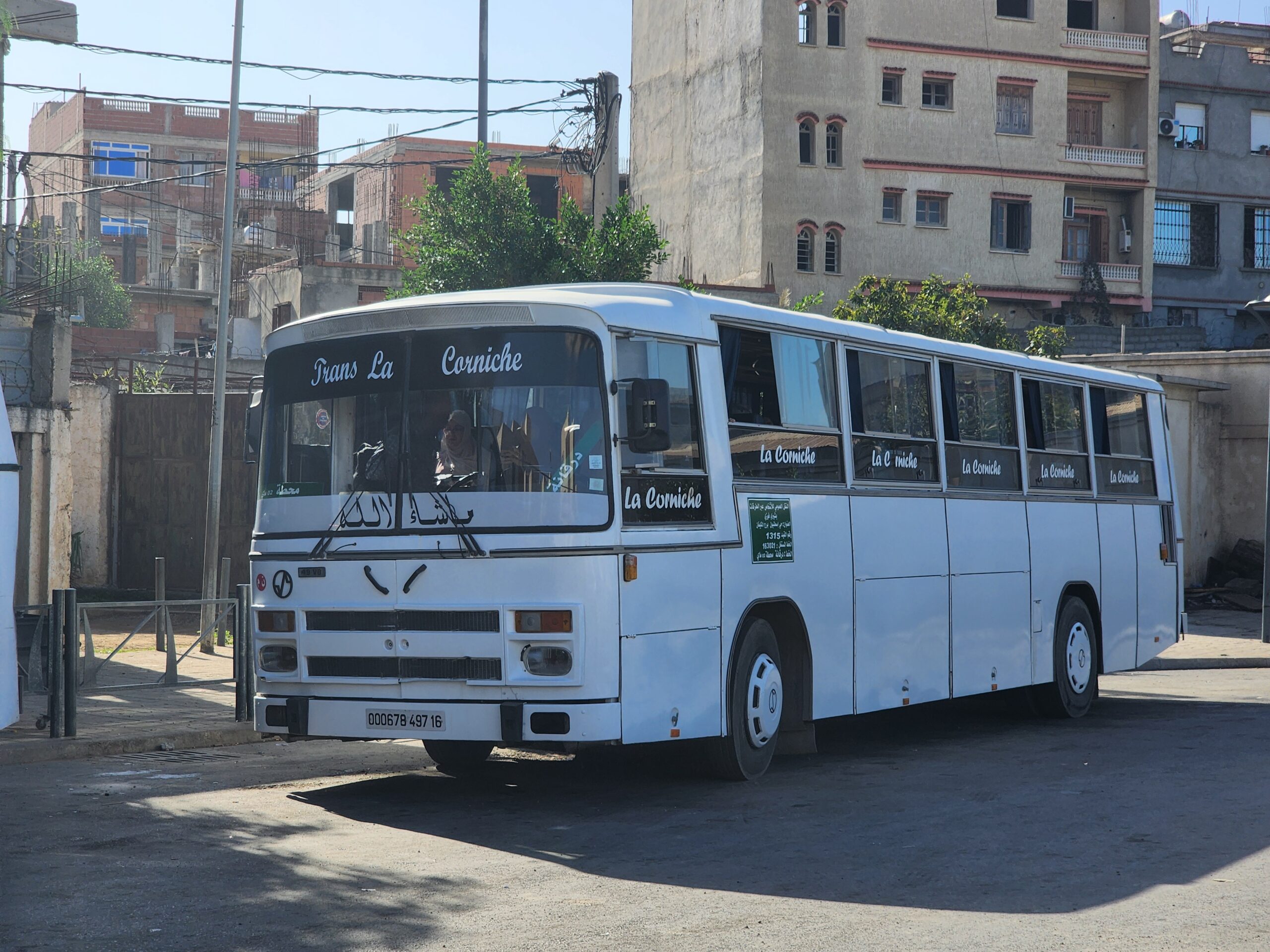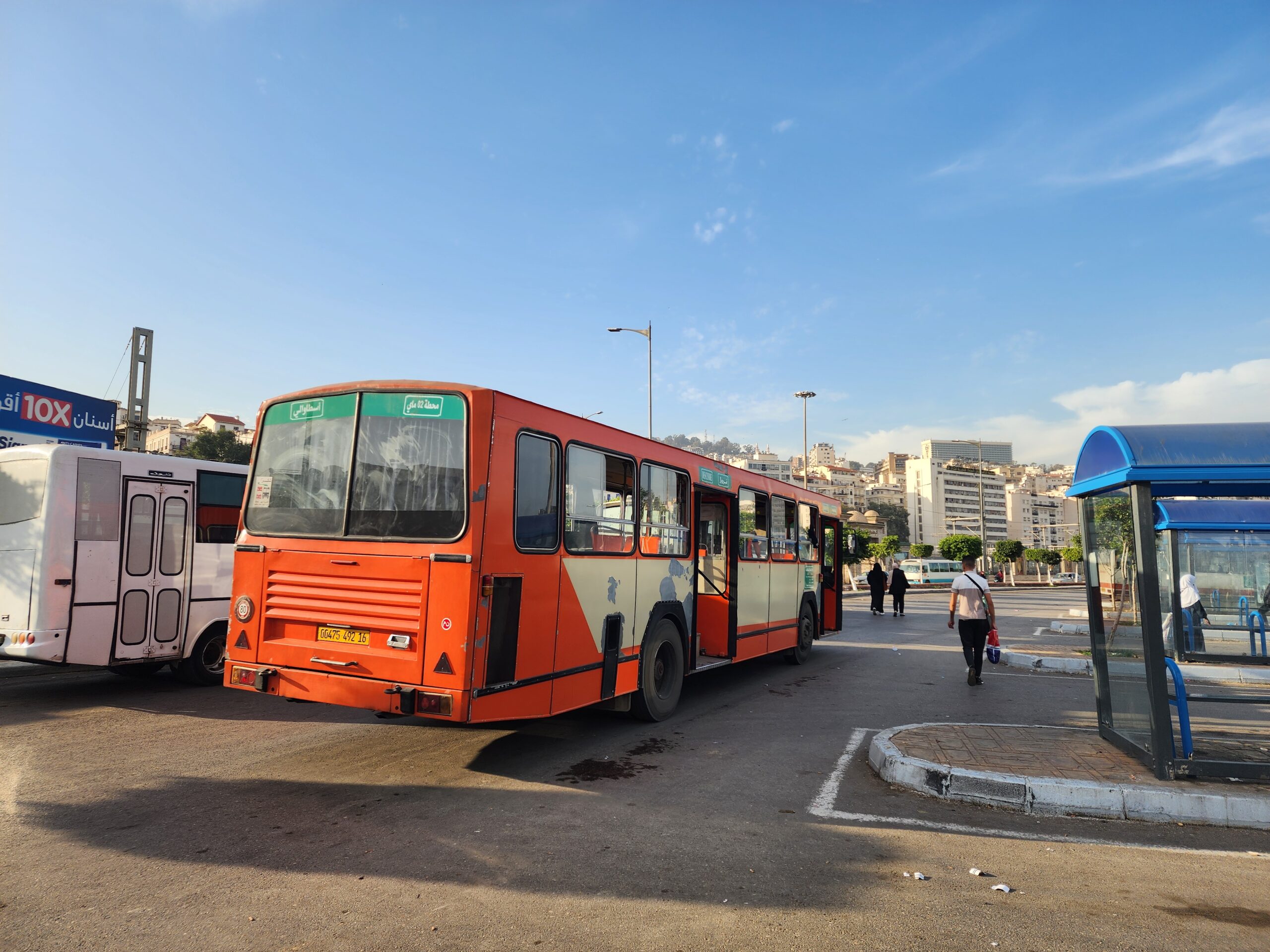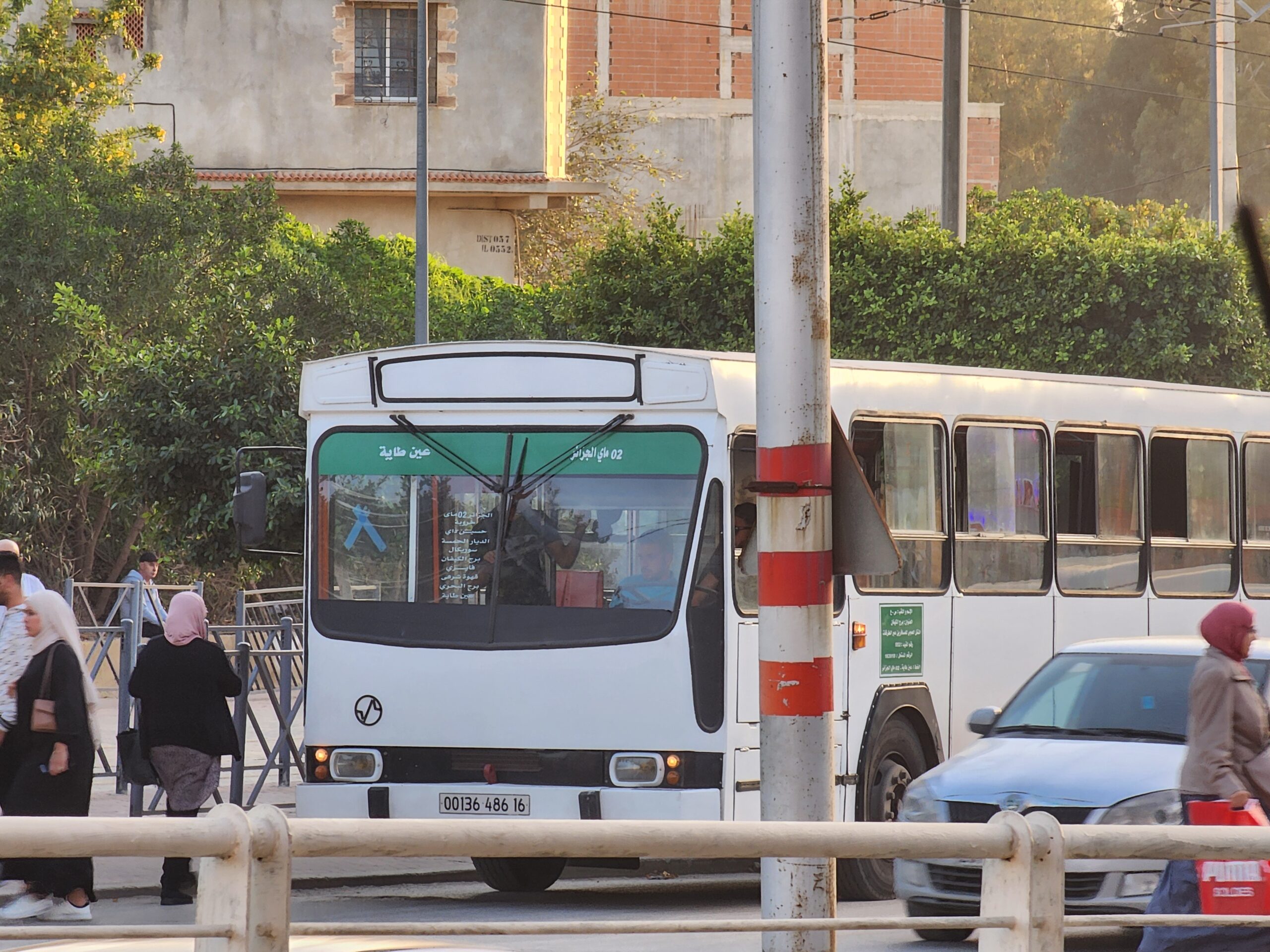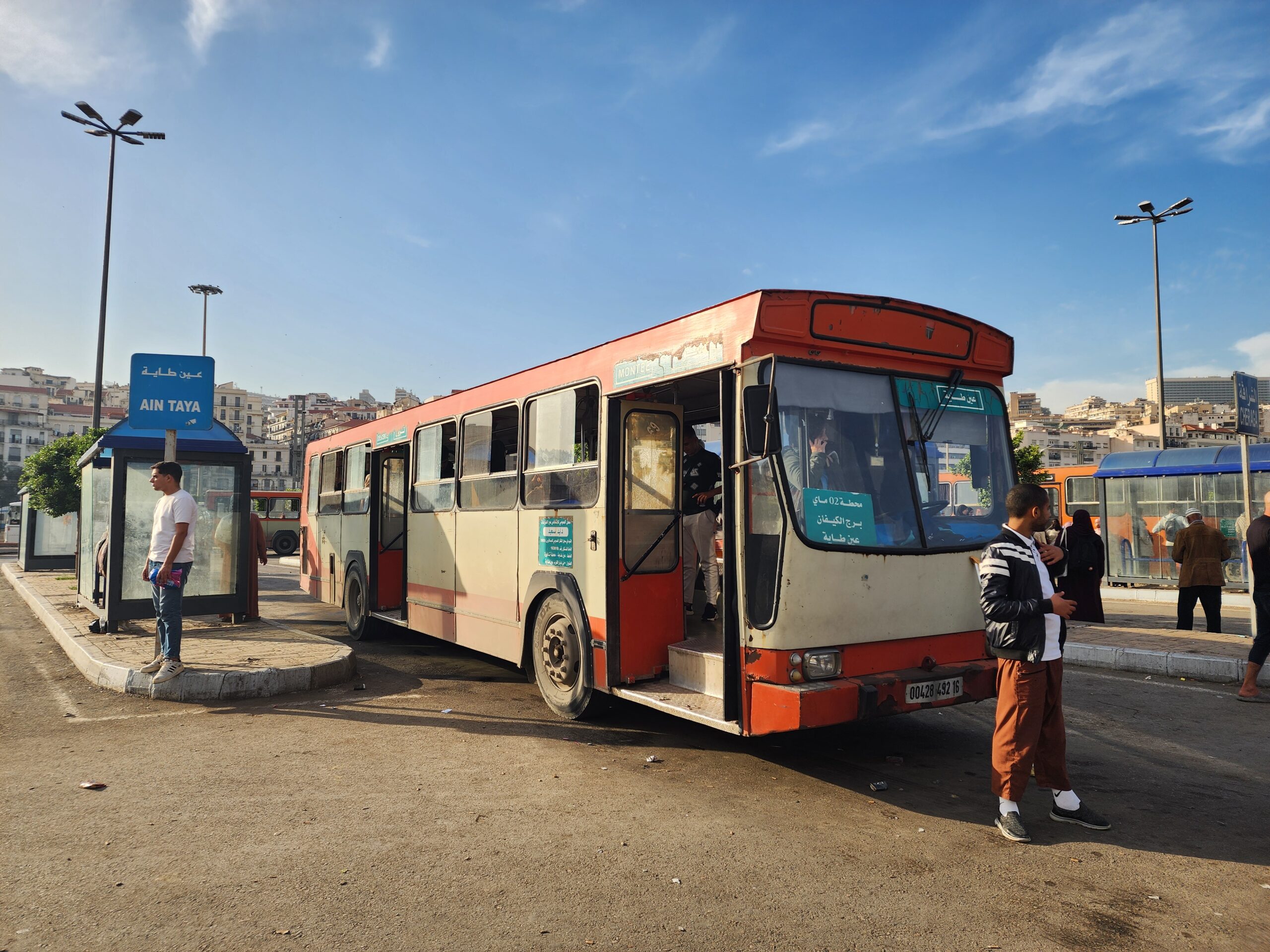 Ve venkovských oblastech a na periferiích Alžíru narazíte stále také na Peugeoty J9, které se vyráběly mezi lety 1991 – 2006. Licenčně je vyráběl také turecký Karsan. Např. v Turecku se s nimi již téměř nesetkáme v linkové dopravě (v roce 2025 jsme potkali pouze jeden v Yalově na lince) – např. Peugeoty J9 Premier v Alžírsku nejezdí a v Turecku jich jezdí spousty (vyráběné od roku 2006). Tato fotografie pochází z Reghaïy, ale potkány byly i v oblasti Sidi Bel Abbes a Oranu.
