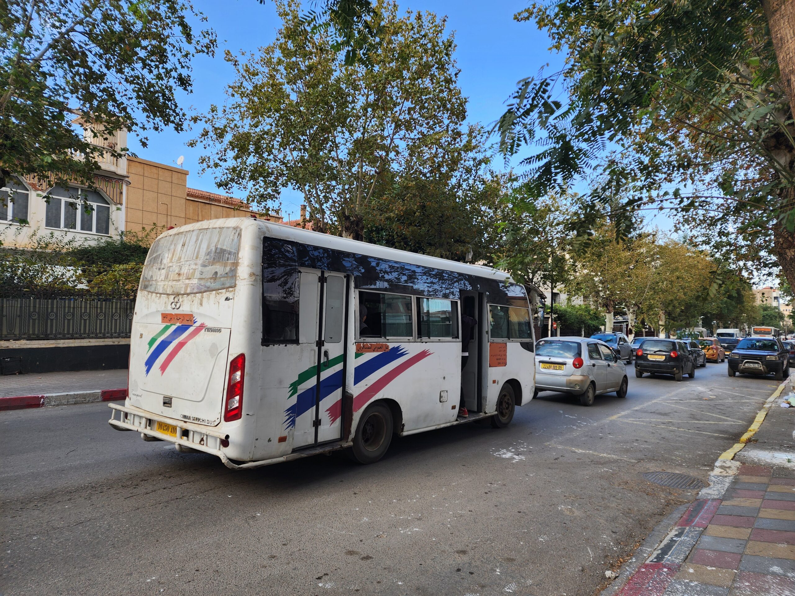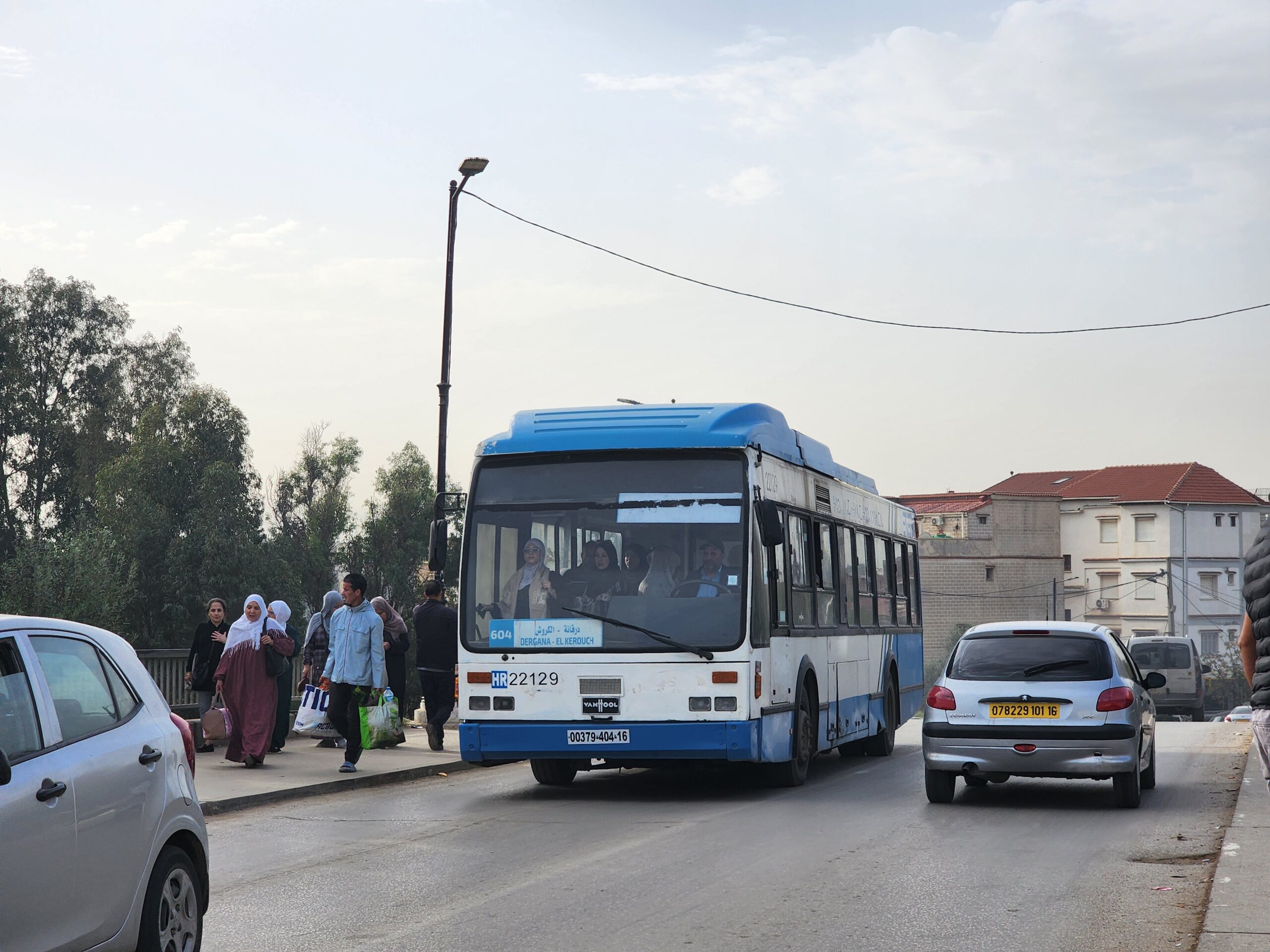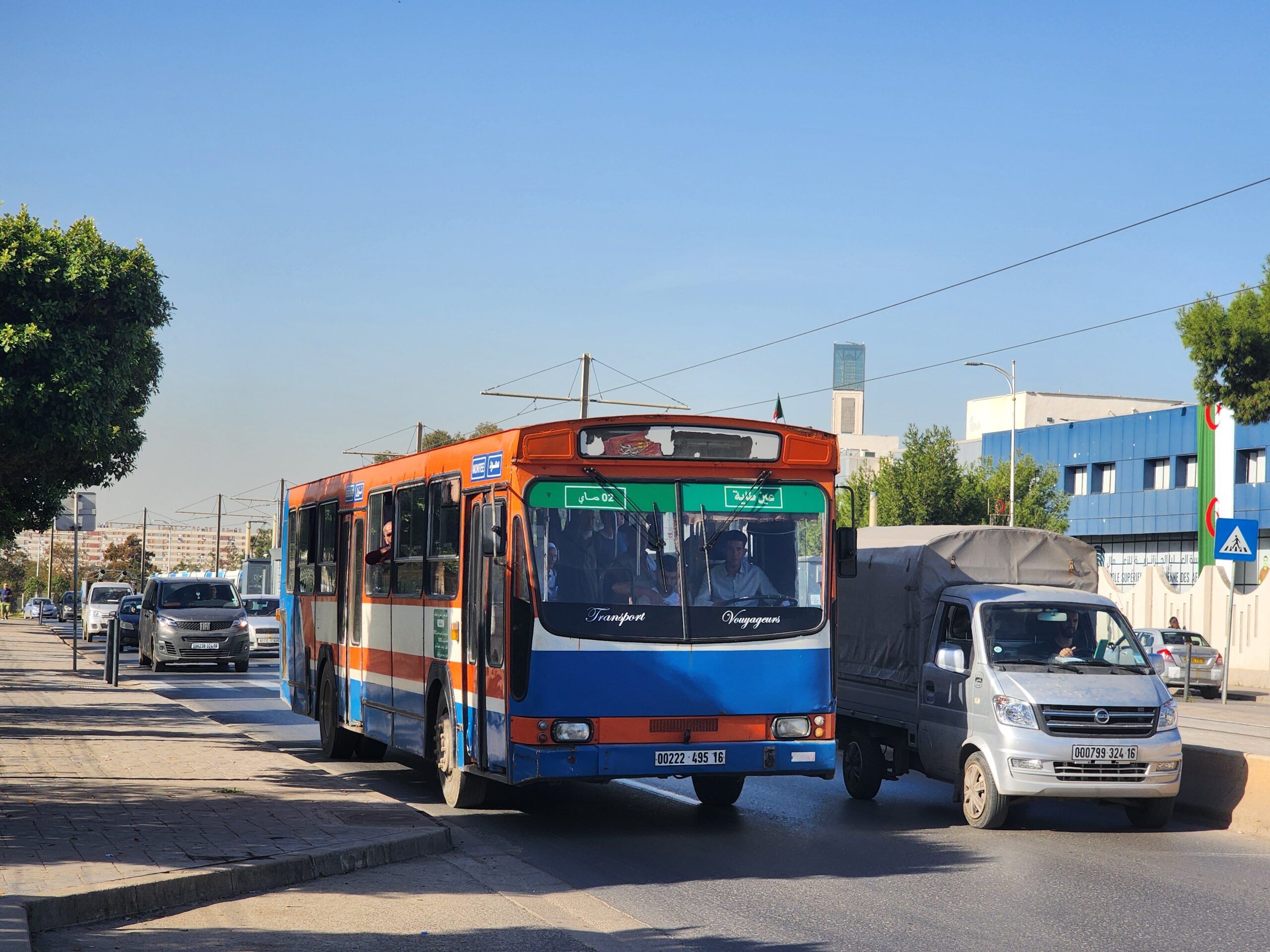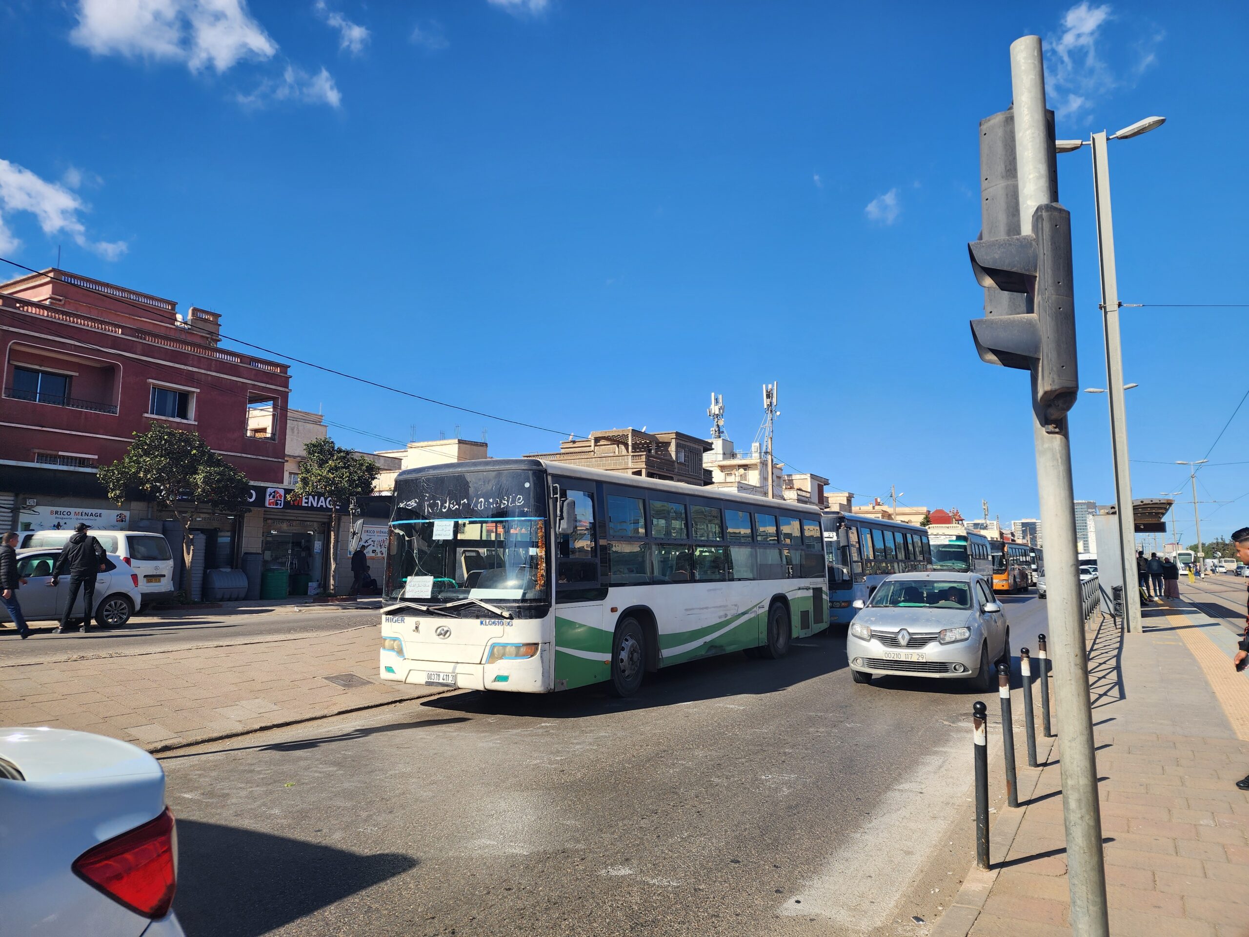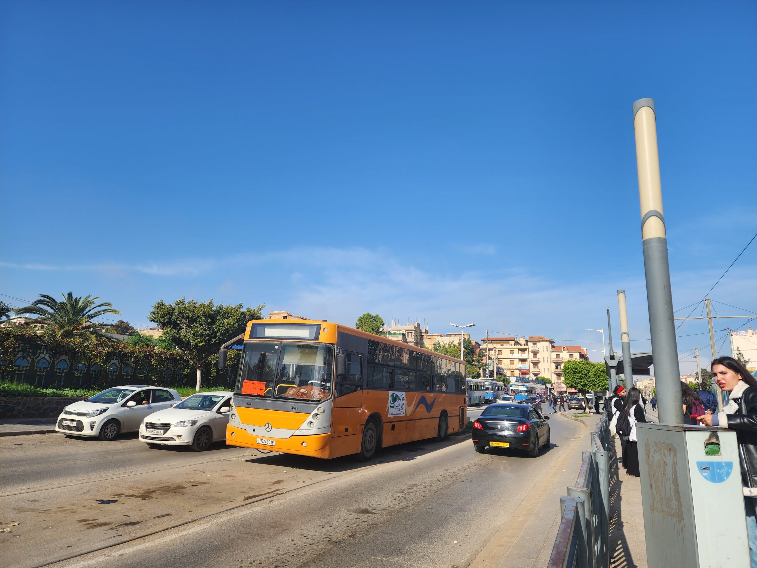 Ve venkovských oblastech a na periferiích Alžíru narazíte stále také na Peugeoty J9, které se vyráběly mezi lety 1991 – 2006. Licenčně je vyráběl také turecký Karsan. Např. v Turecku se s nimi již téměř nesetkáme v linkové dopravě (v roce 2025 jsme potkali pouze jeden v Yalově na lince) – např. Peugeoty J9 Premier v Alžírsku nejezdí a v Turecku jich jezdí spousty (vyráběné od roku 2006). Tato fotografie pochází z Reghaïy, ale potkány byly i v oblasti Sidi Bel Abbes a Oranu.