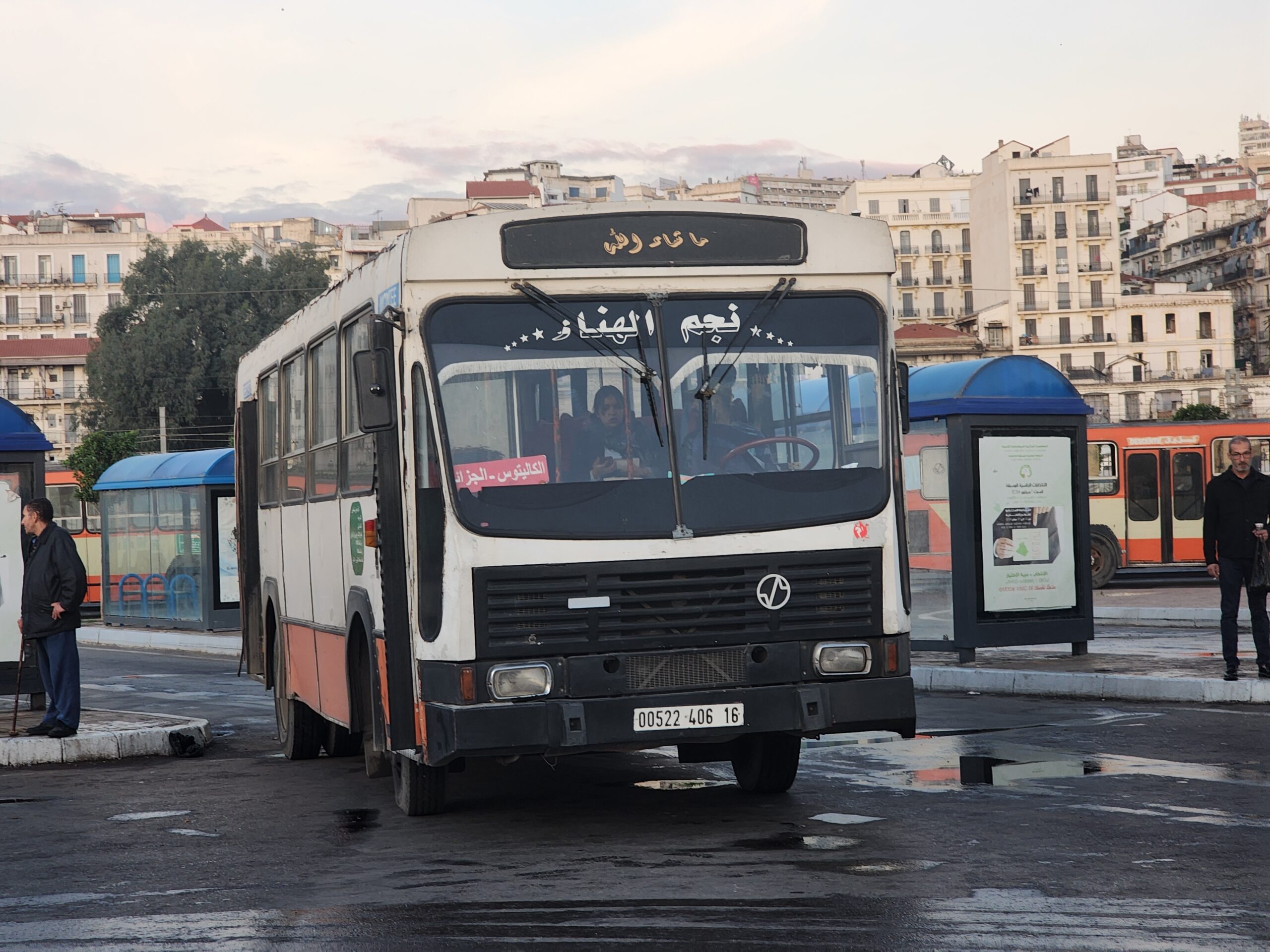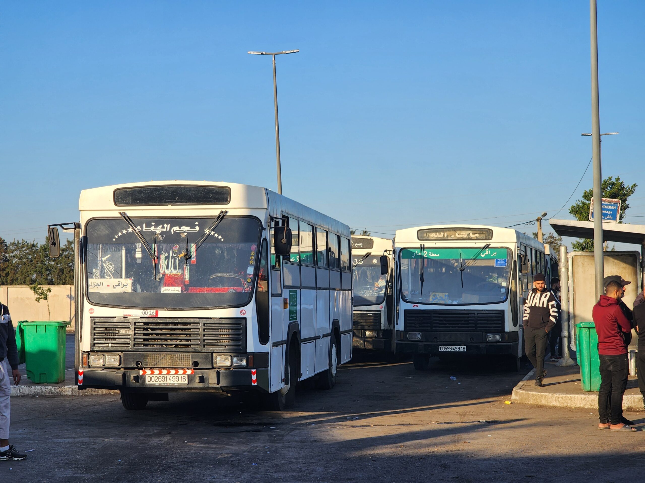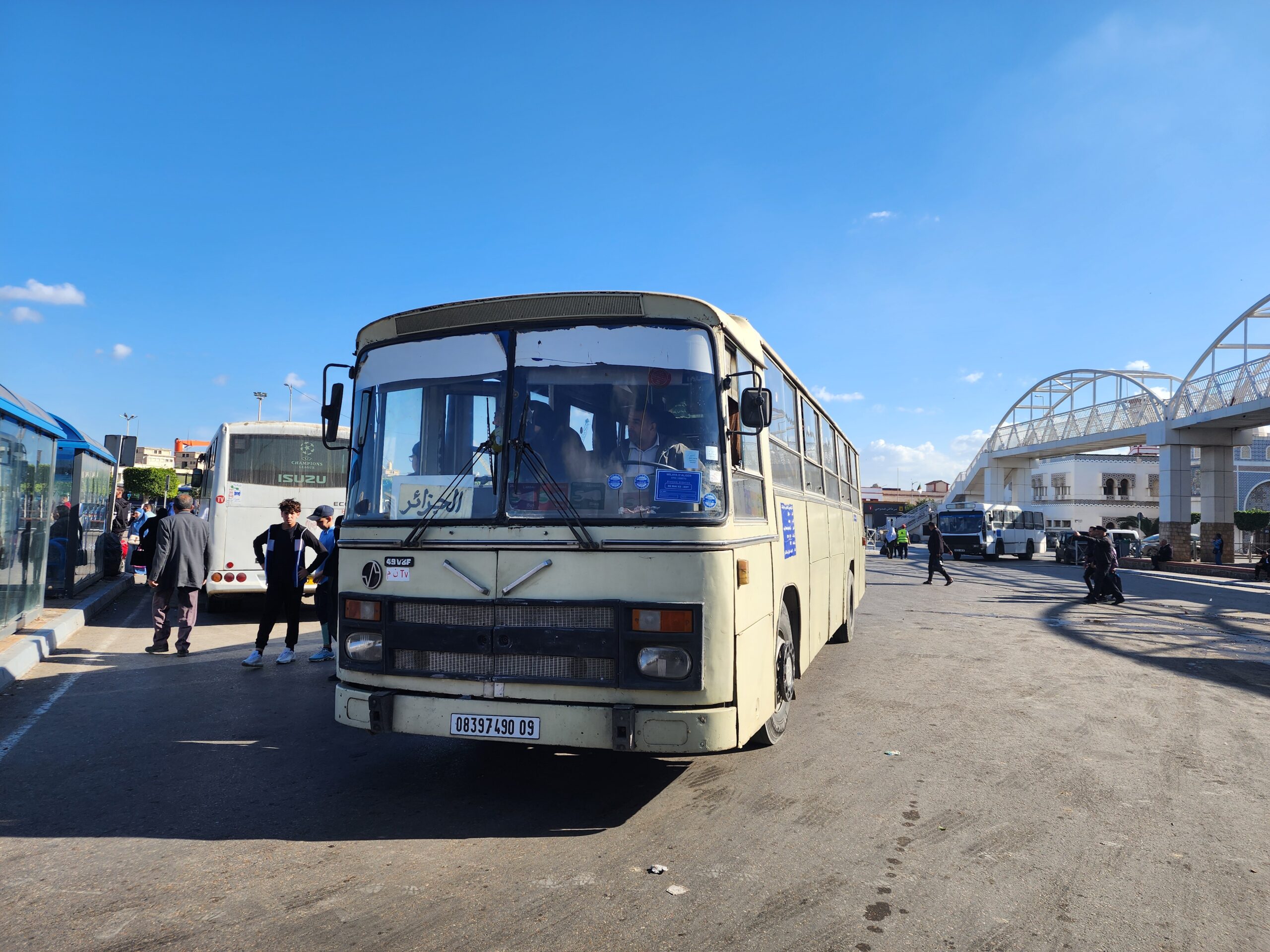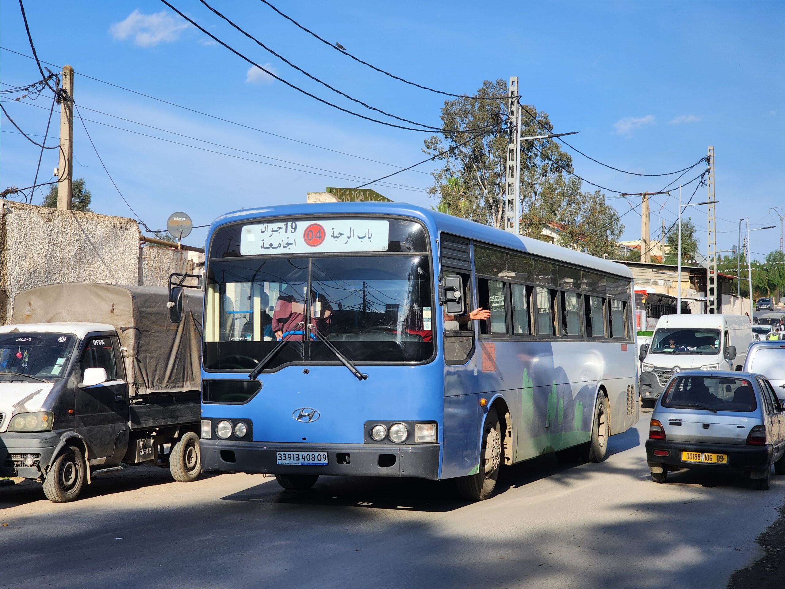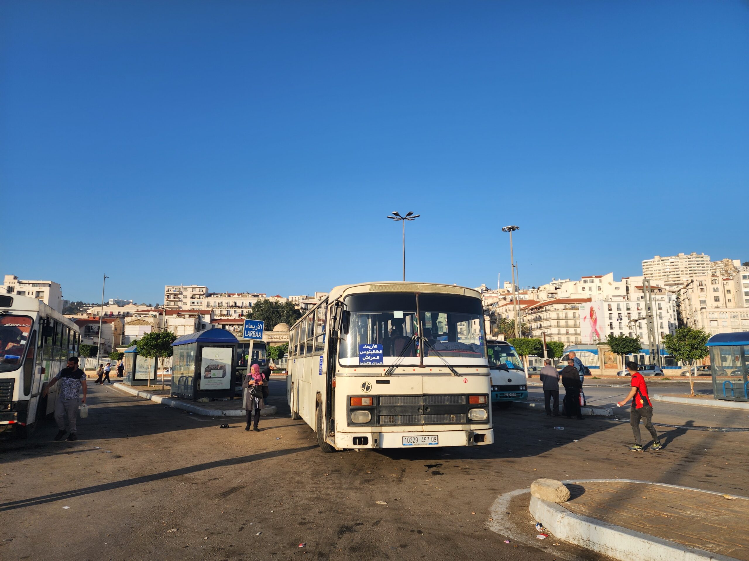 Ve venkovských oblastech a na periferiích Alžíru narazíte stále také na Peugeoty J9, které se vyráběly mezi lety 1991 – 2006. Licenčně je vyráběl také turecký Karsan. Např. v Turecku se s nimi již téměř nesetkáme v linkové dopravě (v roce 2025 jsme potkali pouze jeden v Yalově na lince) – např. Peugeoty J9 Premier v Alžírsku nejezdí a v Turecku jich jezdí spousty (vyráběné od roku 2006). Tato fotografie pochází z Reghaïy, ale potkány byly i v oblasti Sidi Bel Abbes a Oranu.