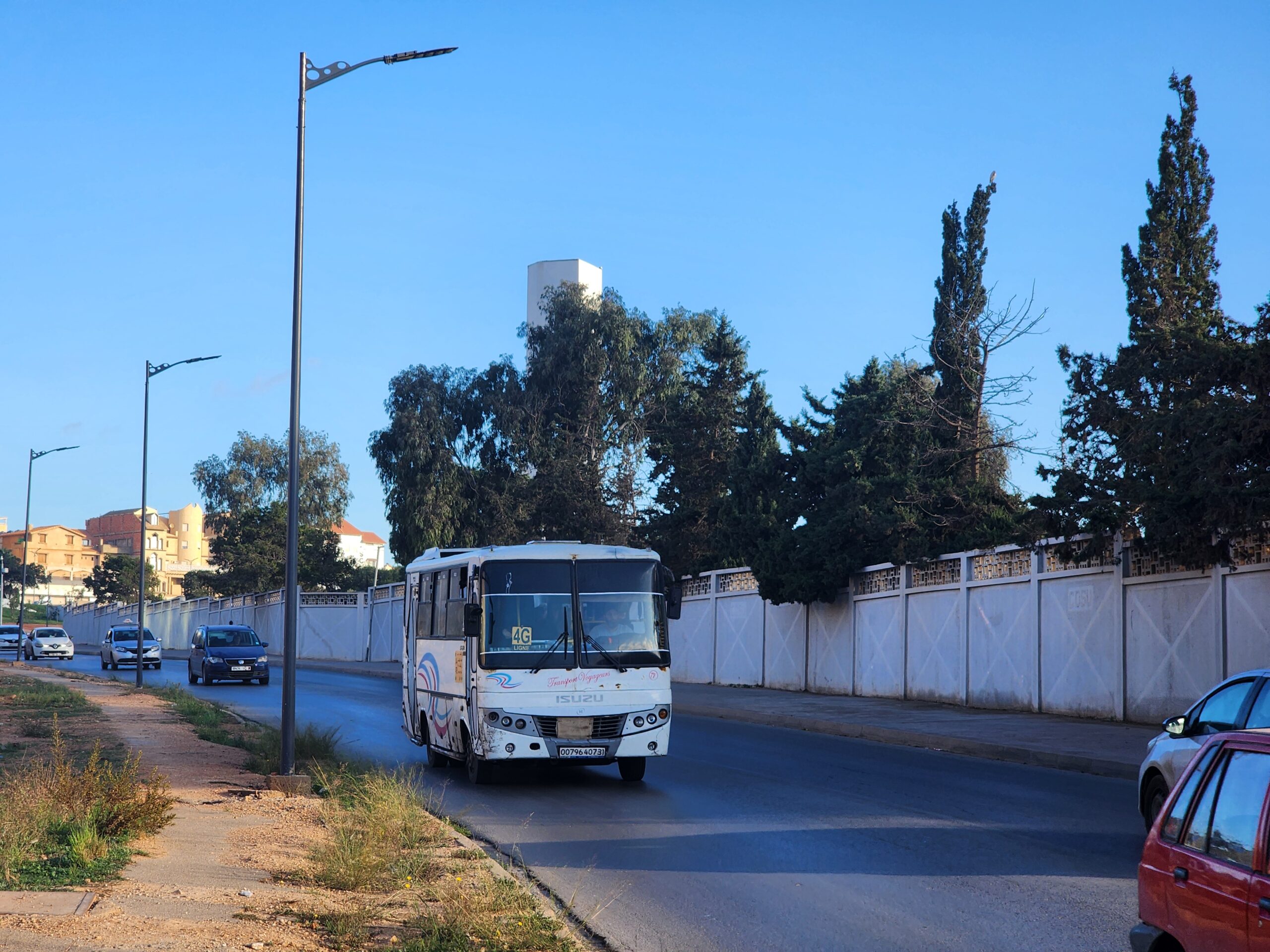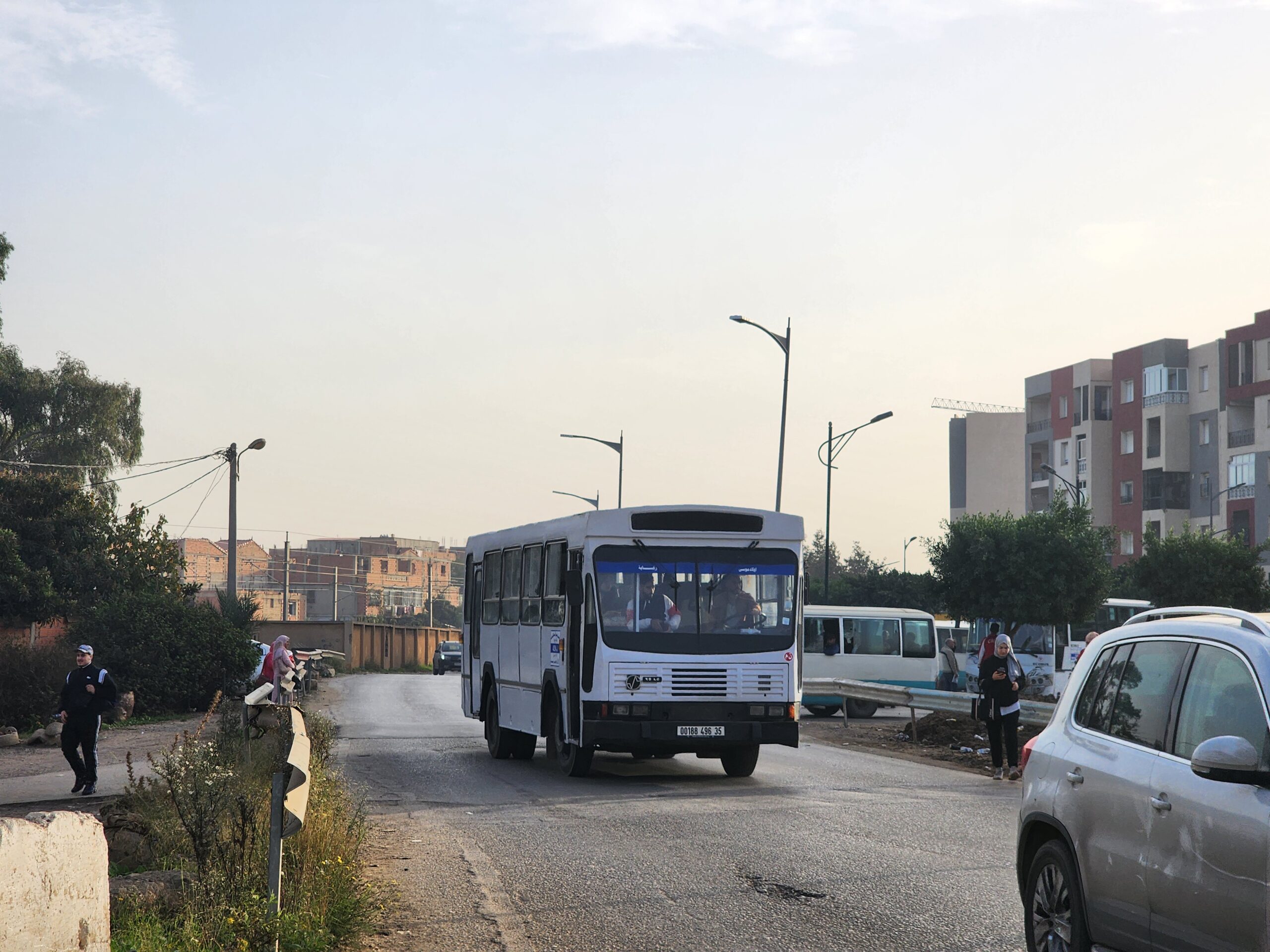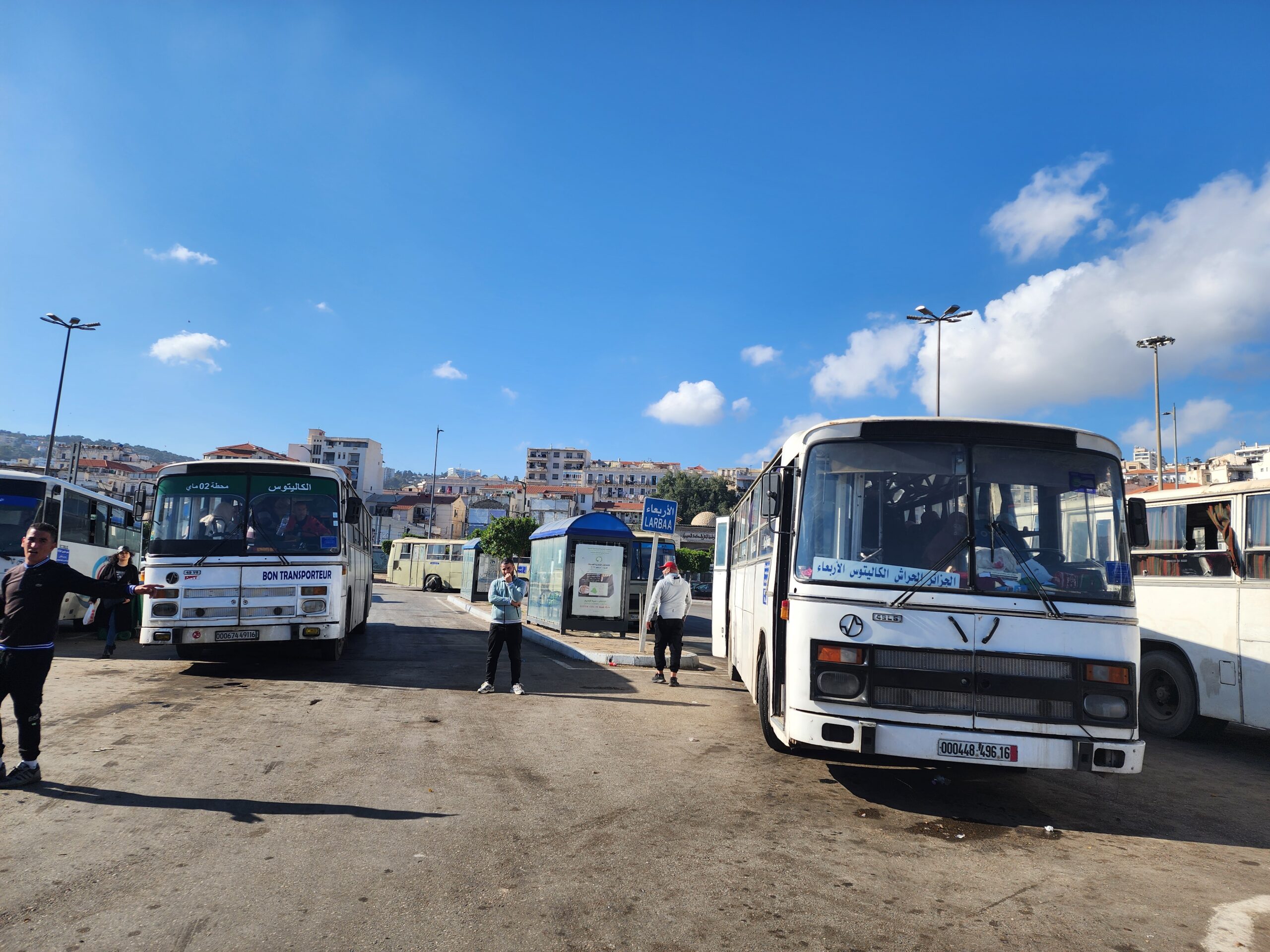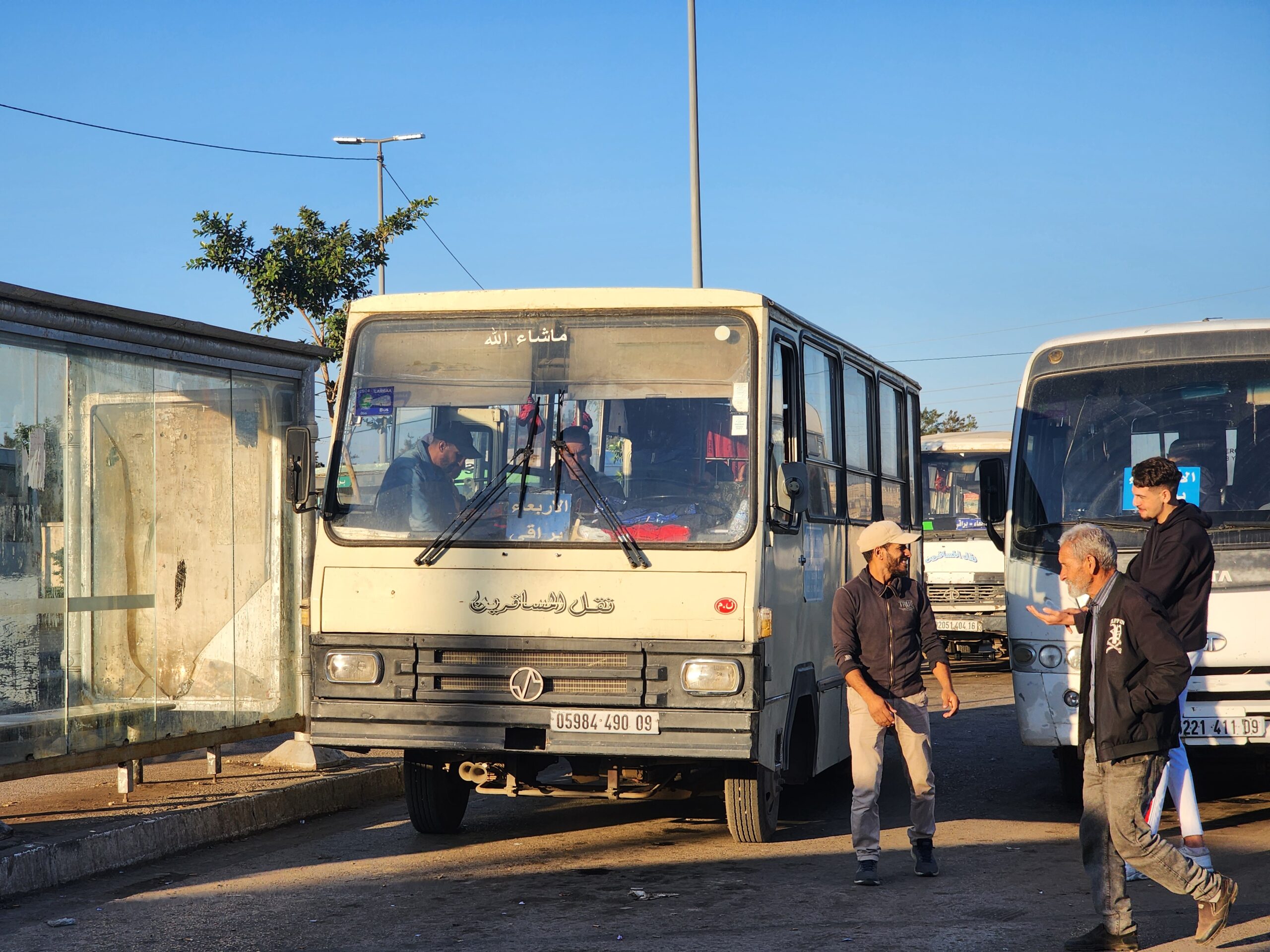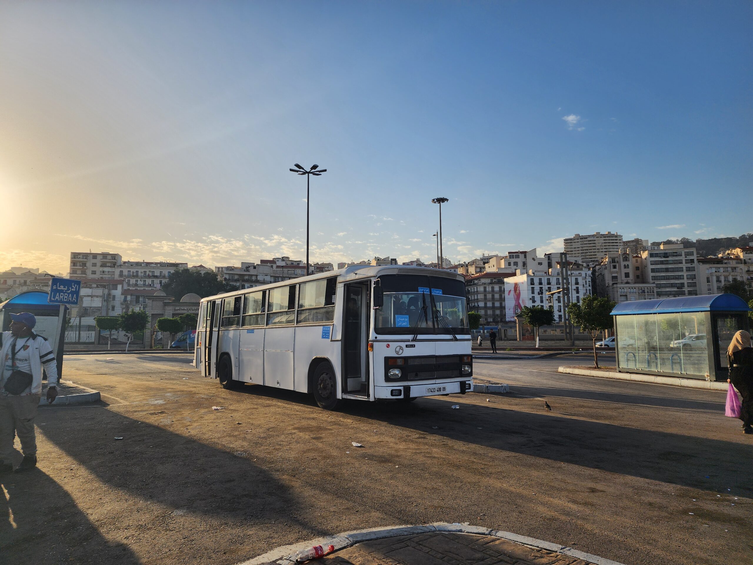 Ve venkovských oblastech a na periferiích Alžíru narazíte stále také na Peugeoty J9, které se vyráběly mezi lety 1991 – 2006. Licenčně je vyráběl také turecký Karsan. Např. v Turecku se s nimi již téměř nesetkáme v linkové dopravě (v roce 2025 jsme potkali pouze jeden v Yalově na lince) – např. Peugeoty J9 Premier v Alžírsku nejezdí a v Turecku jich jezdí spousty (vyráběné od roku 2006). Tato fotografie pochází z Reghaïy, ale potkány byly i v oblasti Sidi Bel Abbes a Oranu.