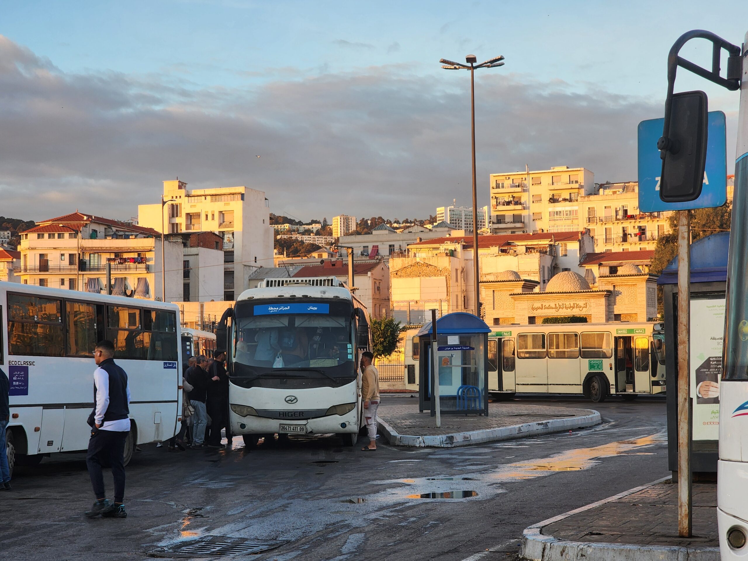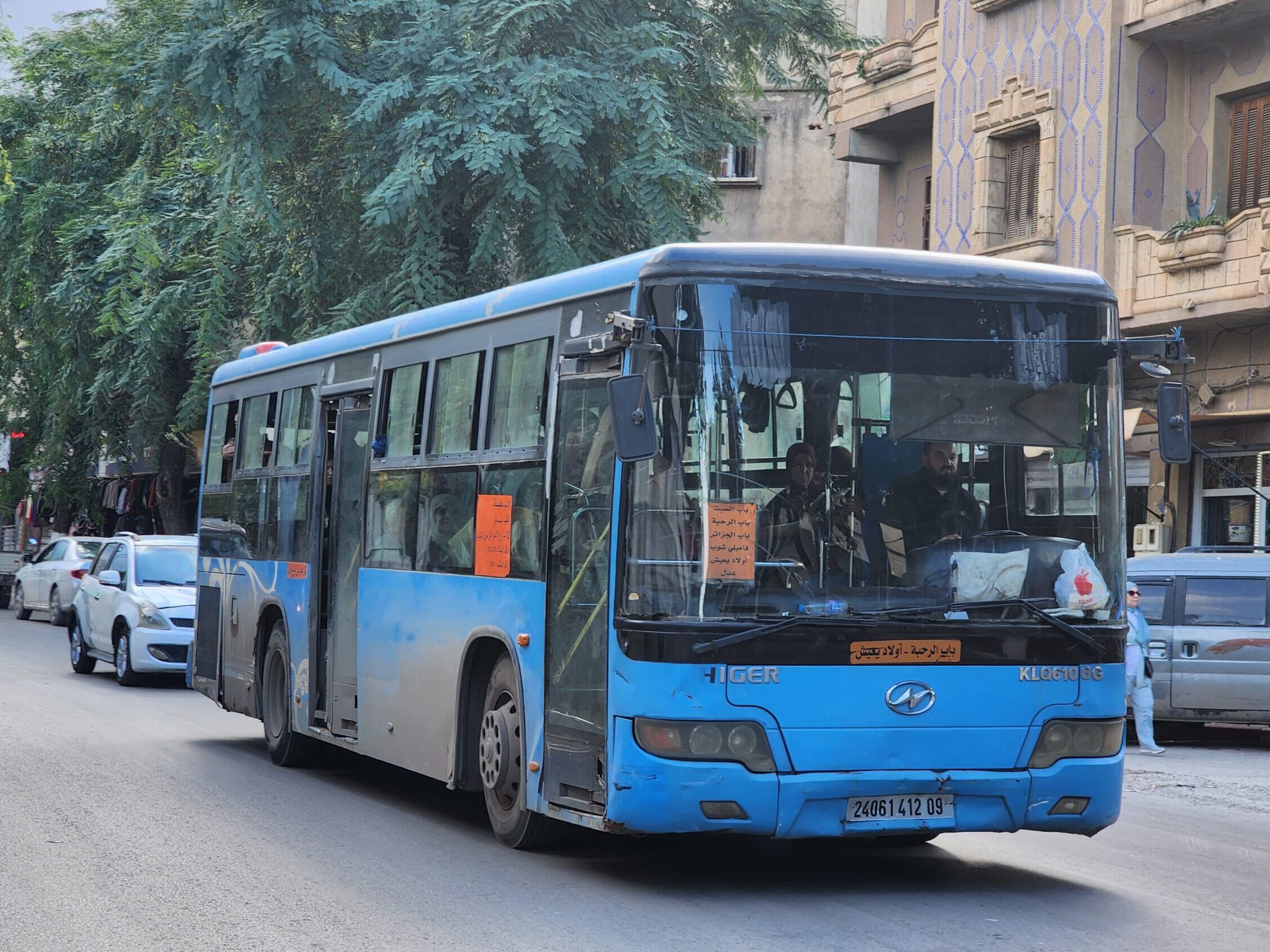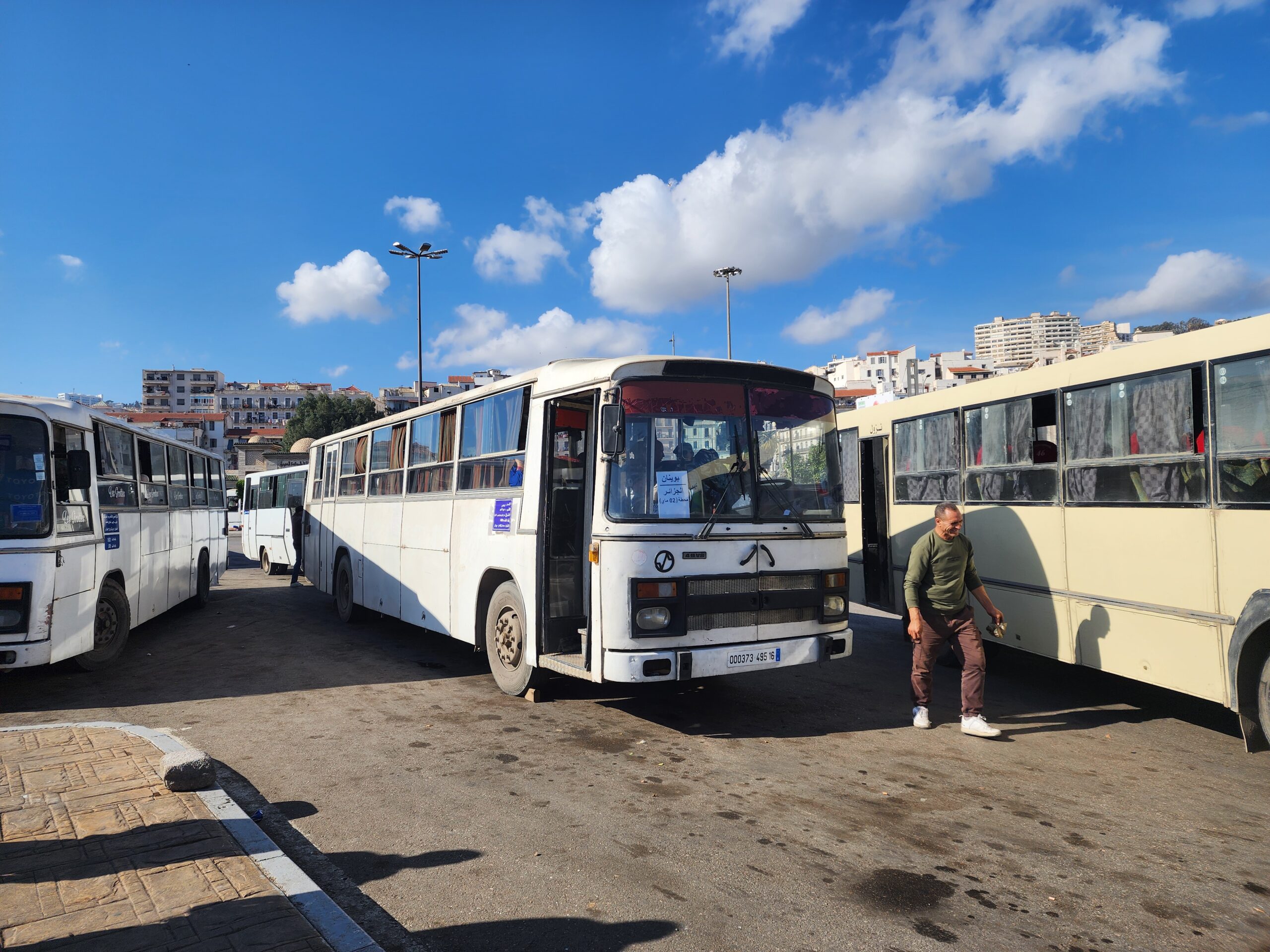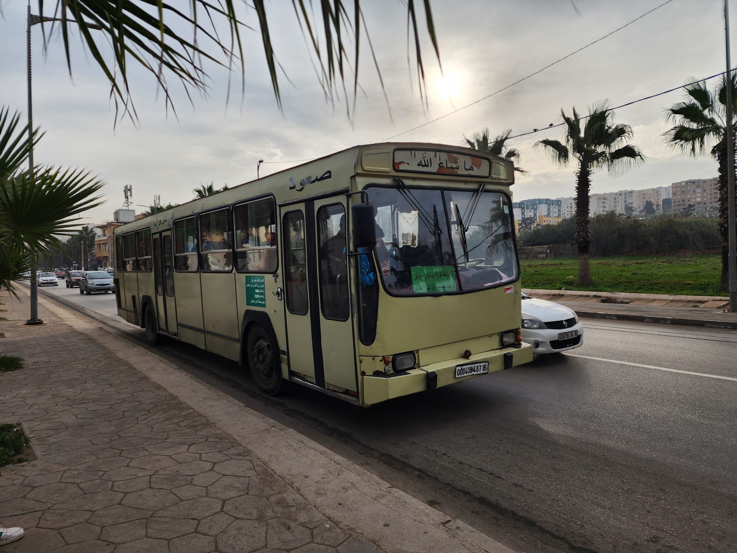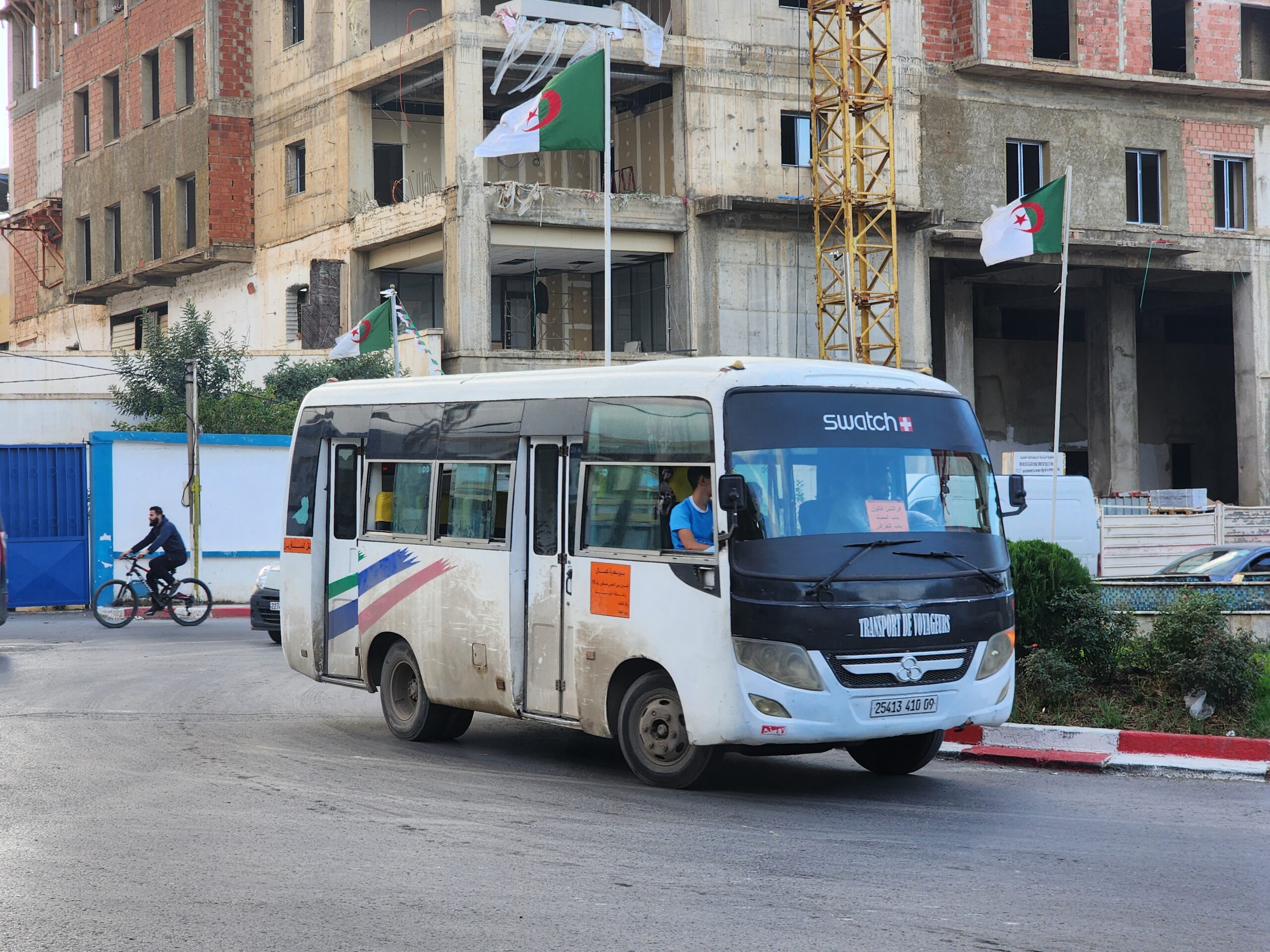 Ve venkovských oblastech a na periferiích Alžíru narazíte stále také na Peugeoty J9, které se vyráběly mezi lety 1991 – 2006. Licenčně je vyráběl také turecký Karsan. Např. v Turecku se s nimi již téměř nesetkáme v linkové dopravě (v roce 2025 jsme potkali pouze jeden v Yalově na lince) – např. Peugeoty J9 Premier v Alžírsku nejezdí a v Turecku jich jezdí spousty (vyráběné od roku 2006). Tato fotografie pochází z Reghaïy, ale potkány byly i v oblasti Sidi Bel Abbes a Oranu.