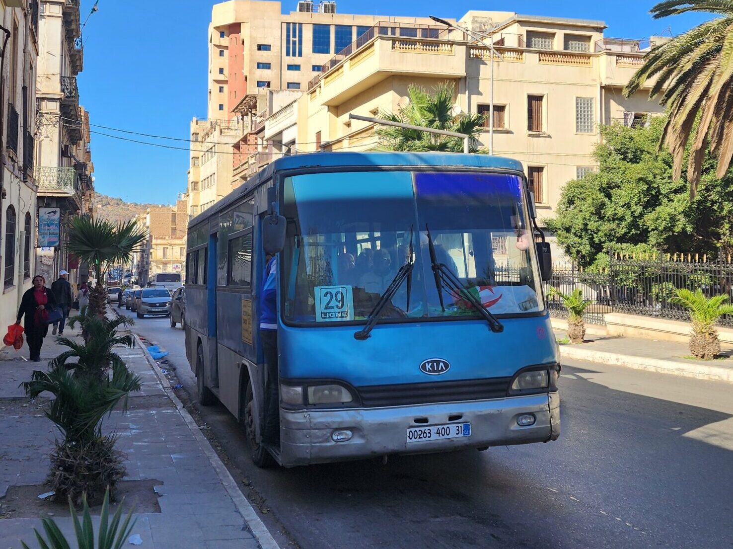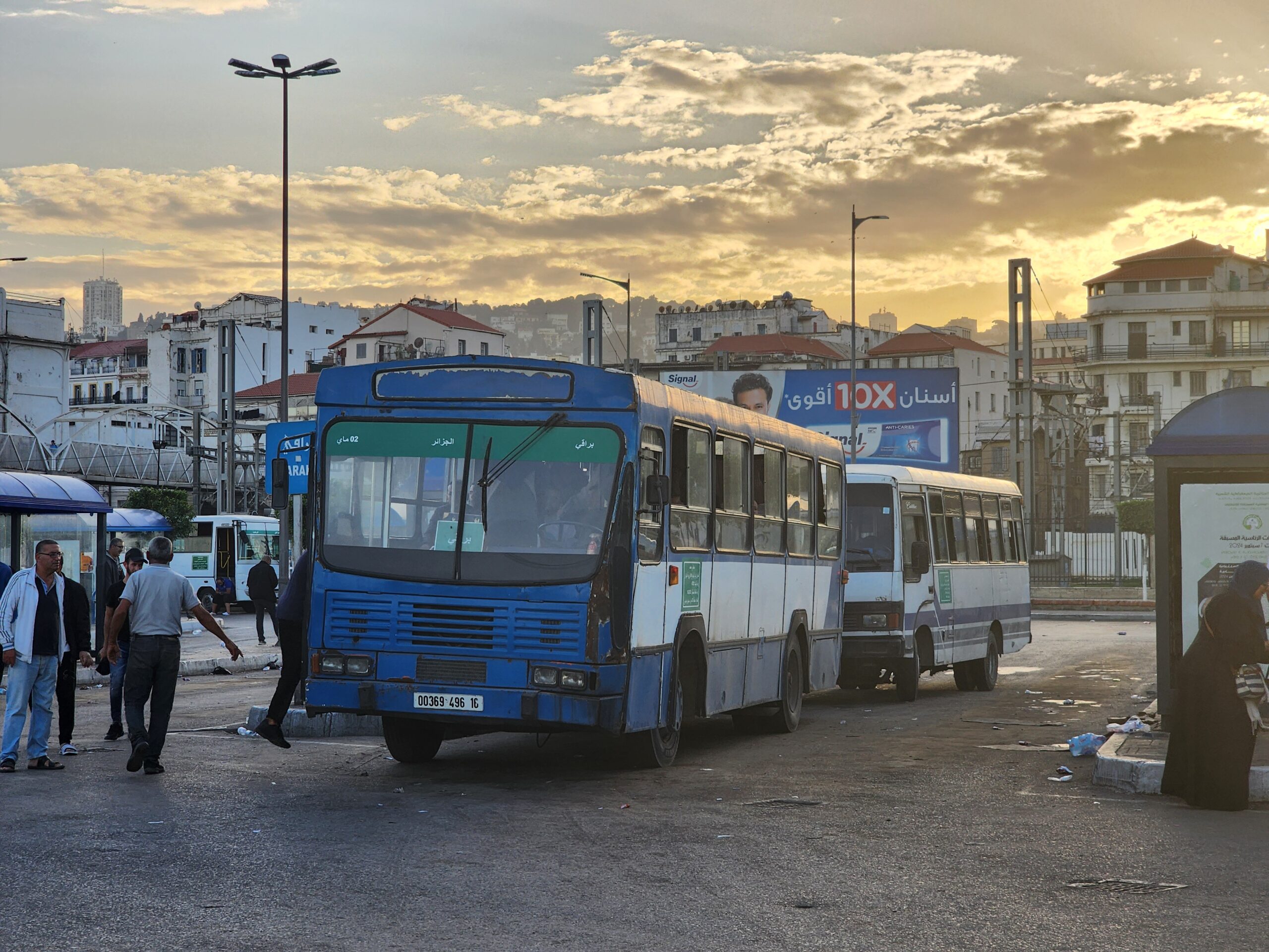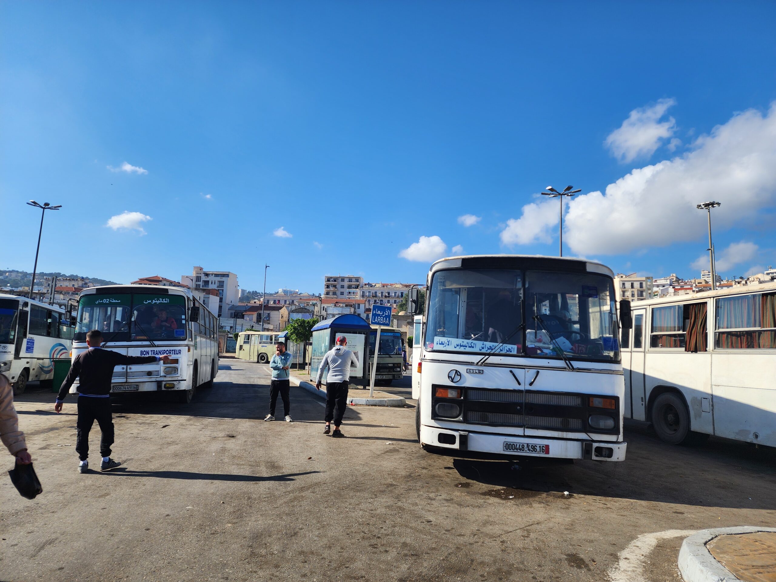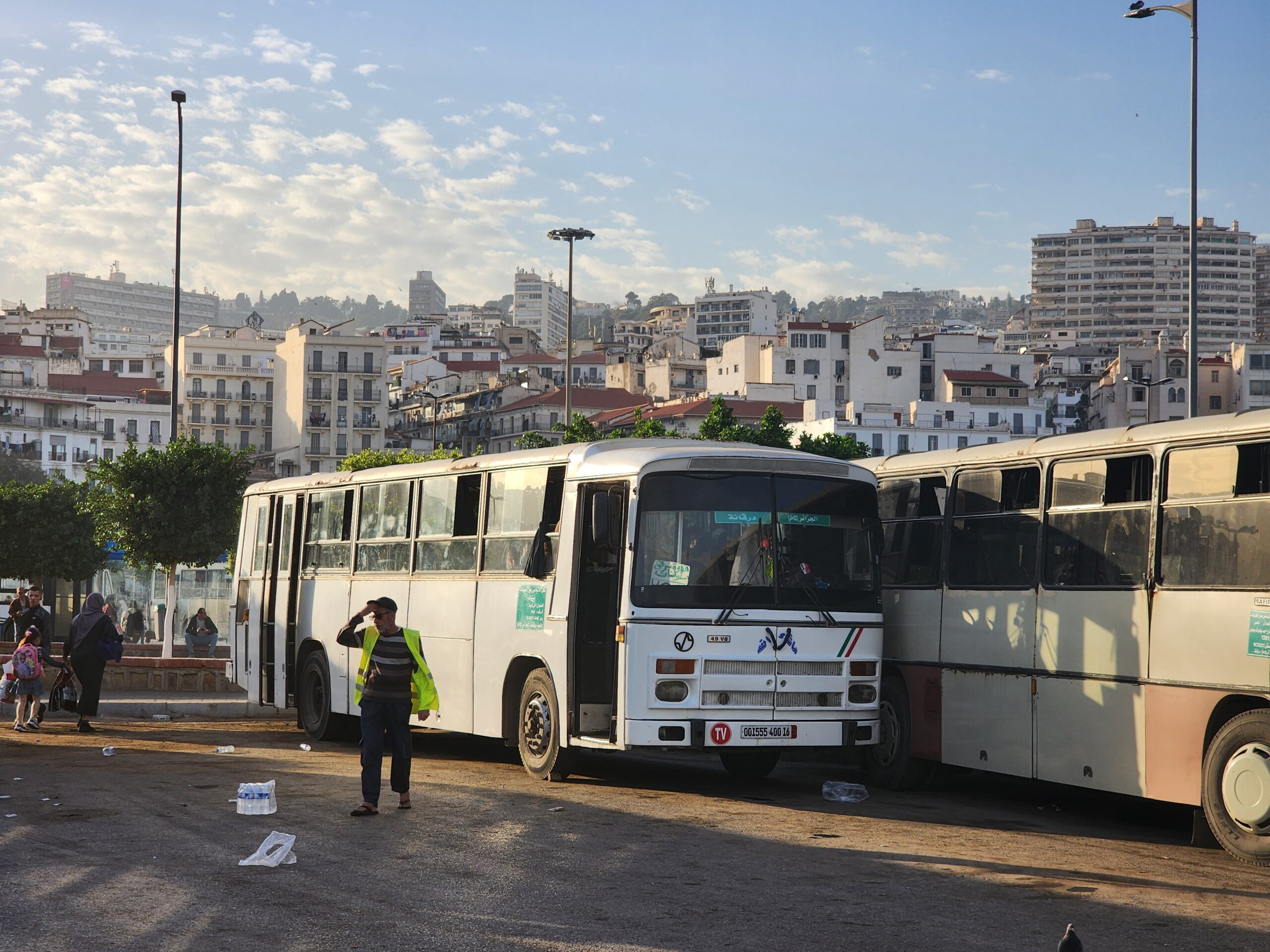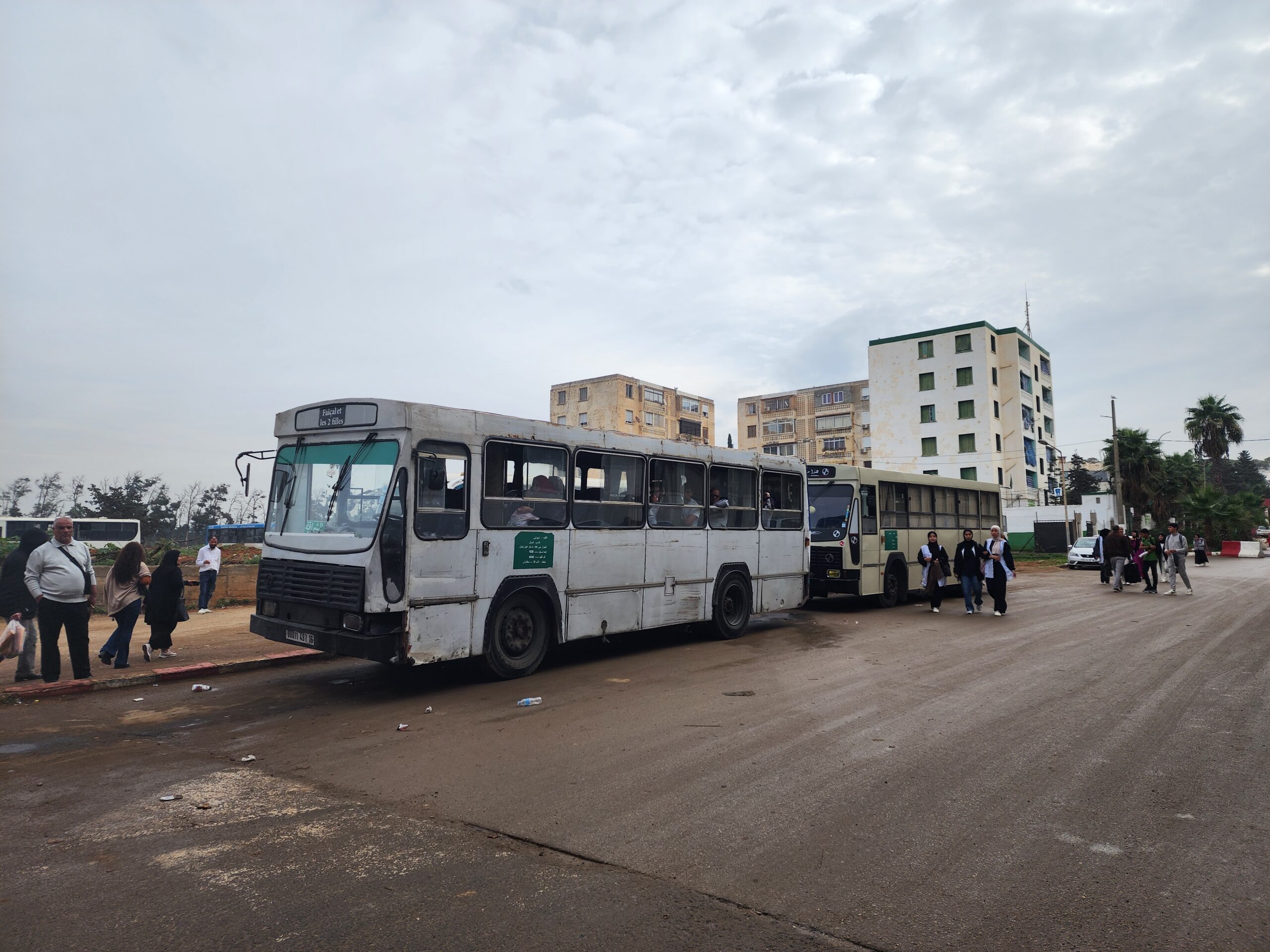 Ve venkovských oblastech a na periferiích Alžíru narazíte stále také na Peugeoty J9, které se vyráběly mezi lety 1991 – 2006. Licenčně je vyráběl také turecký Karsan. Např. v Turecku se s nimi již téměř nesetkáme v linkové dopravě (v roce 2025 jsme potkali pouze jeden v Yalově na lince) – např. Peugeoty J9 Premier v Alžírsku nejezdí a v Turecku jich jezdí spousty (vyráběné od roku 2006). Tato fotografie pochází z Reghaïy, ale potkány byly i v oblasti Sidi Bel Abbes a Oranu.