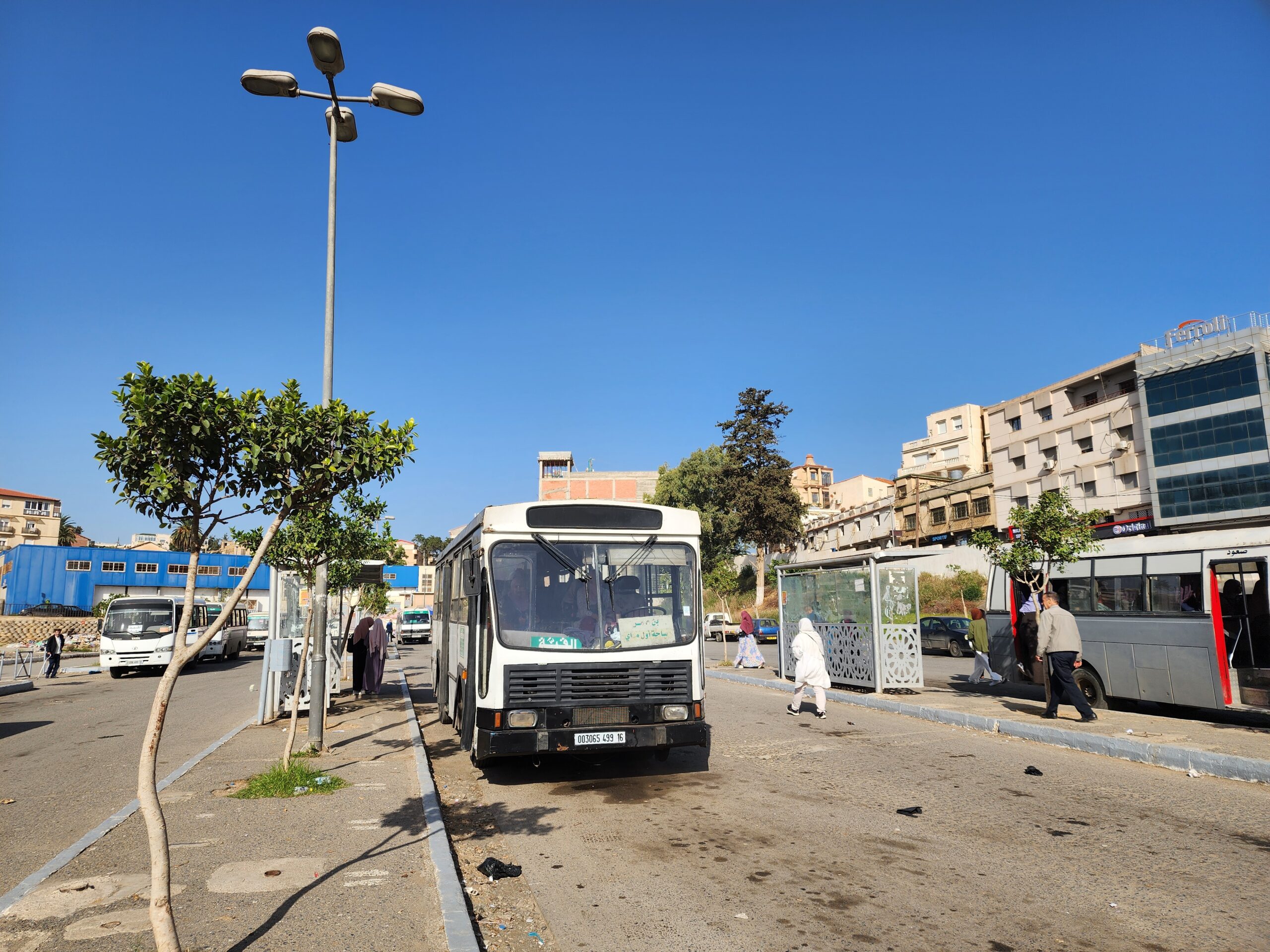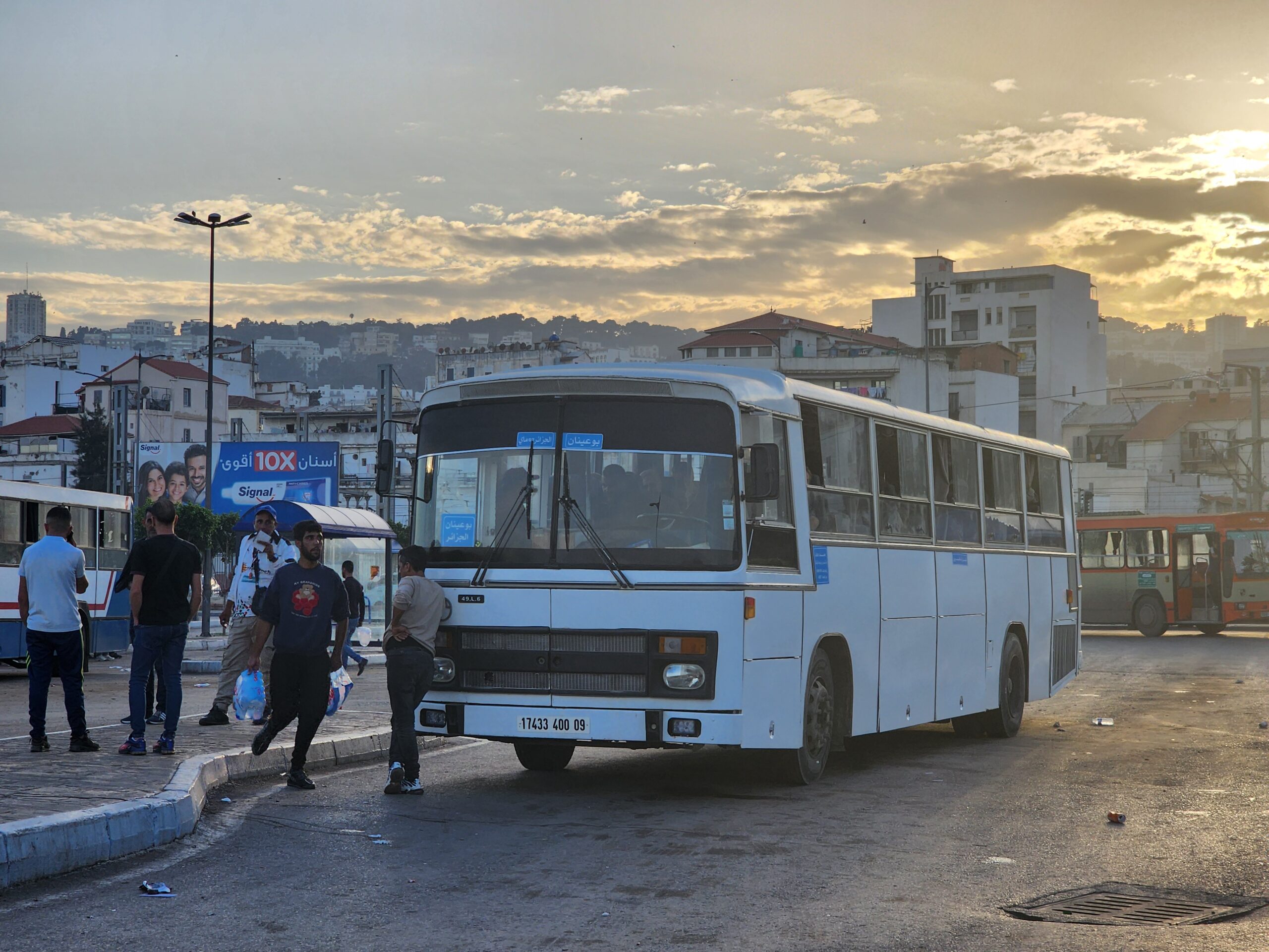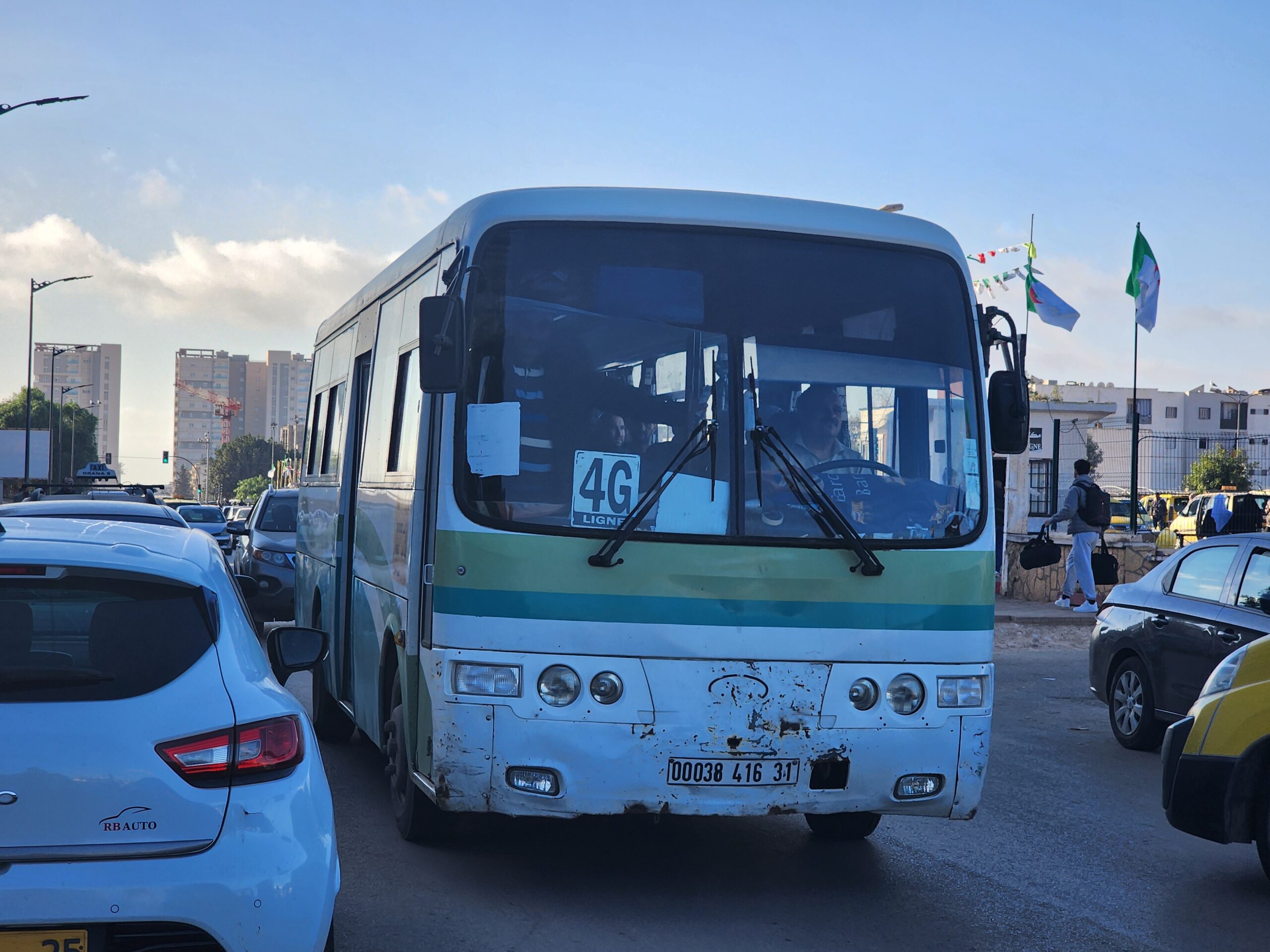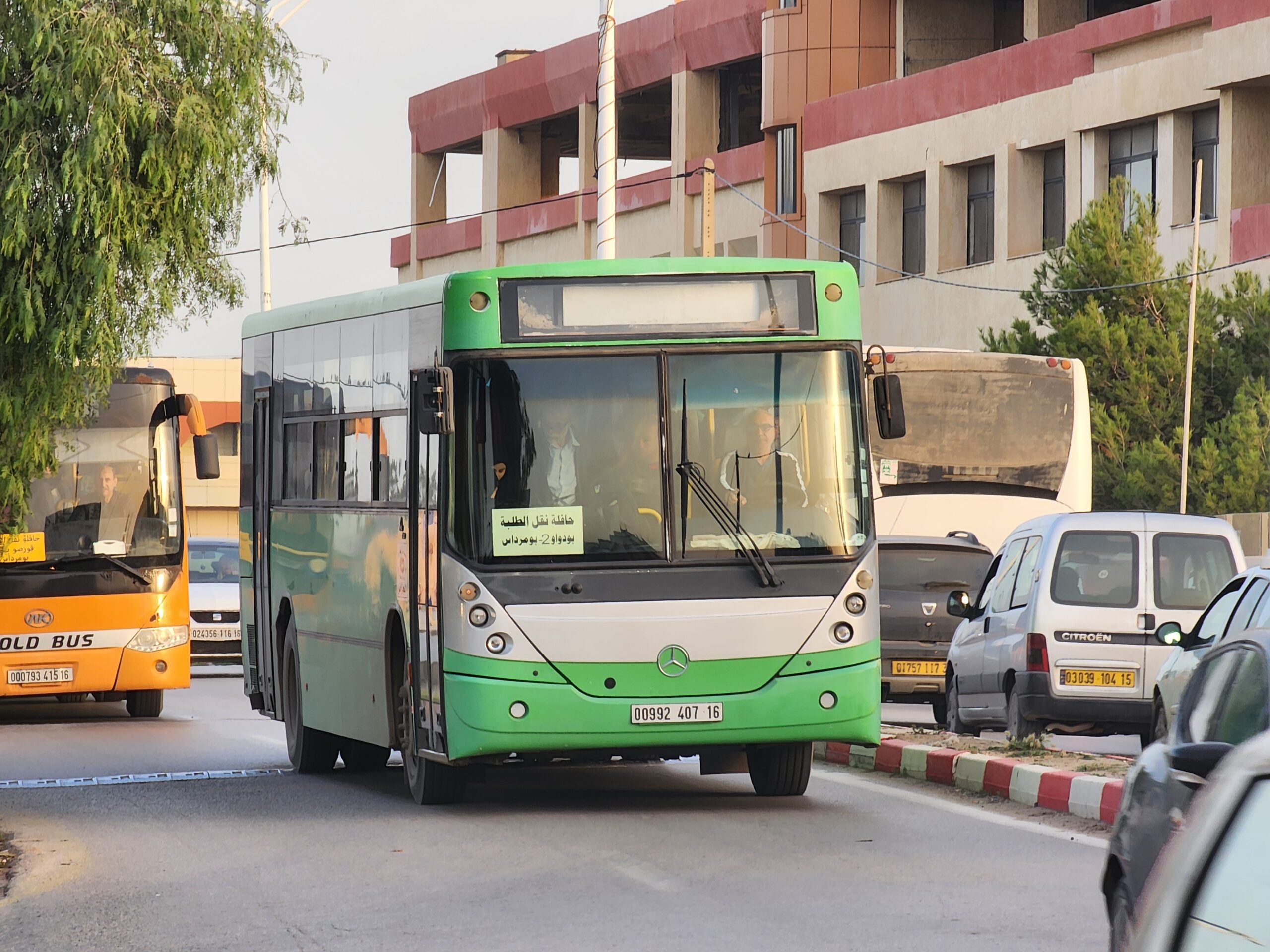 Ve venkovských oblastech a na periferiích Alžíru narazíte stále také na Peugeoty J9, které se vyráběly mezi lety 1991 – 2006. Licenčně je vyráběl také turecký Karsan. Např. v Turecku se s nimi již téměř nesetkáme v linkové dopravě (v roce 2025 jsme potkali pouze jeden v Yalově na lince) – např. Peugeoty J9 Premier v Alžírsku nejezdí a v Turecku jich jezdí spousty (vyráběné od roku 2006). Tato fotografie pochází z Reghaïy, ale potkány byly i v oblasti Sidi Bel Abbes a Oranu.