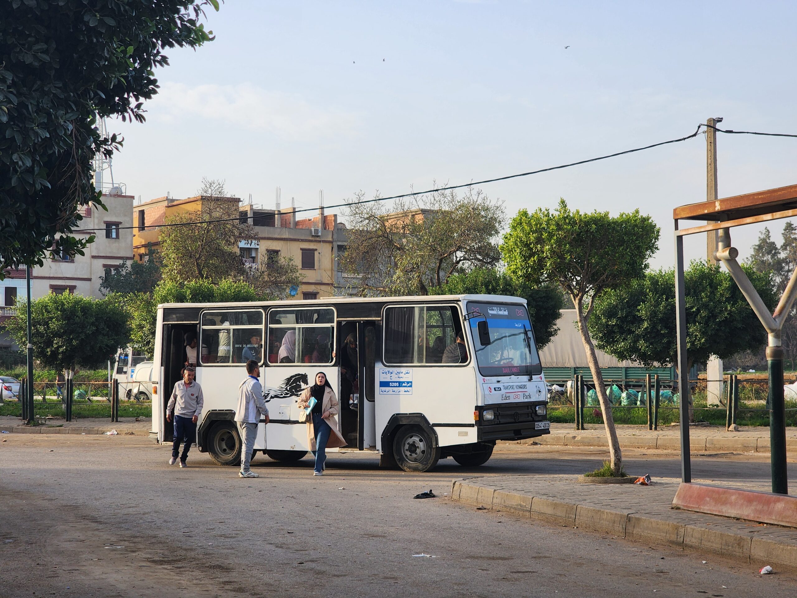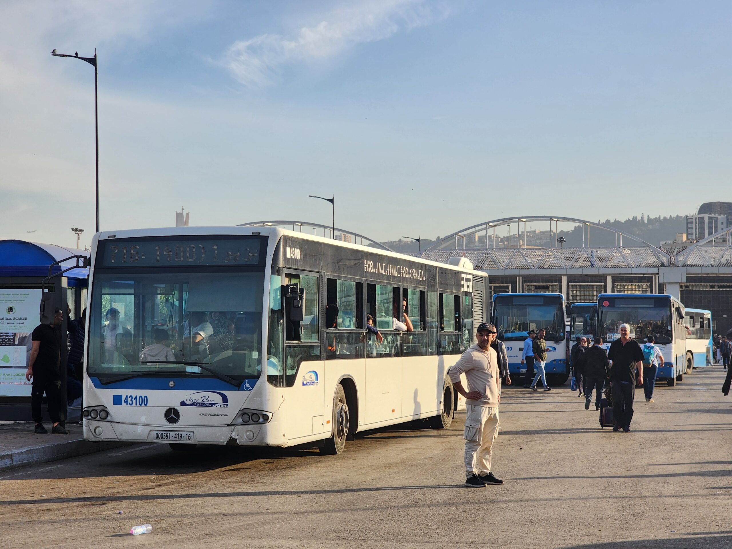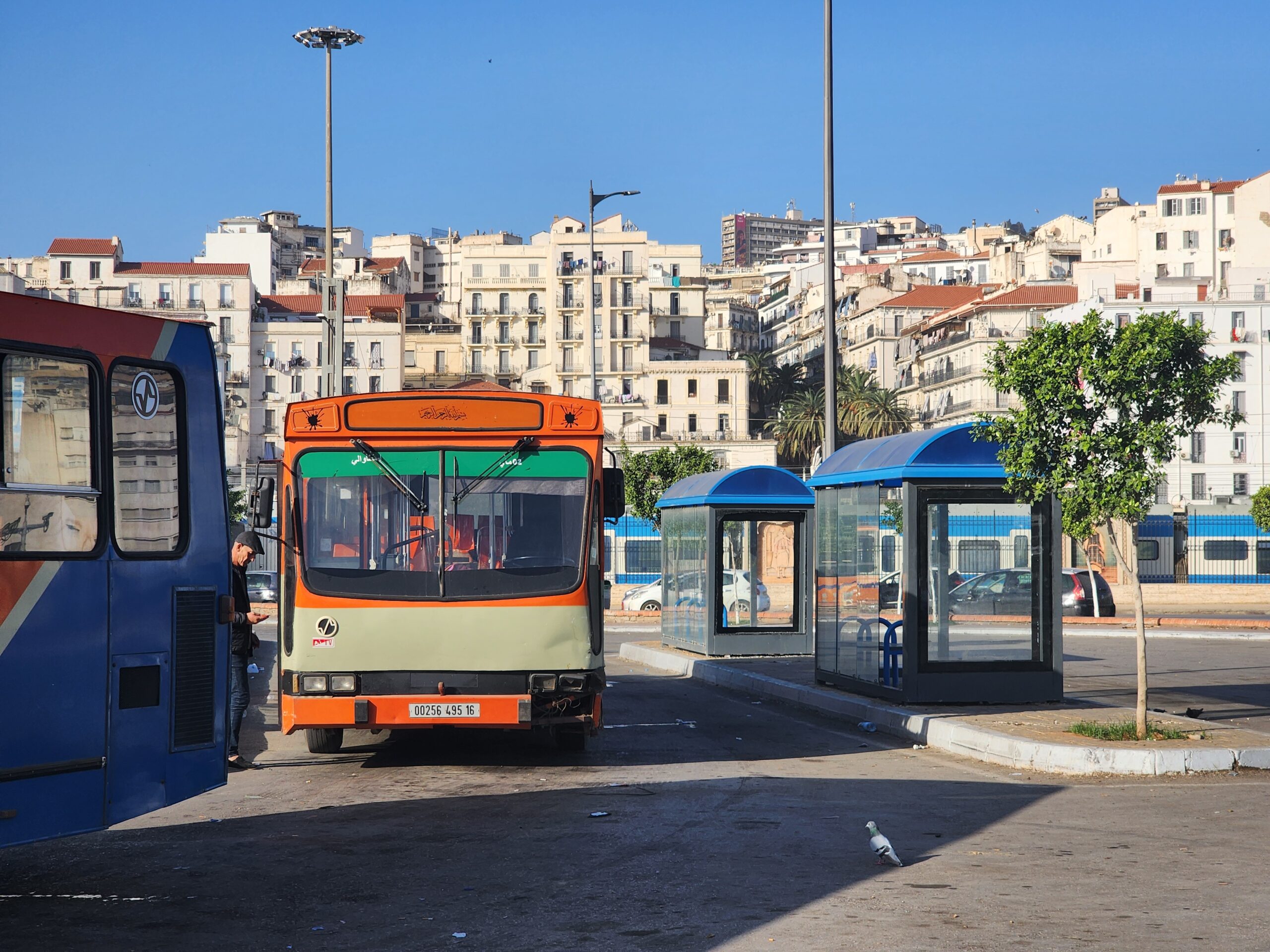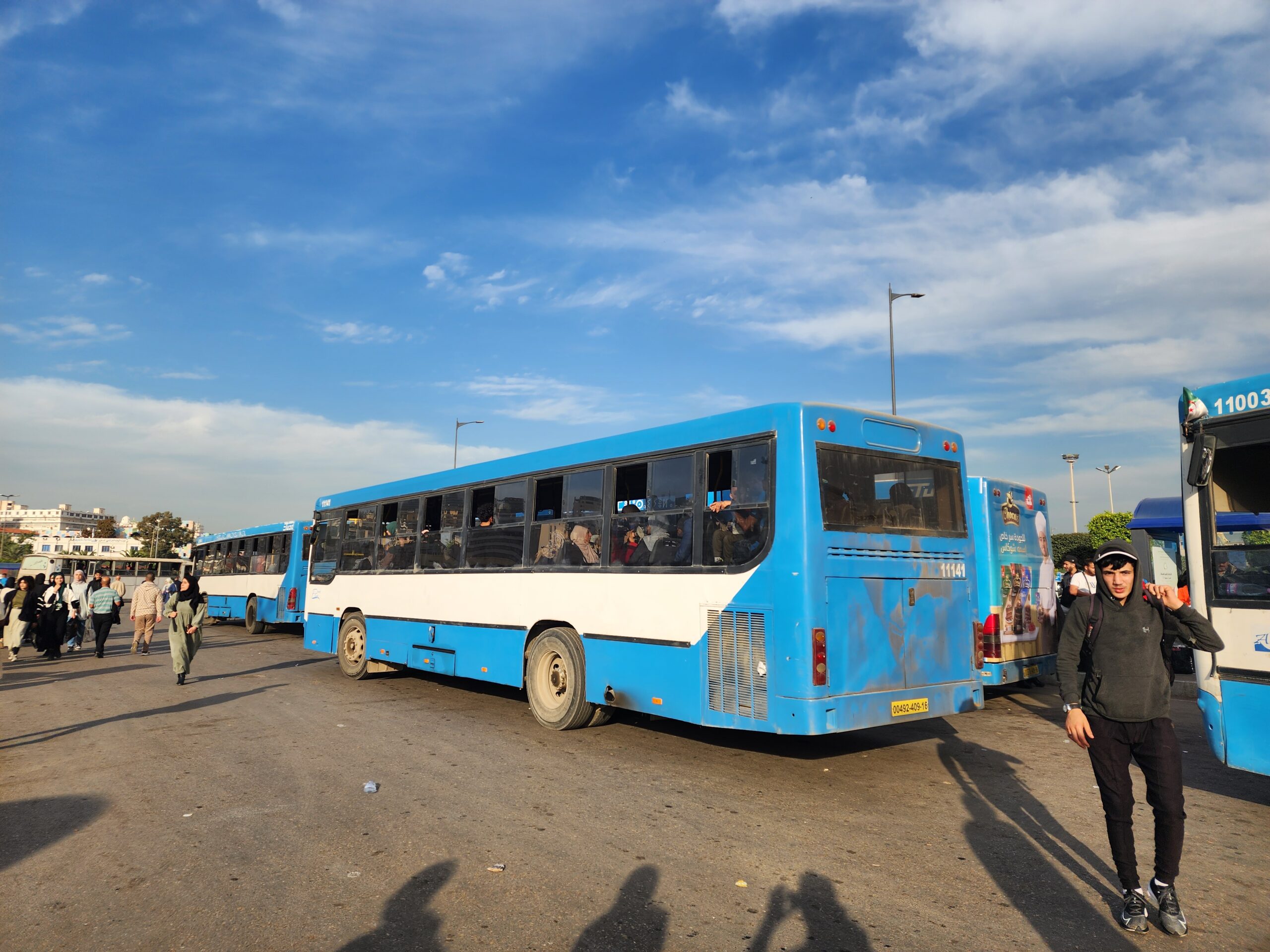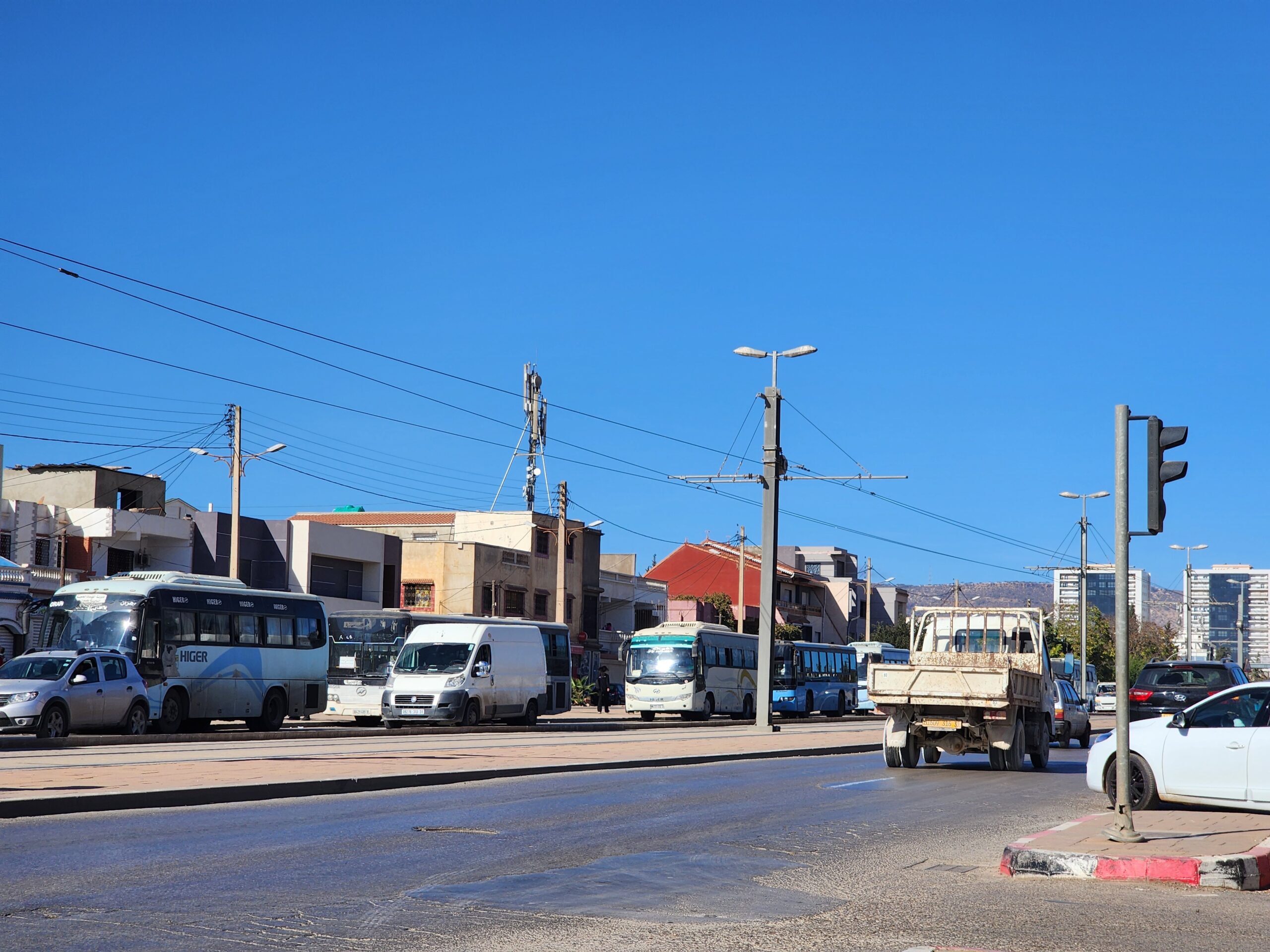 Ve venkovských oblastech a na periferiích Alžíru narazíte stále také na Peugeoty J9, které se vyráběly mezi lety 1991 – 2006. Licenčně je vyráběl také turecký Karsan. Např. v Turecku se s nimi již téměř nesetkáme v linkové dopravě (v roce 2025 jsme potkali pouze jeden v Yalově na lince) – např. Peugeoty J9 Premier v Alžírsku nejezdí a v Turecku jich jezdí spousty (vyráběné od roku 2006). Tato fotografie pochází z Reghaïy, ale potkány byly i v oblasti Sidi Bel Abbes a Oranu.