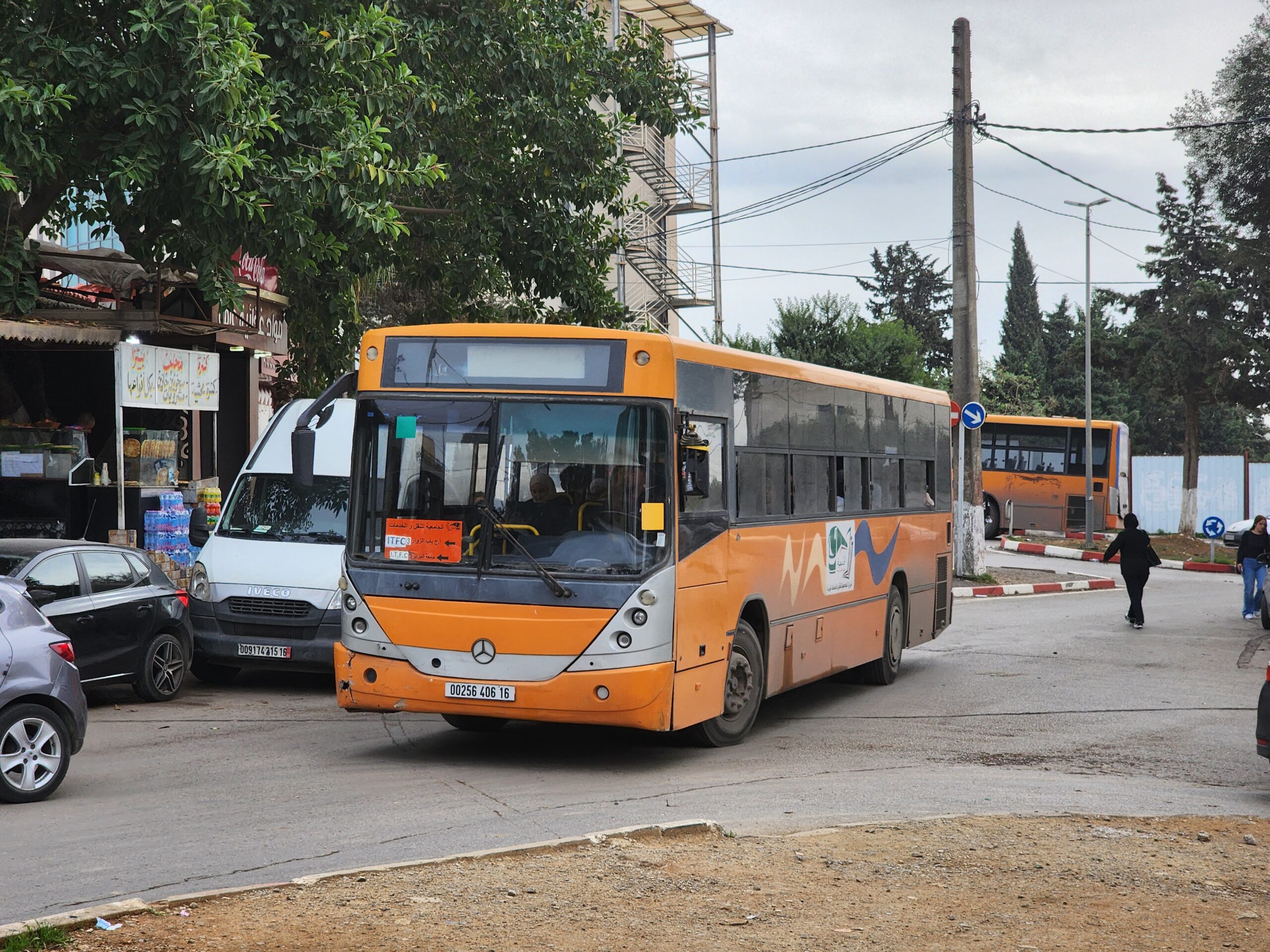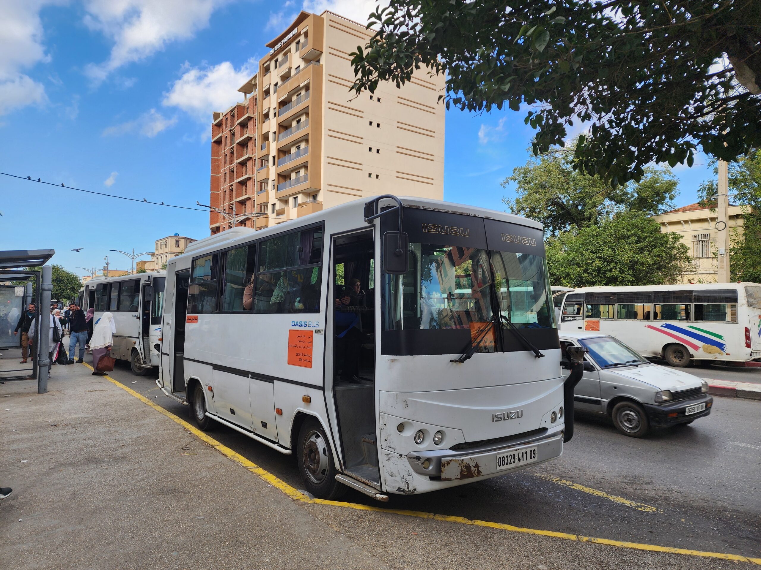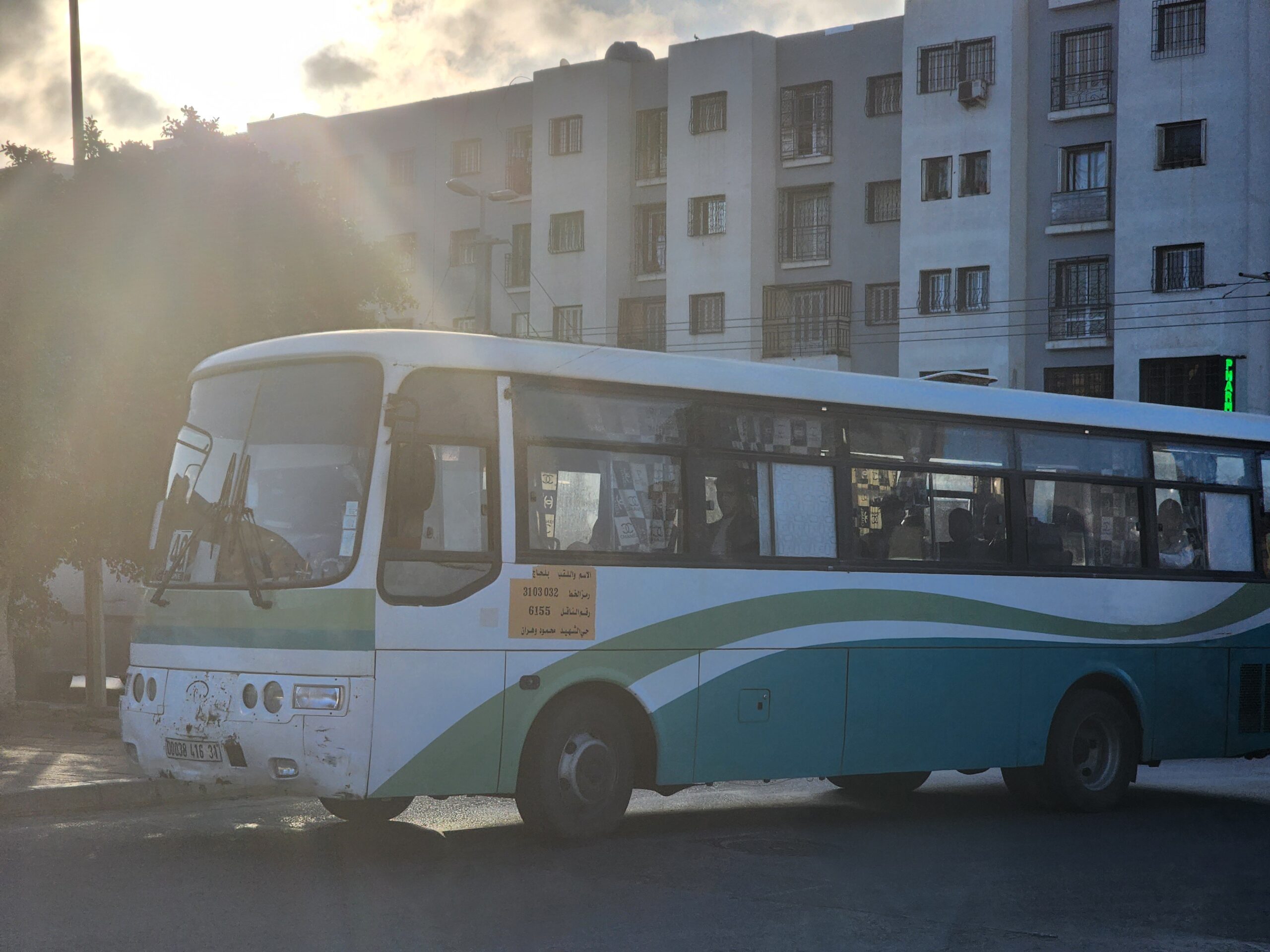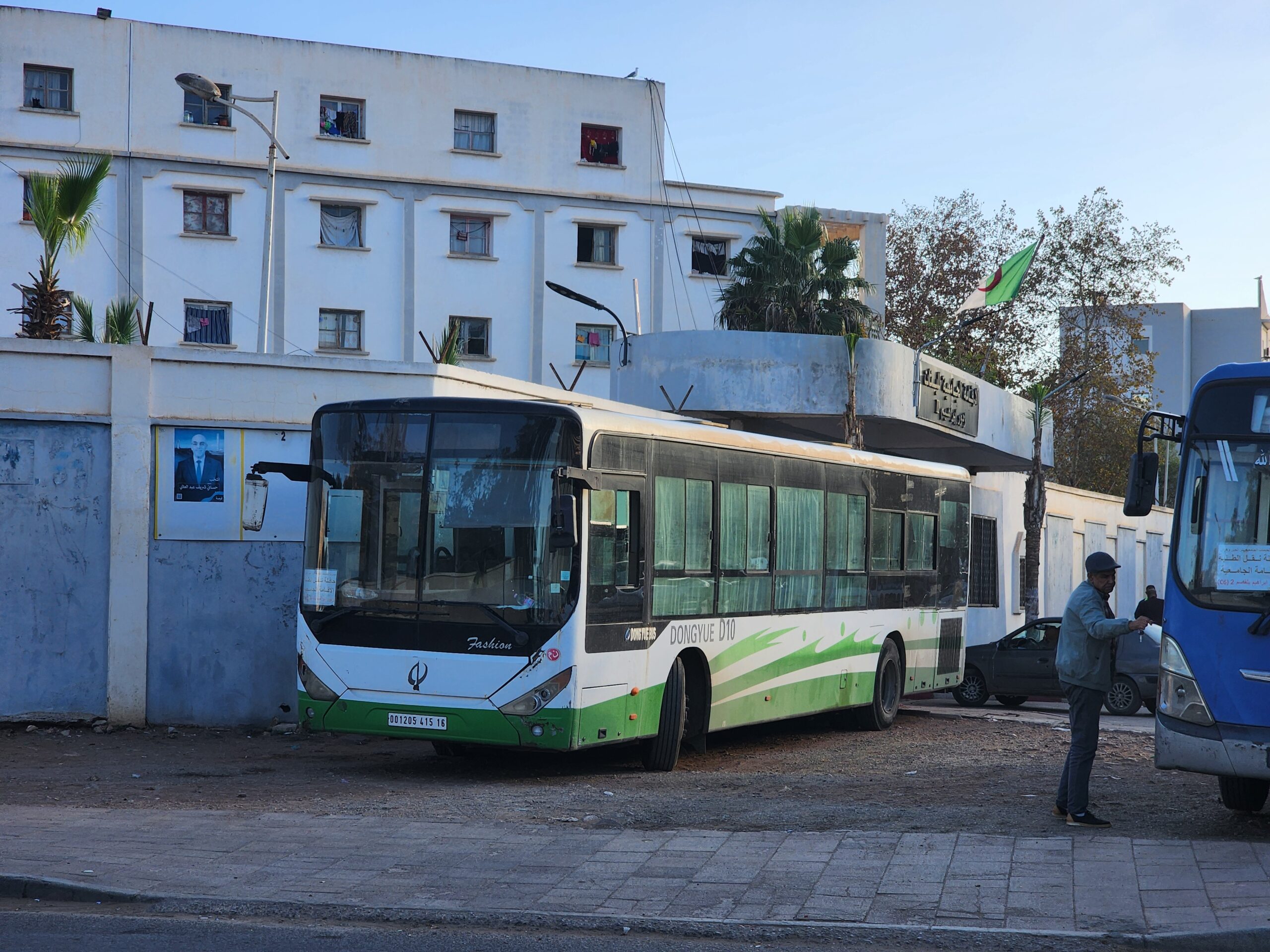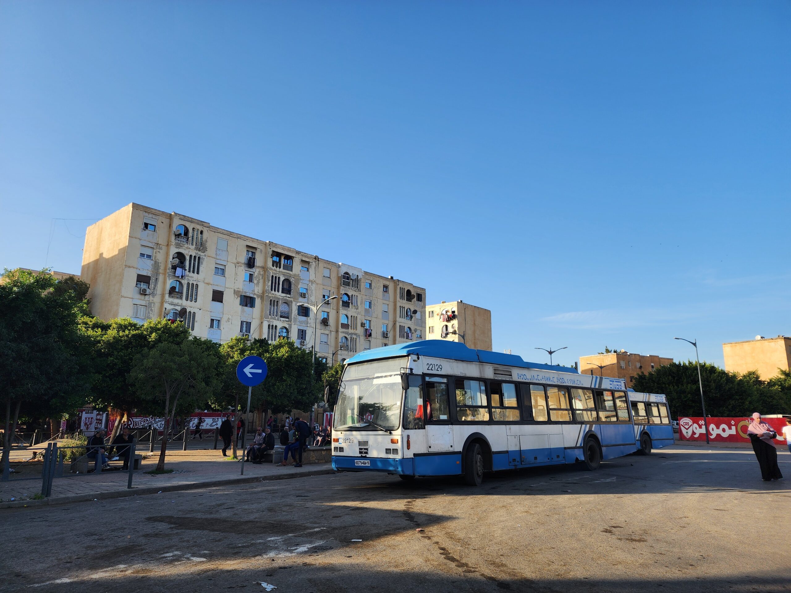 Ve venkovských oblastech a na periferiích Alžíru narazíte stále také na Peugeoty J9, které se vyráběly mezi lety 1991 – 2006. Licenčně je vyráběl také turecký Karsan. Např. v Turecku se s nimi již téměř nesetkáme v linkové dopravě (v roce 2025 jsme potkali pouze jeden v Yalově na lince) – např. Peugeoty J9 Premier v Alžírsku nejezdí a v Turecku jich jezdí spousty (vyráběné od roku 2006). Tato fotografie pochází z Reghaïy, ale potkány byly i v oblasti Sidi Bel Abbes a Oranu.