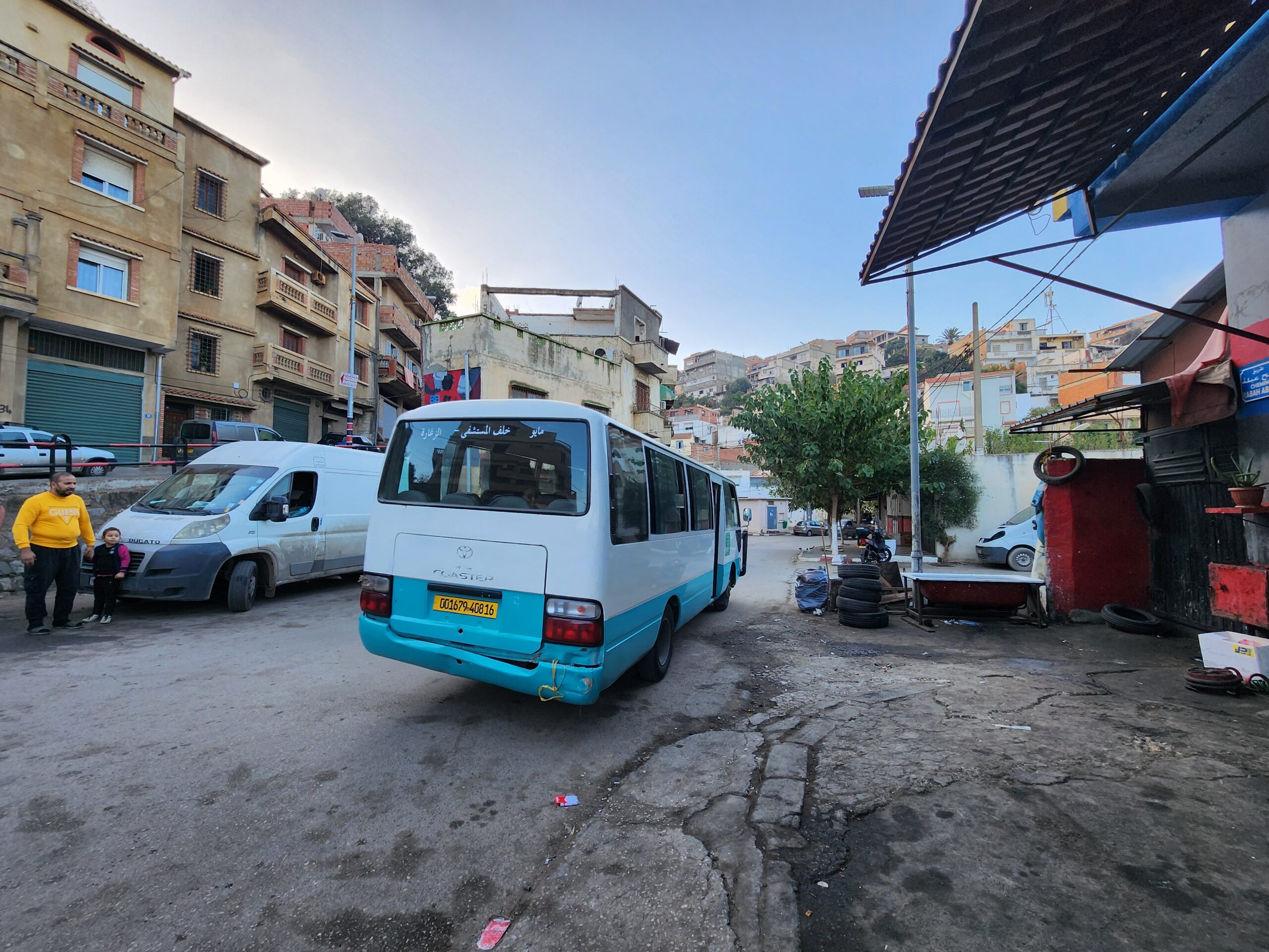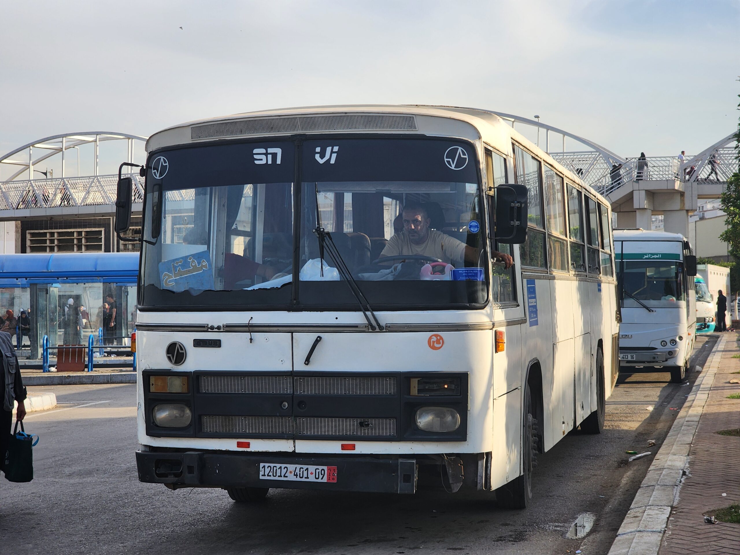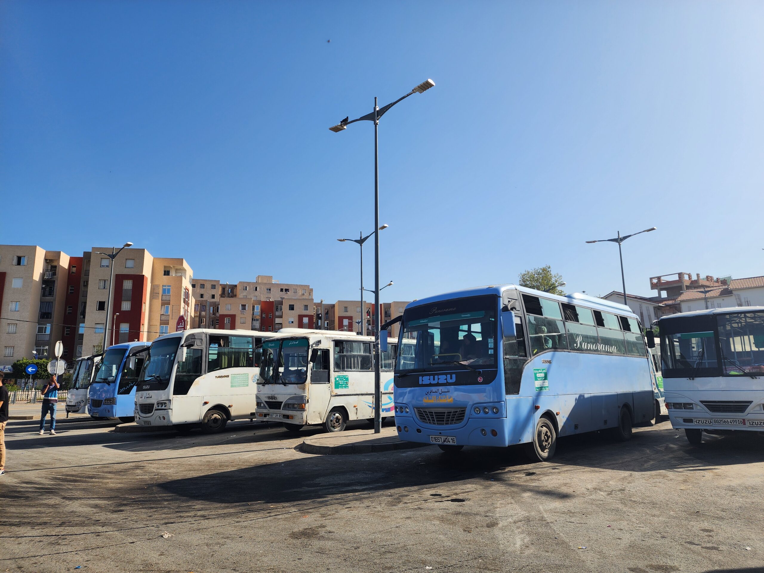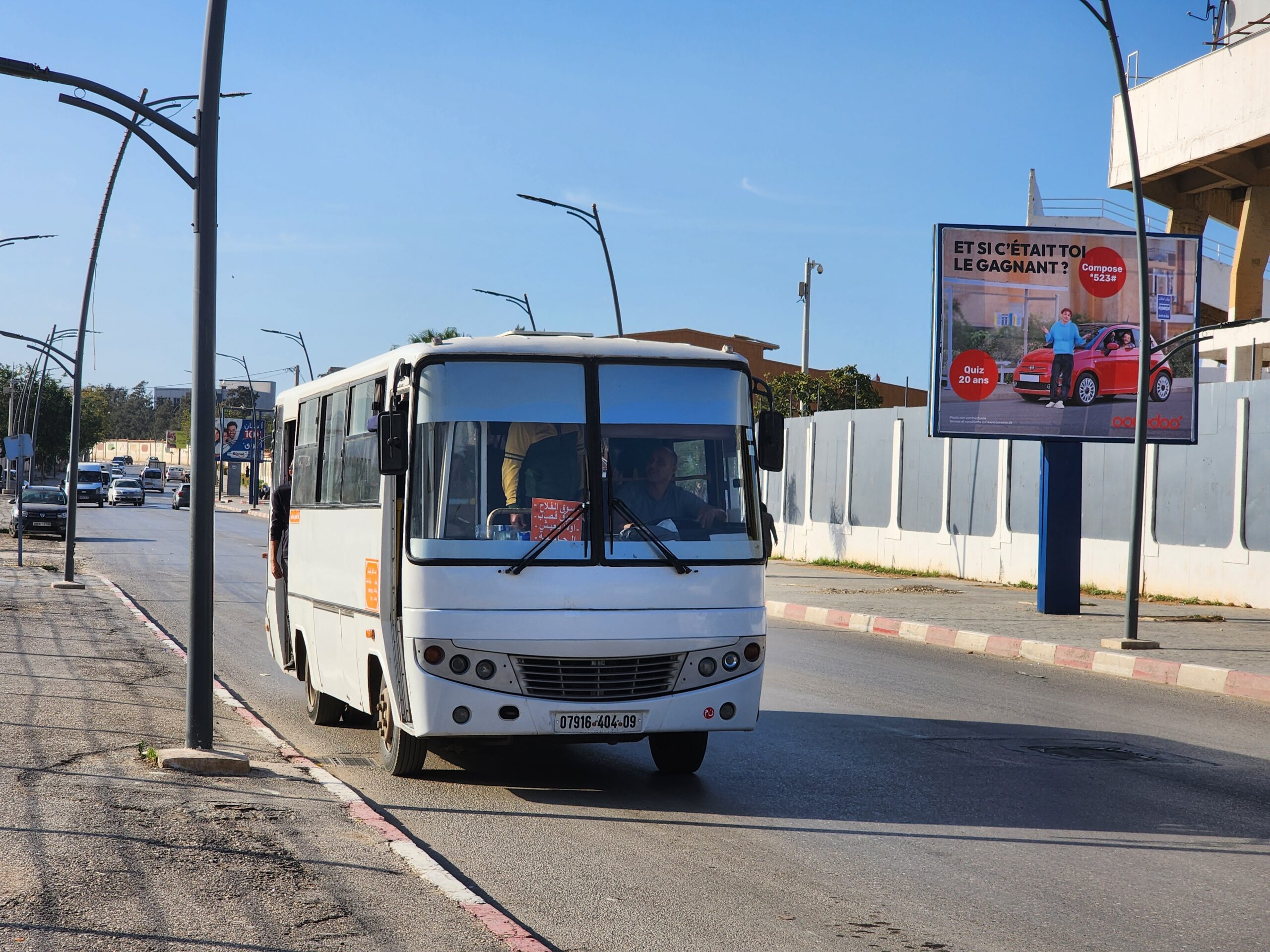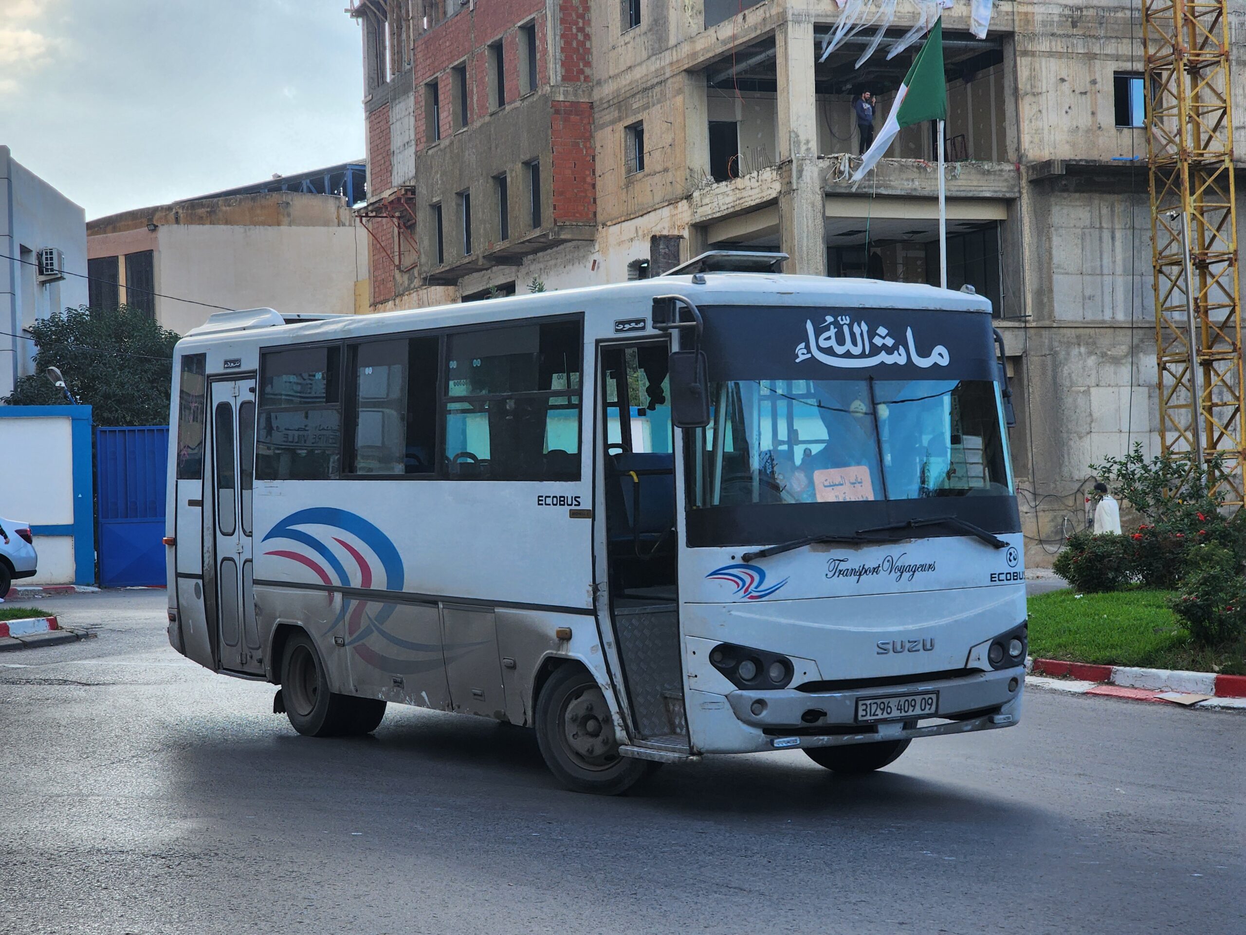 Ve venkovských oblastech a na periferiích Alžíru narazíte stále také na Peugeoty J9, které se vyráběly mezi lety 1991 – 2006. Licenčně je vyráběl také turecký Karsan. Např. v Turecku se s nimi již téměř nesetkáme v linkové dopravě (v roce 2025 jsme potkali pouze jeden v Yalově na lince) – např. Peugeoty J9 Premier v Alžírsku nejezdí a v Turecku jich jezdí spousty (vyráběné od roku 2006). Tato fotografie pochází z Reghaïy, ale potkány byly i v oblasti Sidi Bel Abbes a Oranu.