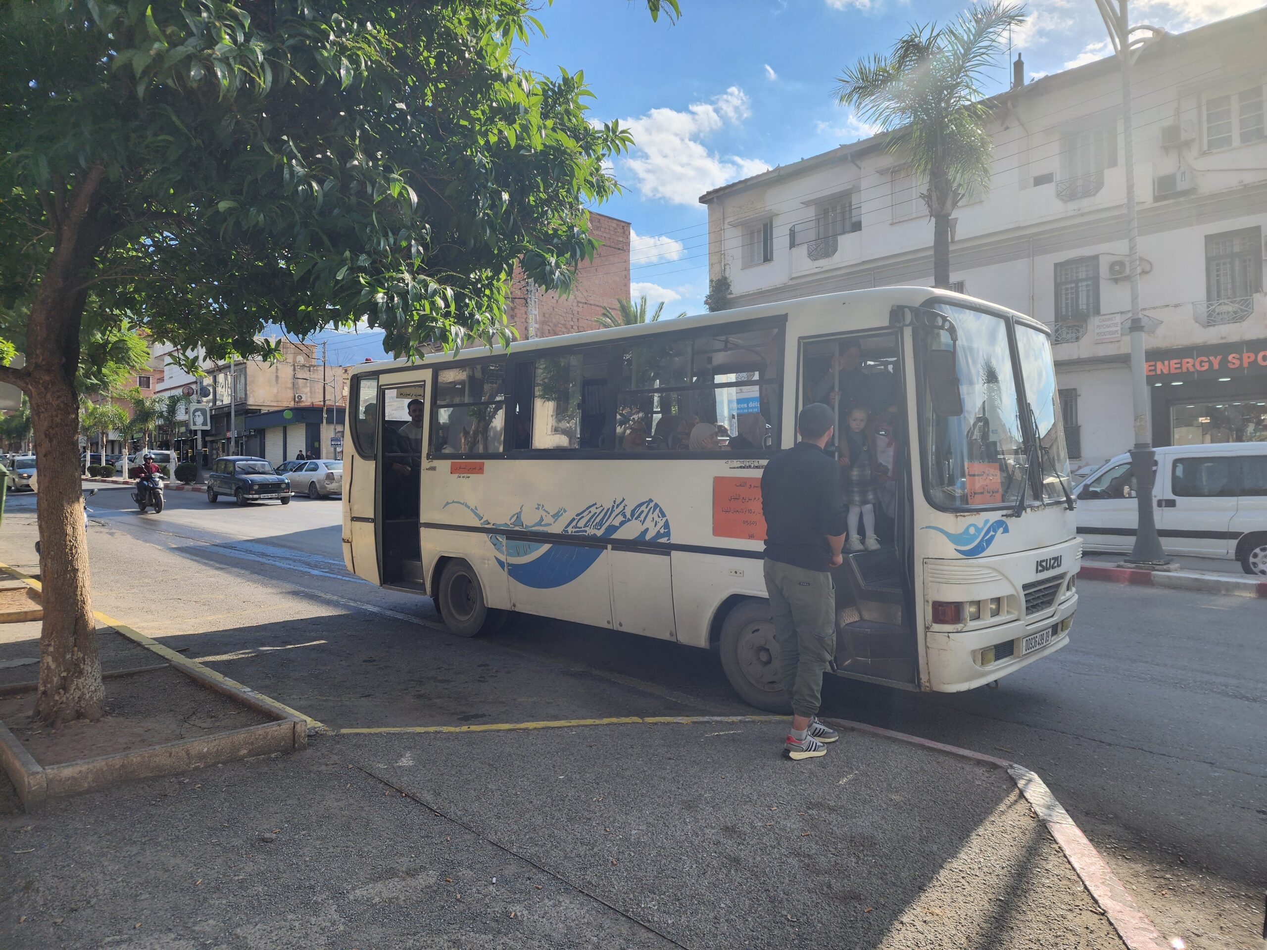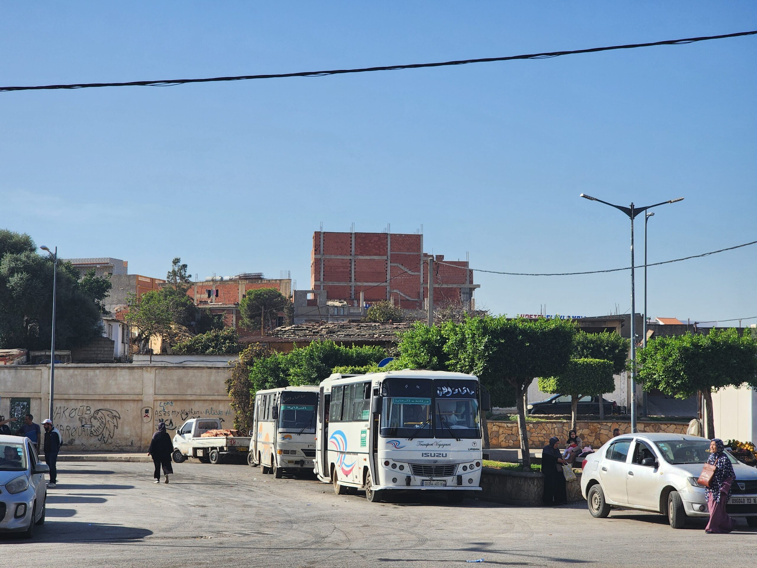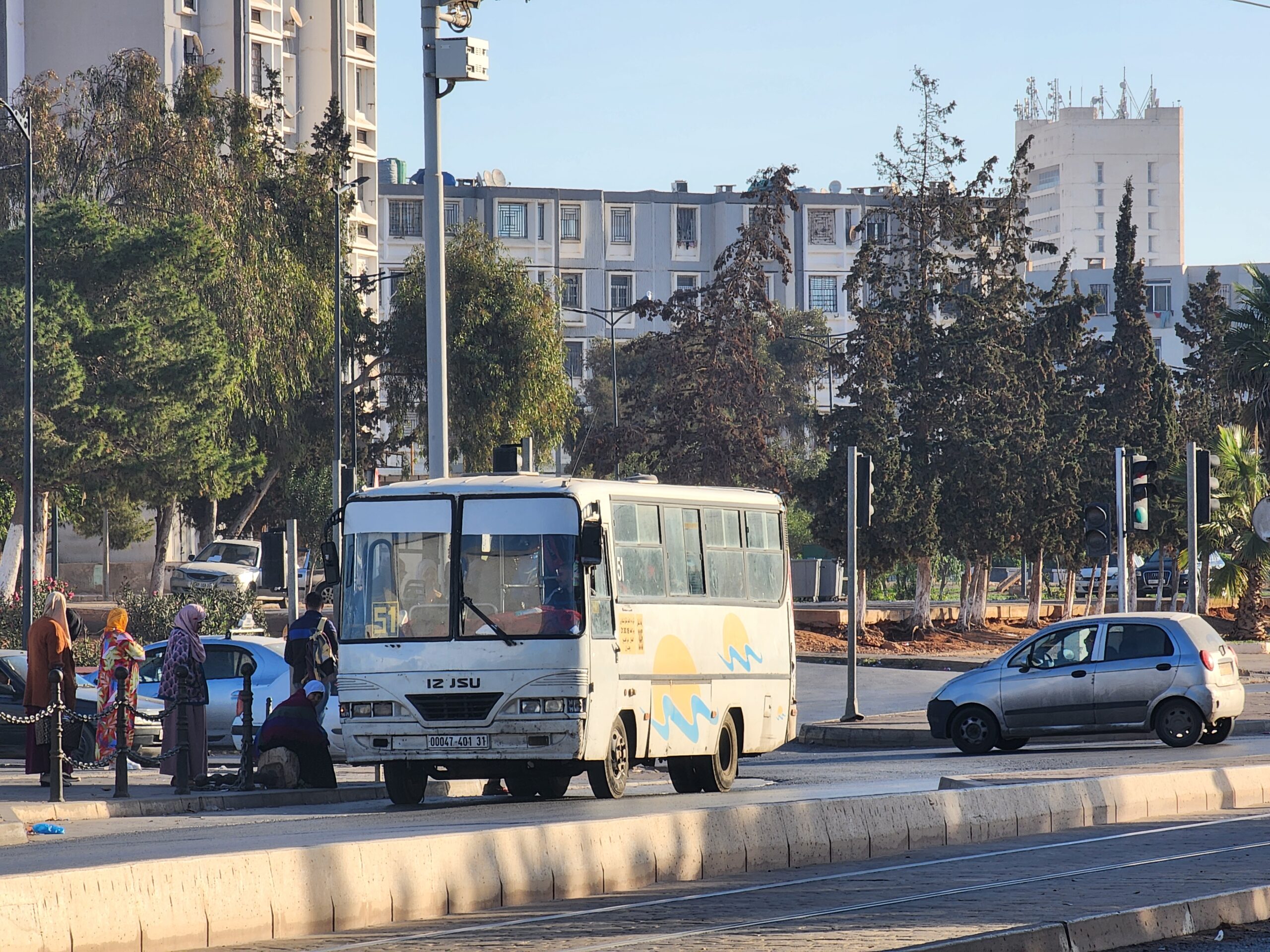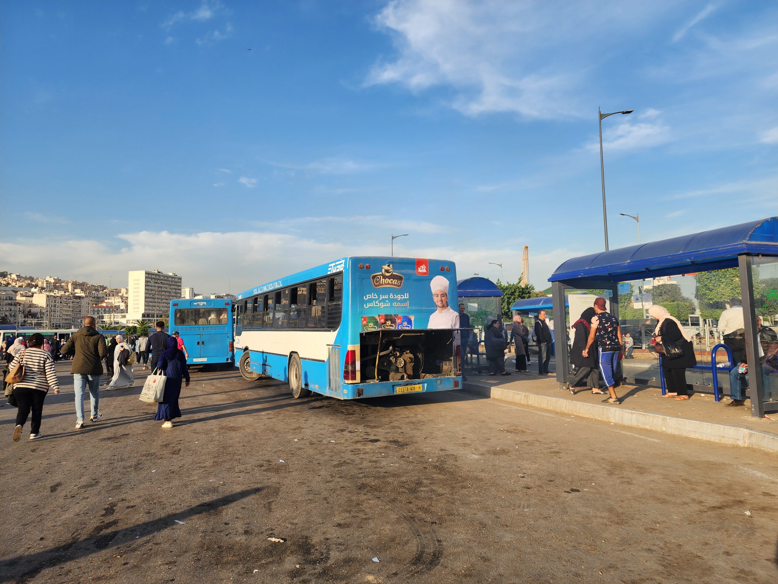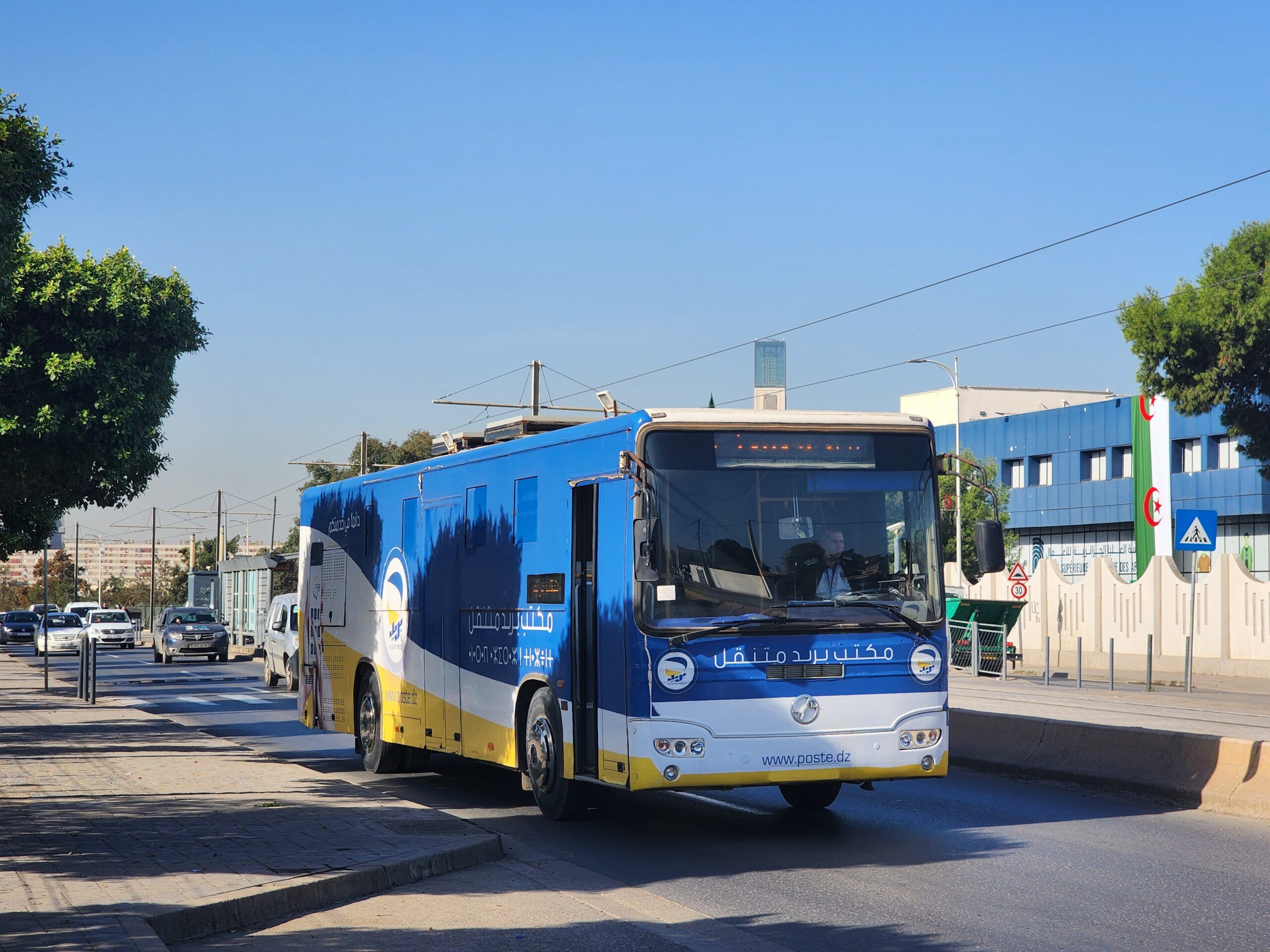 Ve venkovských oblastech a na periferiích Alžíru narazíte stále také na Peugeoty J9, které se vyráběly mezi lety 1991 – 2006. Licenčně je vyráběl také turecký Karsan. Např. v Turecku se s nimi již téměř nesetkáme v linkové dopravě (v roce 2025 jsme potkali pouze jeden v Yalově na lince) – např. Peugeoty J9 Premier v Alžírsku nejezdí a v Turecku jich jezdí spousty (vyráběné od roku 2006). Tato fotografie pochází z Reghaïy, ale potkány byly i v oblasti Sidi Bel Abbes a Oranu.
