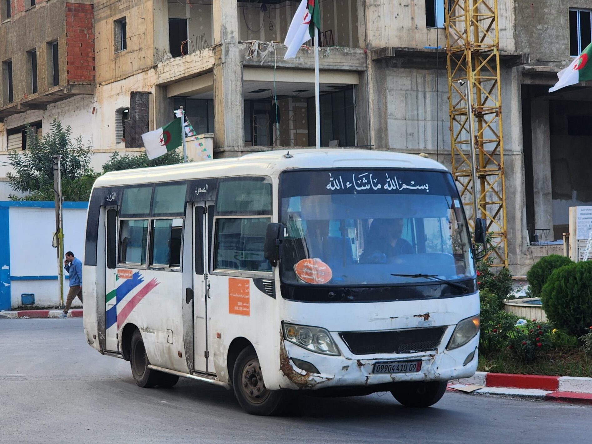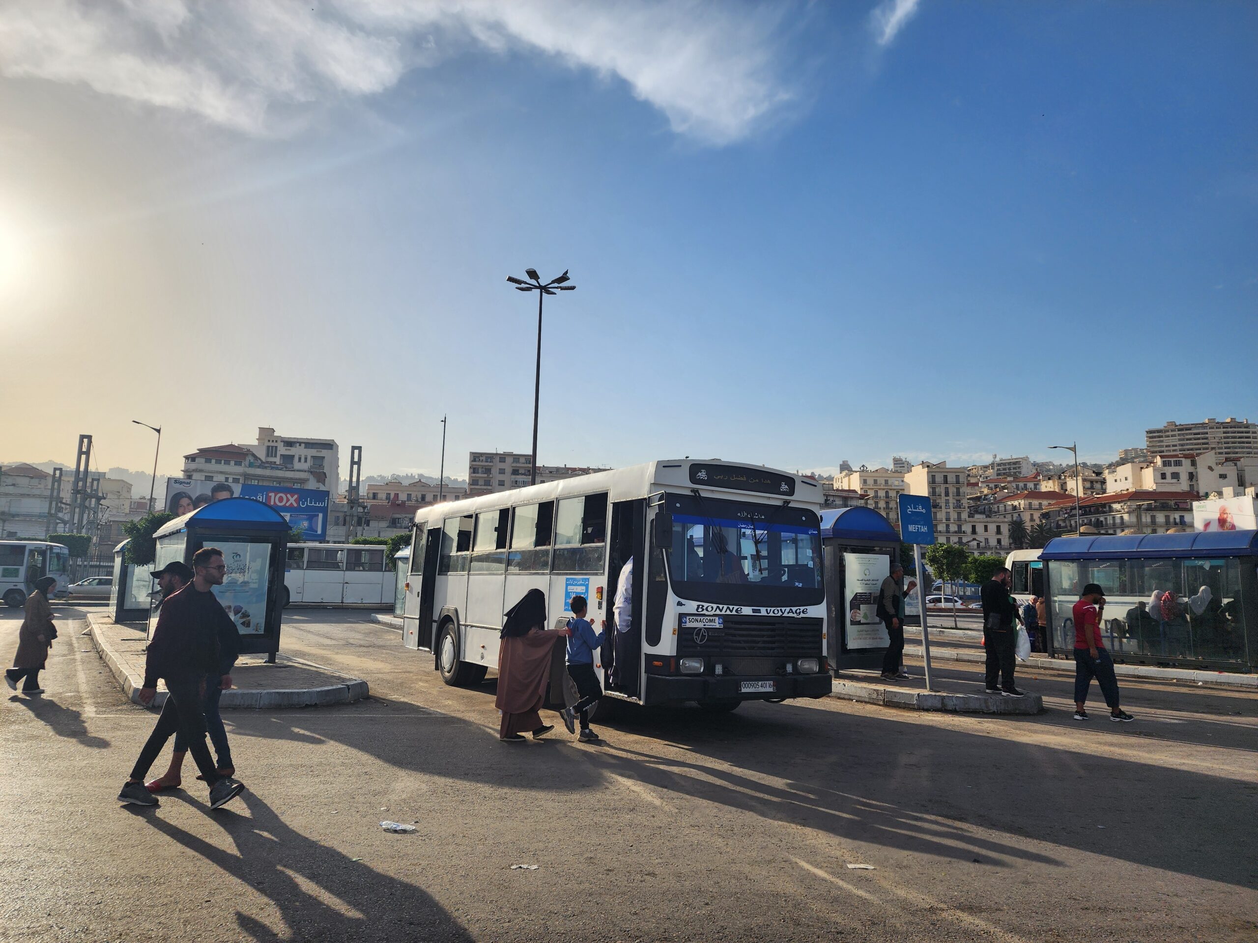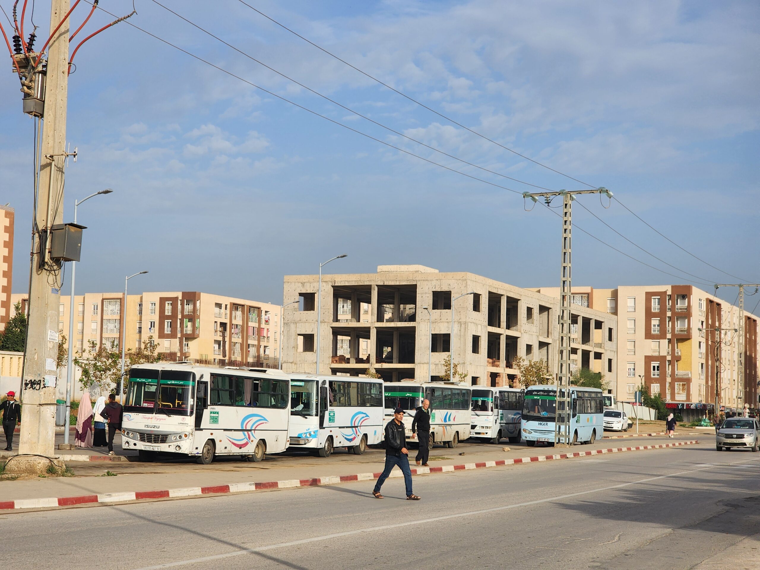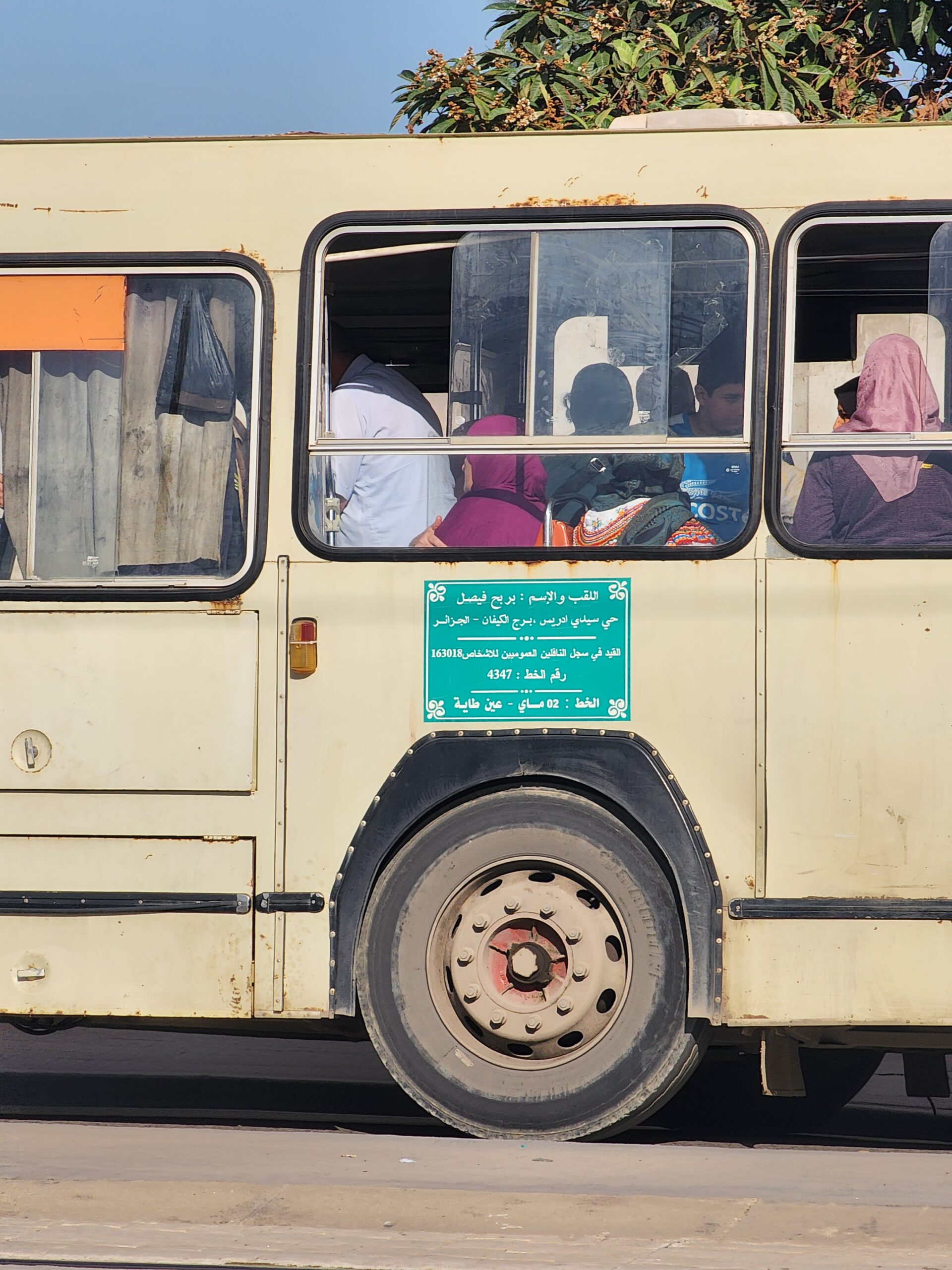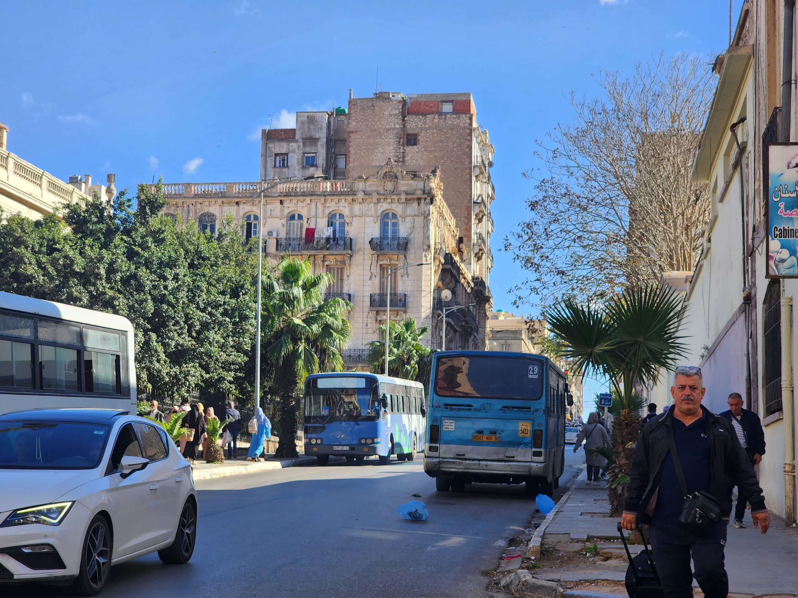 Ve venkovských oblastech a na periferiích Alžíru narazíte stále také na Peugeoty J9, které se vyráběly mezi lety 1991 – 2006. Licenčně je vyráběl také turecký Karsan. Např. v Turecku se s nimi již téměř nesetkáme v linkové dopravě (v roce 2025 jsme potkali pouze jeden v Yalově na lince) – např. Peugeoty J9 Premier v Alžírsku nejezdí a v Turecku jich jezdí spousty (vyráběné od roku 2006). Tato fotografie pochází z Reghaïy, ale potkány byly i v oblasti Sidi Bel Abbes a Oranu.