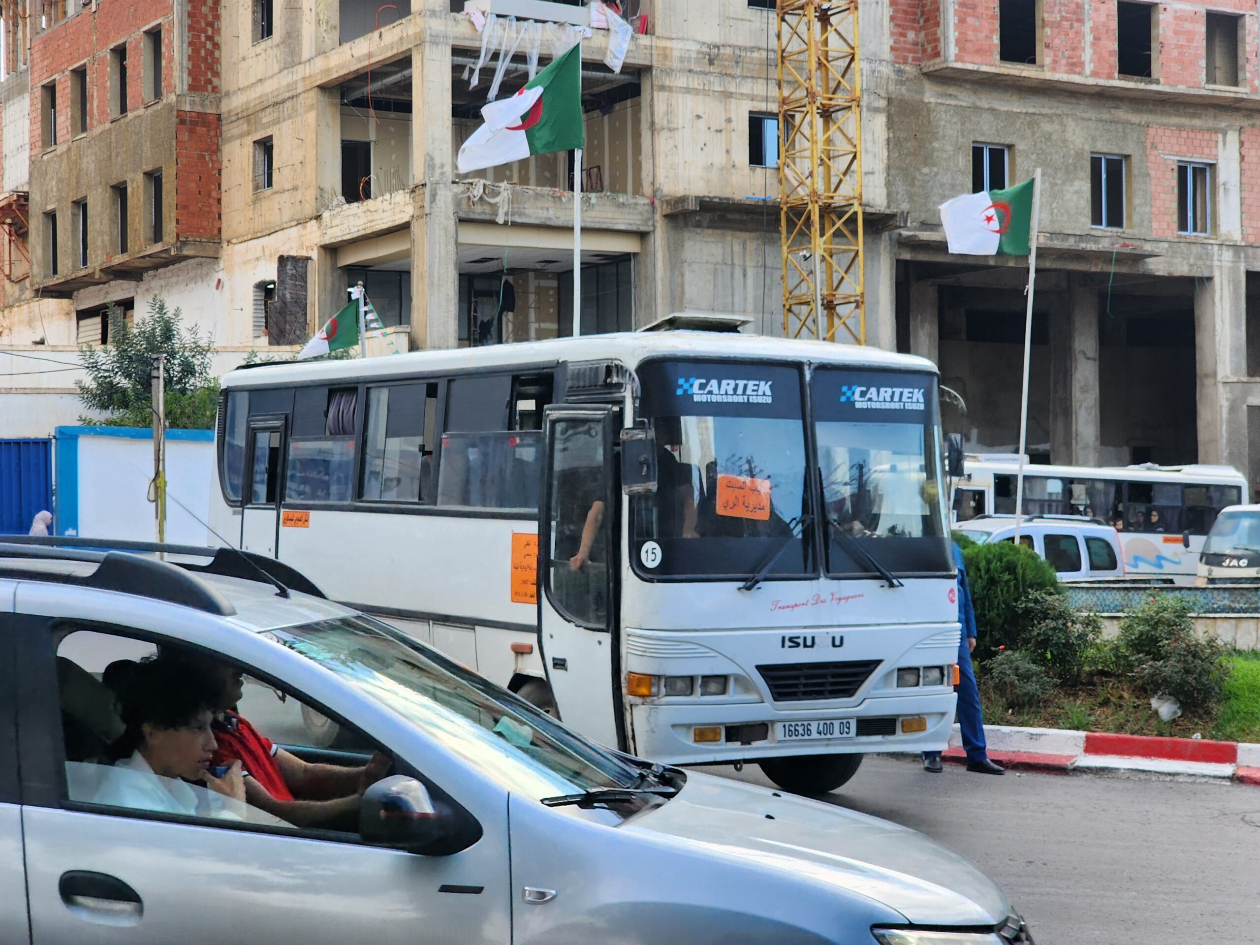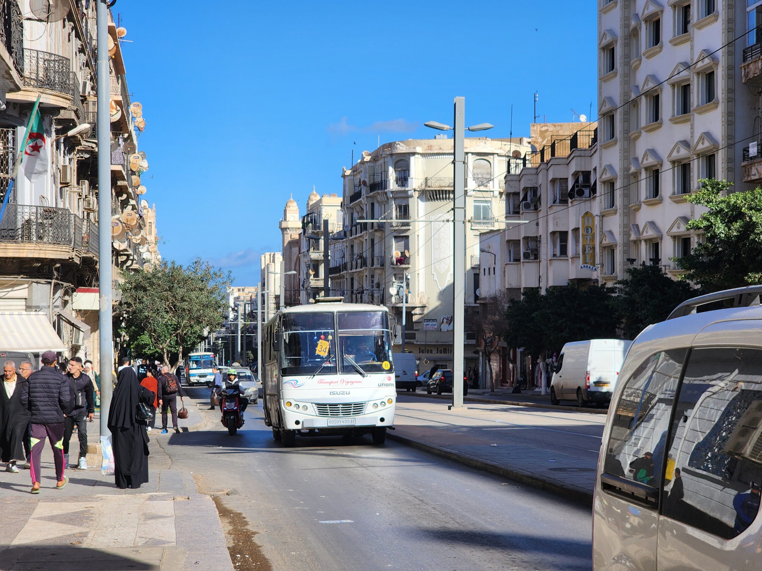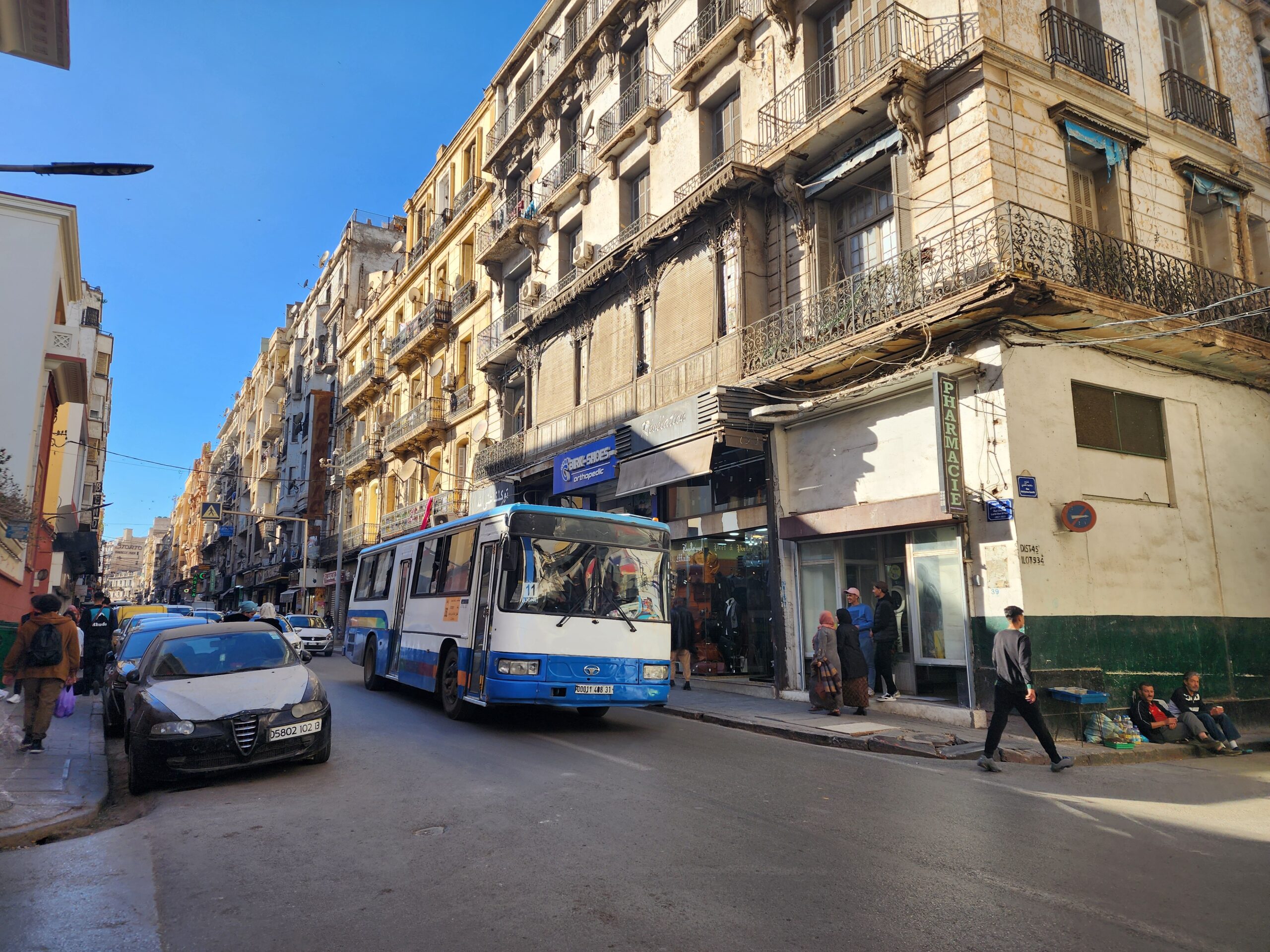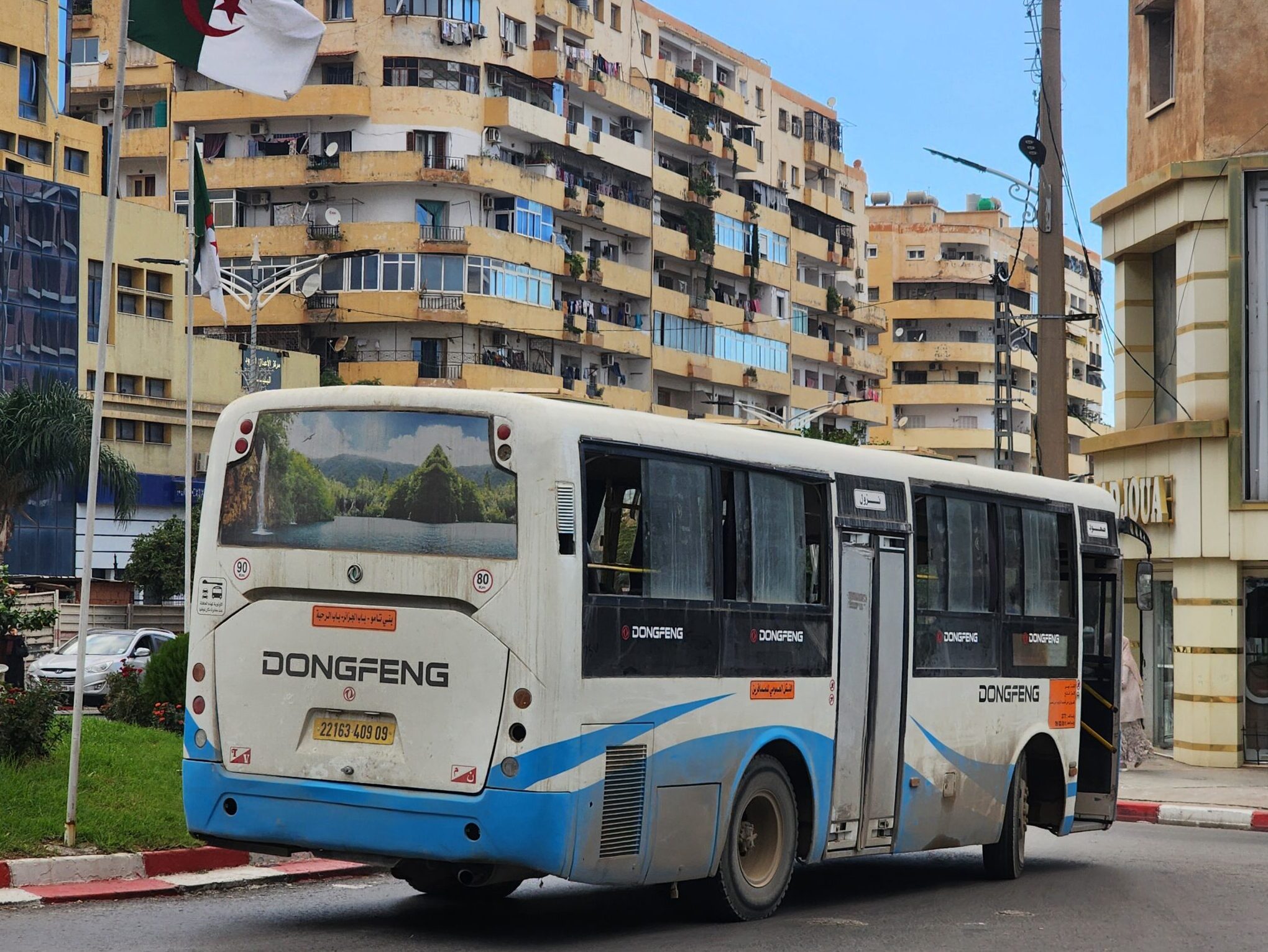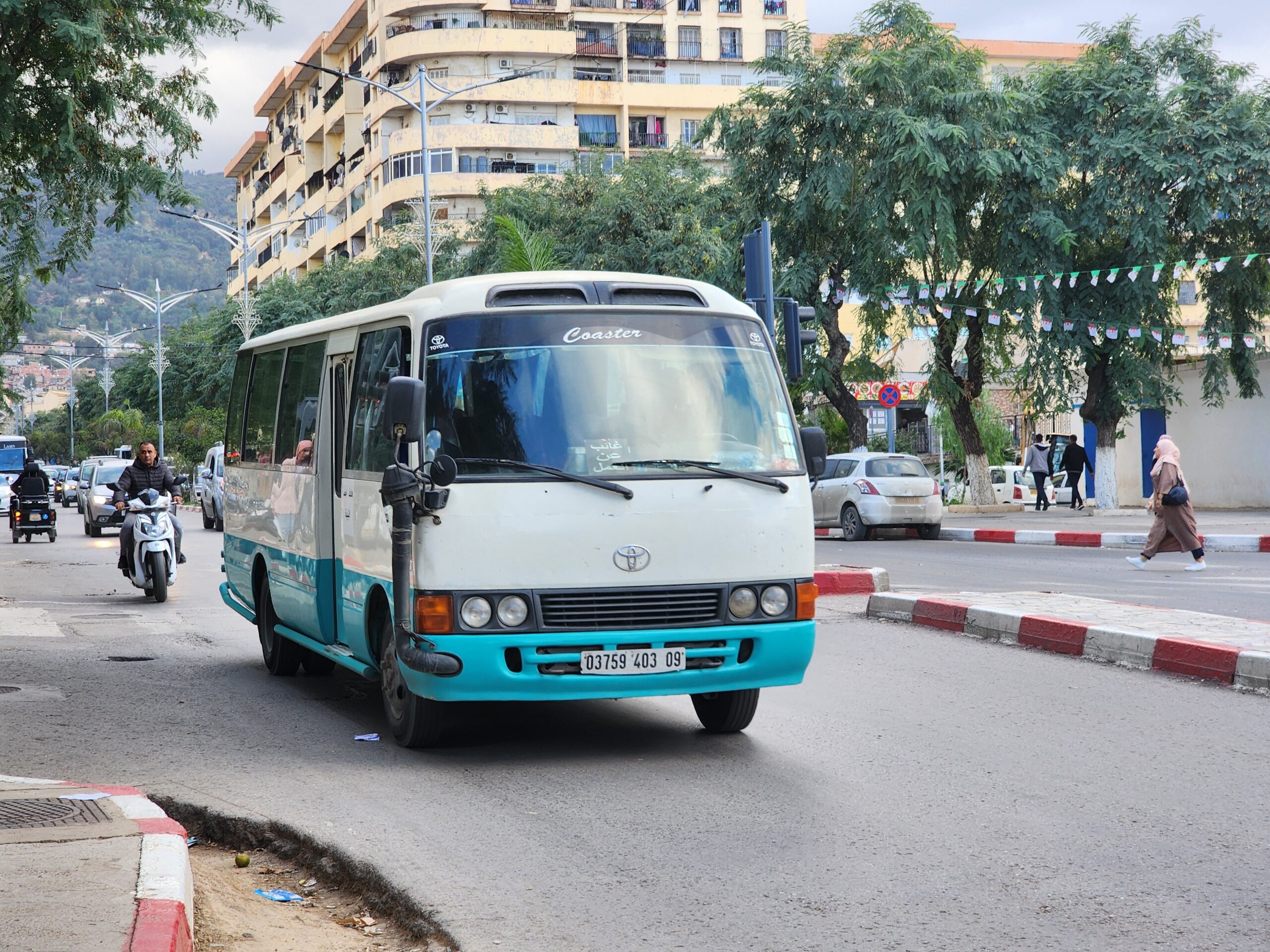 Ve venkovských oblastech a na periferiích Alžíru narazíte stále také na Peugeoty J9, které se vyráběly mezi lety 1991 – 2006. Licenčně je vyráběl také turecký Karsan. Např. v Turecku se s nimi již téměř nesetkáme v linkové dopravě (v roce 2025 jsme potkali pouze jeden v Yalově na lince) – např. Peugeoty J9 Premier v Alžírsku nejezdí a v Turecku jich jezdí spousty (vyráběné od roku 2006). Tato fotografie pochází z Reghaïy, ale potkány byly i v oblasti Sidi Bel Abbes a Oranu.