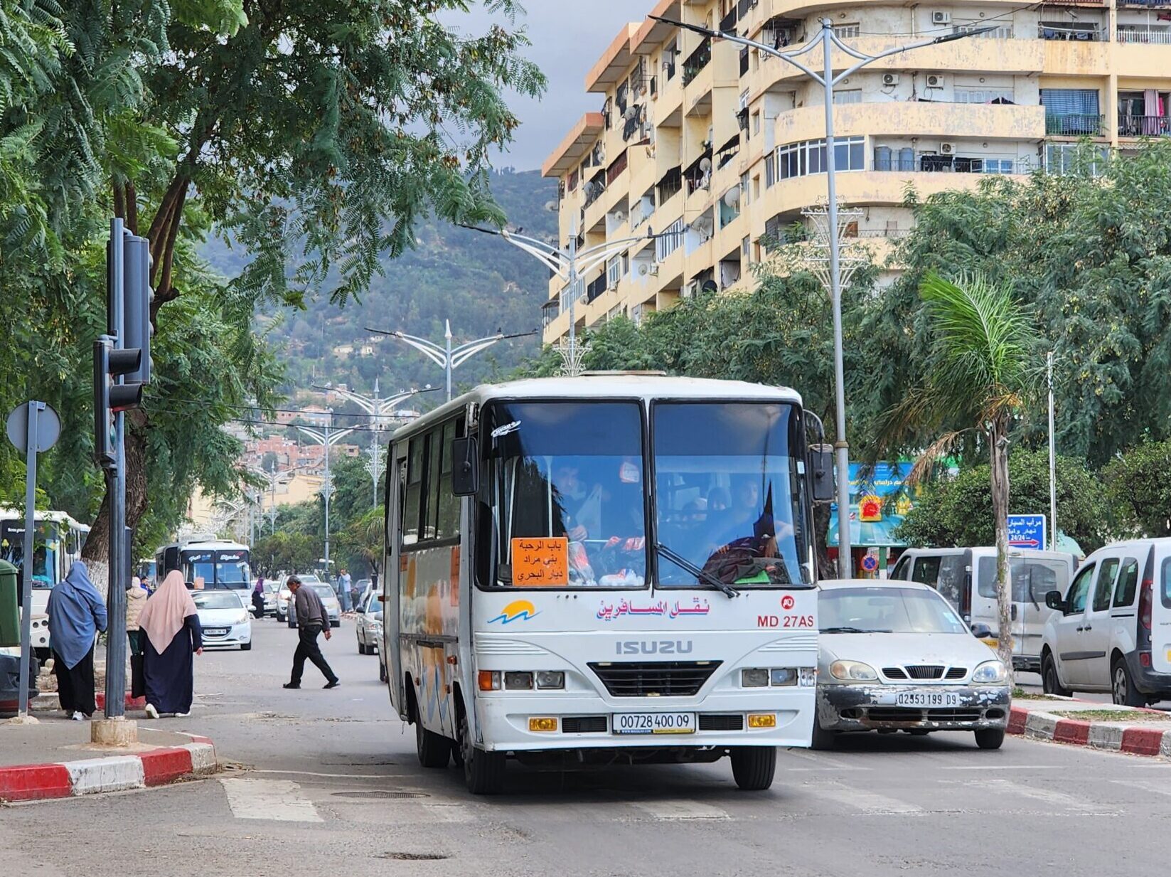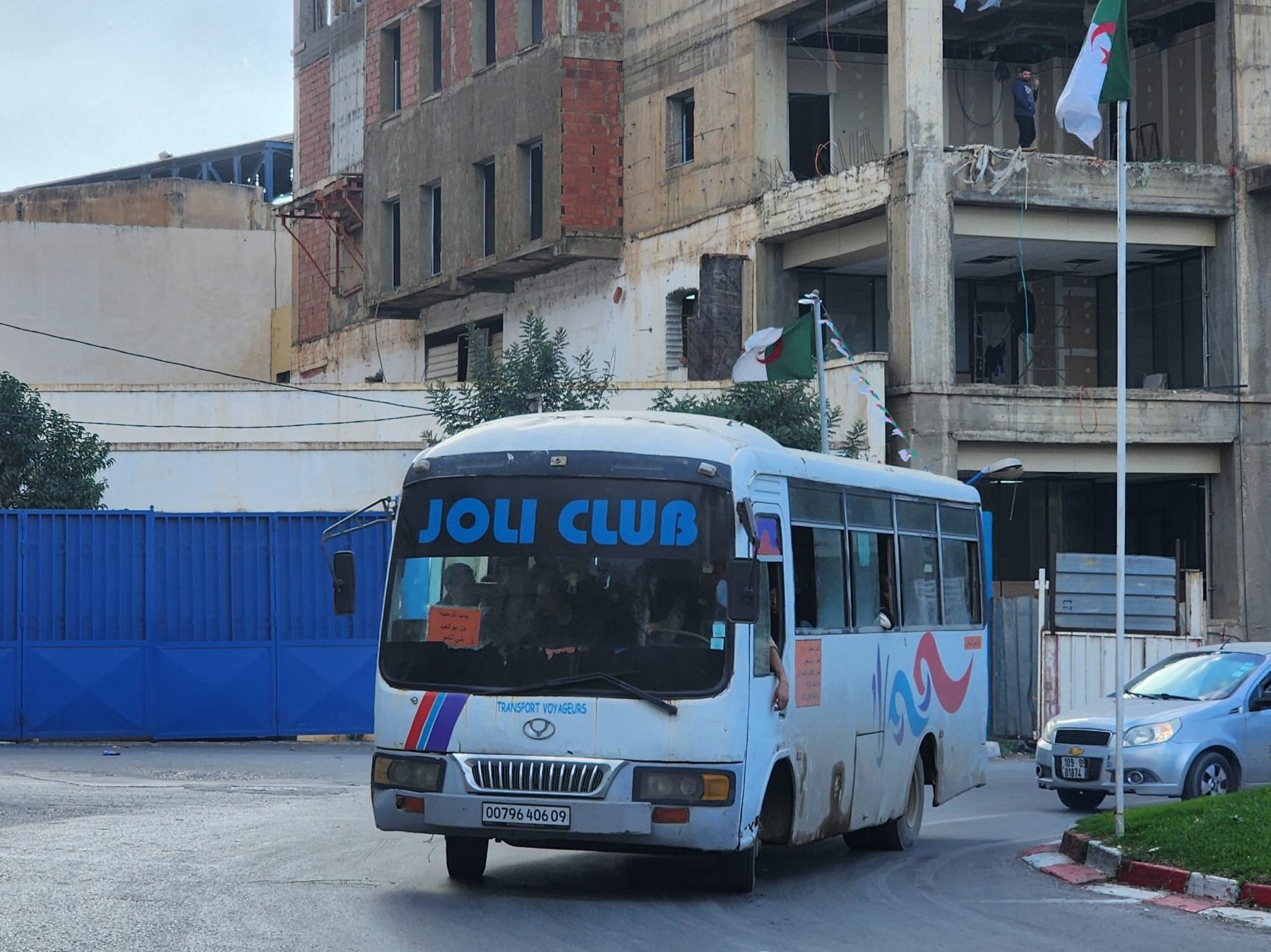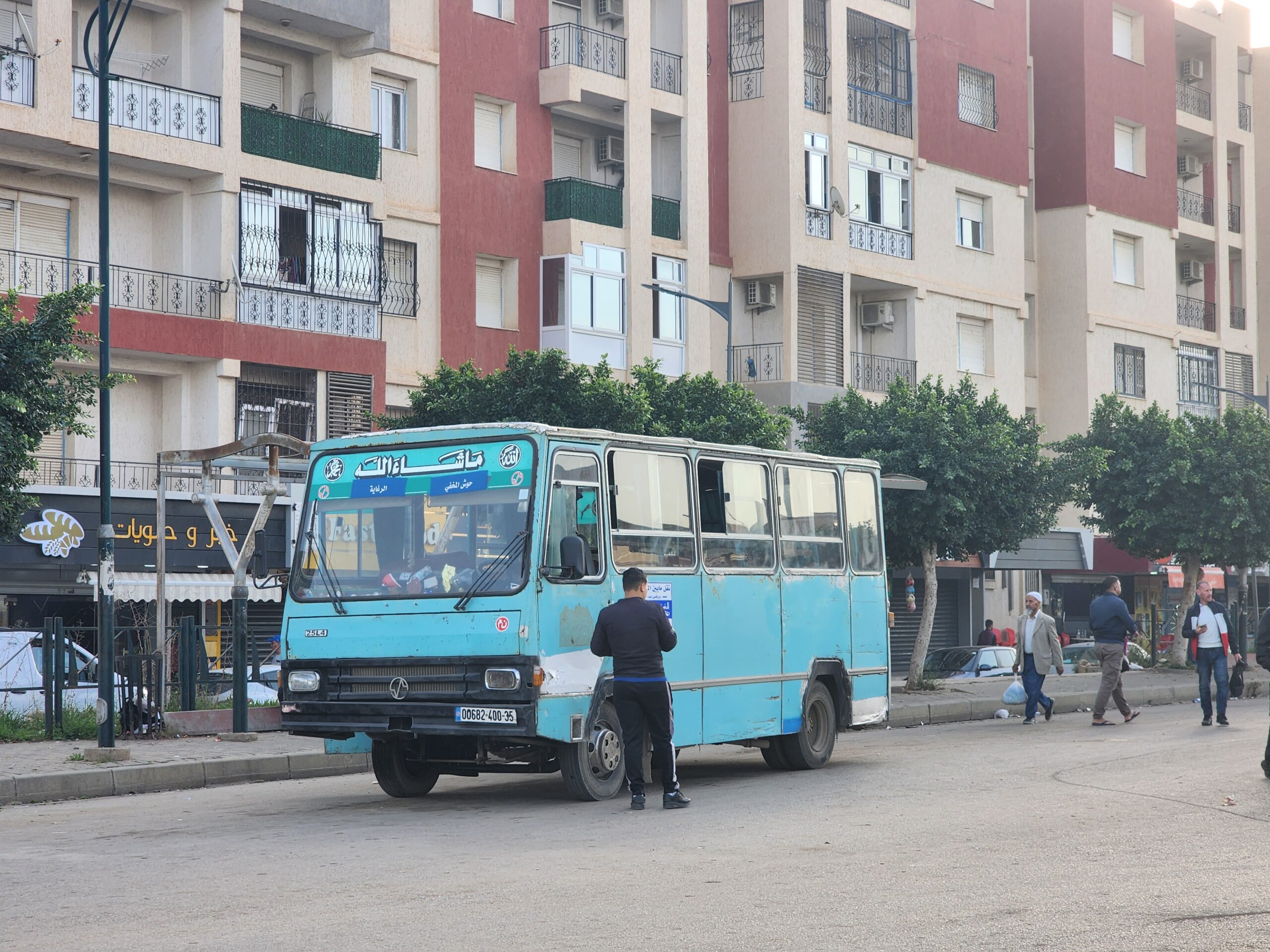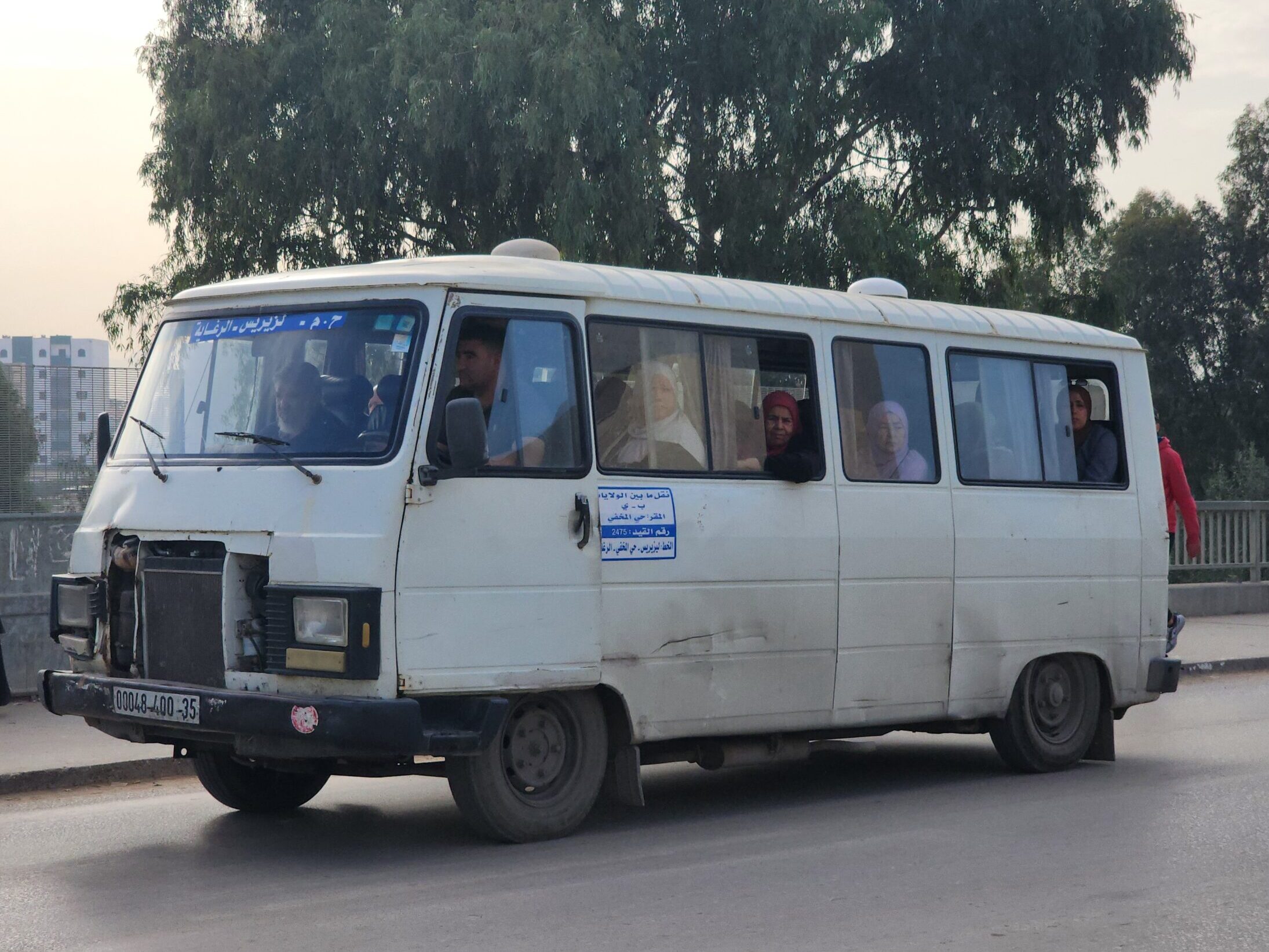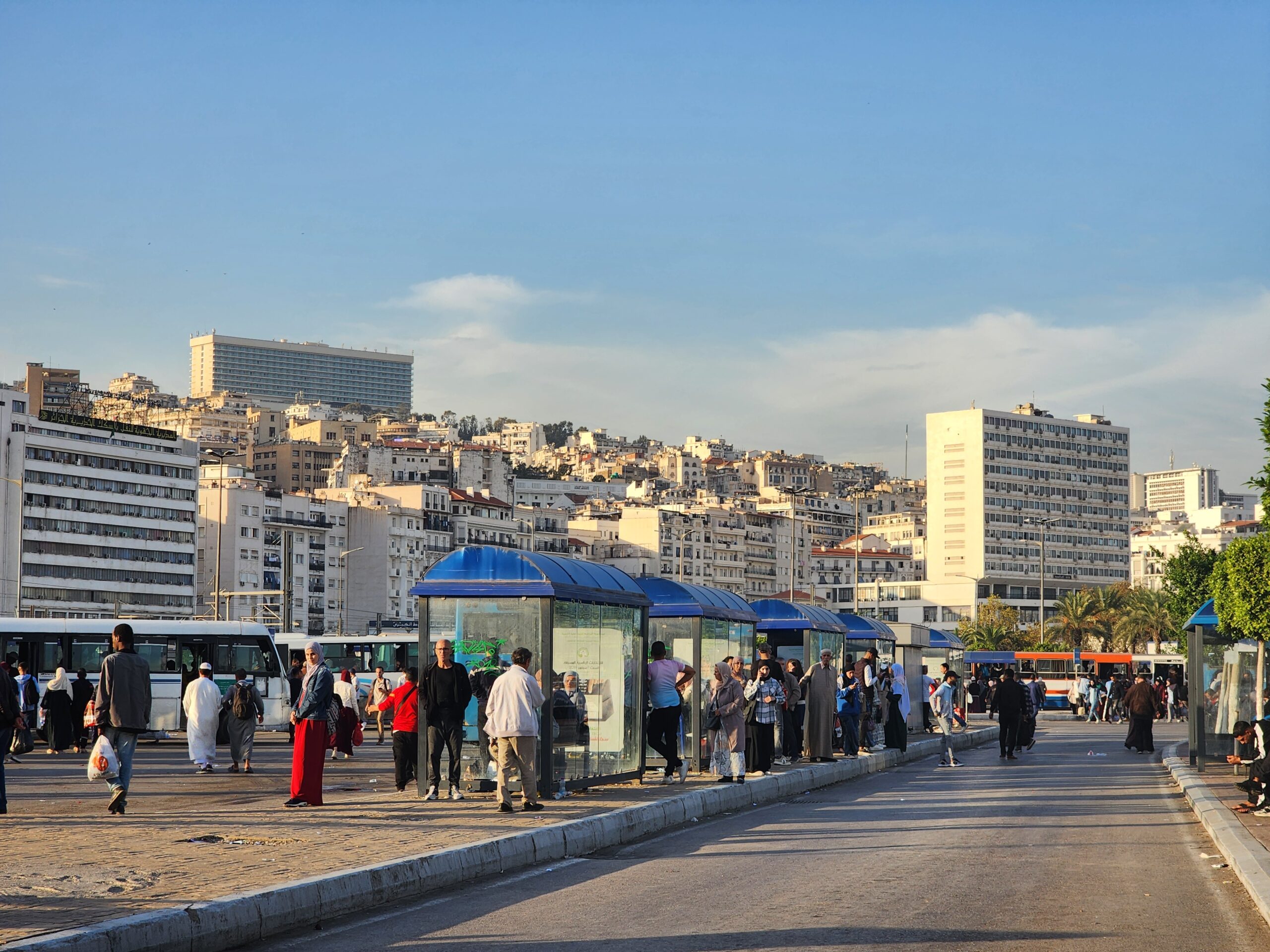 Ve venkovských oblastech a na periferiích Alžíru narazíte stále také na Peugeoty J9, které se vyráběly mezi lety 1991 – 2006. Licenčně je vyráběl také turecký Karsan. Např. v Turecku se s nimi již téměř nesetkáme v linkové dopravě (v roce 2025 jsme potkali pouze jeden v Yalově na lince) – např. Peugeoty J9 Premier v Alžírsku nejezdí a v Turecku jich jezdí spousty (vyráběné od roku 2006). Tato fotografie pochází z Reghaïy, ale potkány byly i v oblasti Sidi Bel Abbes a Oranu.