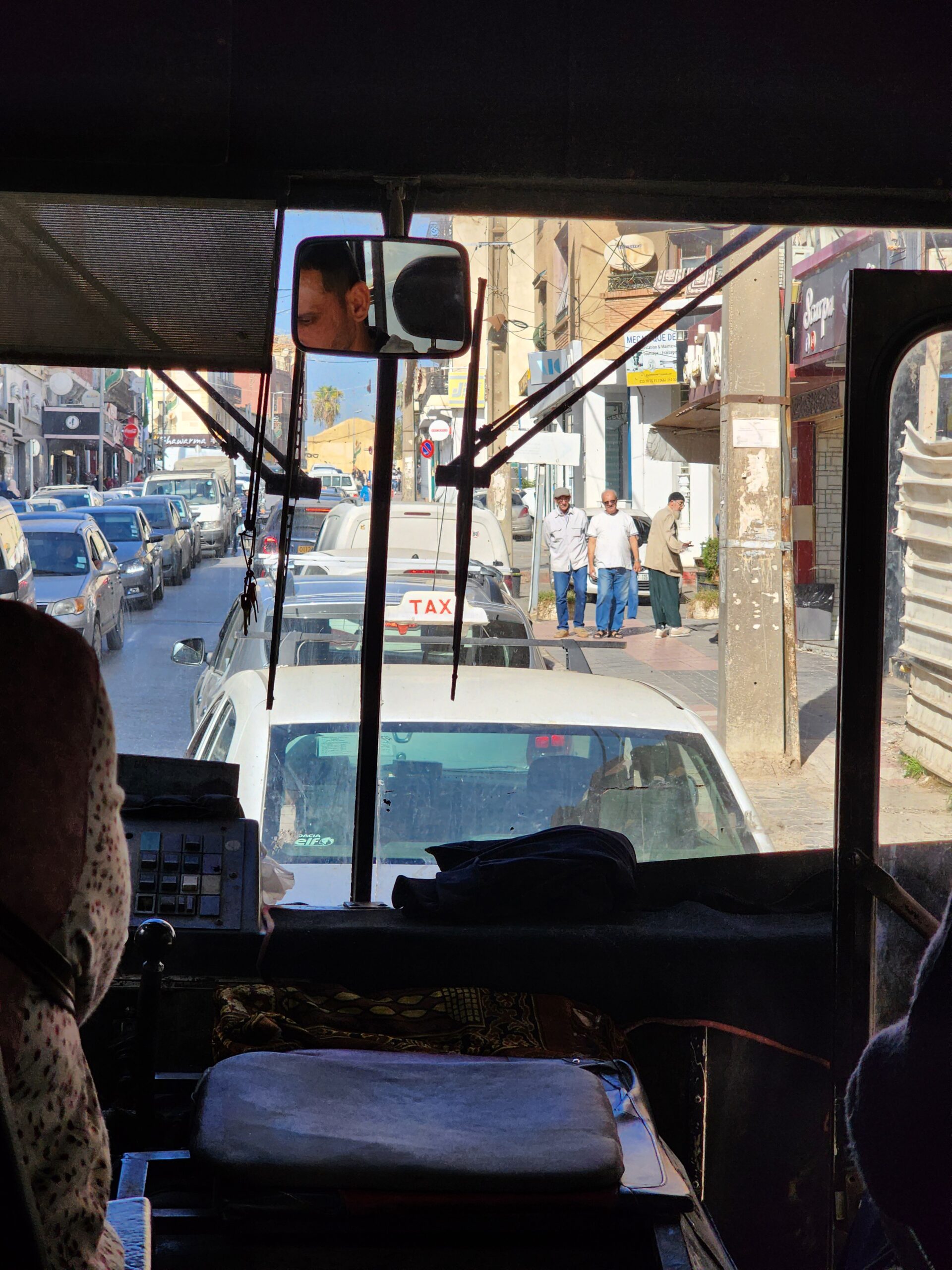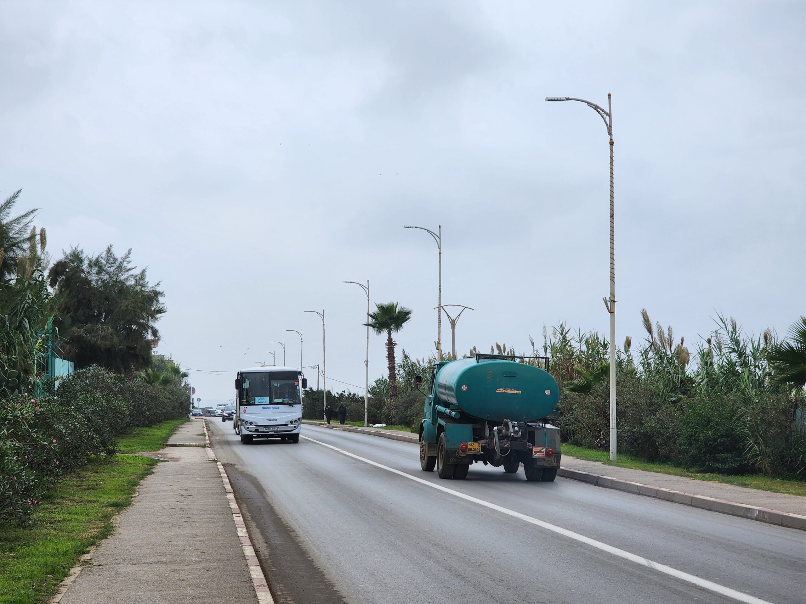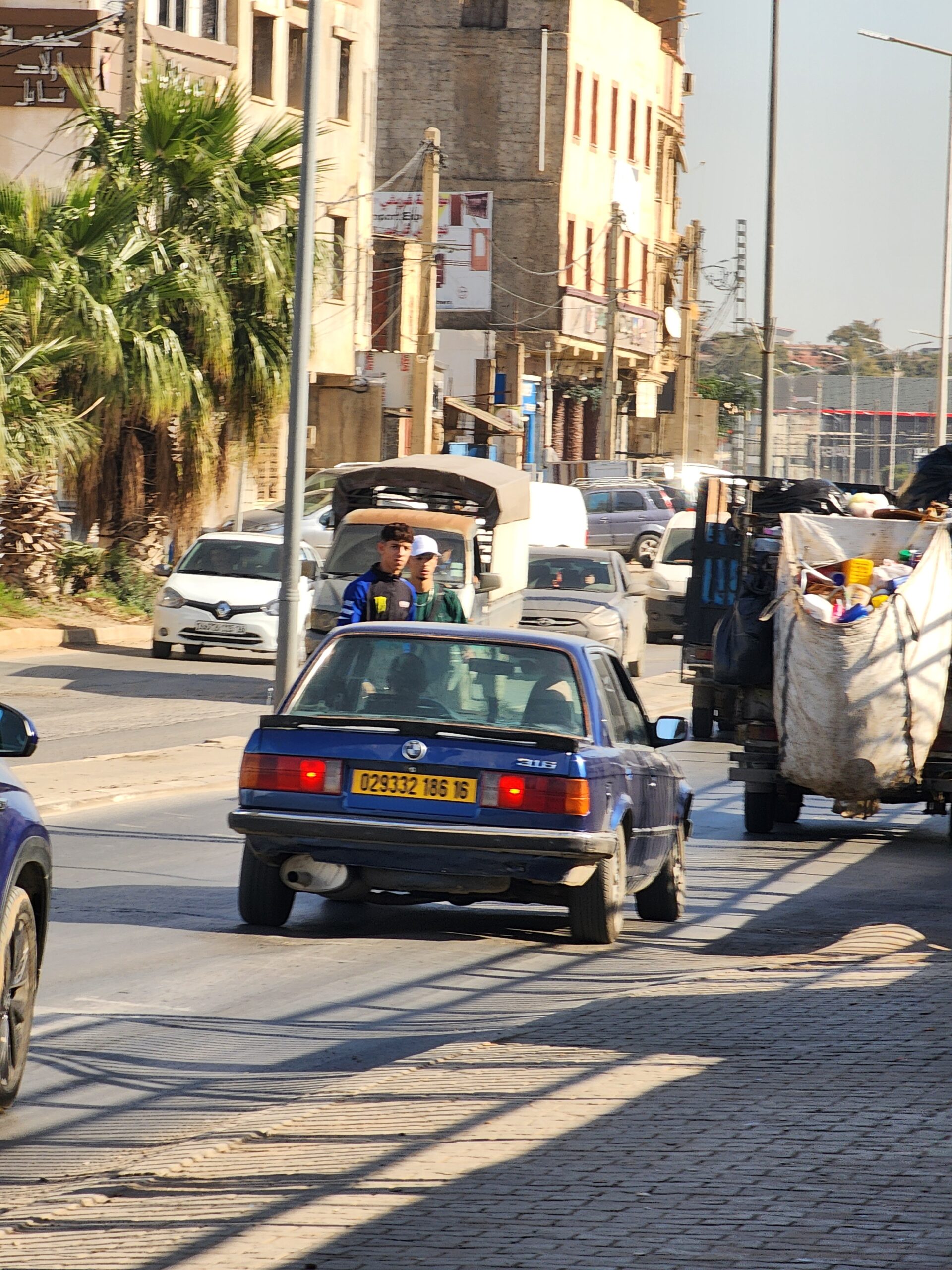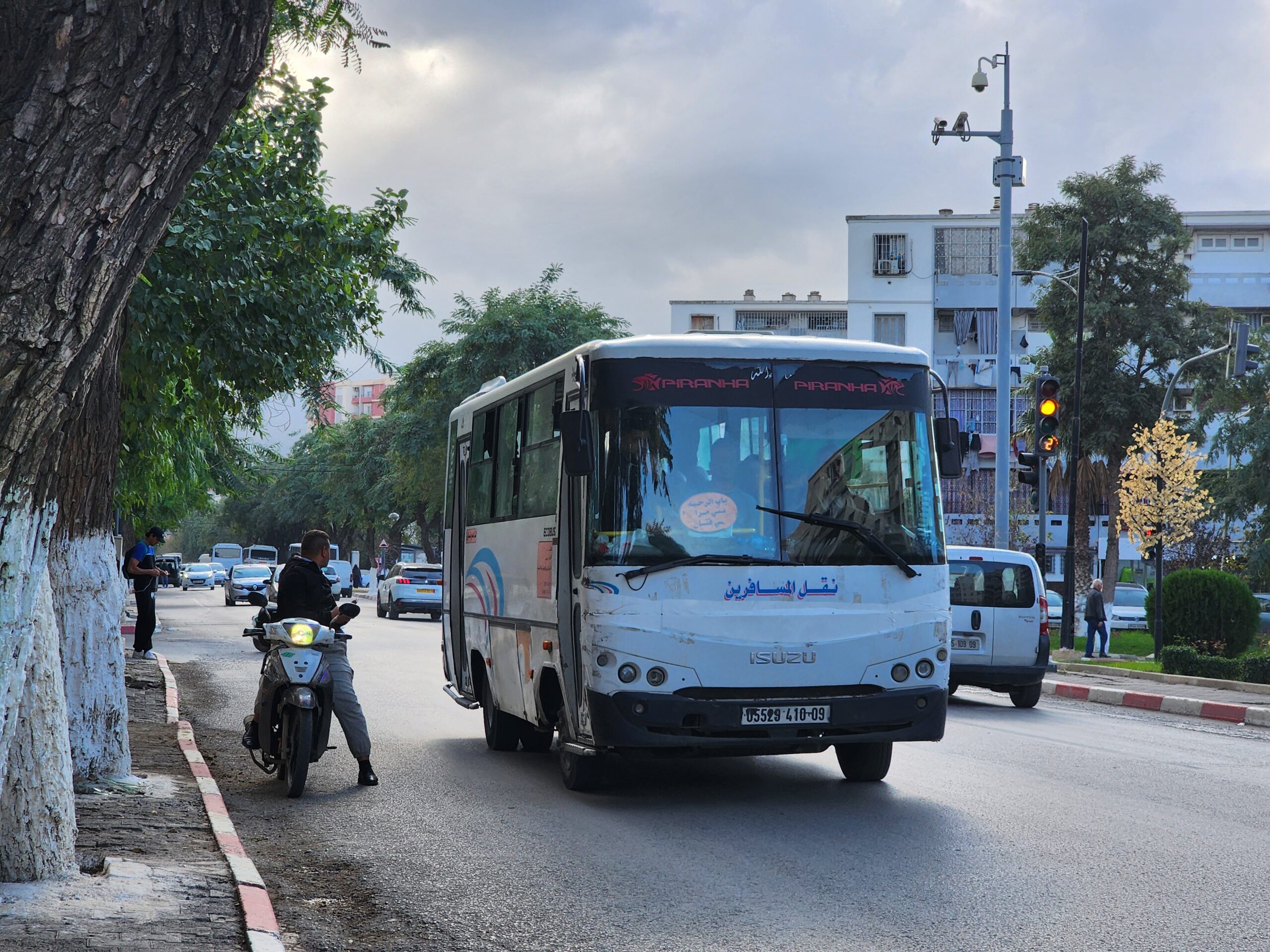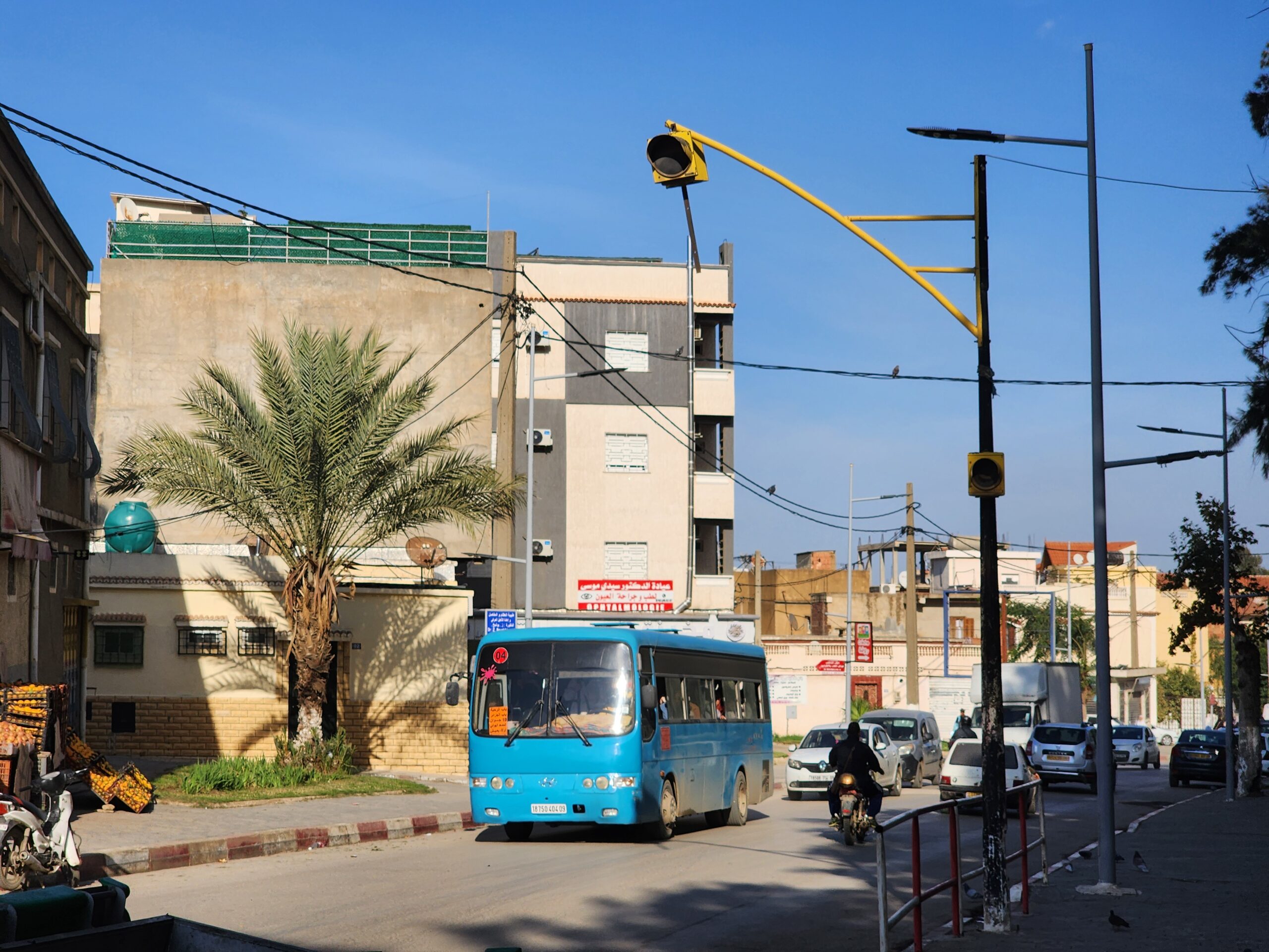Ve venkovských oblastech a na periferiích Alžíru narazíte stále také na Peugeoty J9, které se vyráběly mezi lety 1991 – 2006. Licenčně je vyráběl také turecký Karsan. Např. v Turecku se s nimi již téměř nesetkáme v linkové dopravě (v roce 2025 jsme potkali pouze jeden v Yalově na lince) – např. Peugeoty J9 Premier v Alžírsku nejezdí a v Turecku jich jezdí spousty (vyráběné od roku 2006). Tato fotografie pochází z Reghaïy, ale potkány byly i v oblasti Sidi Bel Abbes a Oranu.