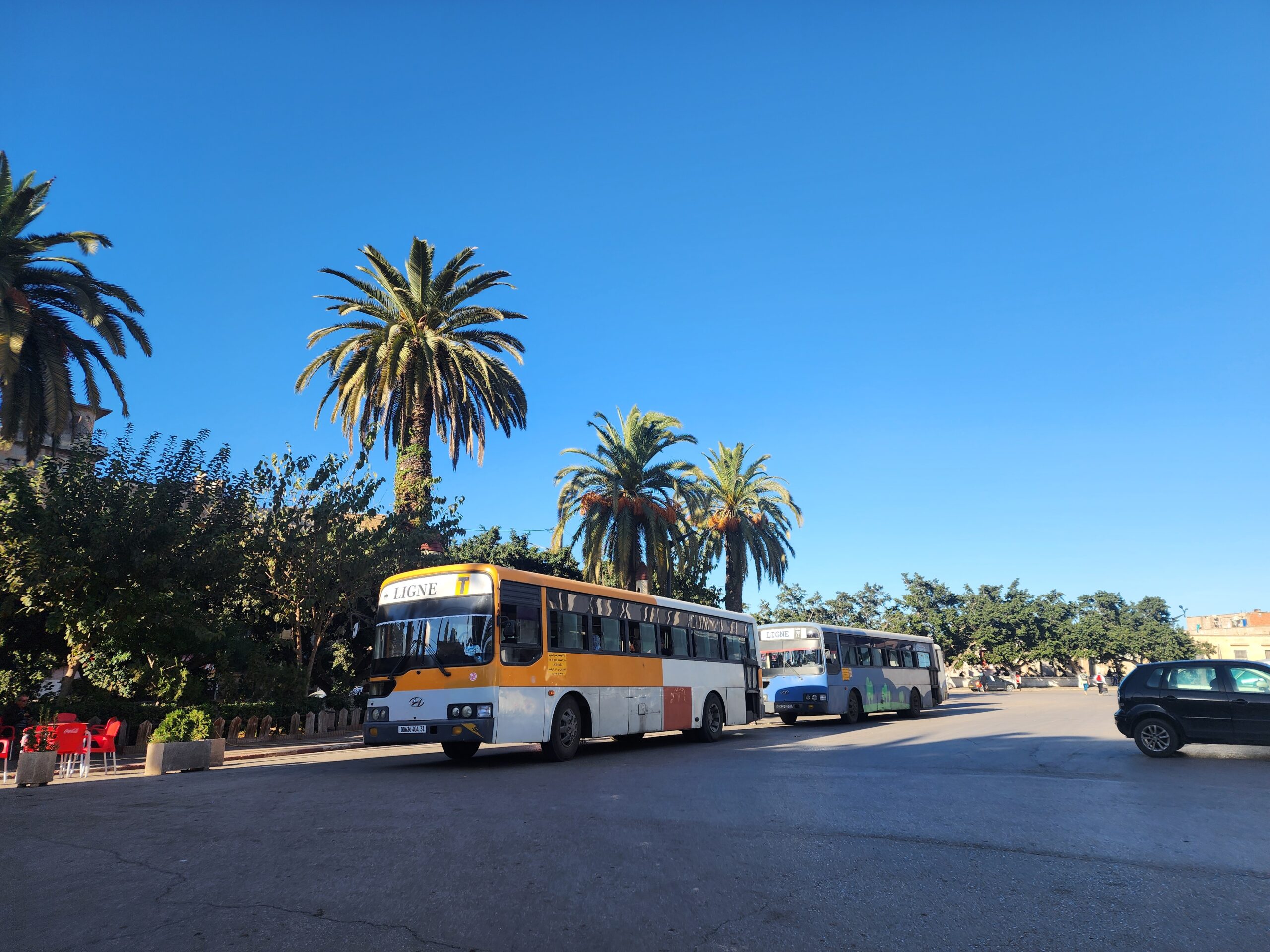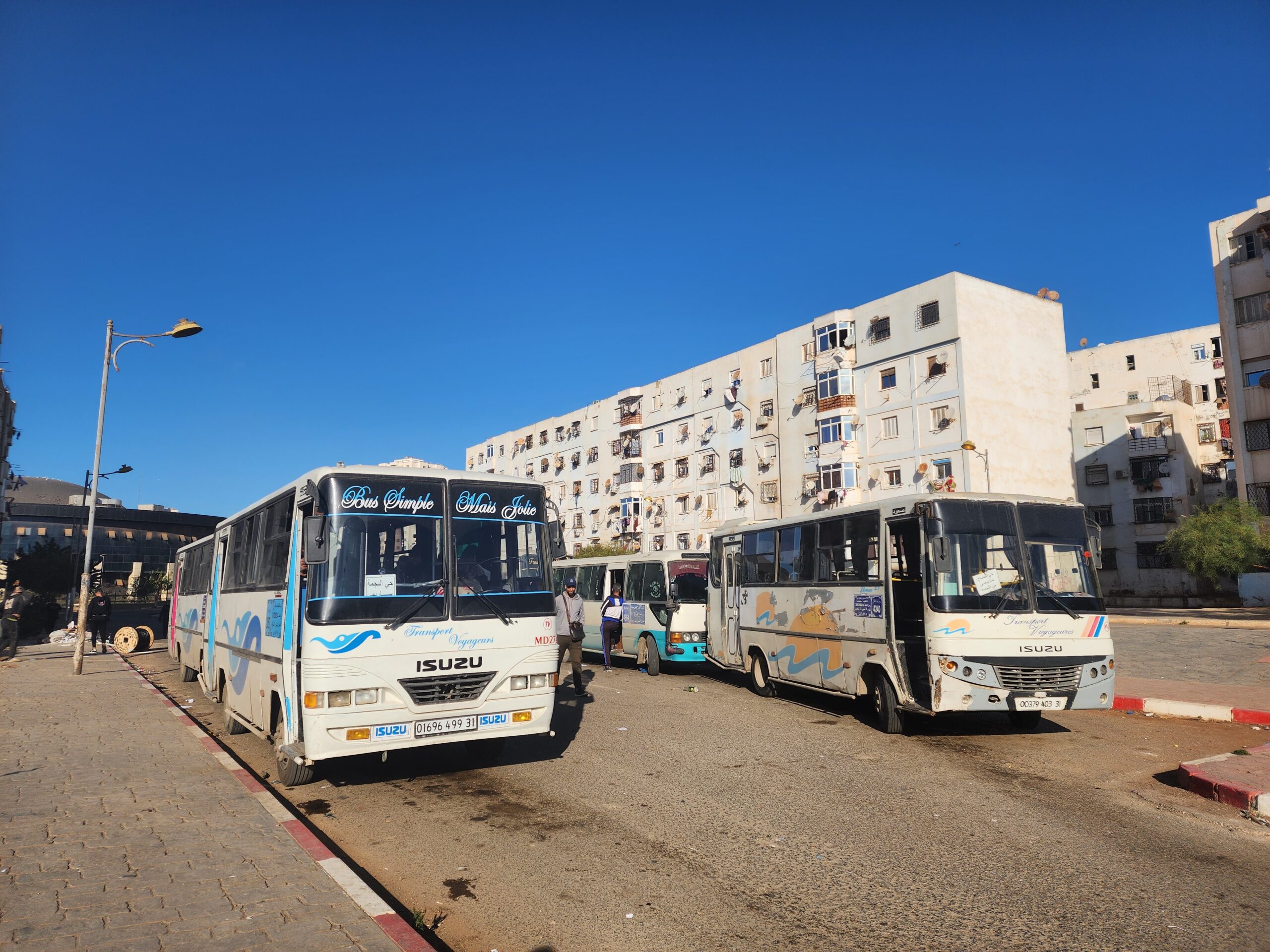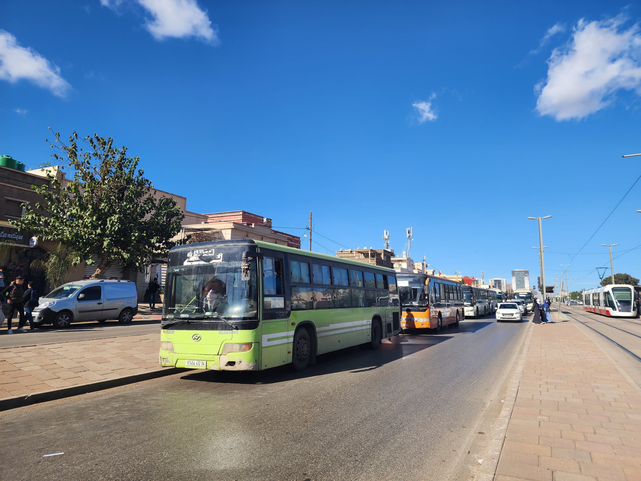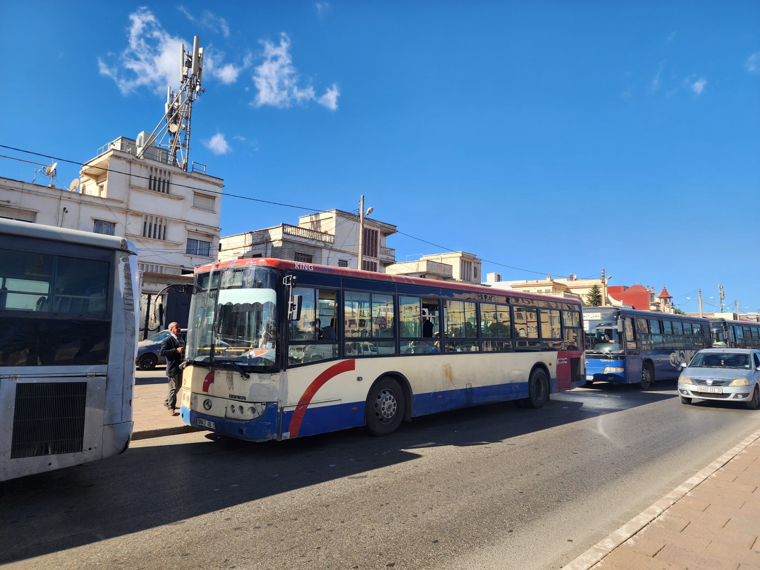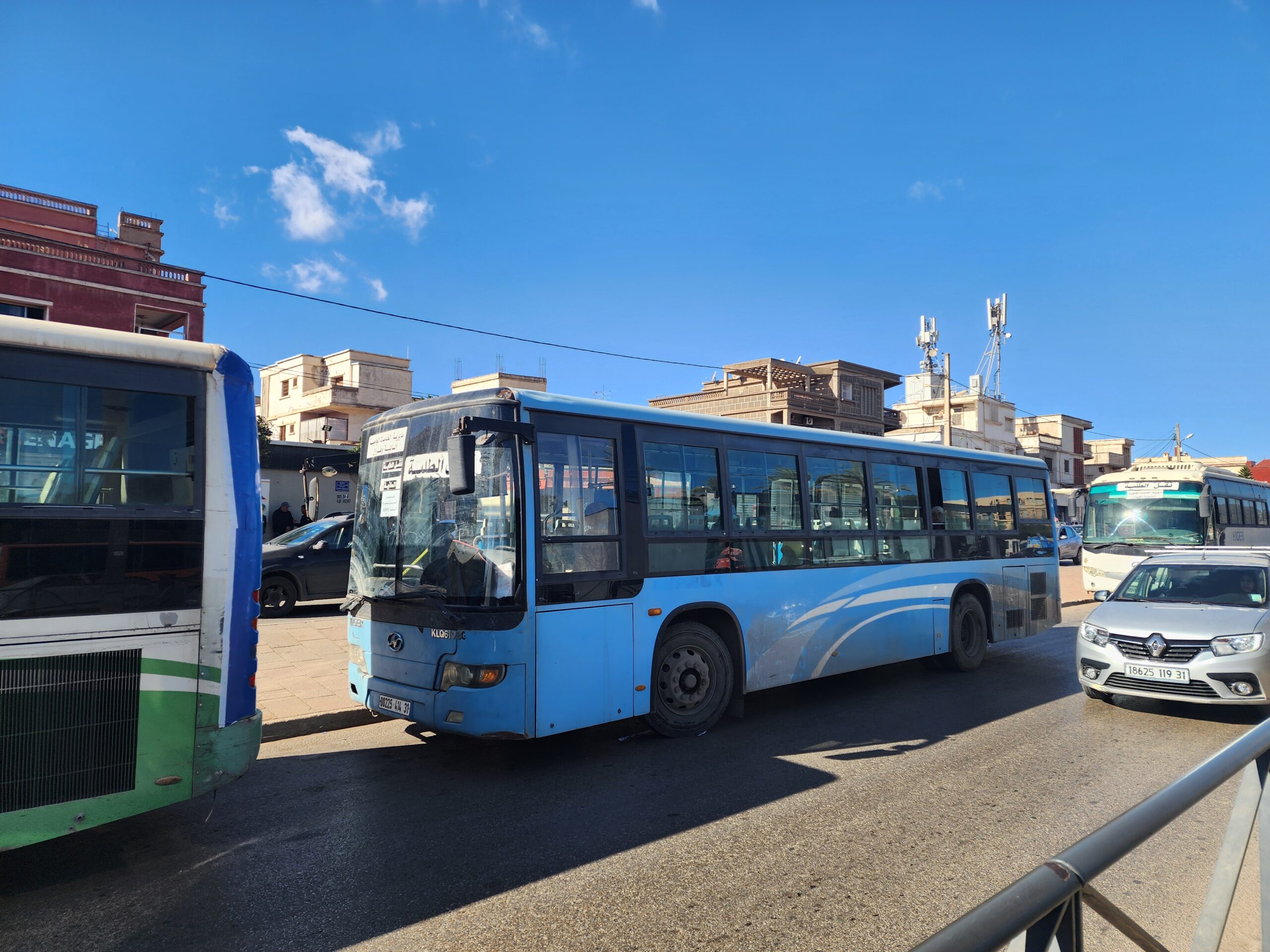 Výhoda vlaku, byť jezdí málo, je jednak v rychlosti, tak také možnosti se do Oranu dostat už na 7. h ráno nebo naopak možnost se dostat z Oranu i večer. Po 18. hodině již autobusy nejezdí, možná i dříve. Potkáte tu tyto čínské King Longy XMQ6123G z let 2012 – 2017. Stejné autobusy jezdí ve velkém v Oranu také na univerzitní dopravě.