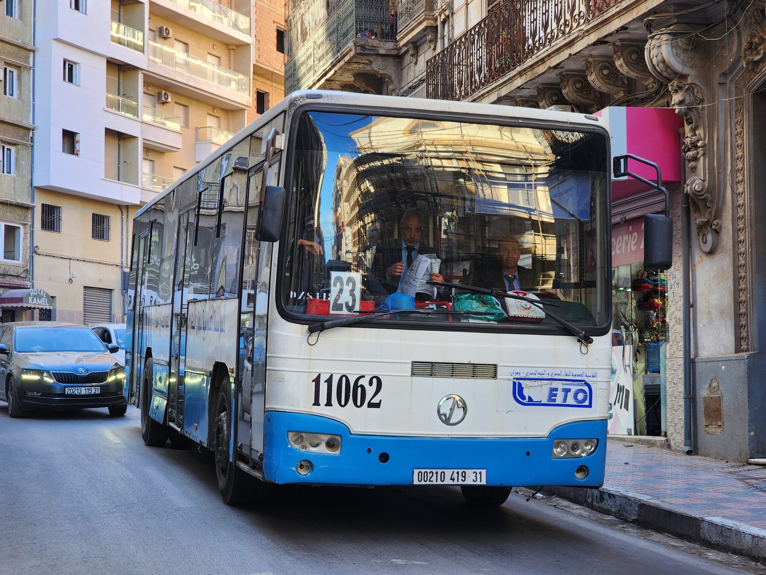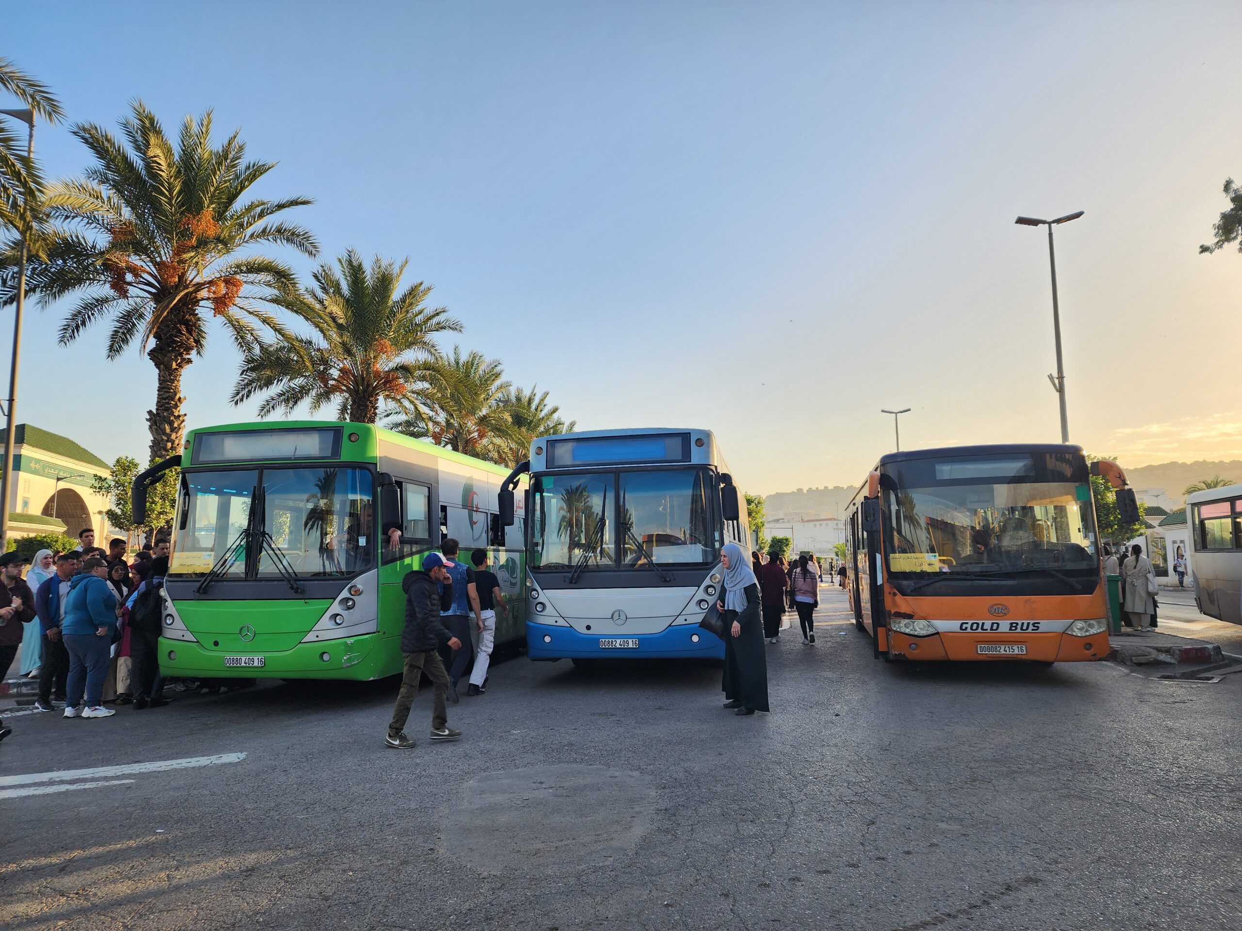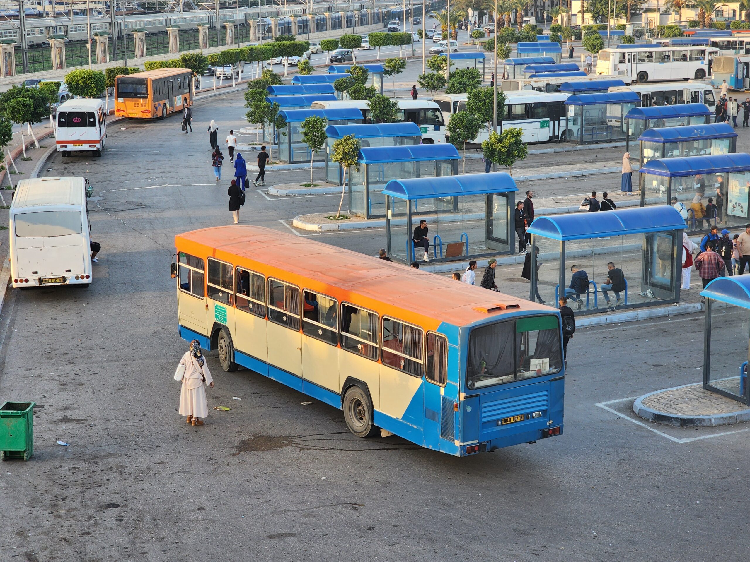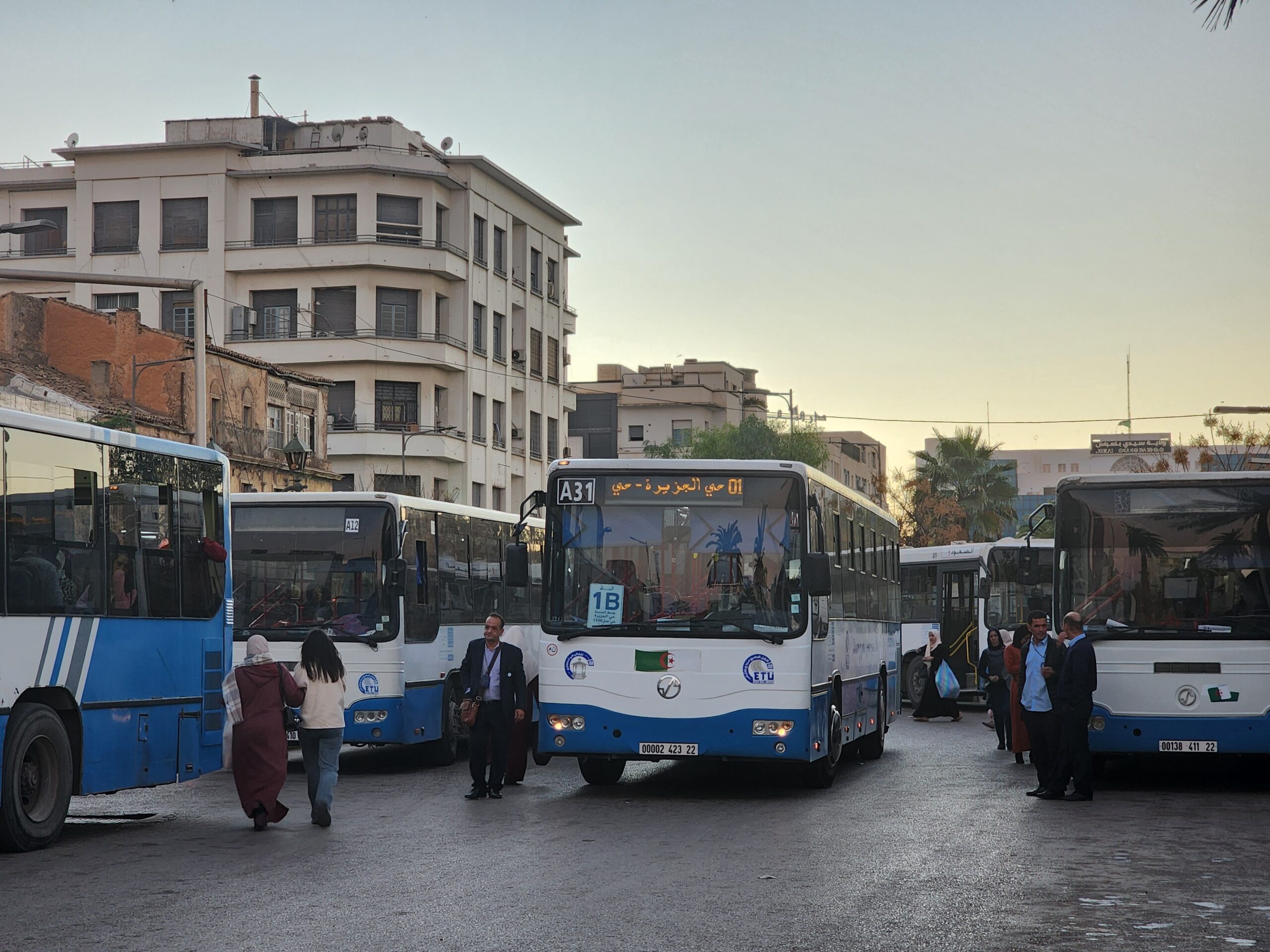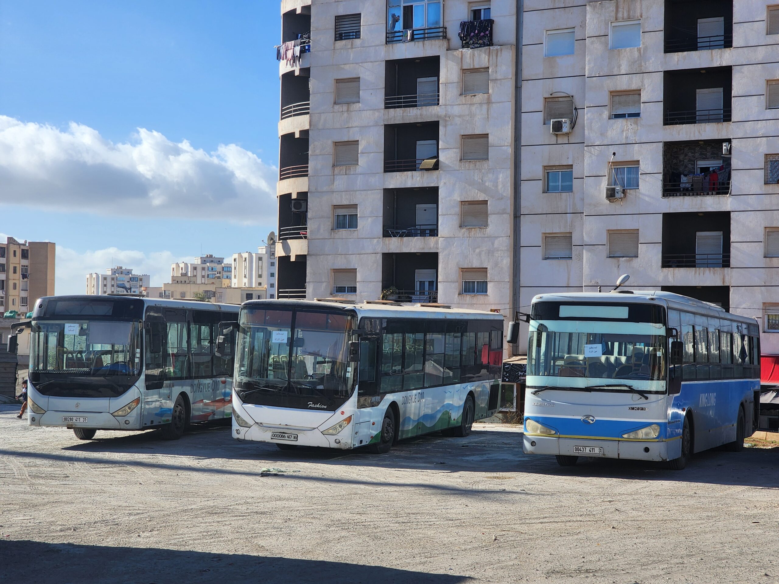 Výhoda vlaku, byť jezdí málo, je jednak v rychlosti, tak také možnosti se do Oranu dostat už na 7. h ráno nebo naopak možnost se dostat z Oranu i večer. Po 18. hodině již autobusy nejezdí, možná i dříve. Potkáte tu tyto čínské King Longy XMQ6123G z let 2012 – 2017. Stejné autobusy jezdí ve velkém v Oranu také na univerzitní dopravě.