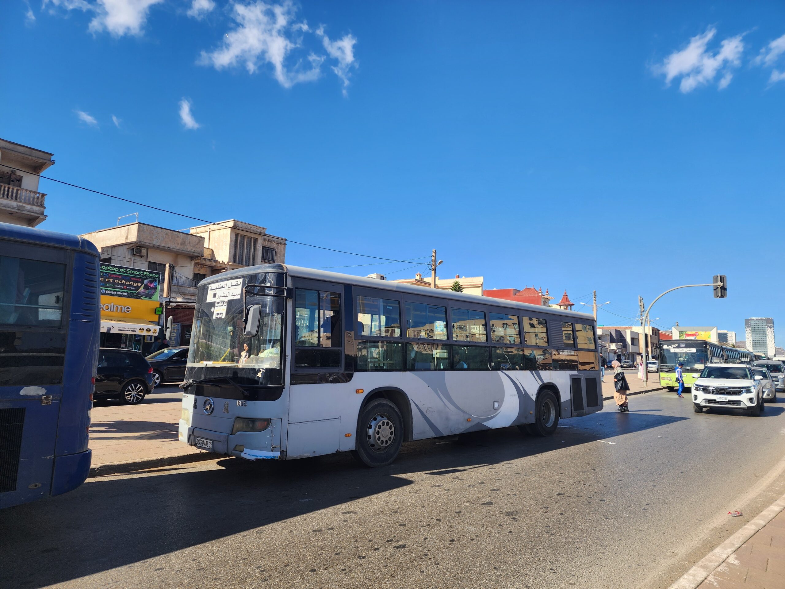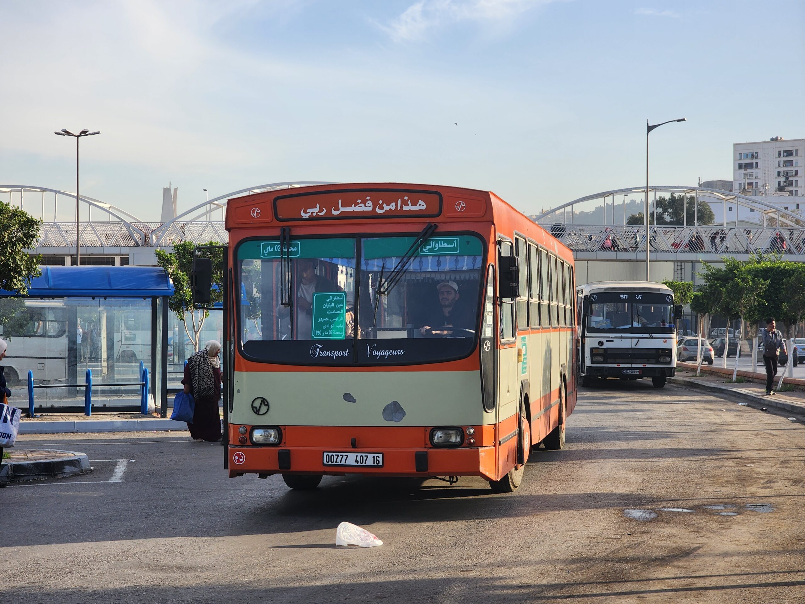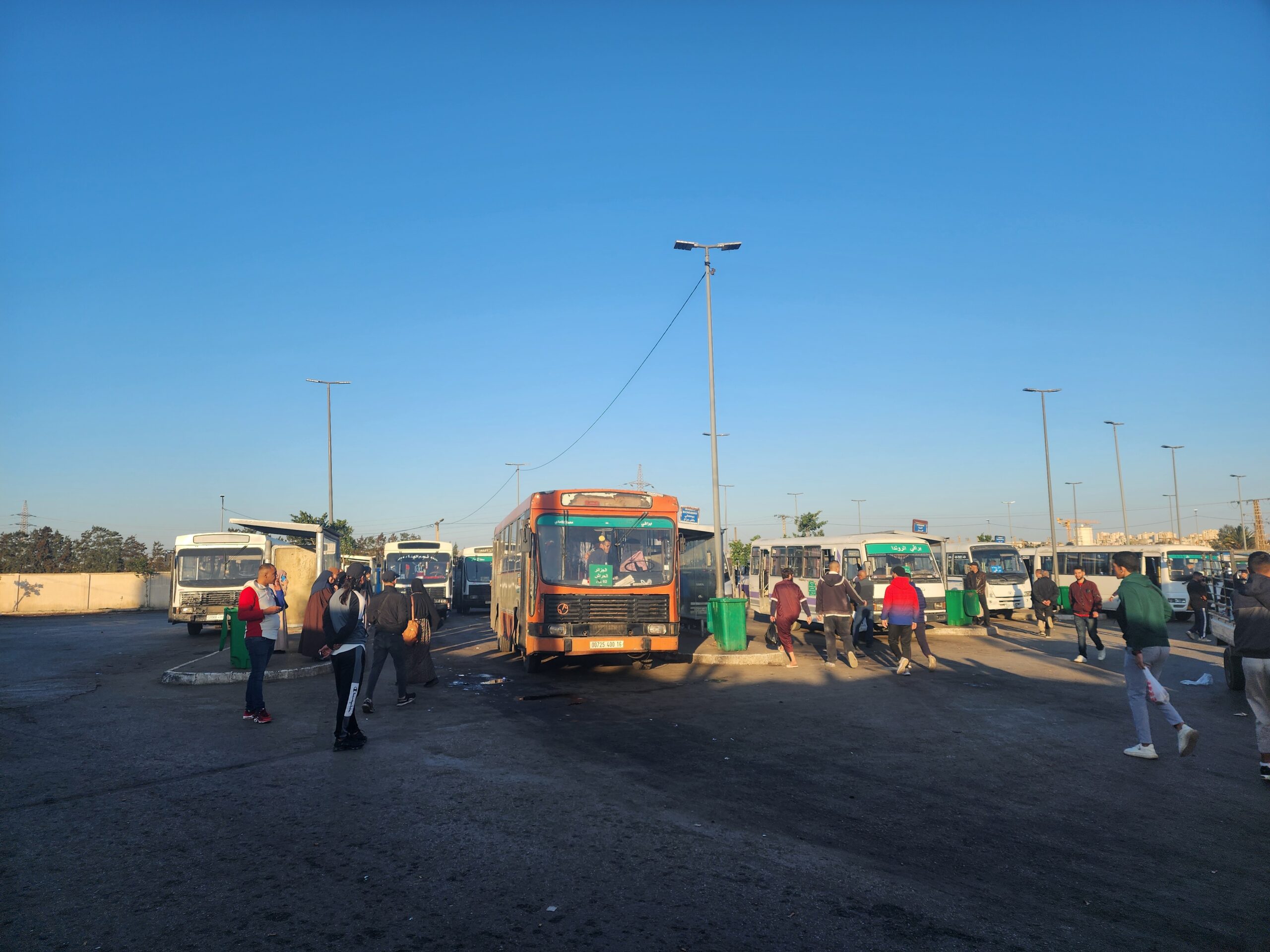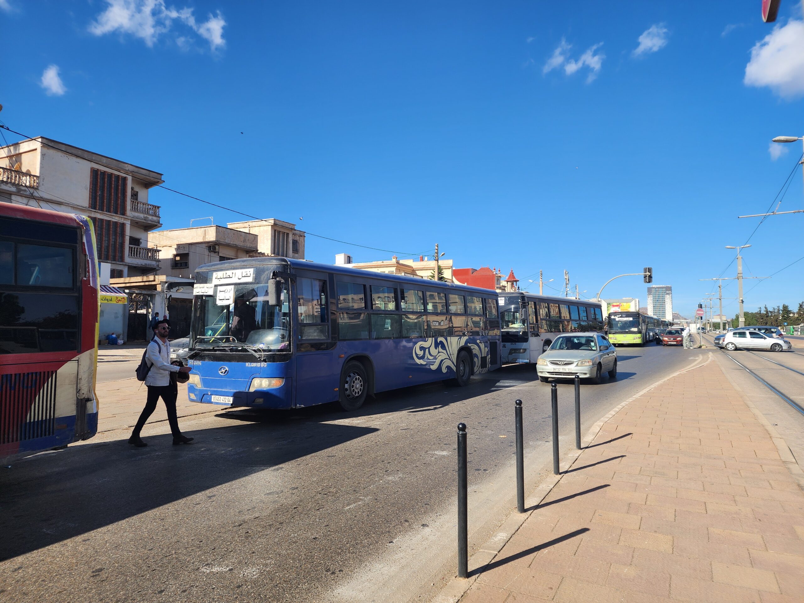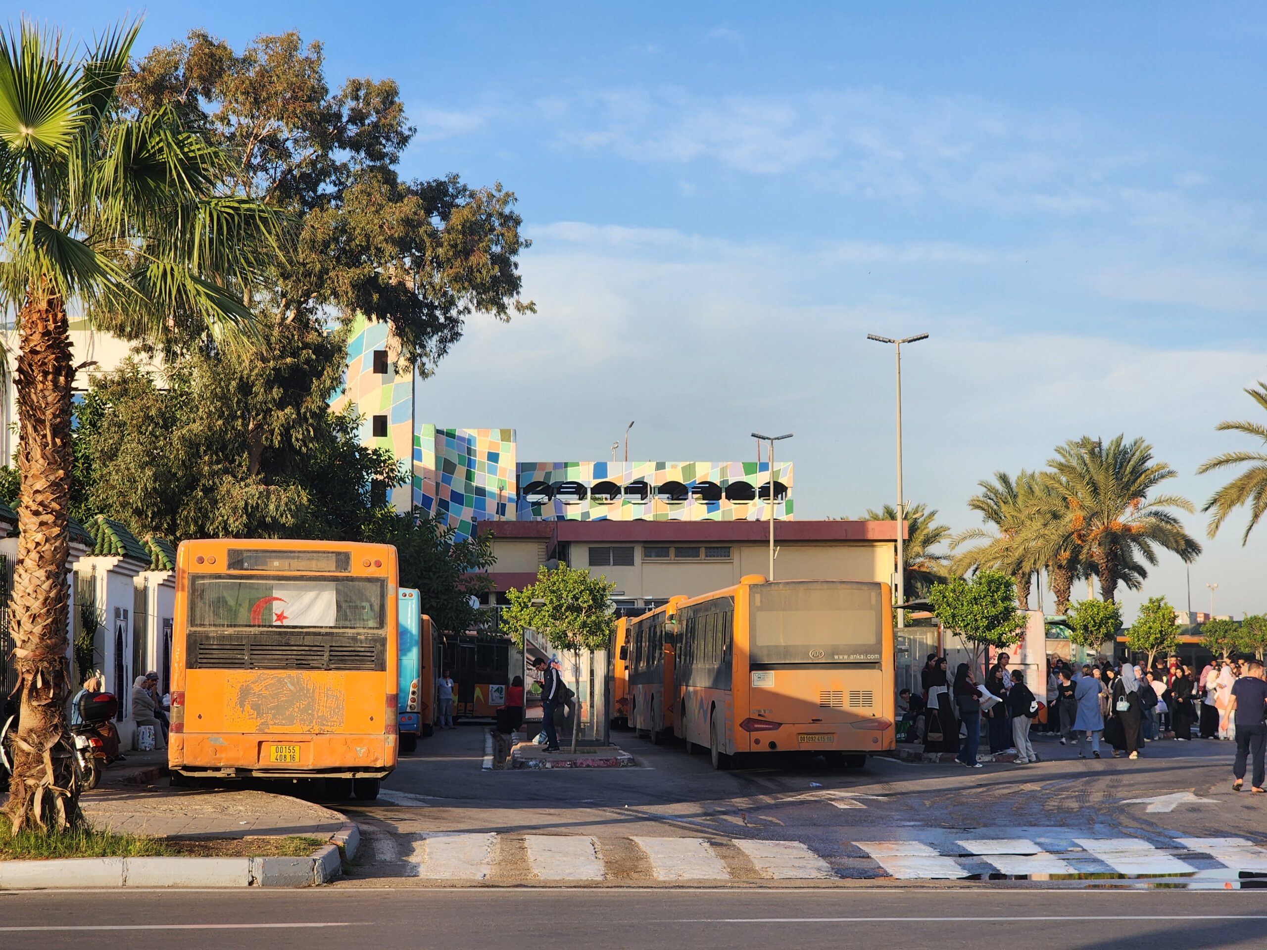 Výhoda vlaku, byť jezdí málo, je jednak v rychlosti, tak také možnosti se do Oranu dostat už na 7. h ráno nebo naopak možnost se dostat z Oranu i večer. Po 18. hodině již autobusy nejezdí, možná i dříve. Potkáte tu tyto čínské King Longy XMQ6123G z let 2012 – 2017. Stejné autobusy jezdí ve velkém v Oranu také na univerzitní dopravě.