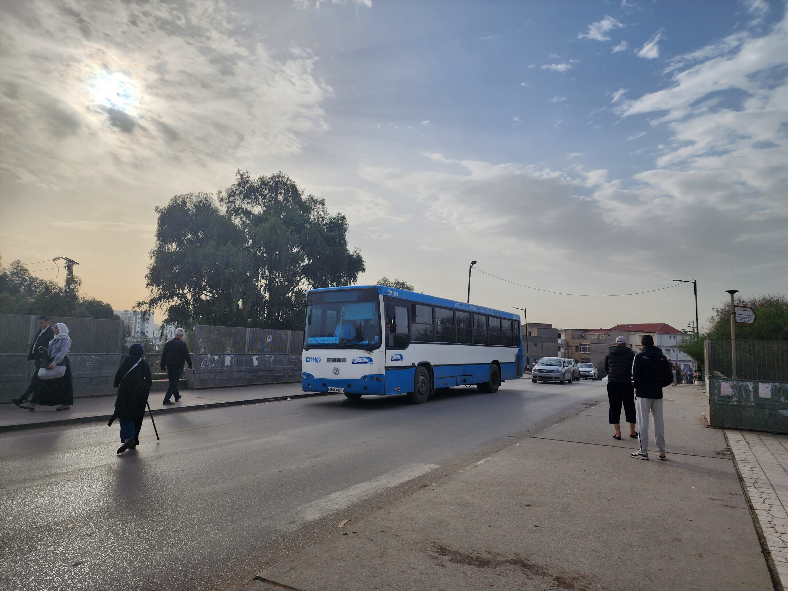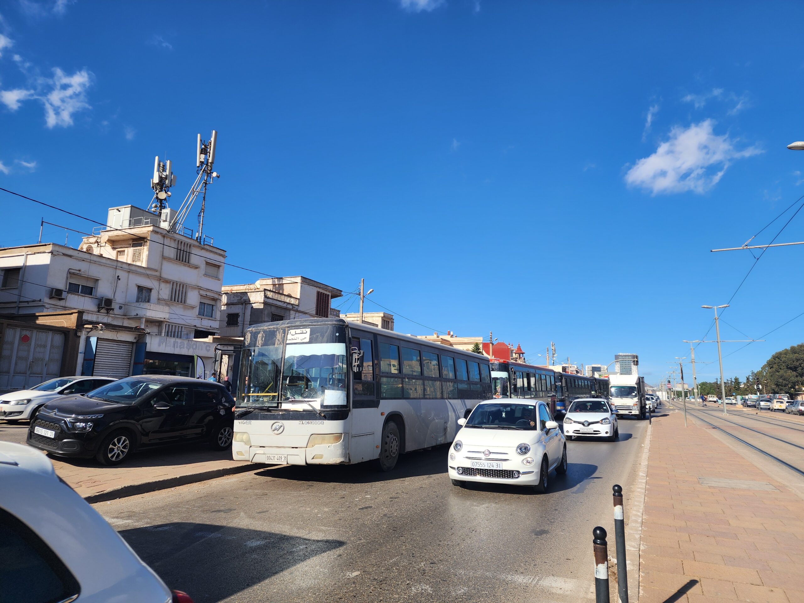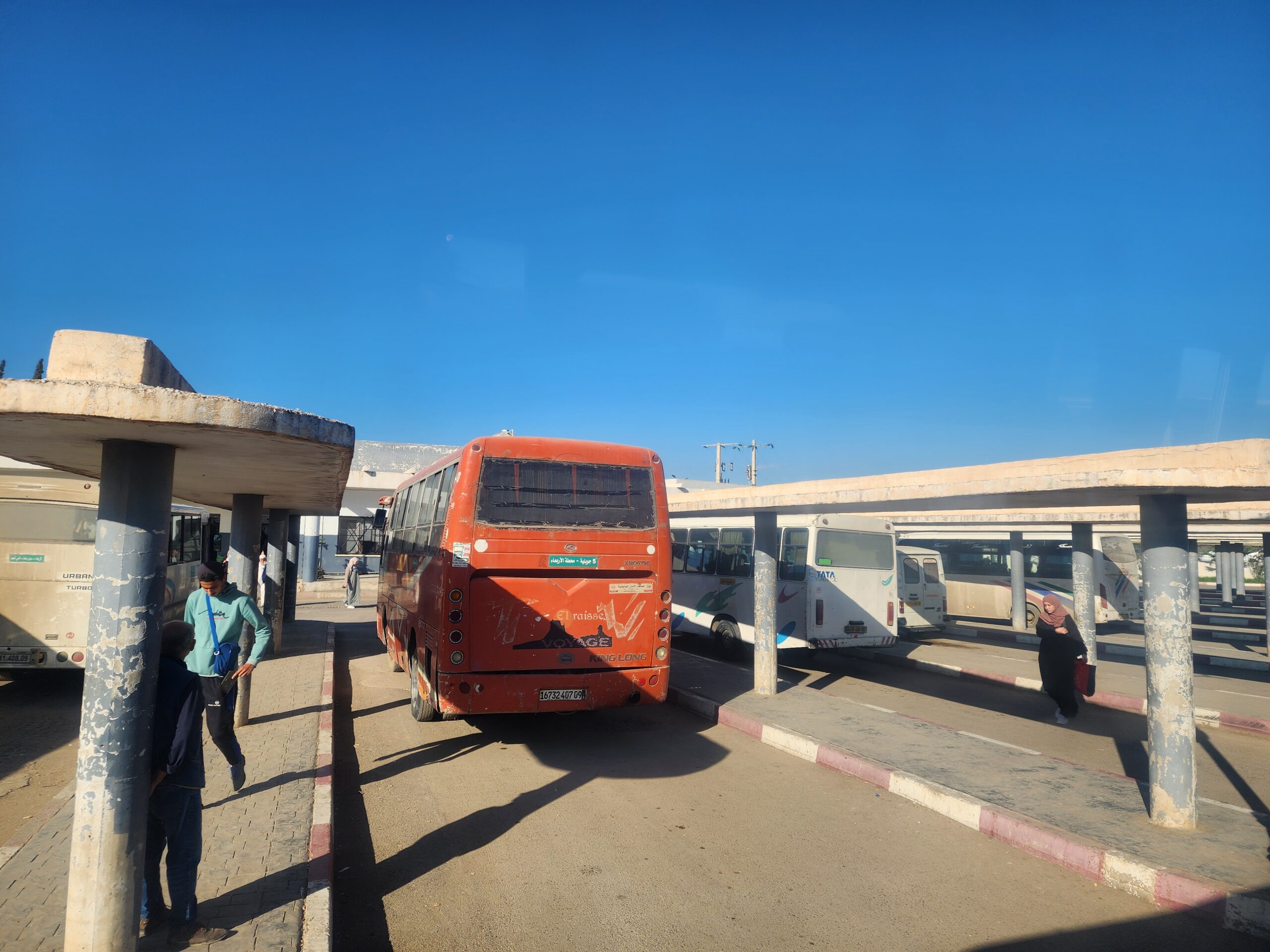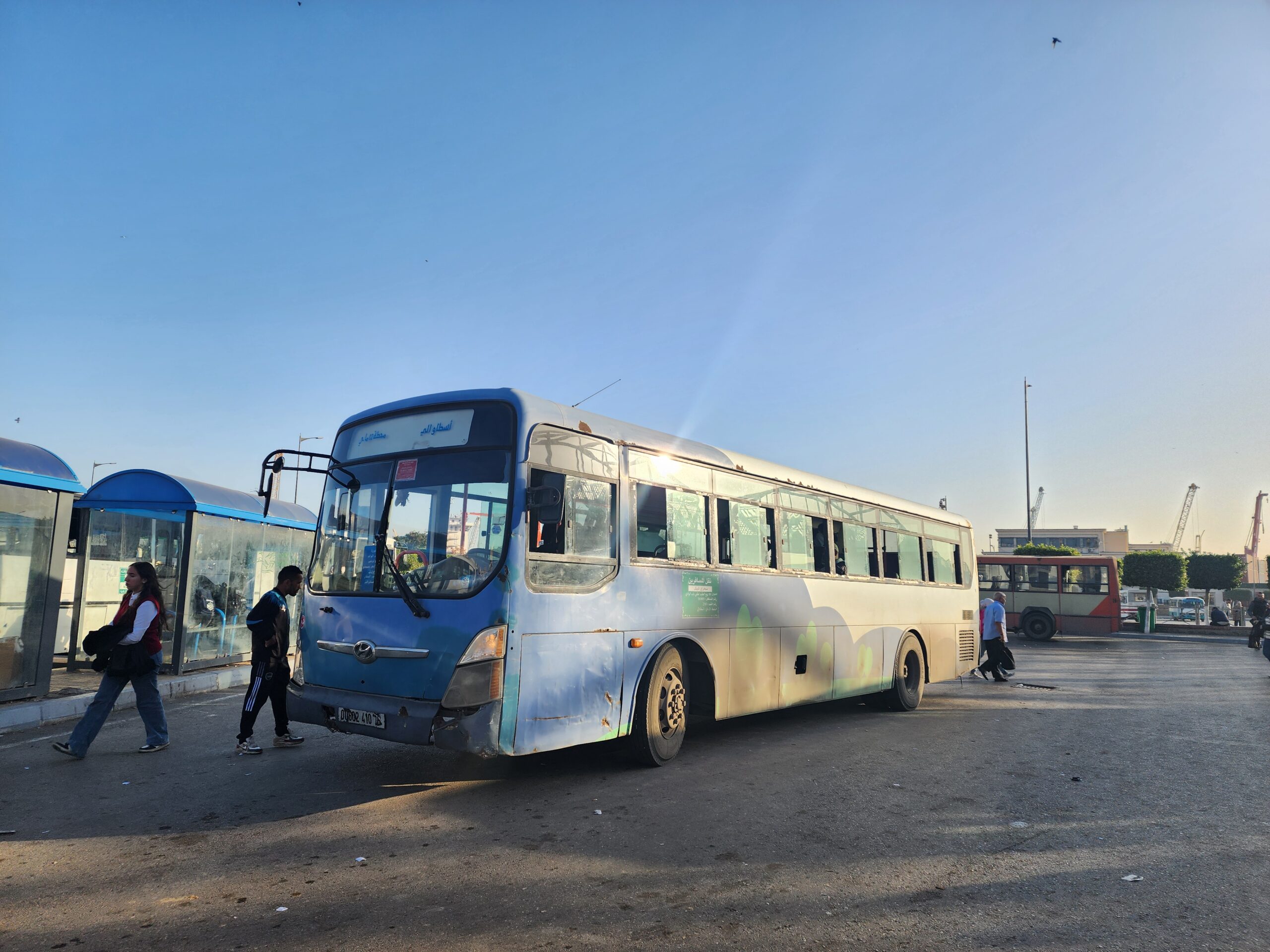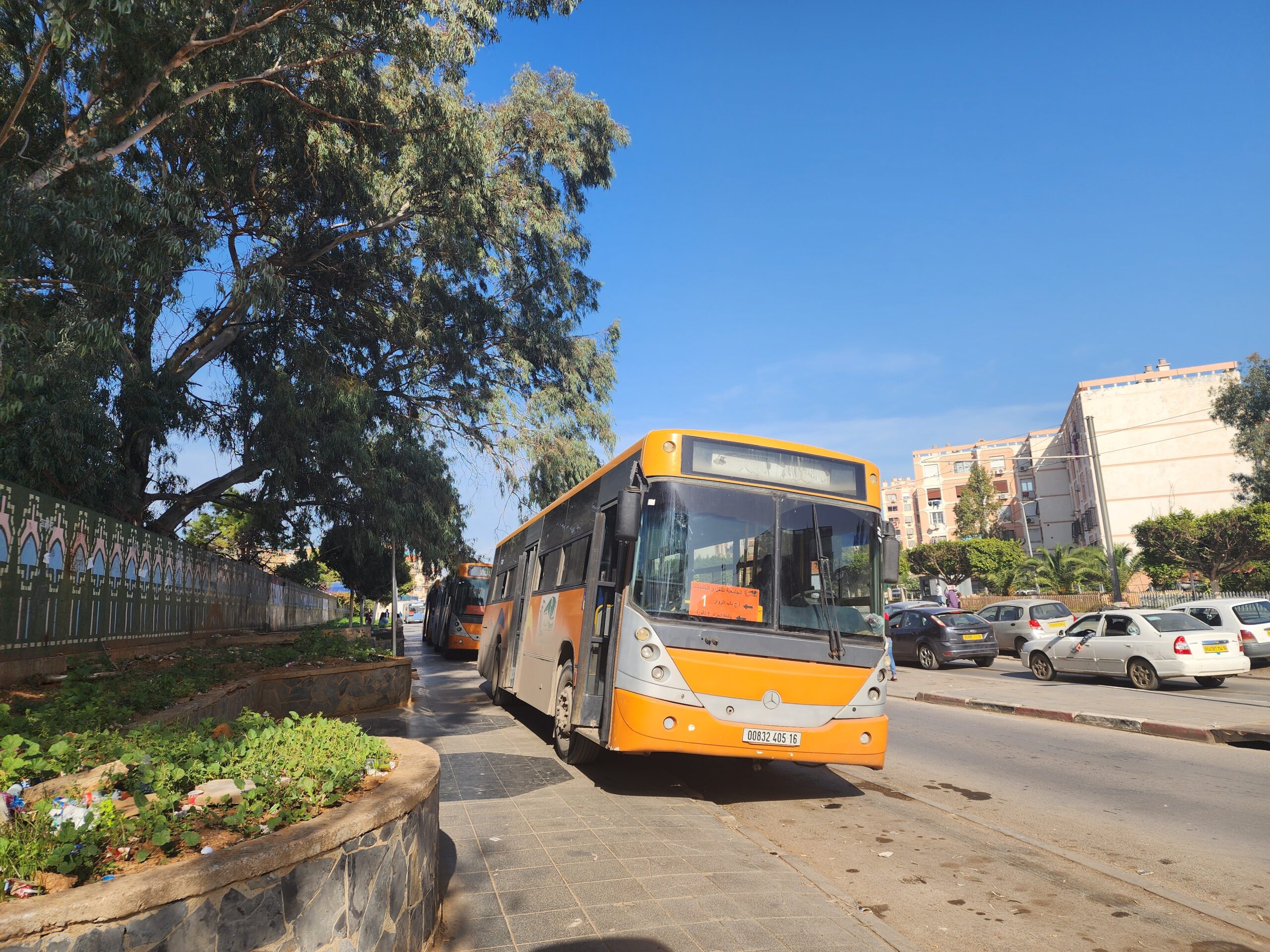 Výhoda vlaku, byť jezdí málo, je jednak v rychlosti, tak také možnosti se do Oranu dostat už na 7. h ráno nebo naopak možnost se dostat z Oranu i večer. Po 18. hodině již autobusy nejezdí, možná i dříve. Potkáte tu tyto čínské King Longy XMQ6123G z let 2012 – 2017. Stejné autobusy jezdí ve velkém v Oranu také na univerzitní dopravě.