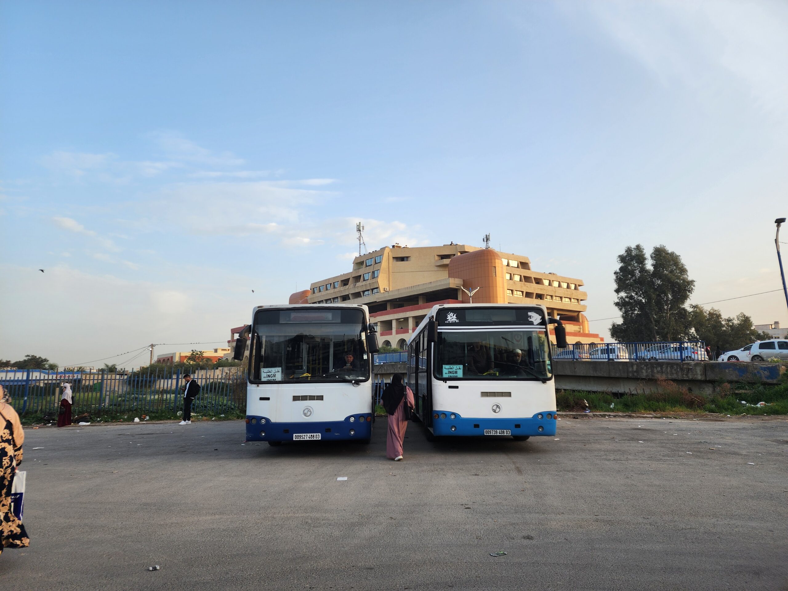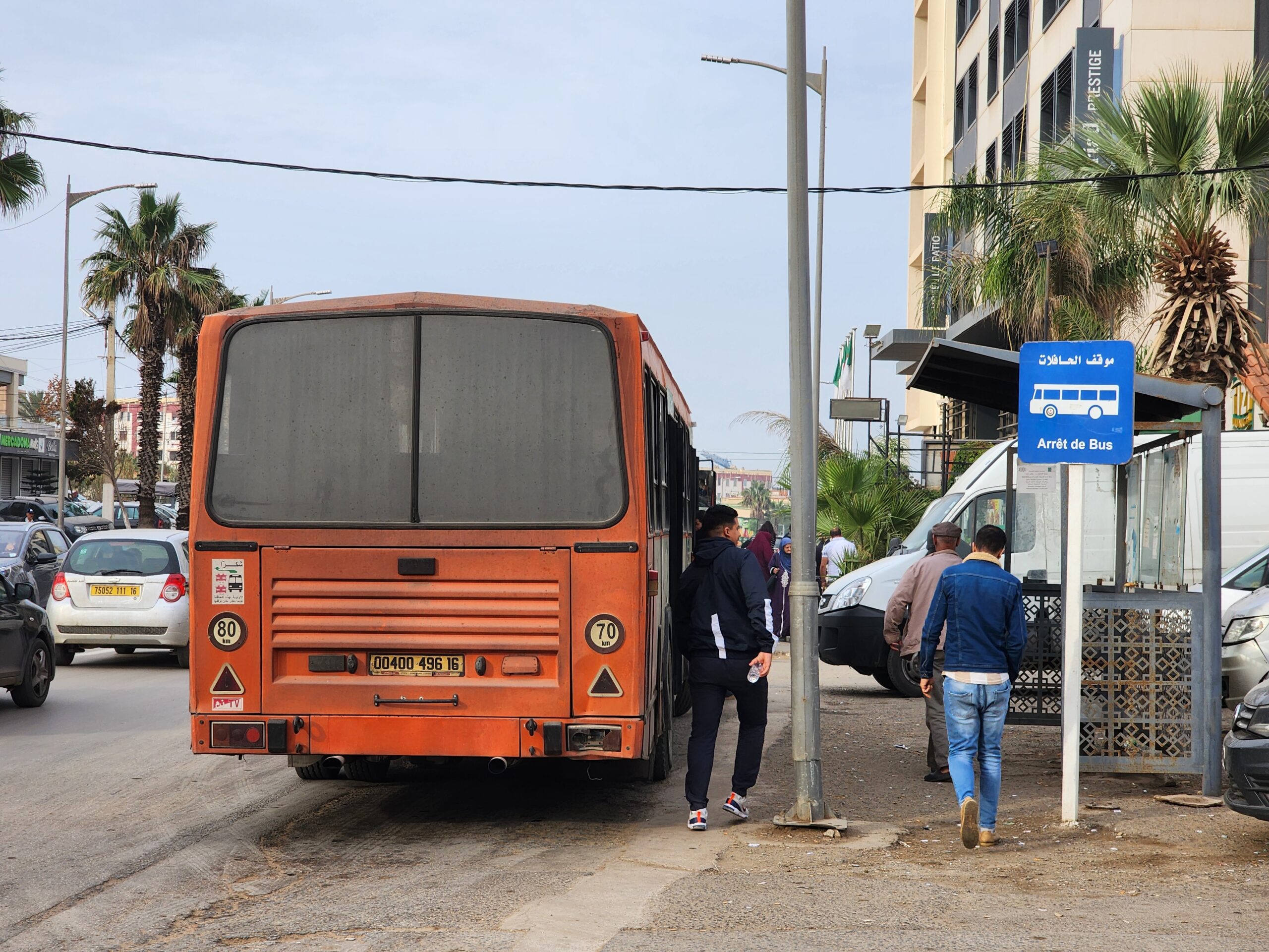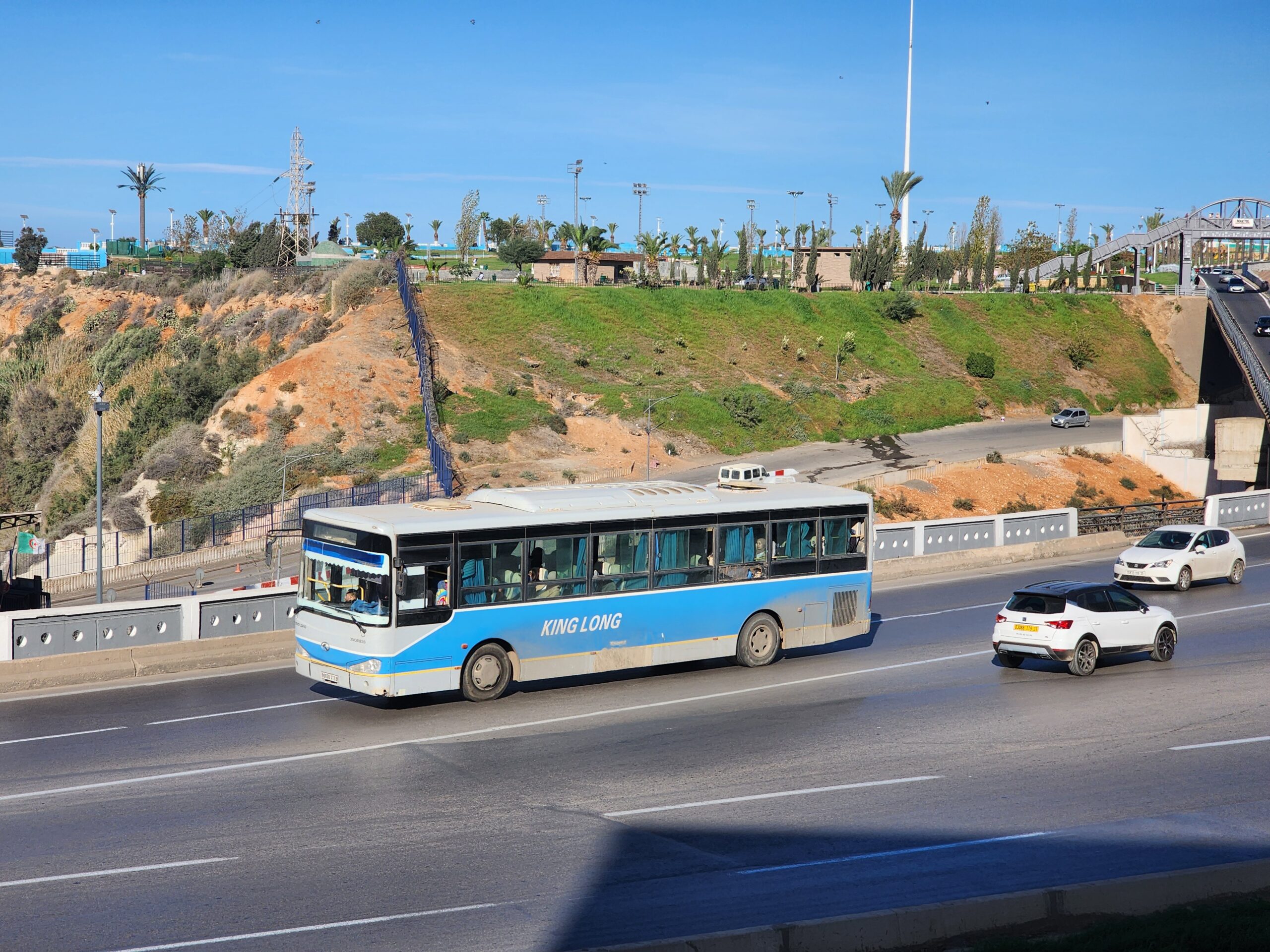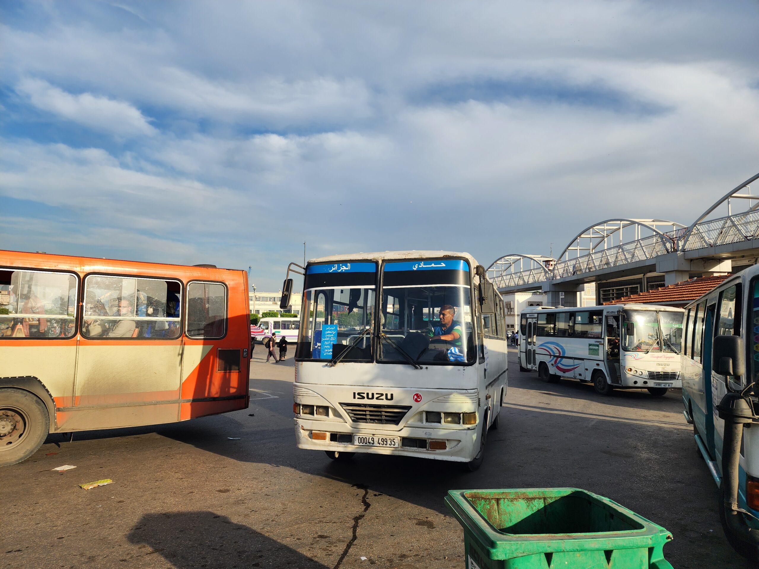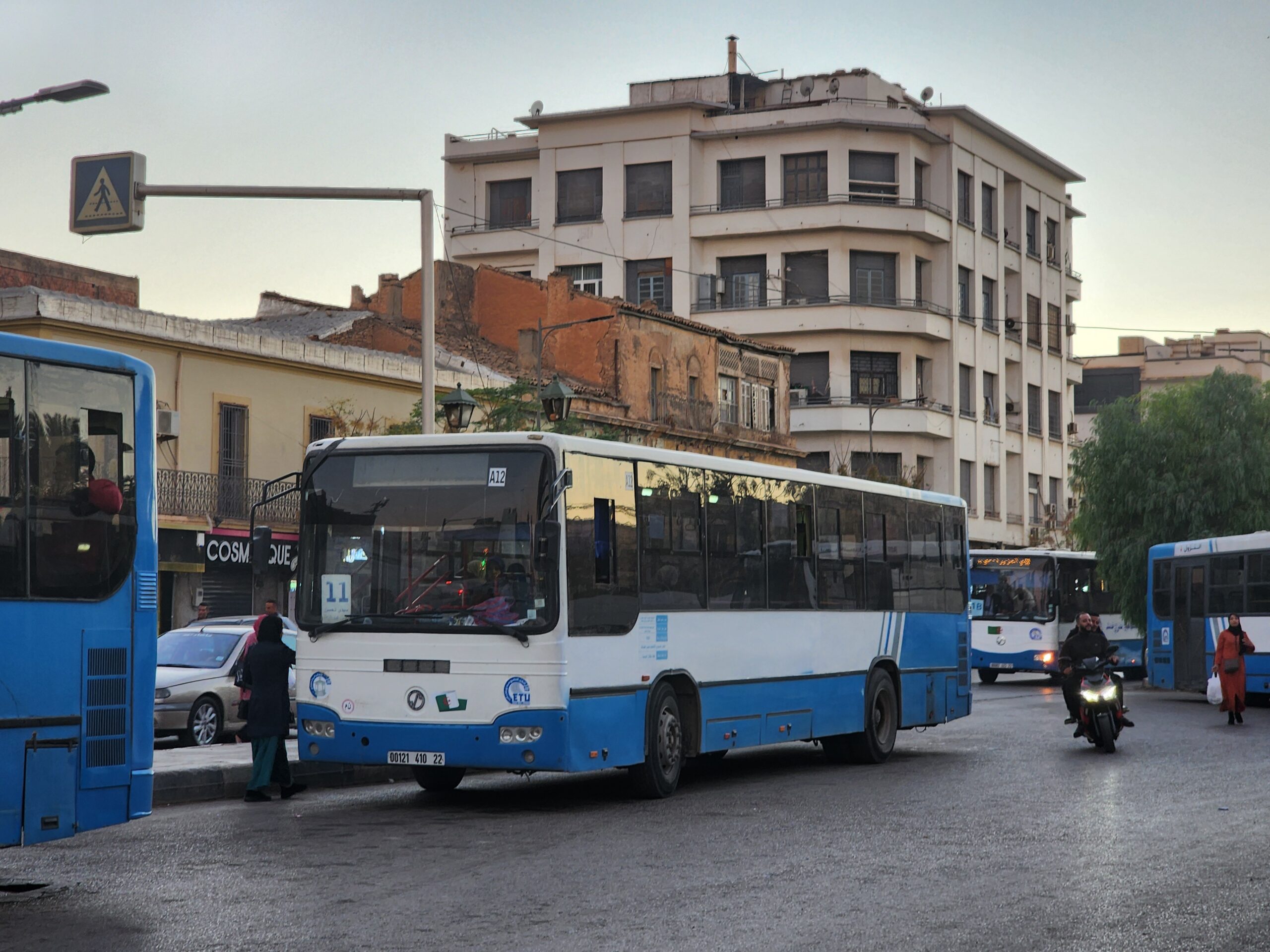 Výhoda vlaku, byť jezdí málo, je jednak v rychlosti, tak také možnosti se do Oranu dostat už na 7. h ráno nebo naopak možnost se dostat z Oranu i večer. Po 18. hodině již autobusy nejezdí, možná i dříve. Potkáte tu tyto čínské King Longy XMQ6123G z let 2012 – 2017. Stejné autobusy jezdí ve velkém v Oranu také na univerzitní dopravě.