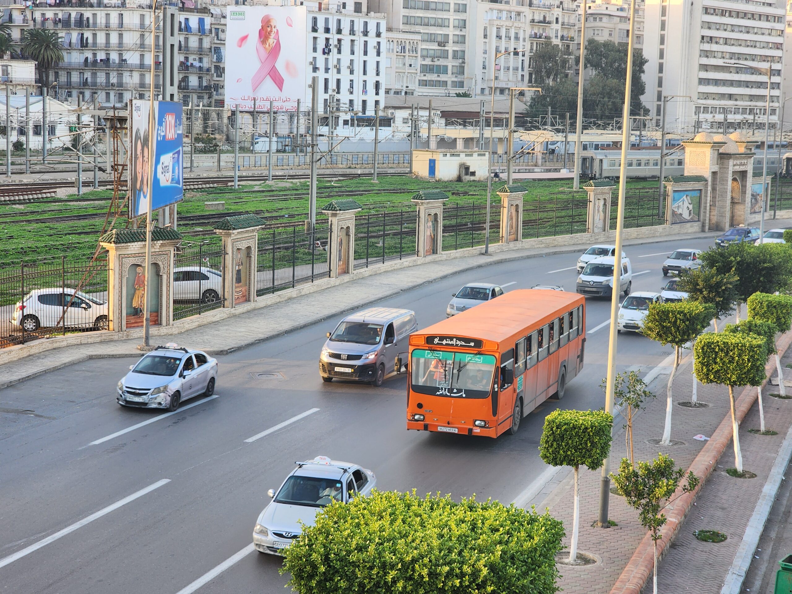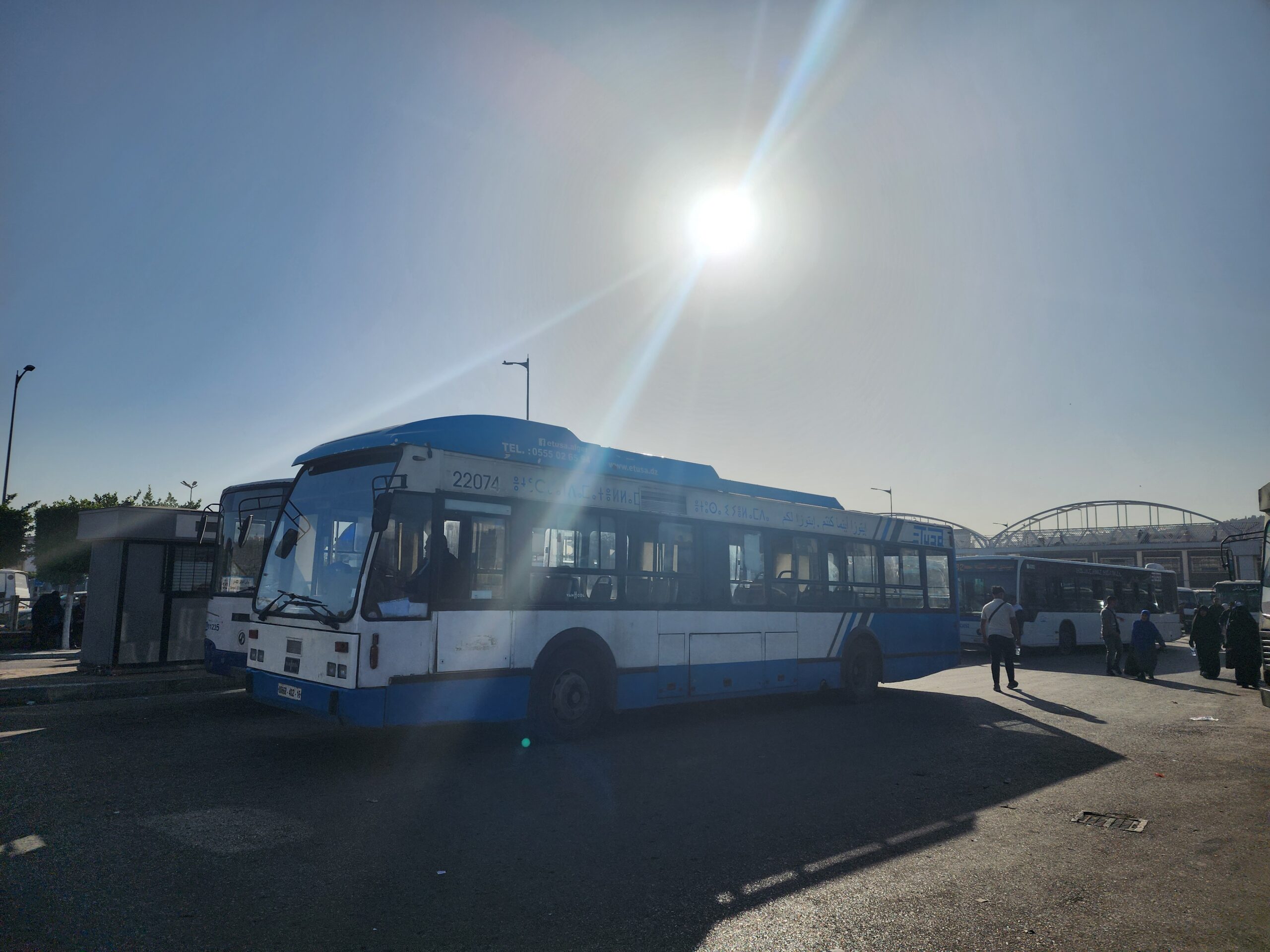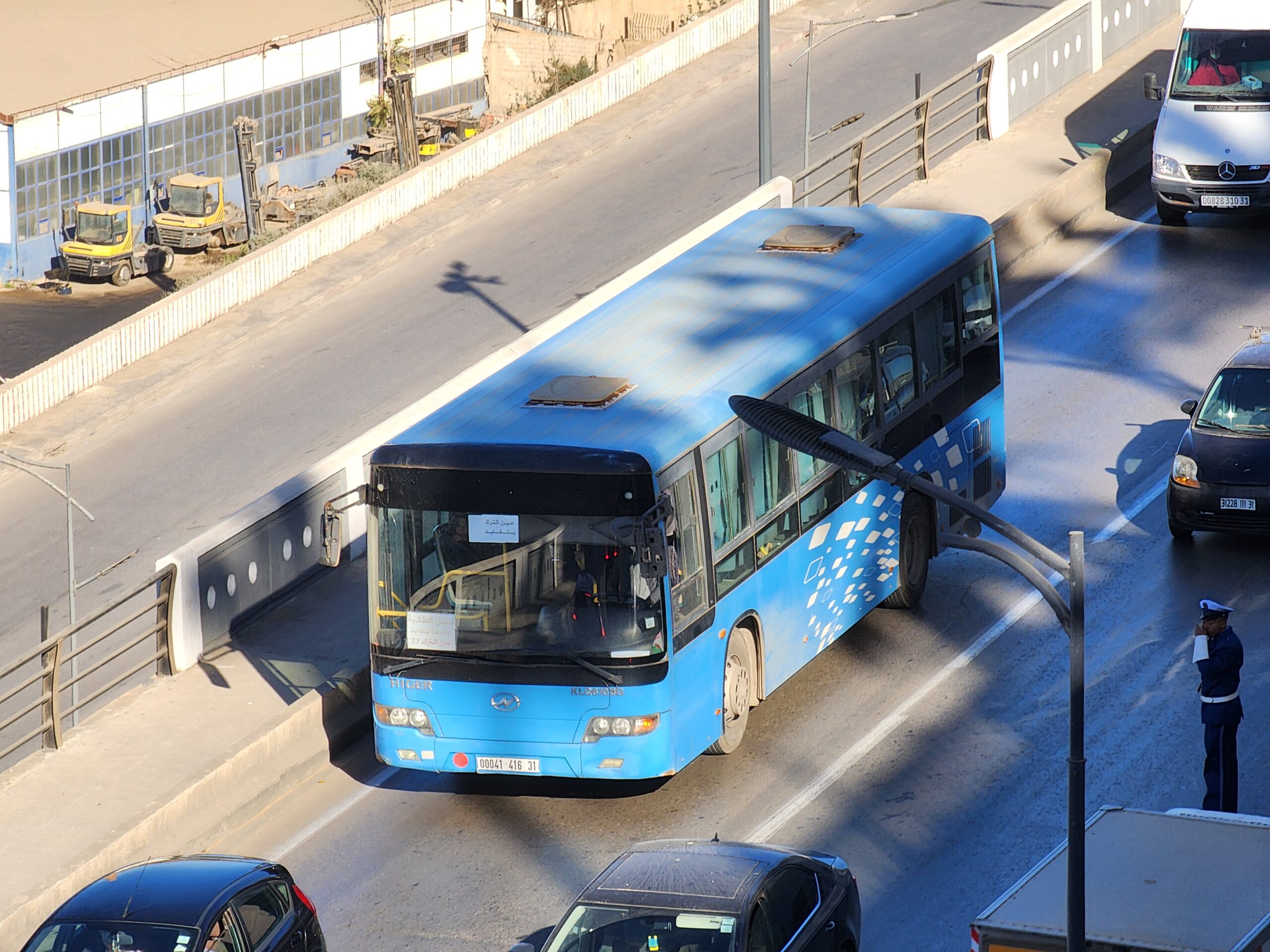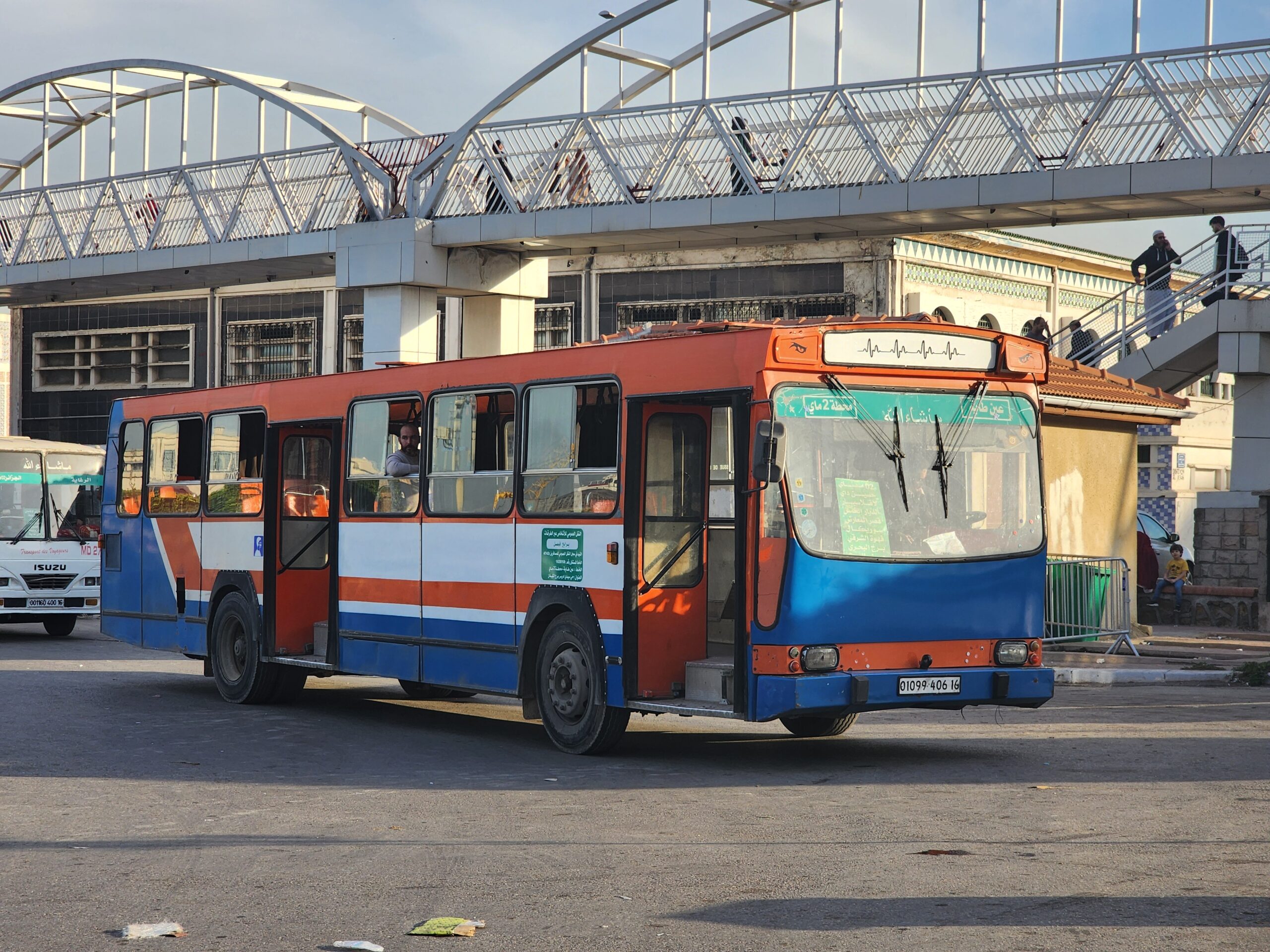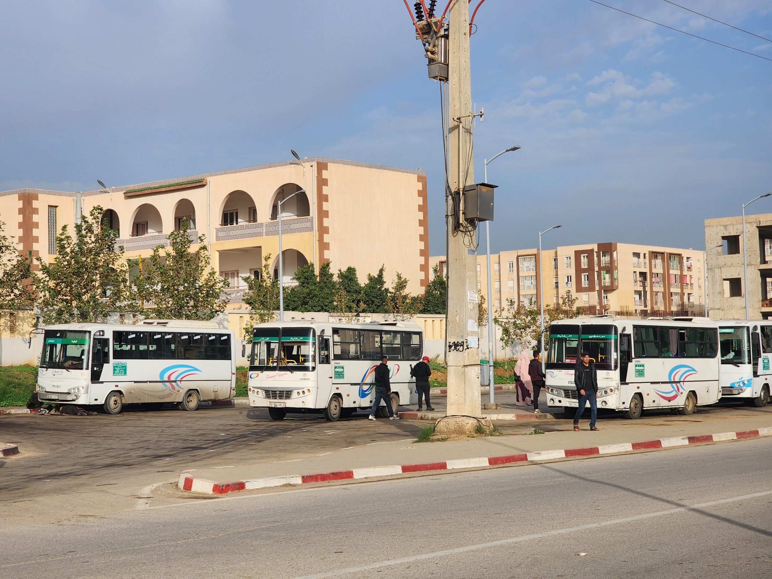 Výhoda vlaku, byť jezdí málo, je jednak v rychlosti, tak také možnosti se do Oranu dostat už na 7. h ráno nebo naopak možnost se dostat z Oranu i večer. Po 18. hodině již autobusy nejezdí, možná i dříve. Potkáte tu tyto čínské King Longy XMQ6123G z let 2012 – 2017. Stejné autobusy jezdí ve velkém v Oranu také na univerzitní dopravě.