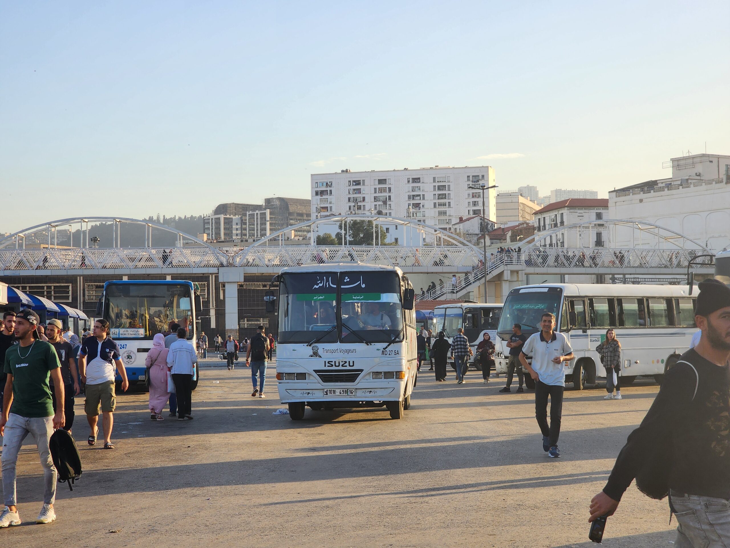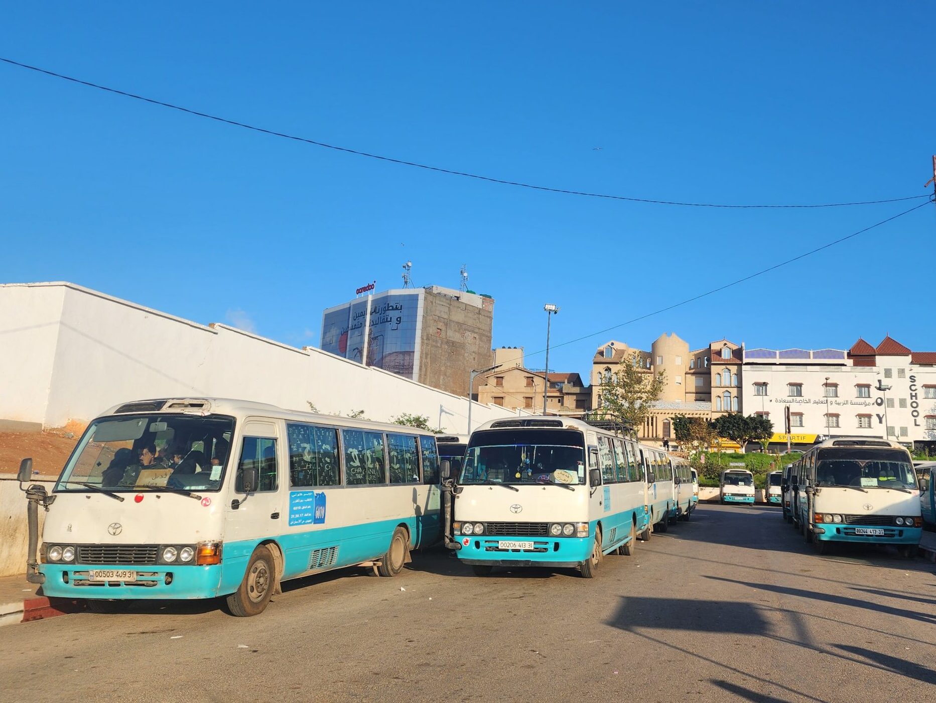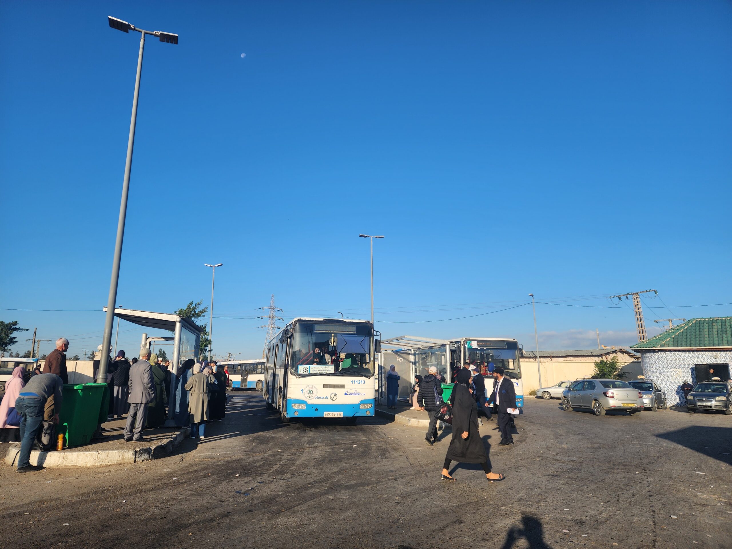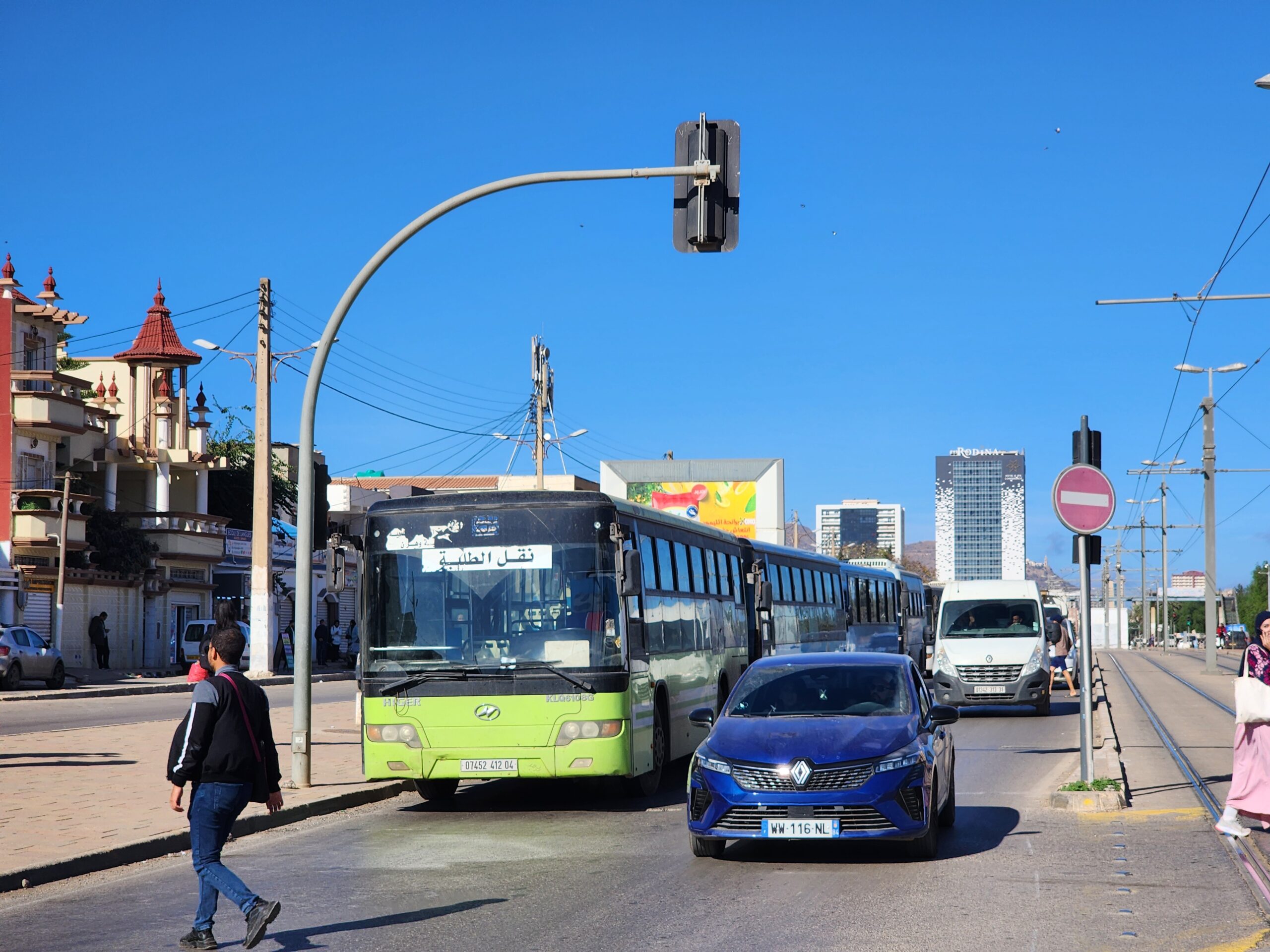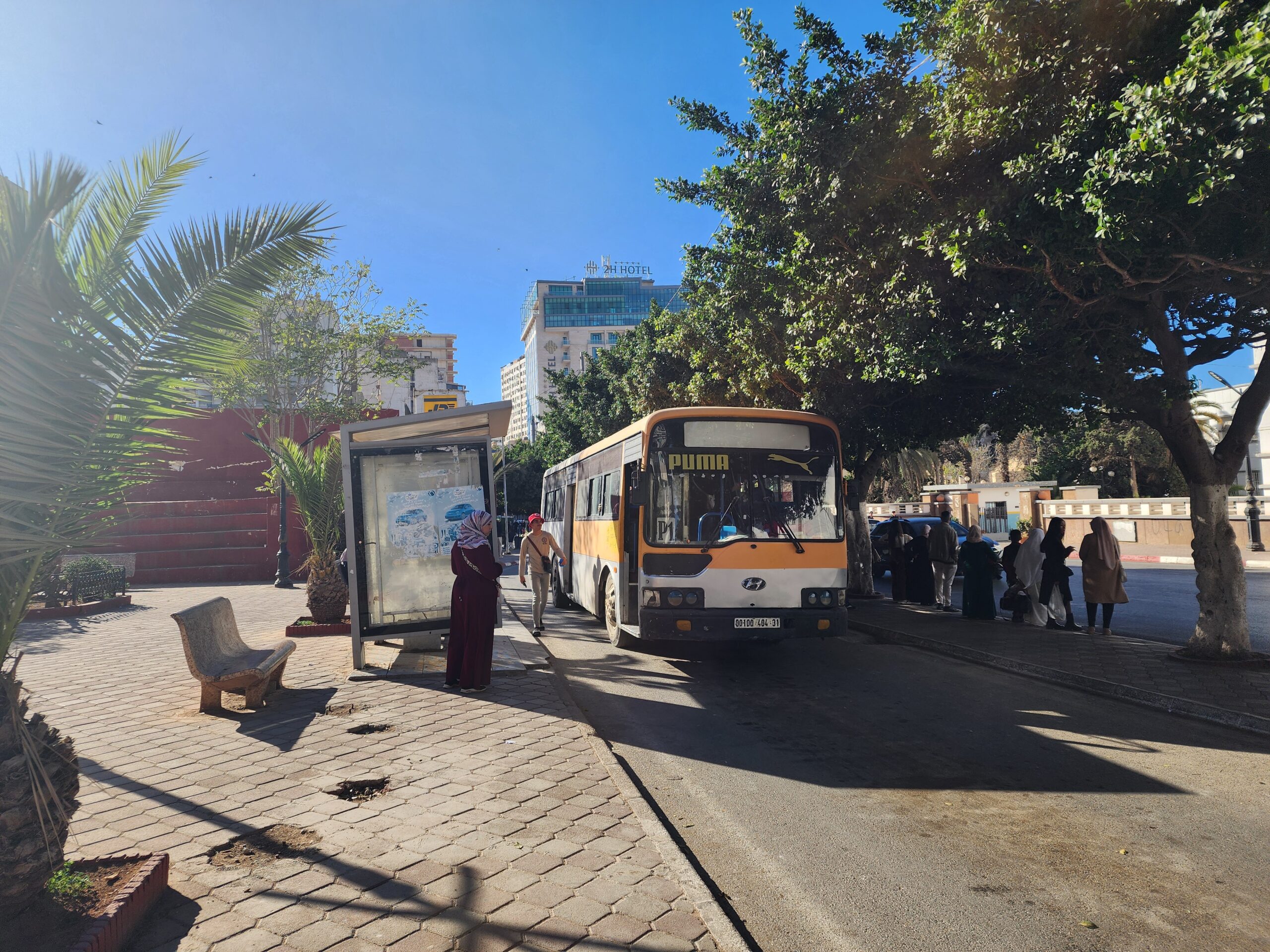Výhoda vlaku, byť jezdí málo, je jednak v rychlosti, tak také možnosti se do Oranu dostat už na 7. h ráno nebo naopak možnost se dostat z Oranu i večer. Po 18. hodině již autobusy nejezdí, možná i dříve. Potkáte tu tyto čínské King Longy XMQ6123G z let 2012 – 2017. Stejné autobusy jezdí ve velkém v Oranu také na univerzitní dopravě.