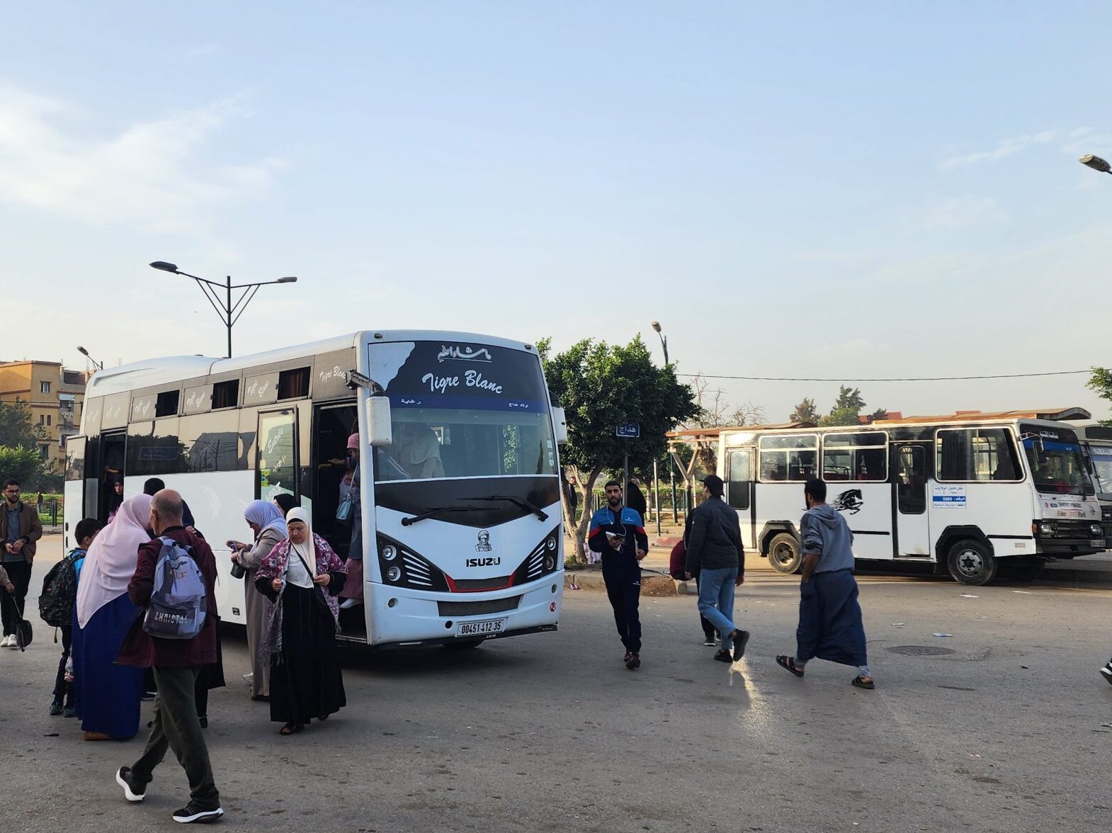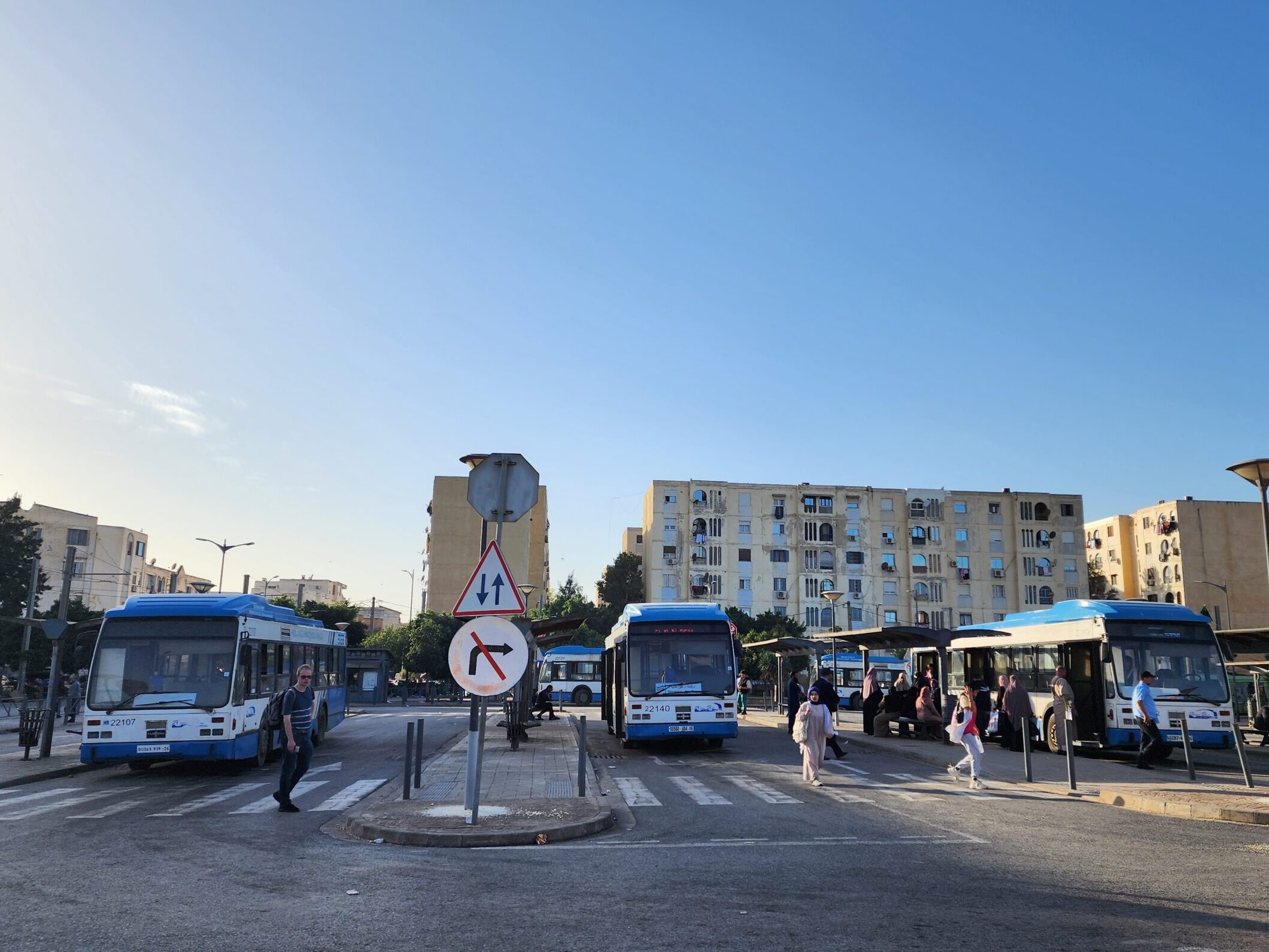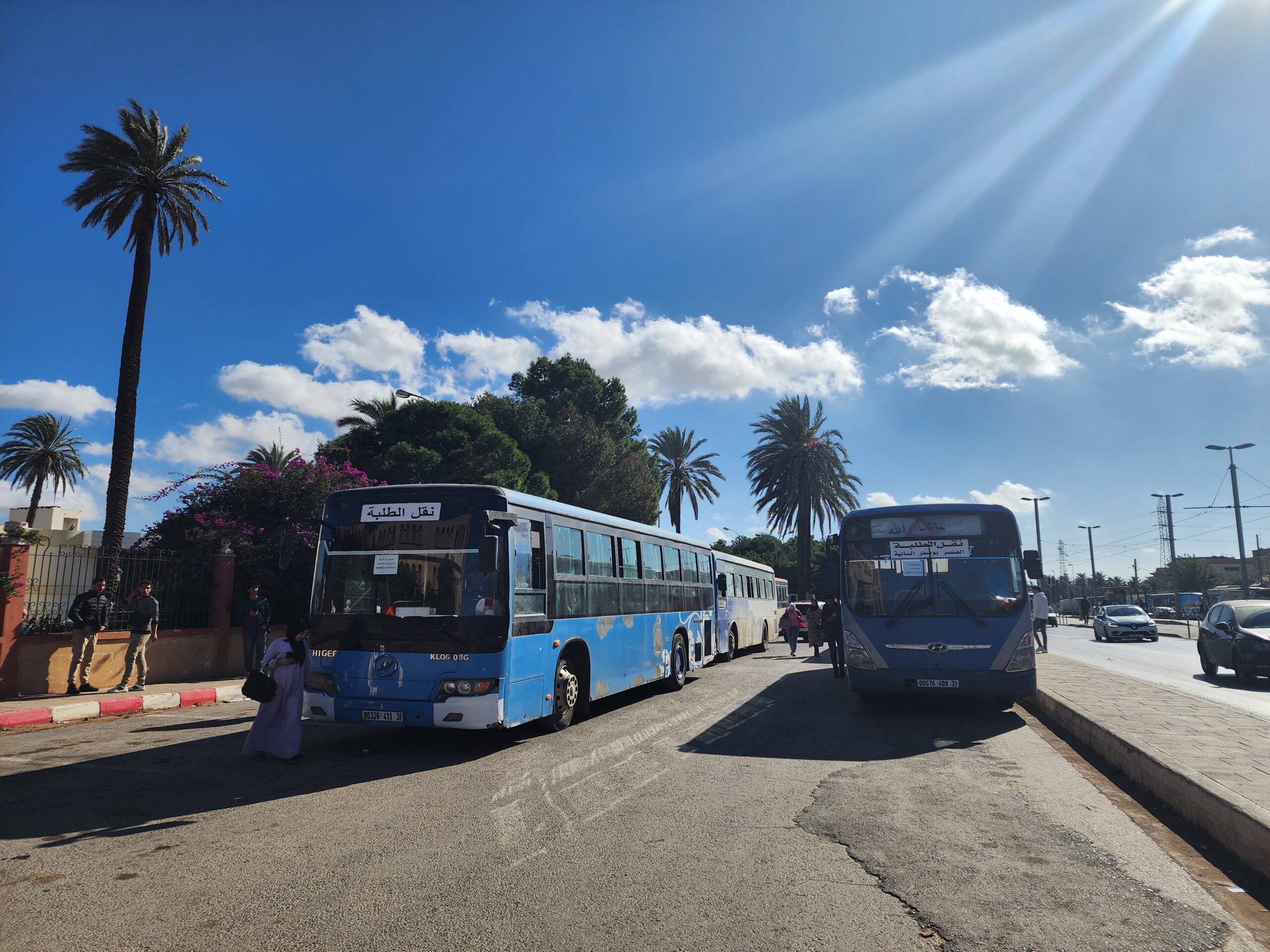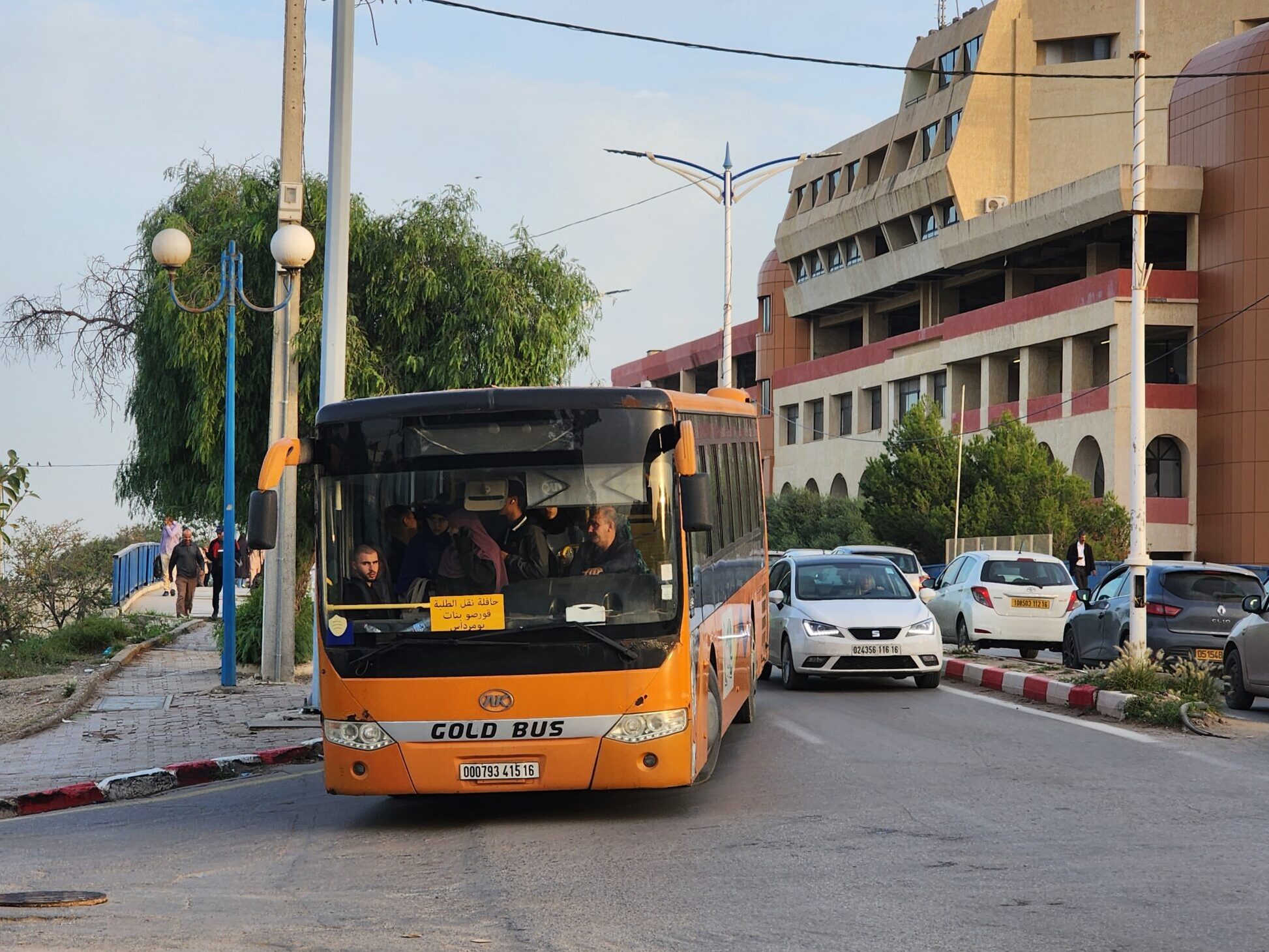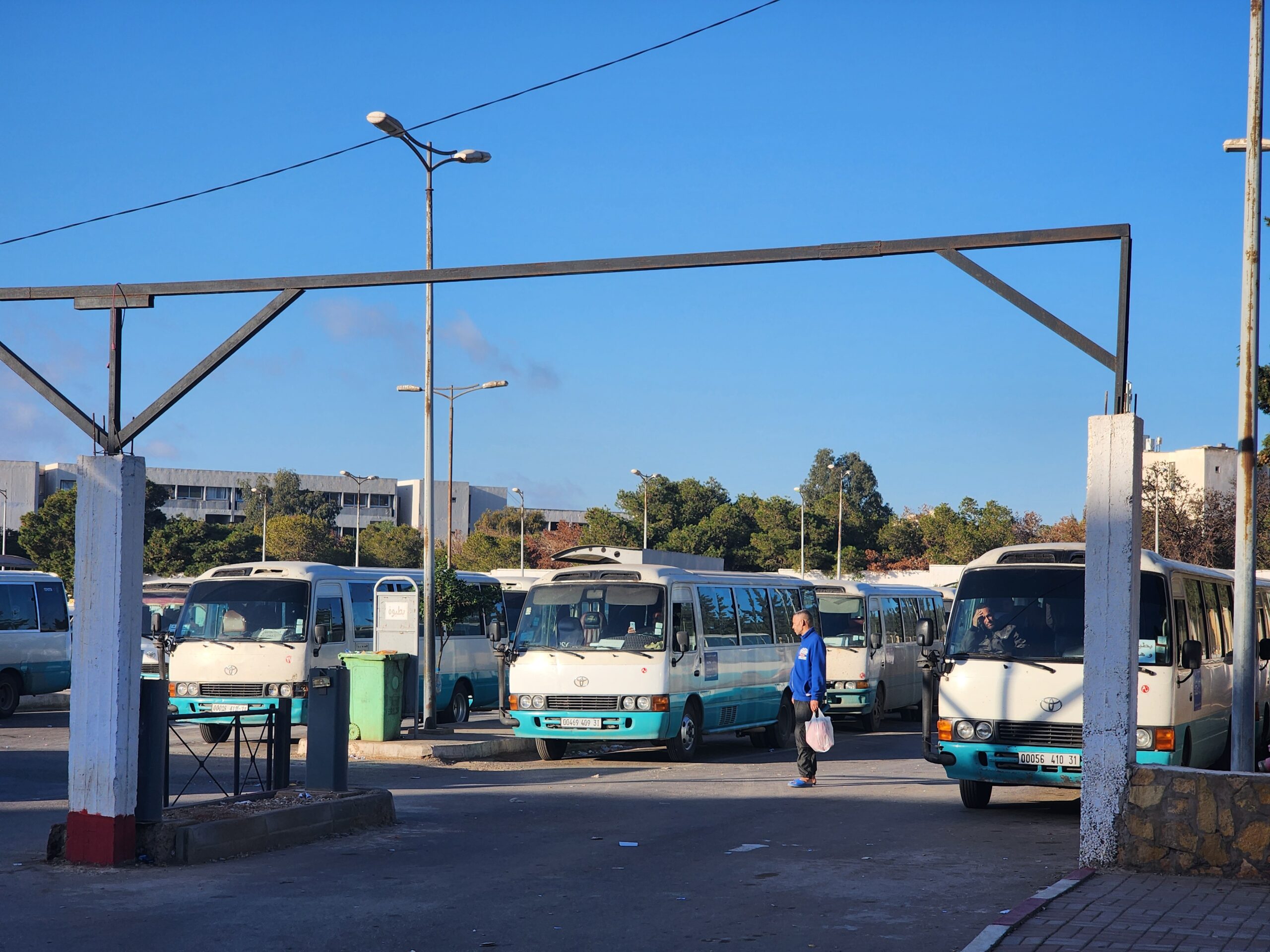 Výhoda vlaku, byť jezdí málo, je jednak v rychlosti, tak také možnosti se do Oranu dostat už na 7. h ráno nebo naopak možnost se dostat z Oranu i večer. Po 18. hodině již autobusy nejezdí, možná i dříve. Potkáte tu tyto čínské King Longy XMQ6123G z let 2012 – 2017. Stejné autobusy jezdí ve velkém v Oranu také na univerzitní dopravě.
