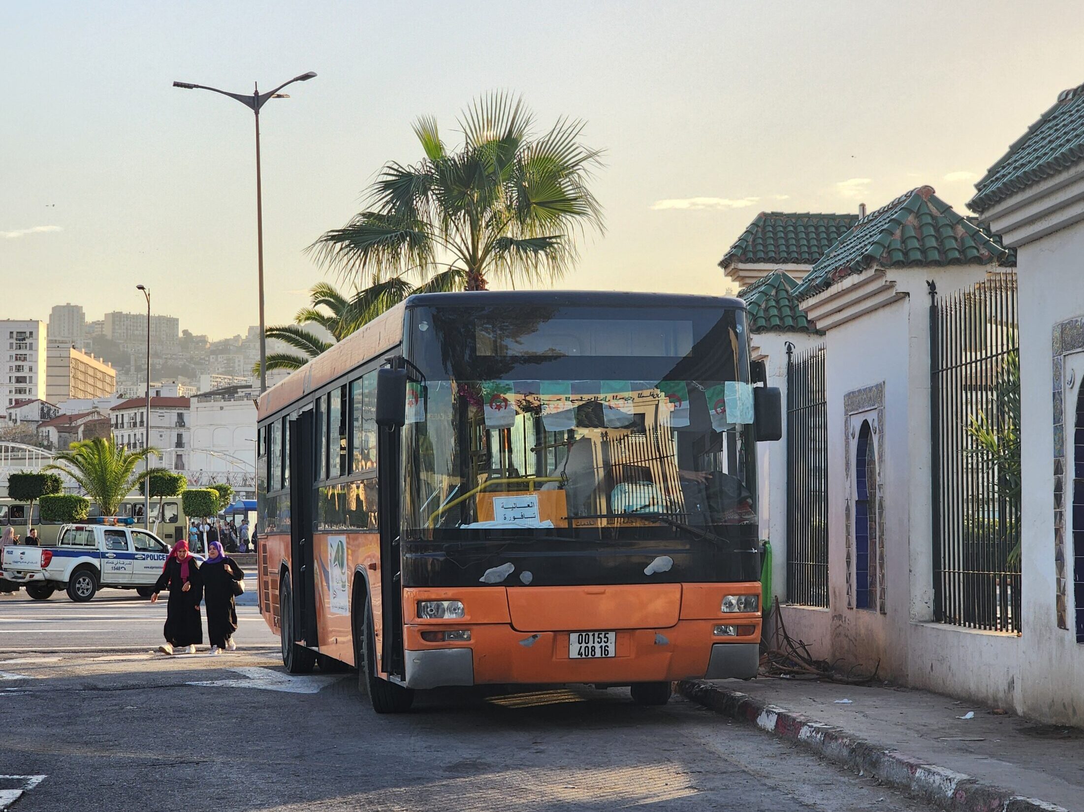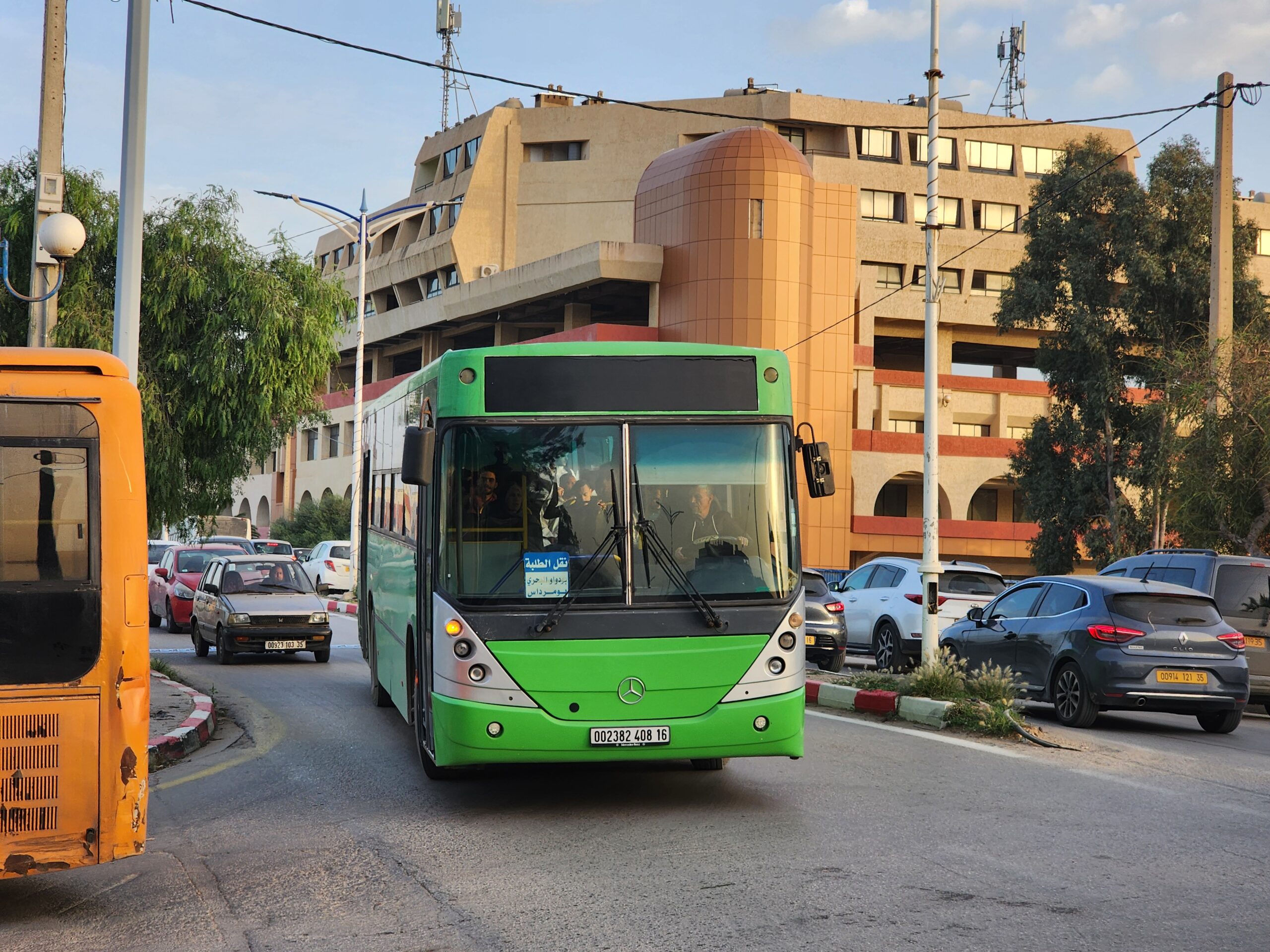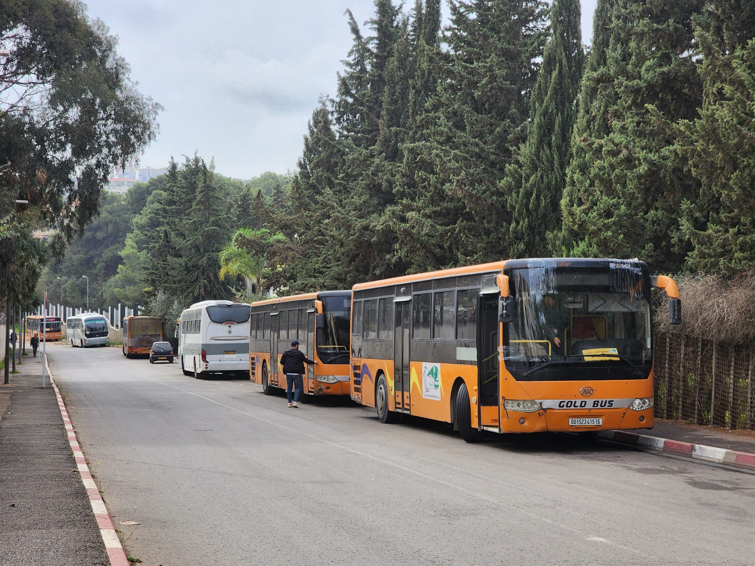 K záhlednutí tu jsou také univerzitní oranžové autobusy Akia z Alžíru.