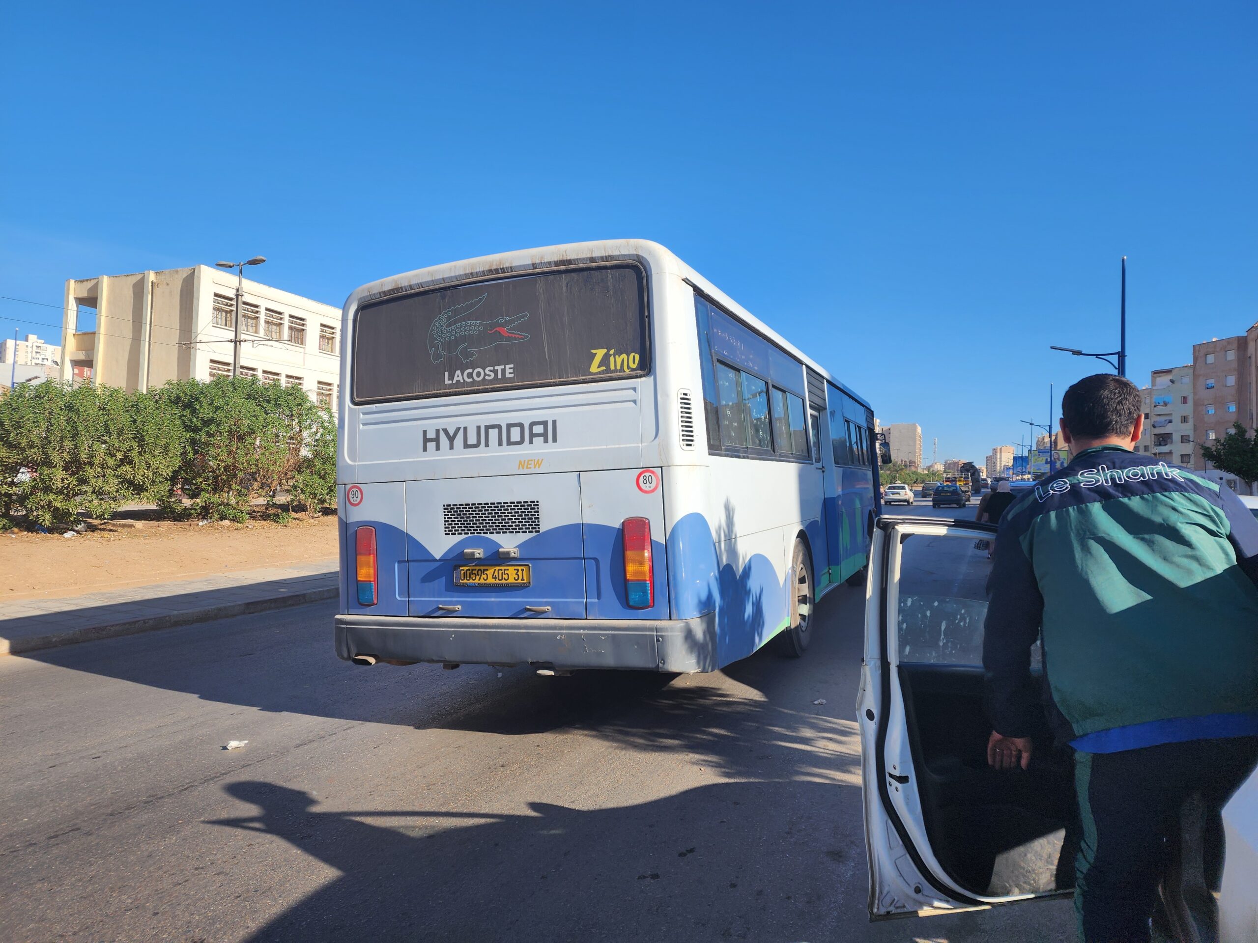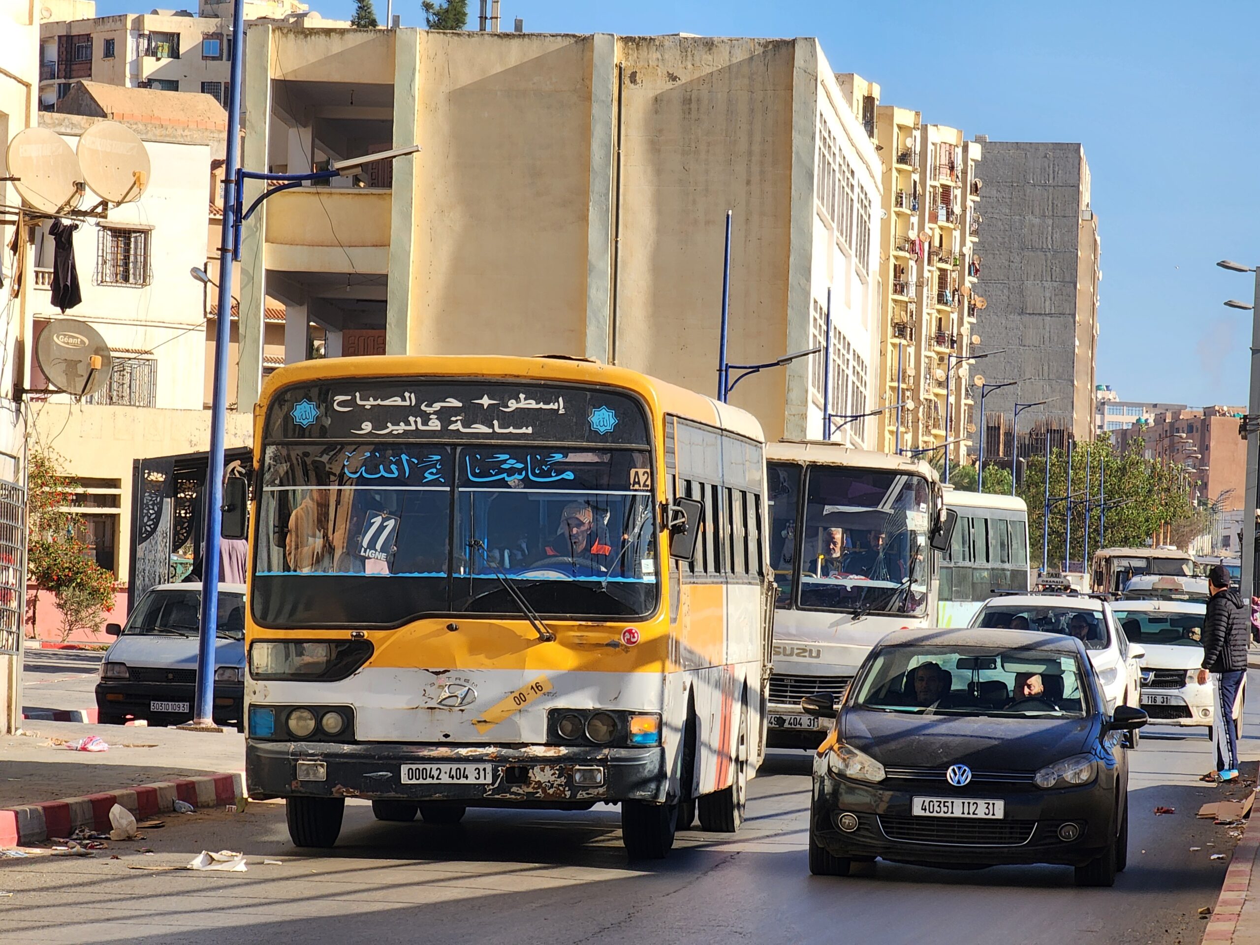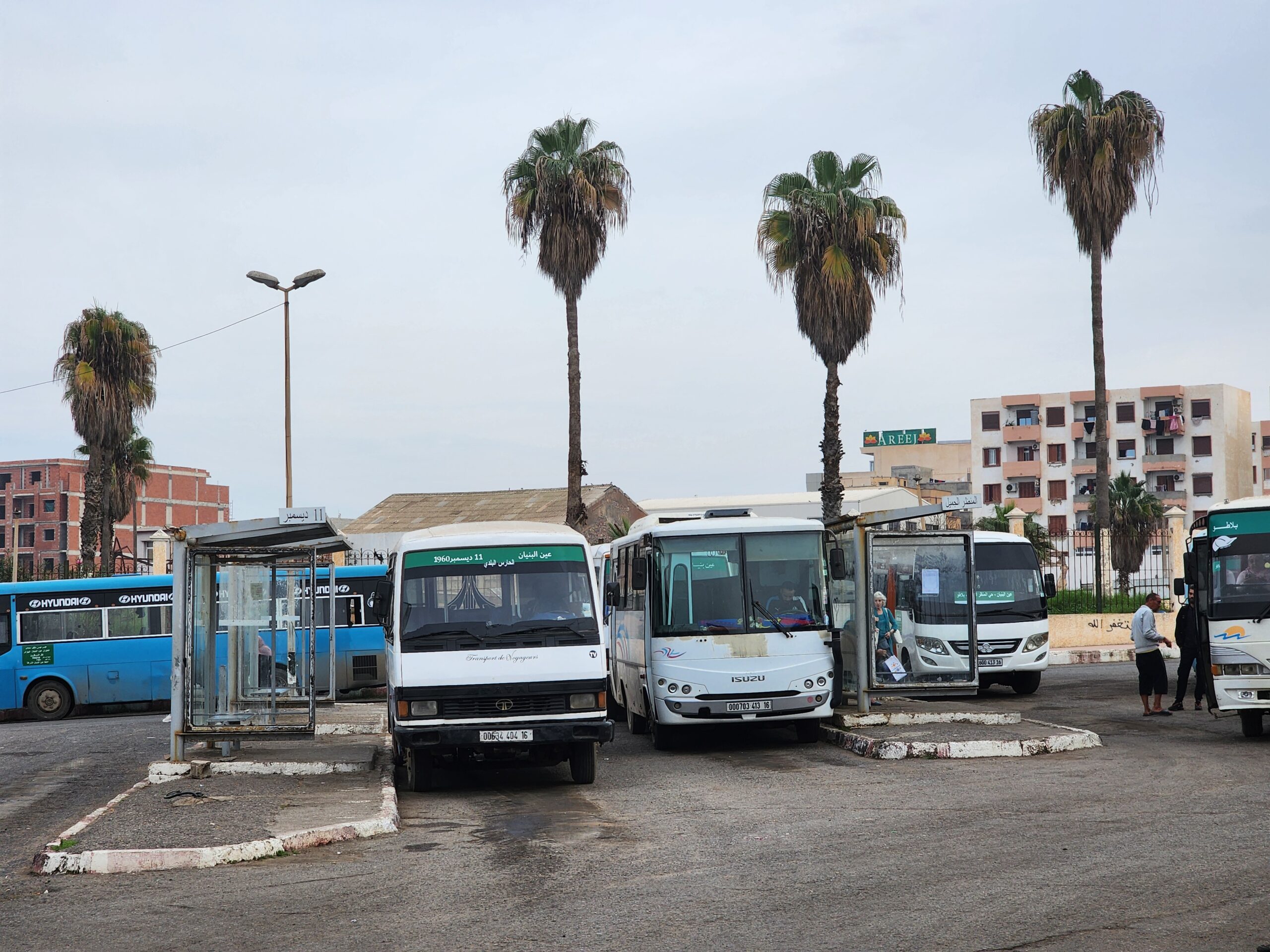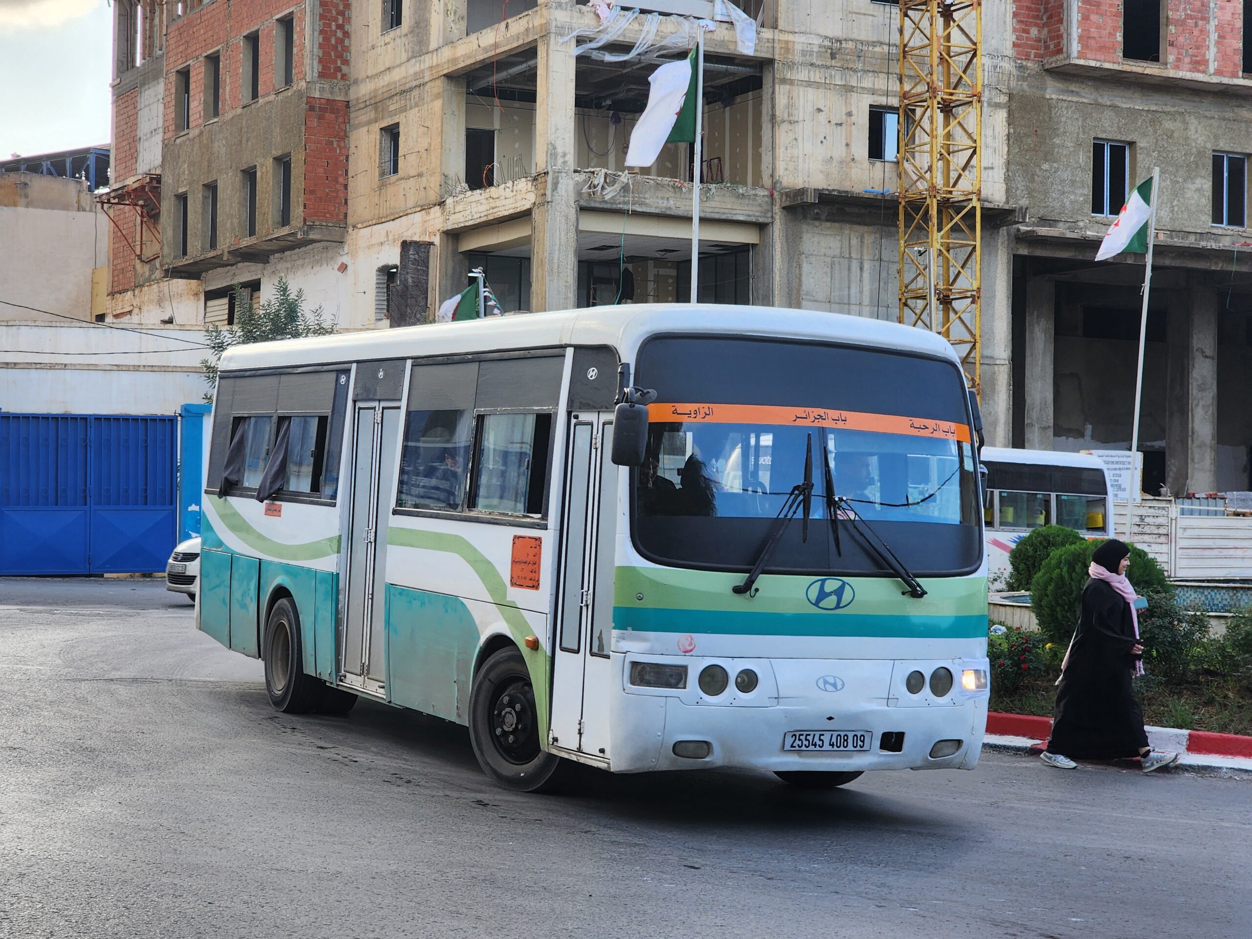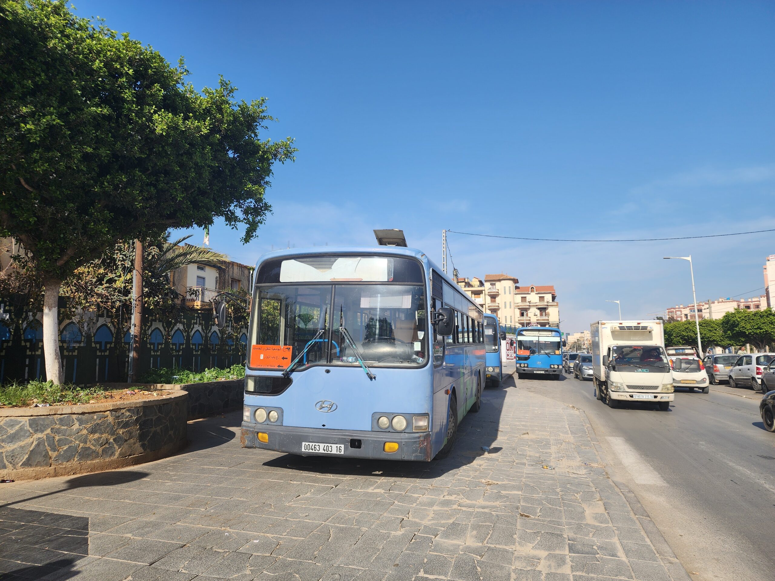 A na lince 163011 z Alžíru na předměstí Zeraldy potkáte korejské autobusy Hyundai (Aero City, Aero Town) v několika provedeních, které jsou také 15 – 20 let staré. Občas se vyskytnou i na lince 163003 na Staouli. Jízdné vás vyjde na 25 – 45 dinárů.