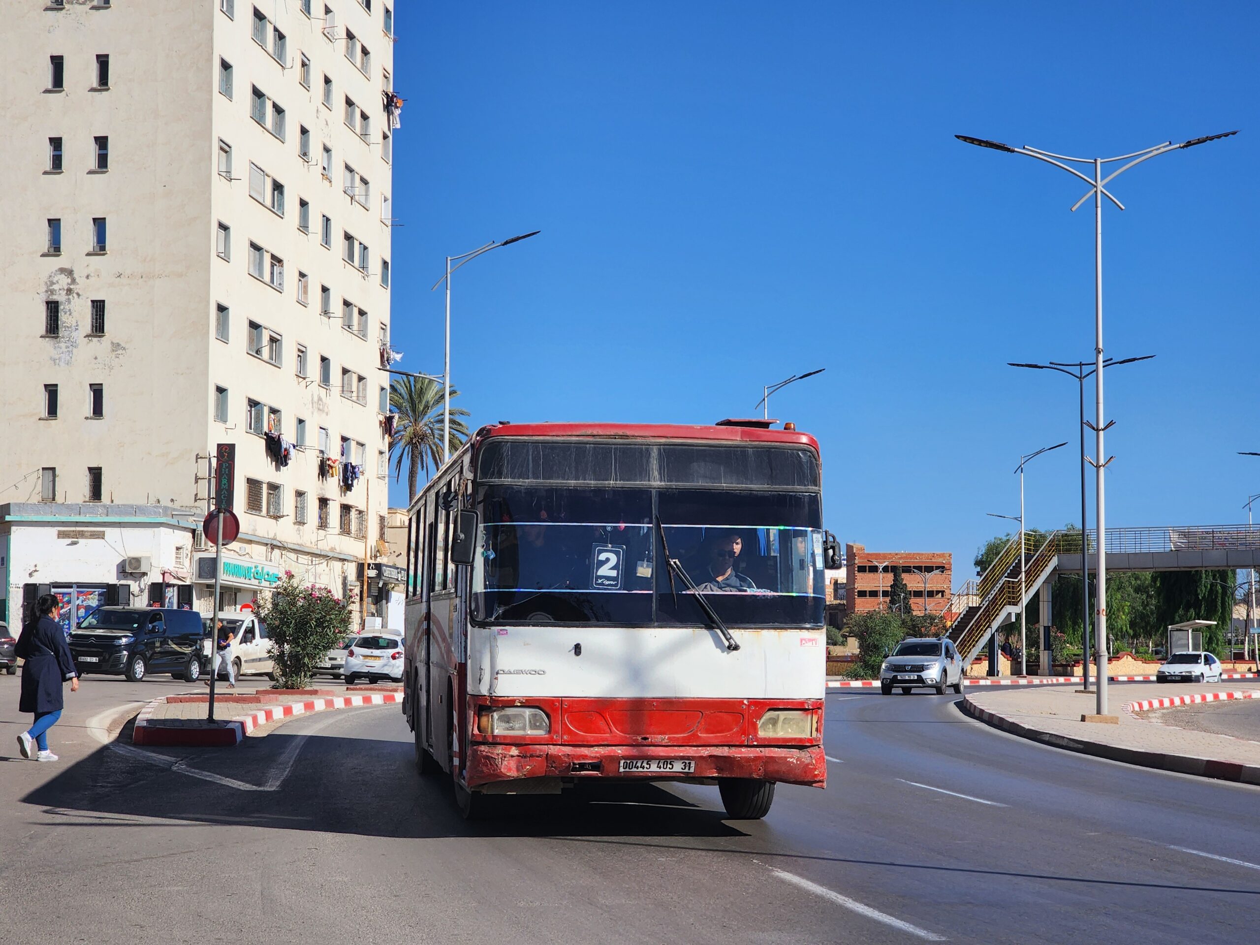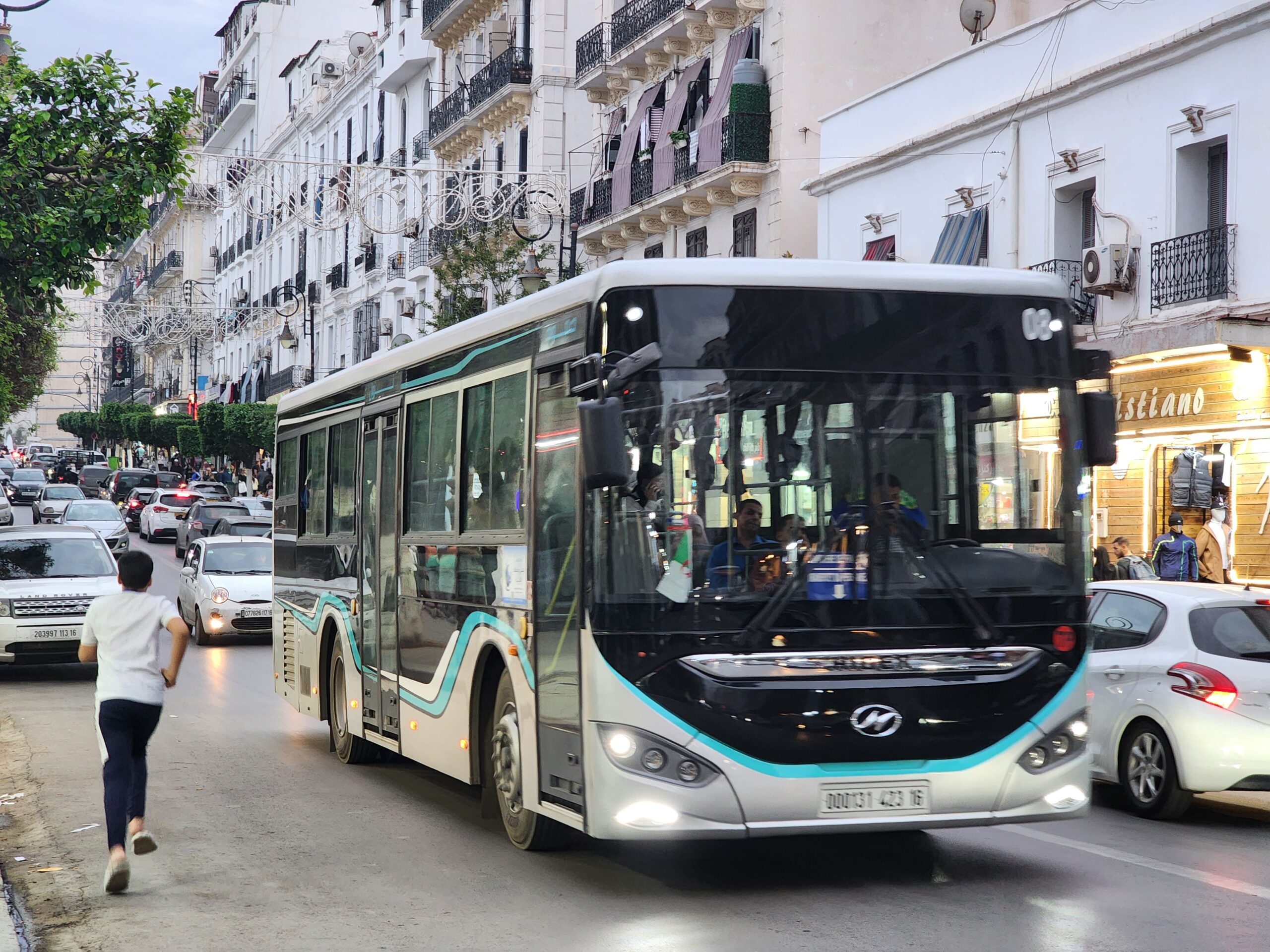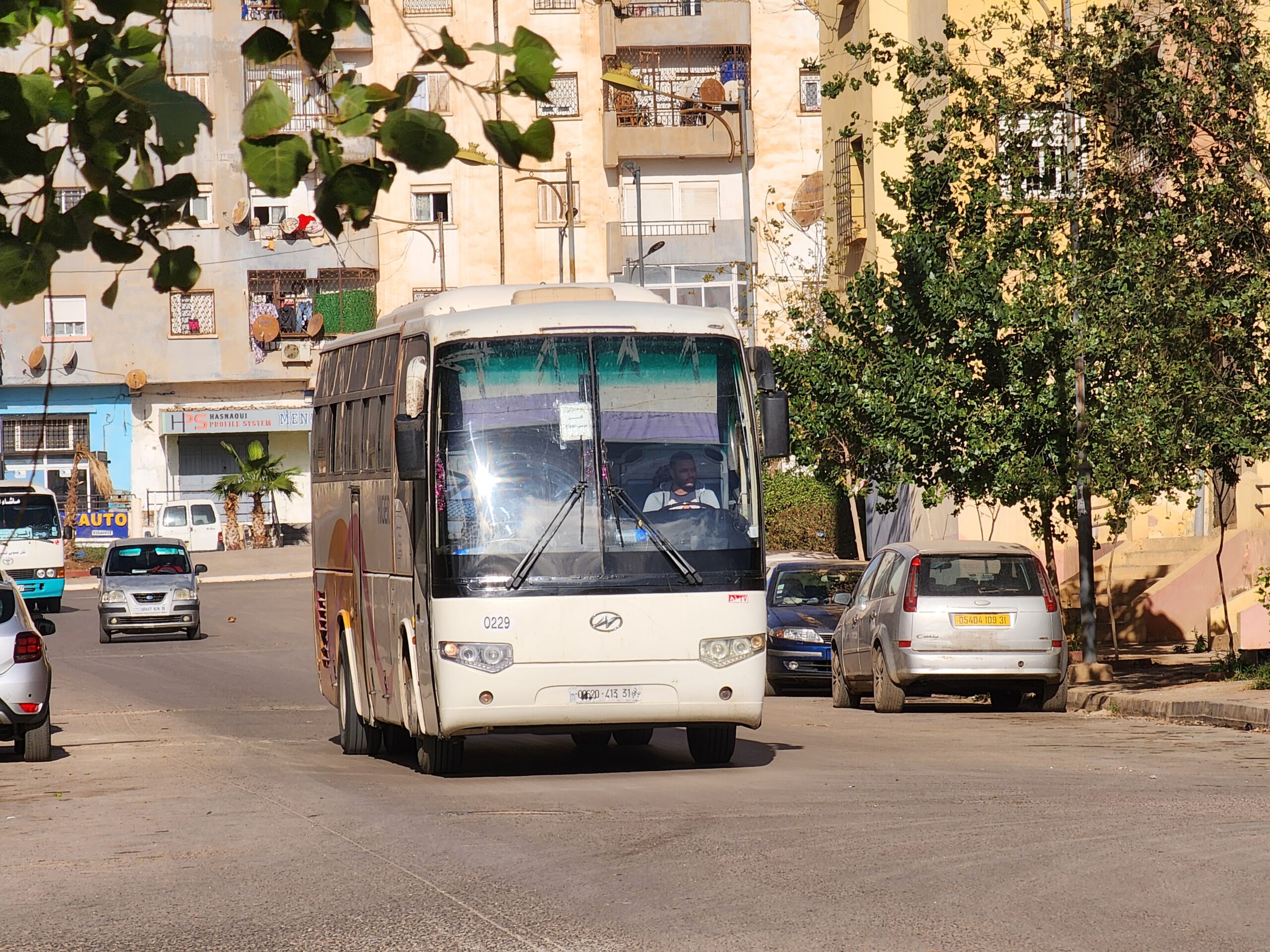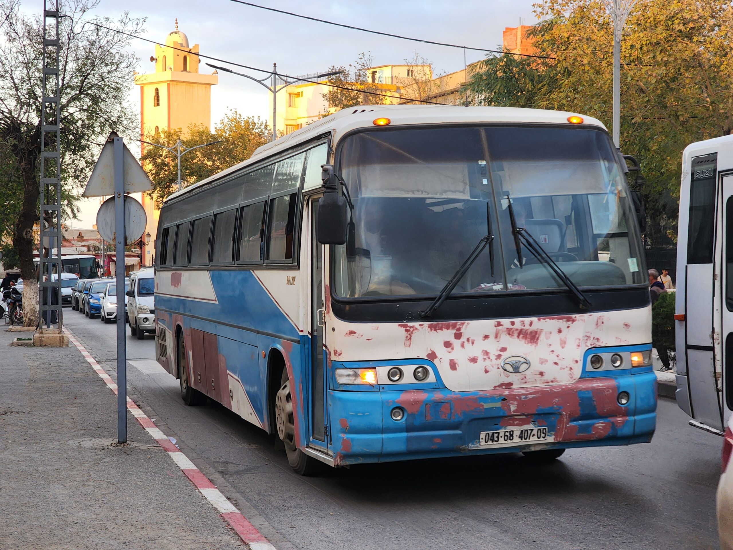 A na lince 163011 z Alžíru na předměstí Zeraldy potkáte korejské autobusy Hyundai (Aero City, Aero Town) v několika provedeních, které jsou také 15 – 20 let staré. Občas se vyskytnou i na lince 163003 na Staouli. Jízdné vás vyjde na 25 – 45 dinárů.