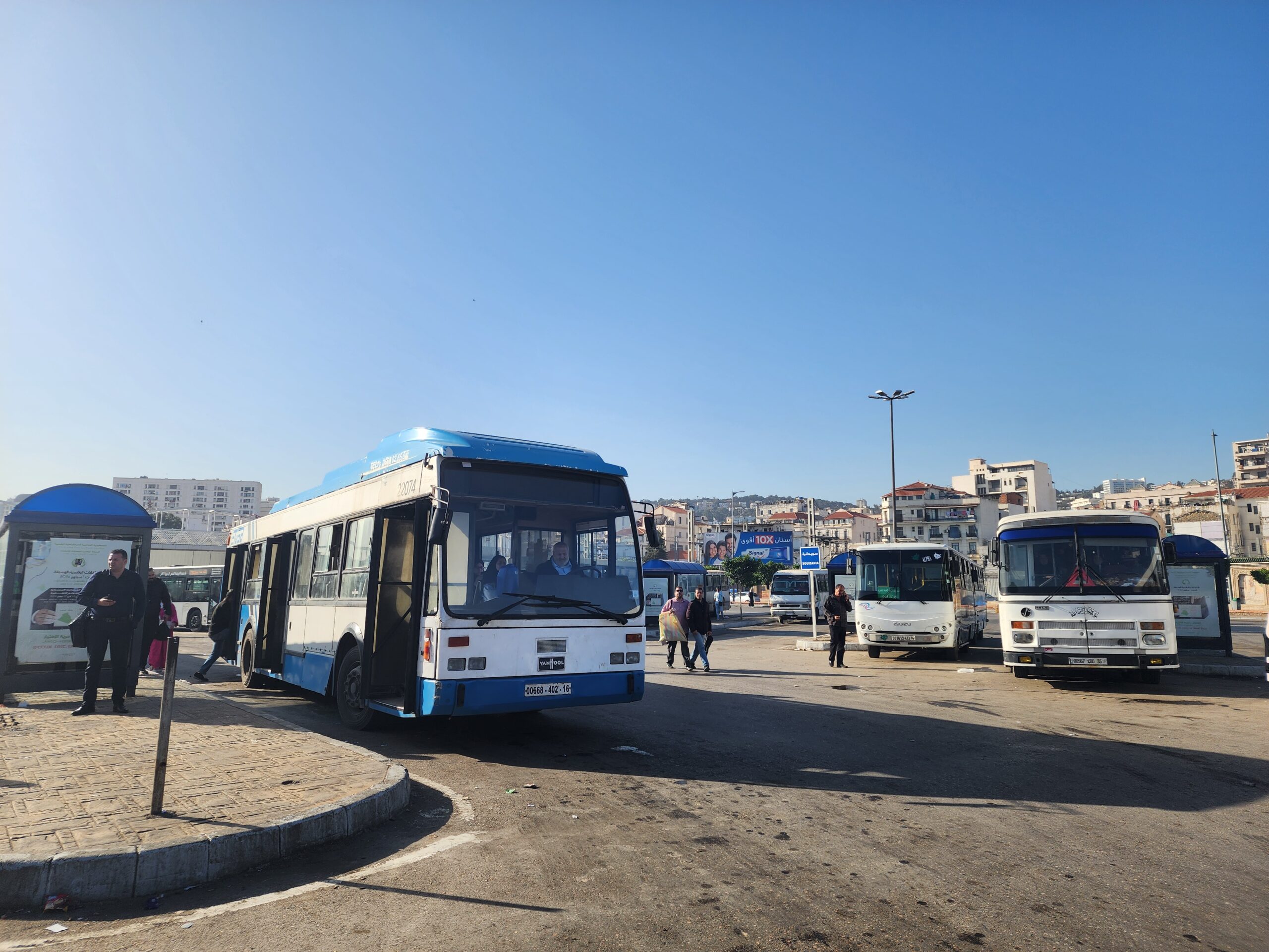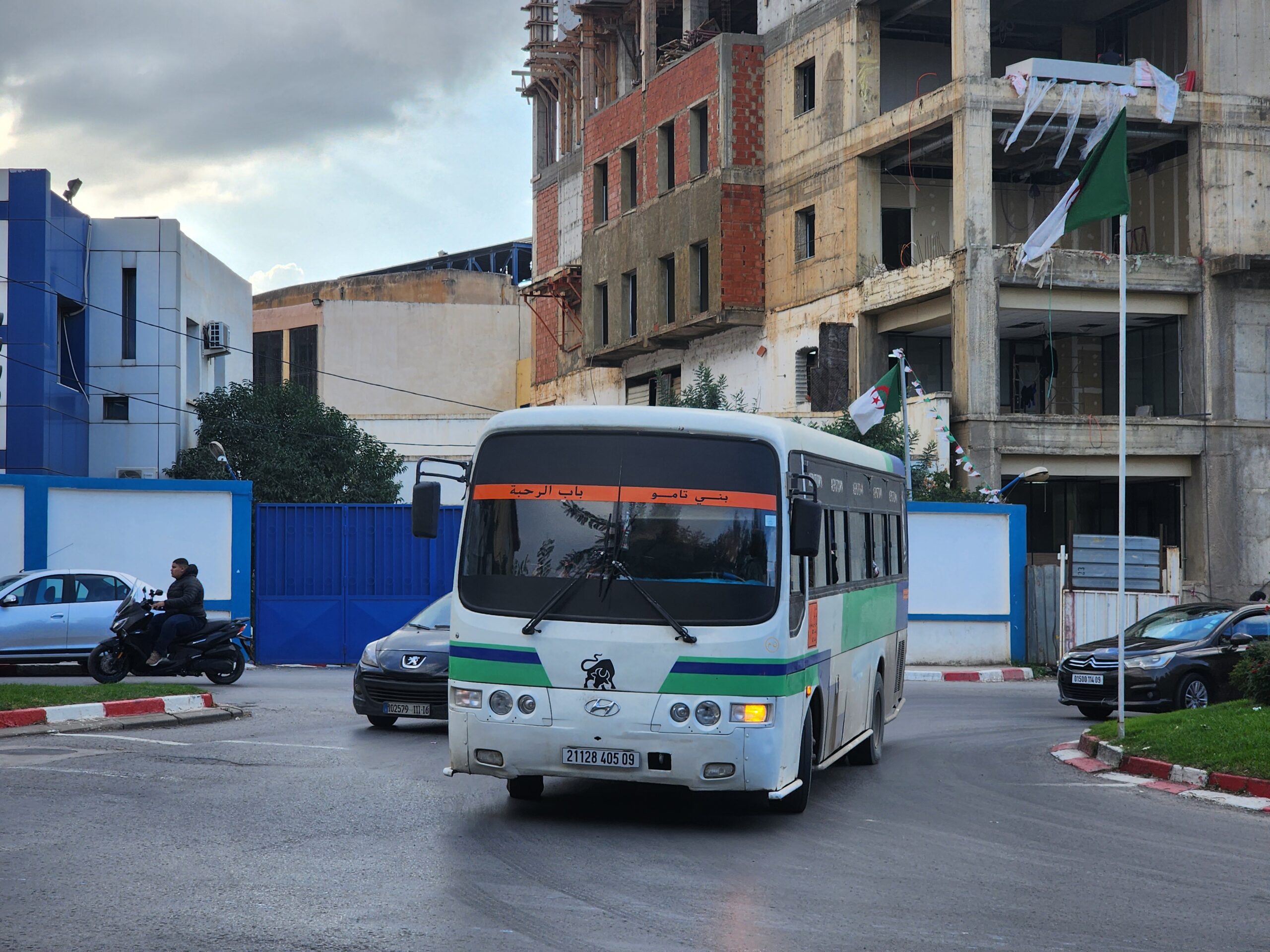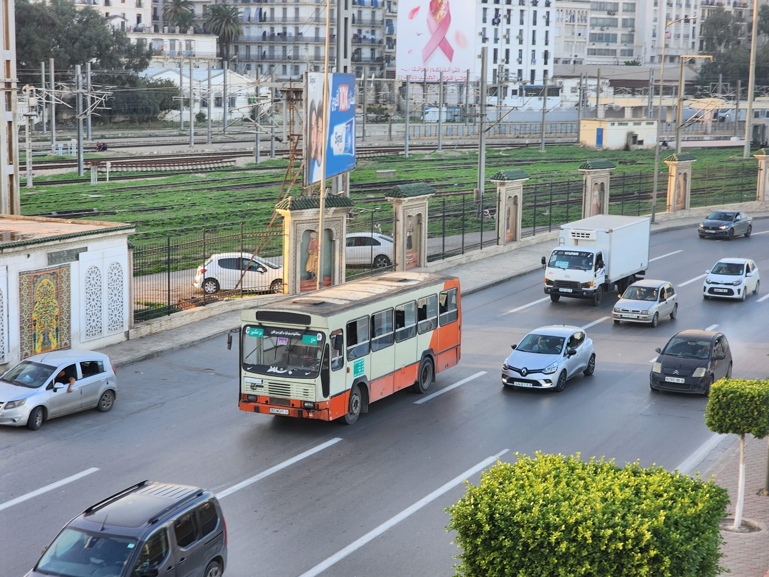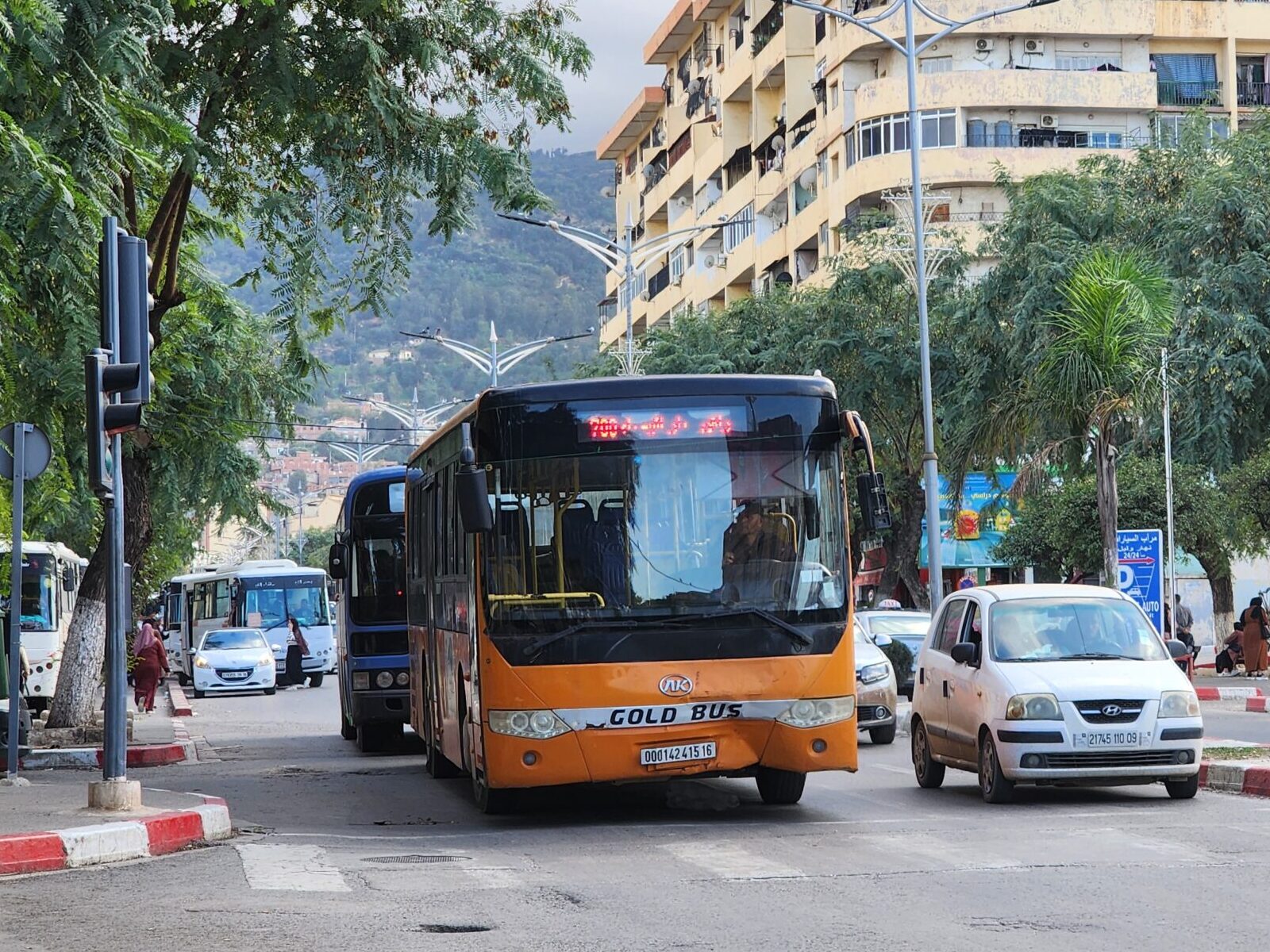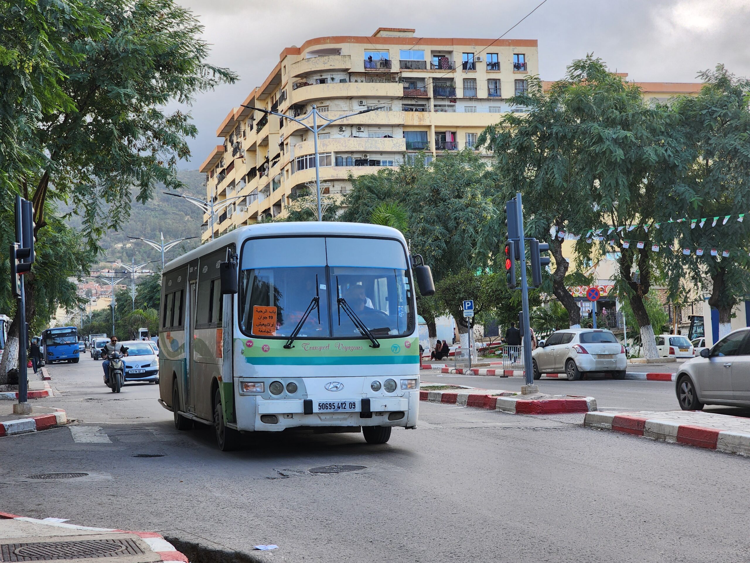 A na lince 163011 z Alžíru na předměstí Zeraldy potkáte korejské autobusy Hyundai (Aero City, Aero Town) v několika provedeních, které jsou také 15 – 20 let staré. Občas se vyskytnou i na lince 163003 na Staouli. Jízdné vás vyjde na 25 – 45 dinárů.