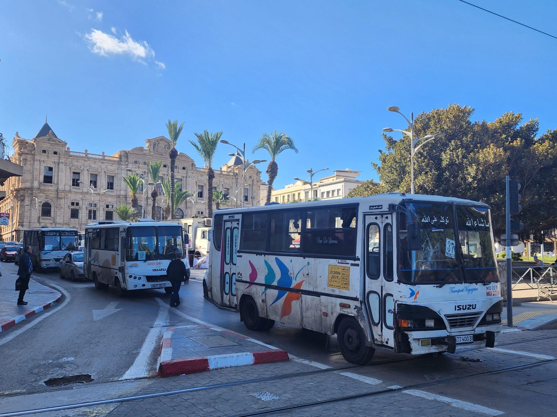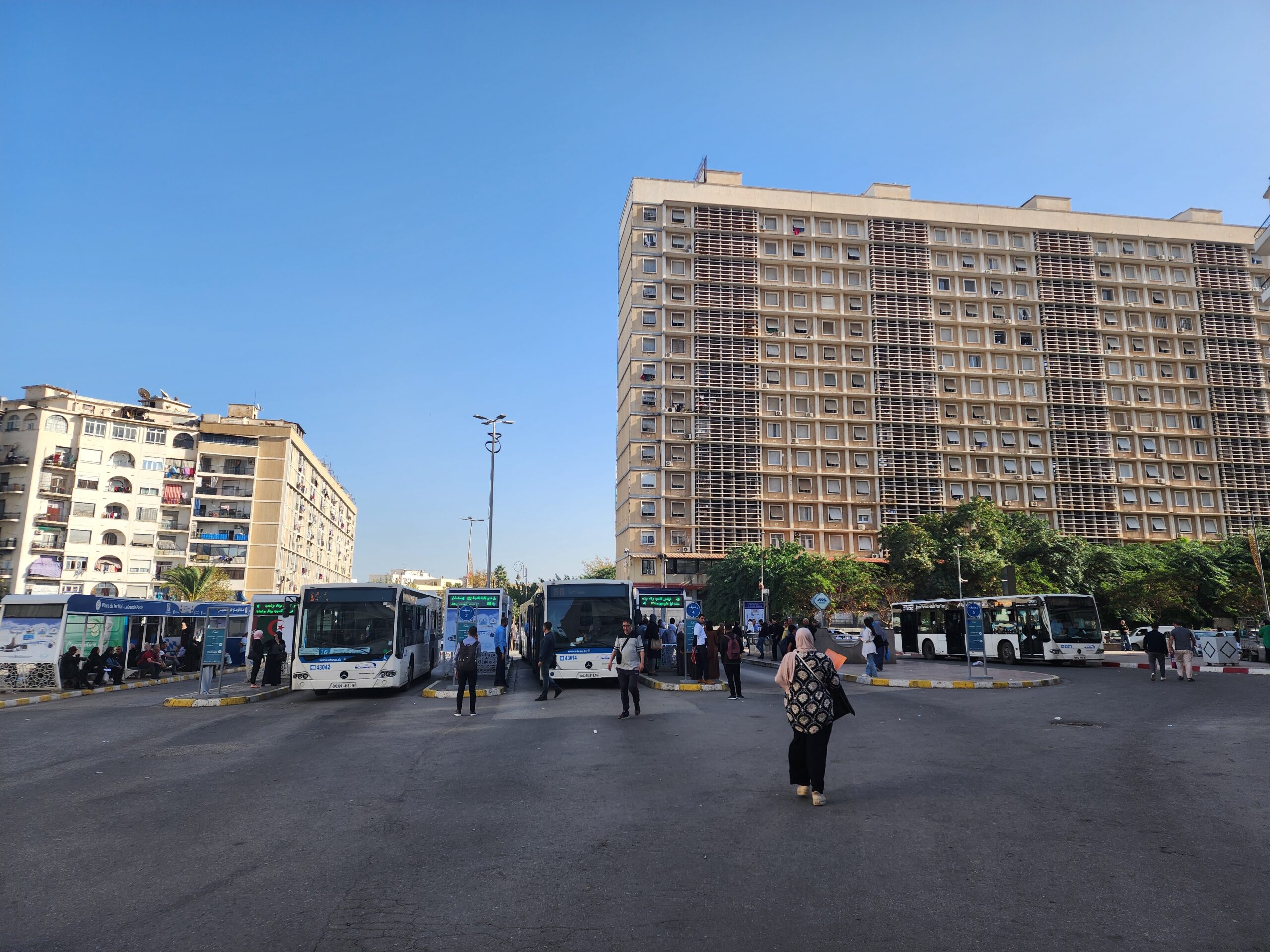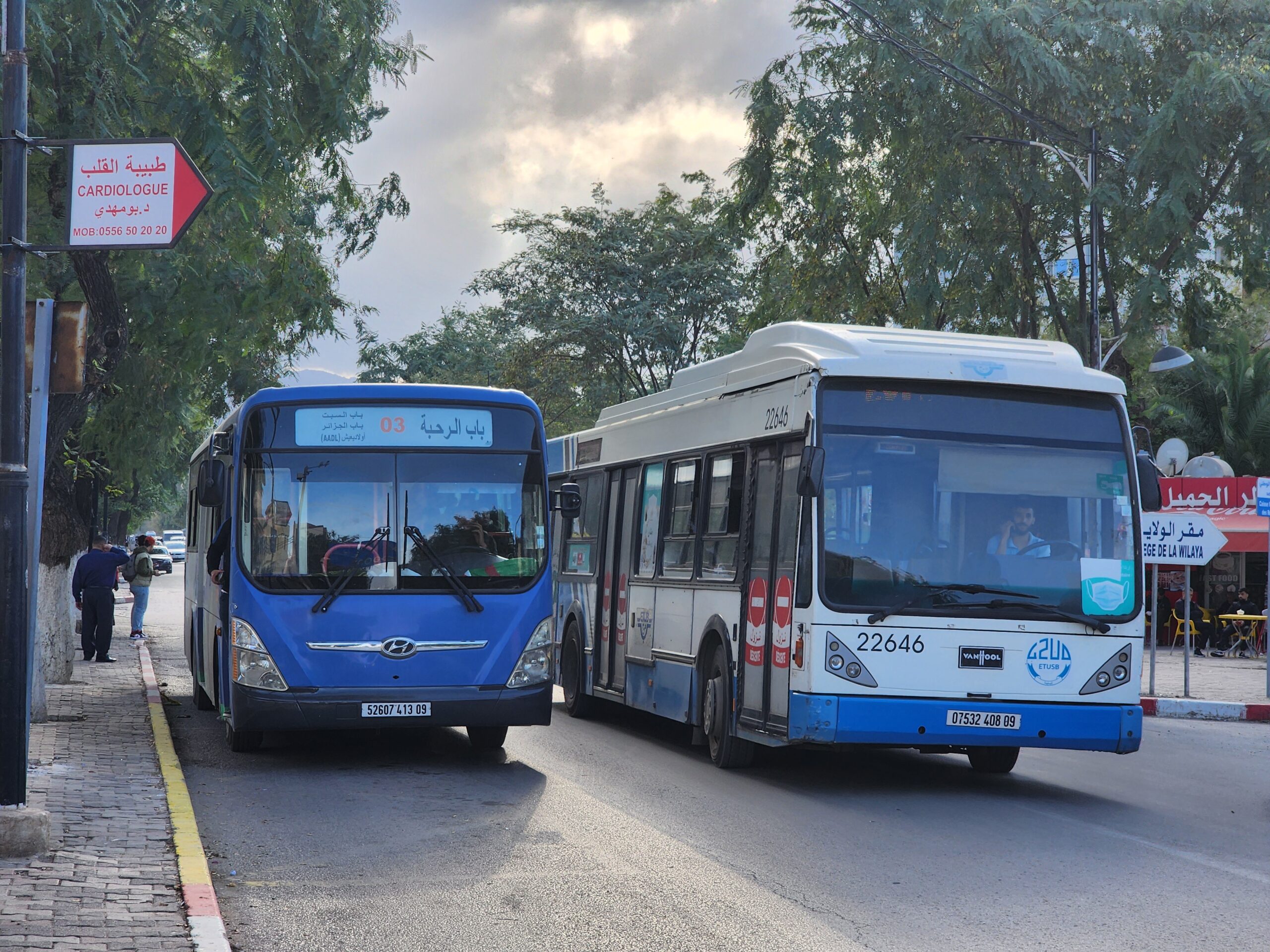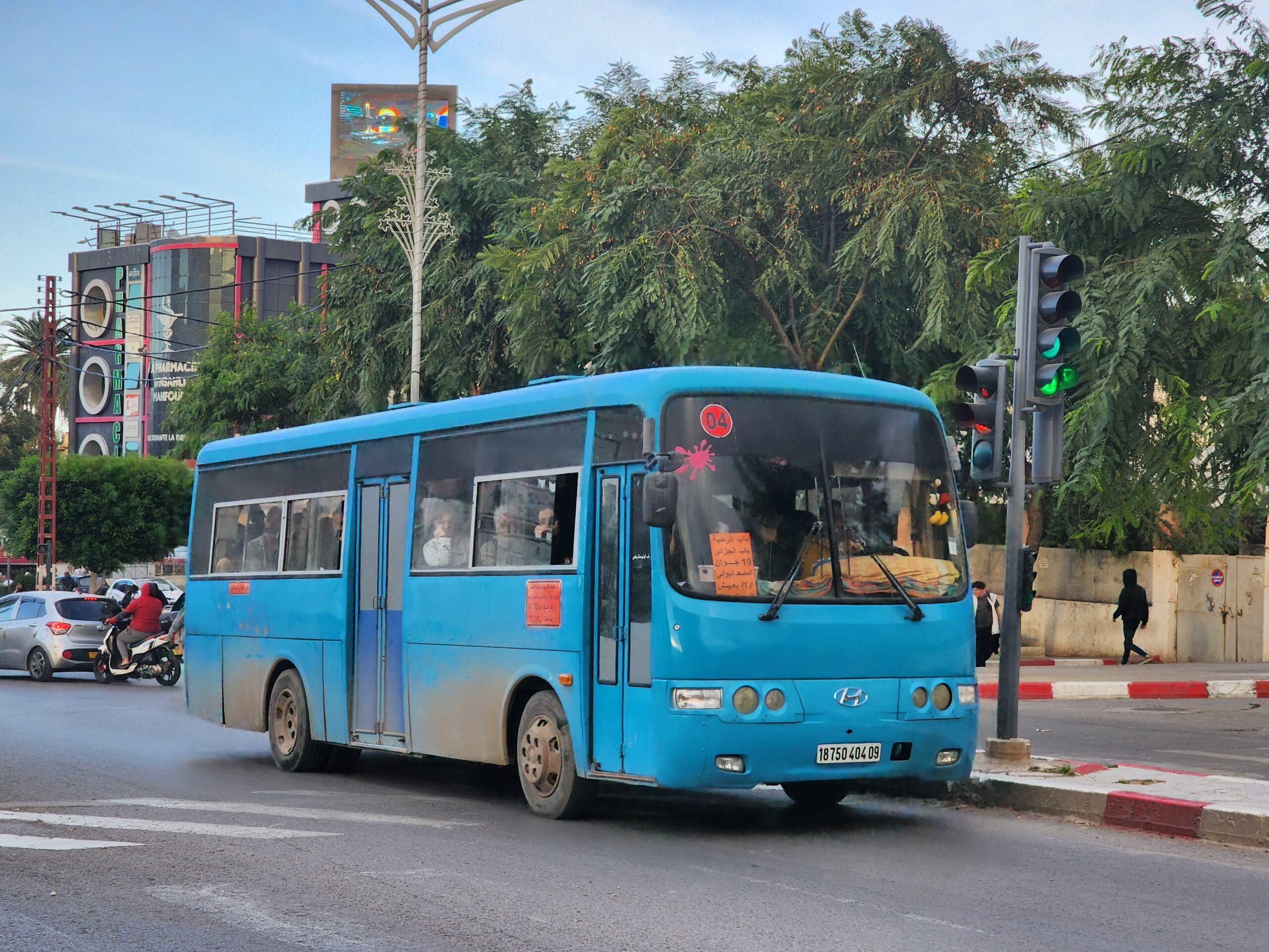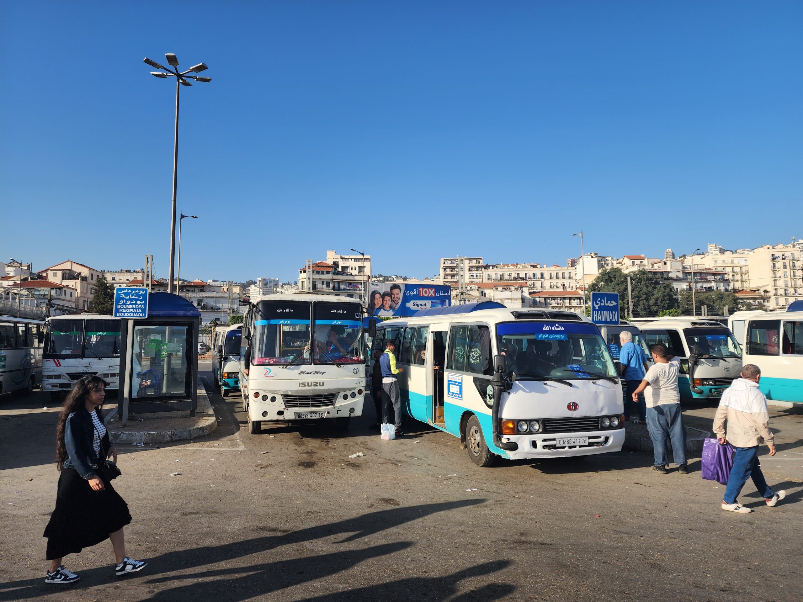 A na lince 163011 z Alžíru na předměstí Zeraldy potkáte korejské autobusy Hyundai (Aero City, Aero Town) v několika provedeních, které jsou také 15 – 20 let staré. Občas se vyskytnou i na lince 163003 na Staouli. Jízdné vás vyjde na 25 – 45 dinárů.