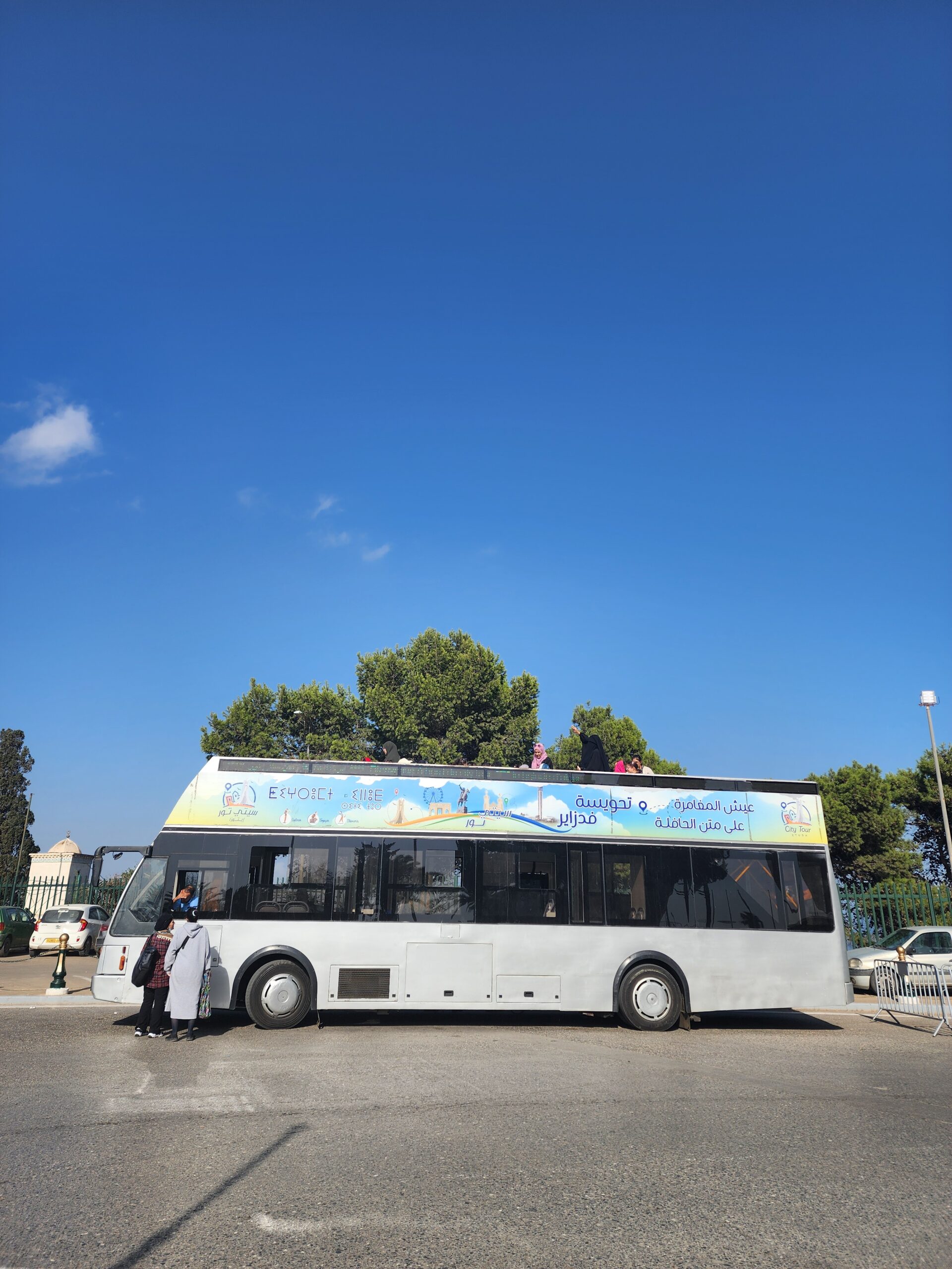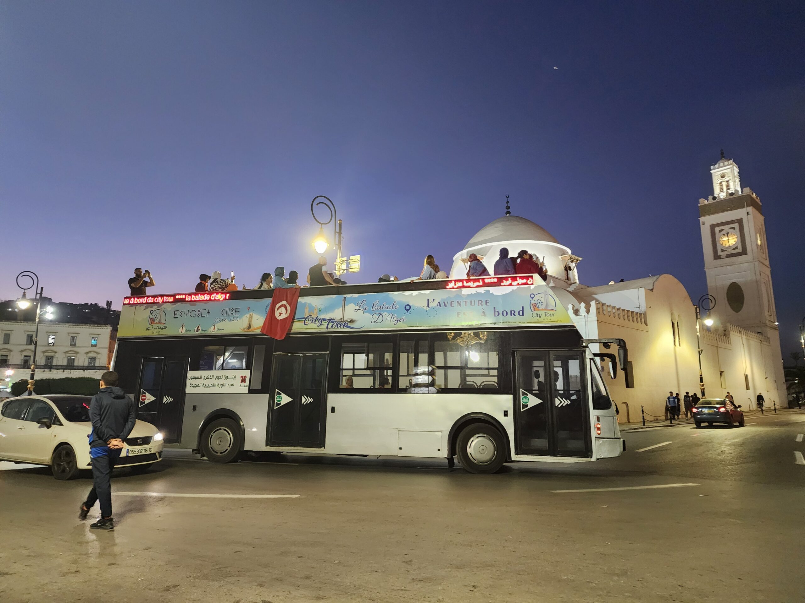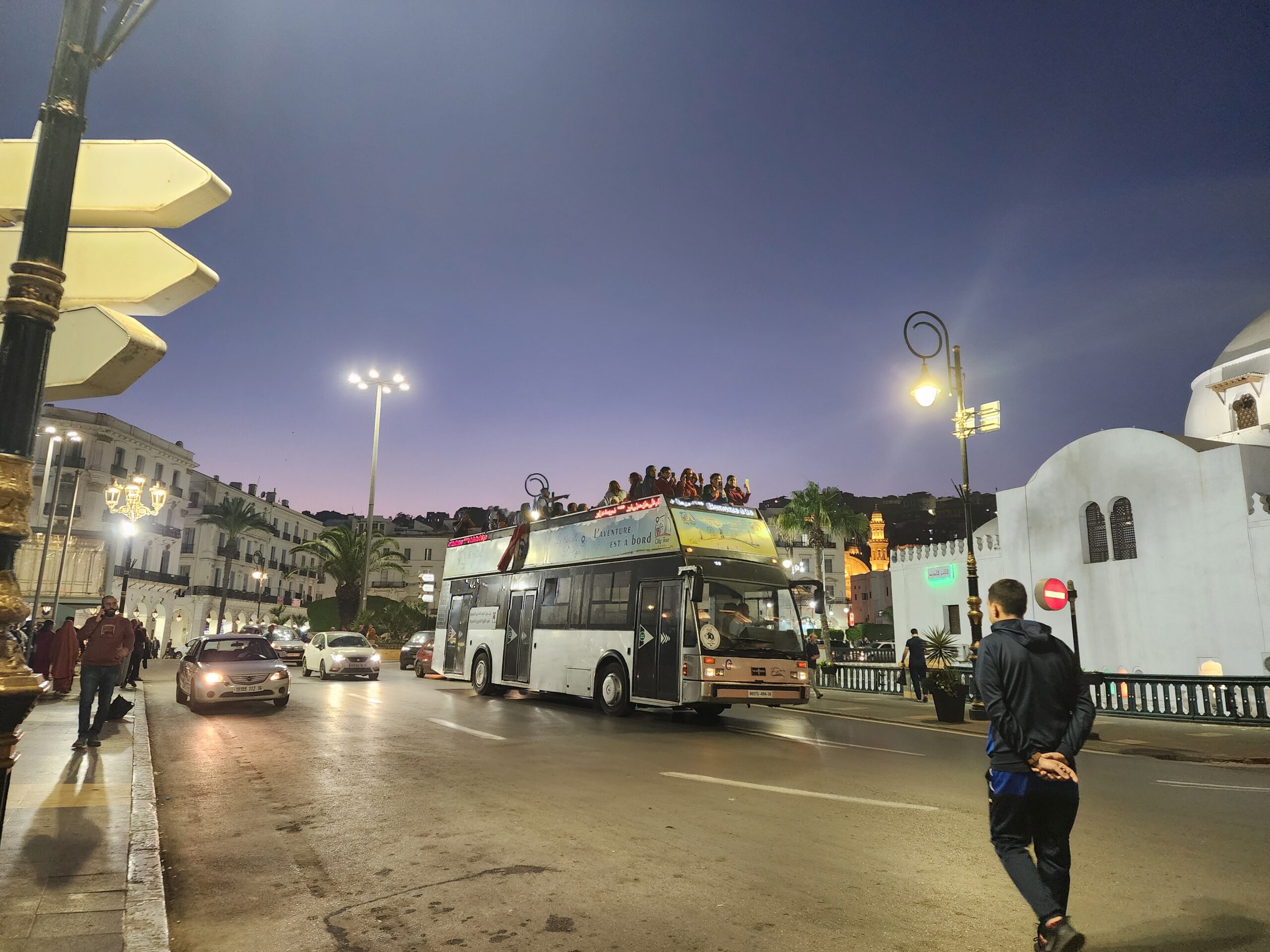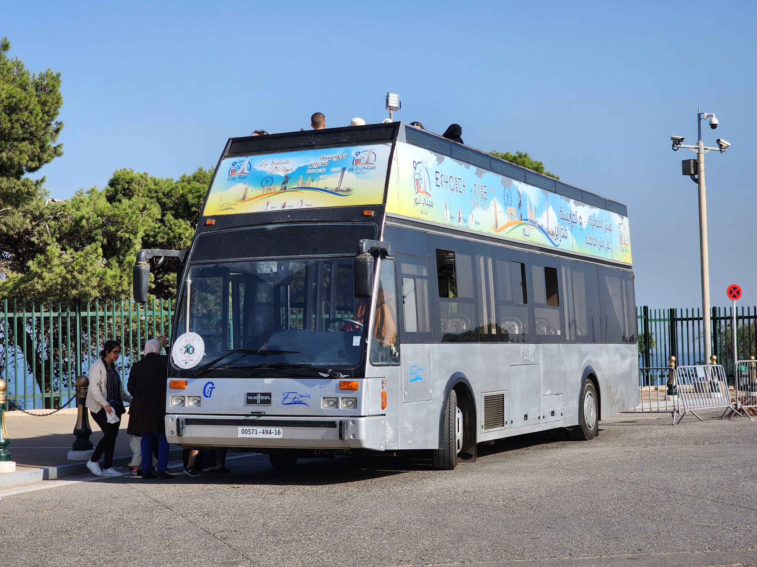 Po centru a turistických památkách Alžíru potkáte tyto dvoupatrové turistické autobusy od Van Hoolu z roku 1994 nebo novější SNVI – také dvoupatrové.
