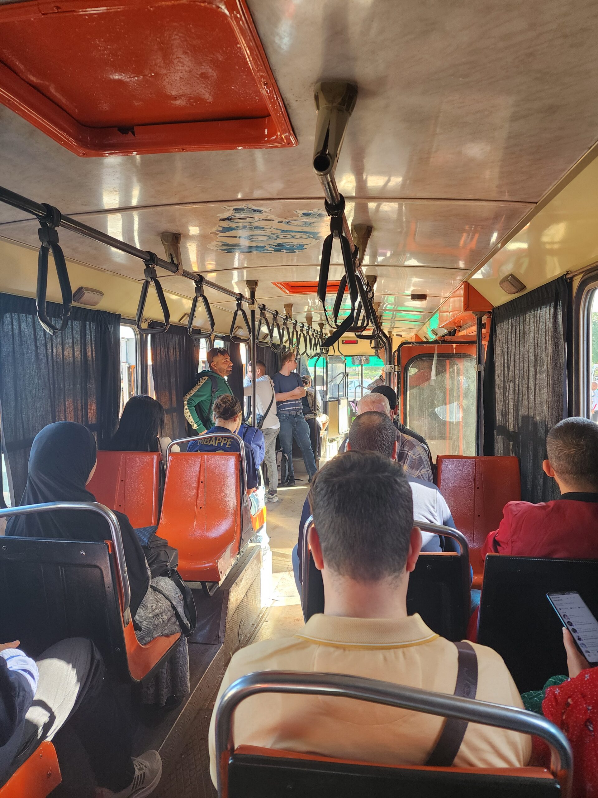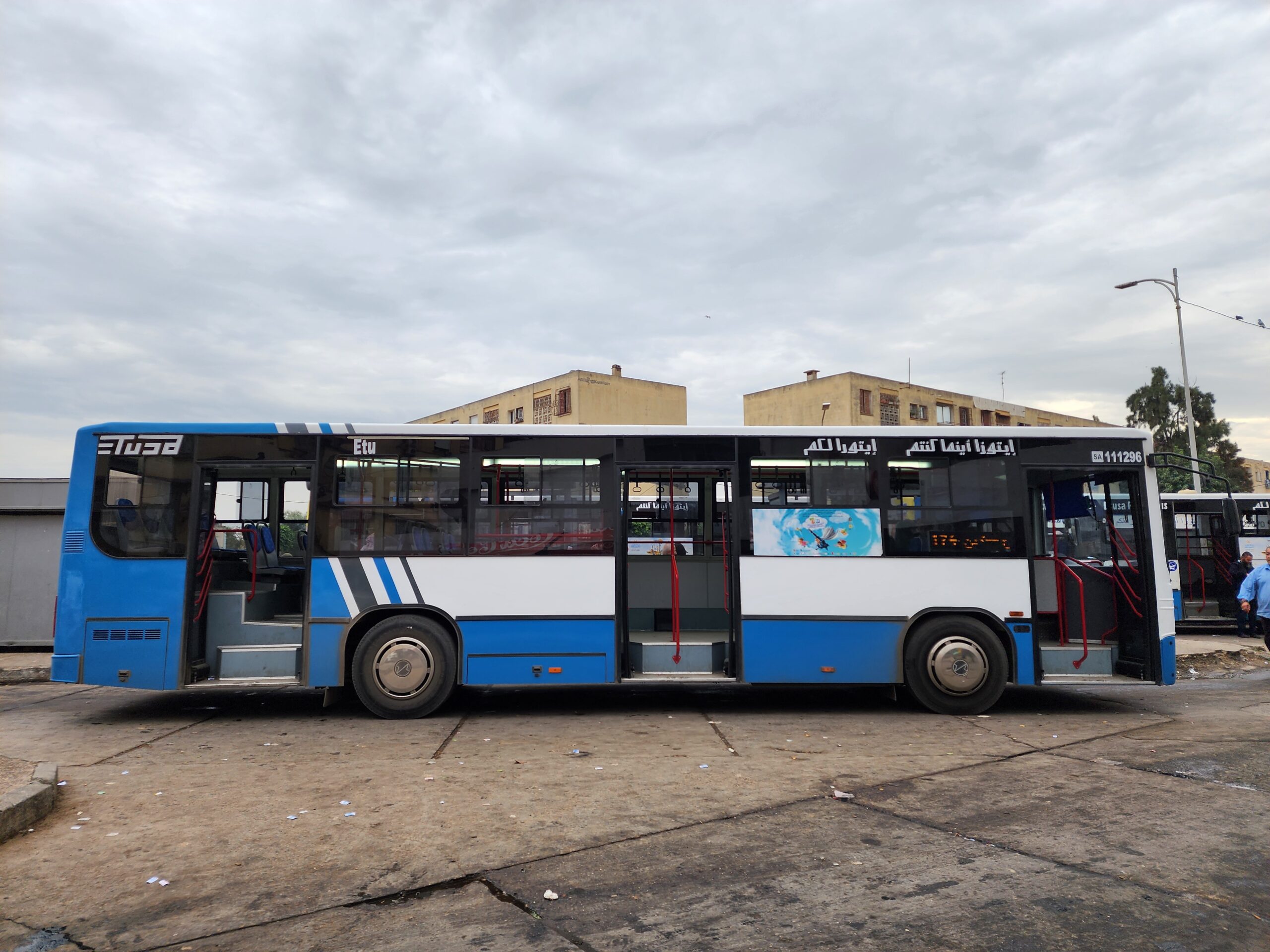 Co se týče provozu, u Etusy nastupujete opět všemi dveřmi a ve vozidle naleznete průvodčího, který vám vydá jízdenku buď za 20 (= cca 3,5 Kč), 30 nebo 40 dinárů. Stejně to funguje i u soukromých linek. Autobusy Etusy jezdí na rozdíl od soukromých autobusů až do cca 20.30 a v provozu je také 19 nočních linek, které jsou v provozu od 18.50 do 0.50. Provoz začínají kolem 5.30. Na wikipedii naleznete i čísla linek a přibližný rozsah provozu.