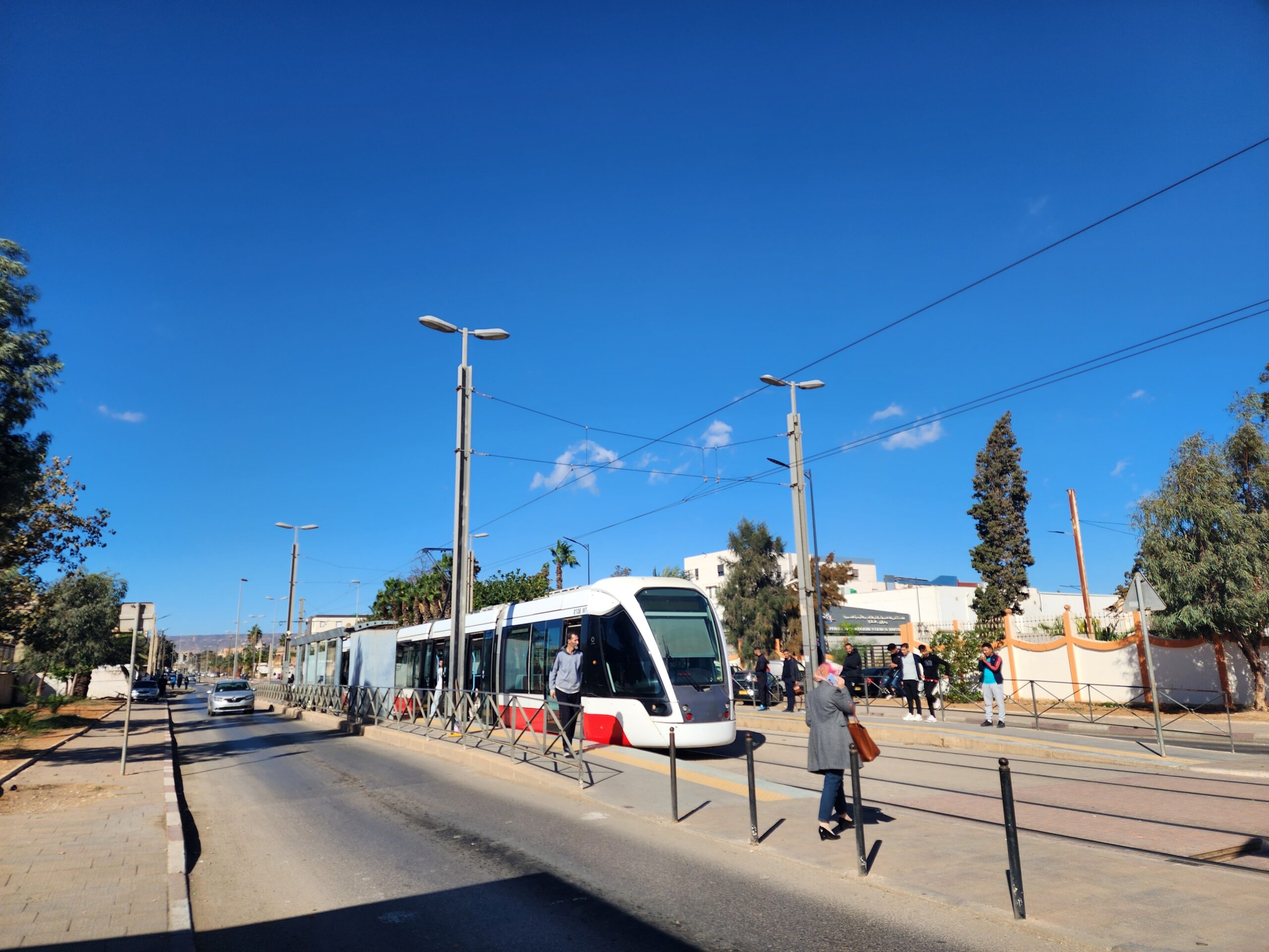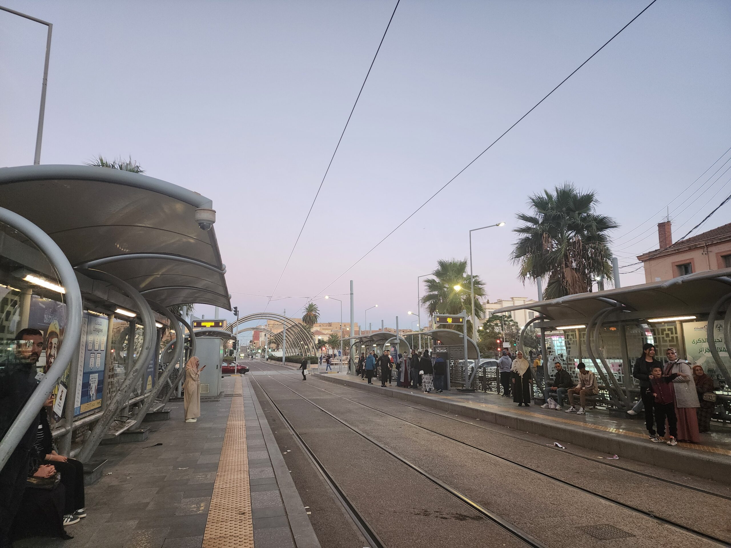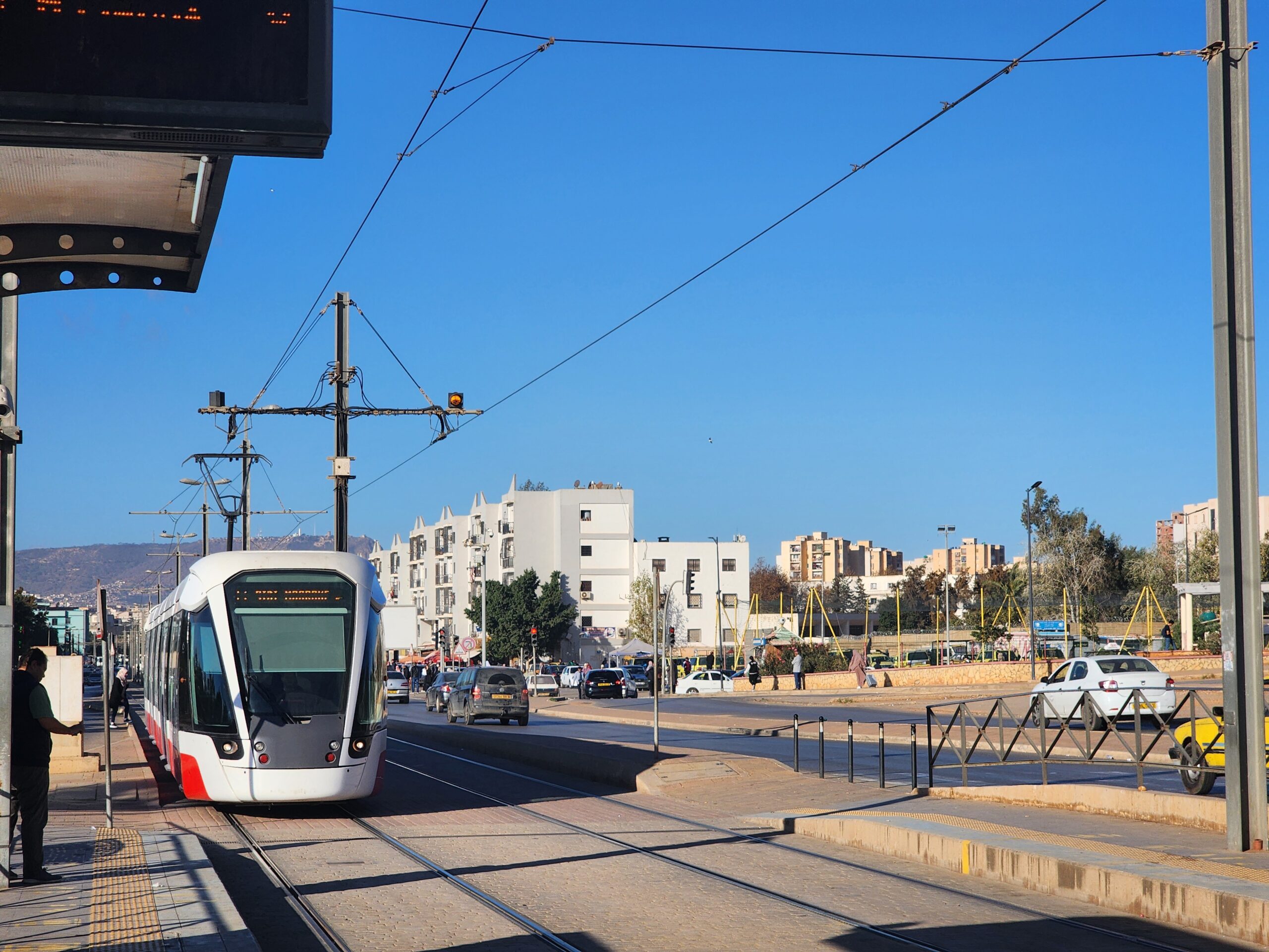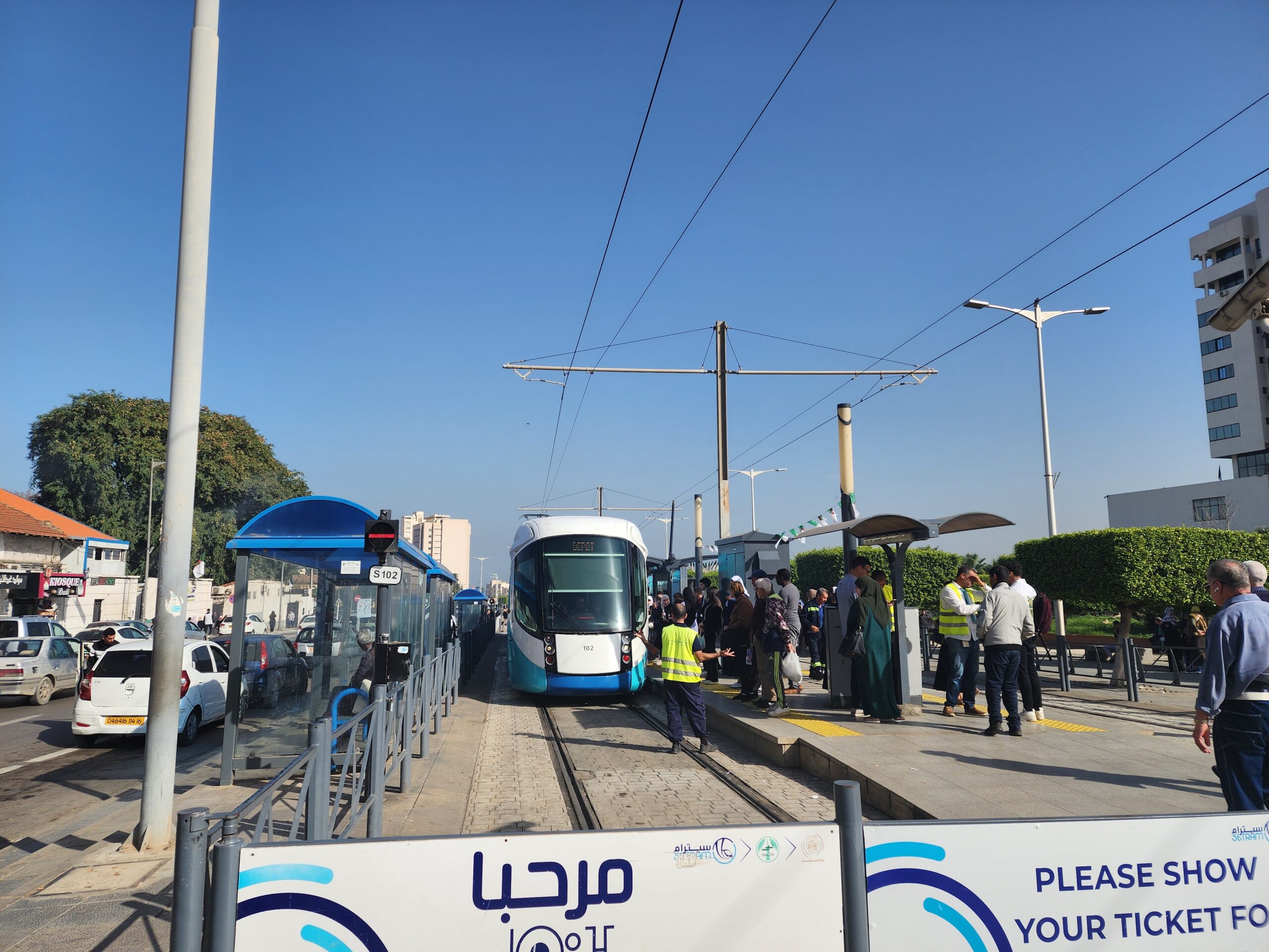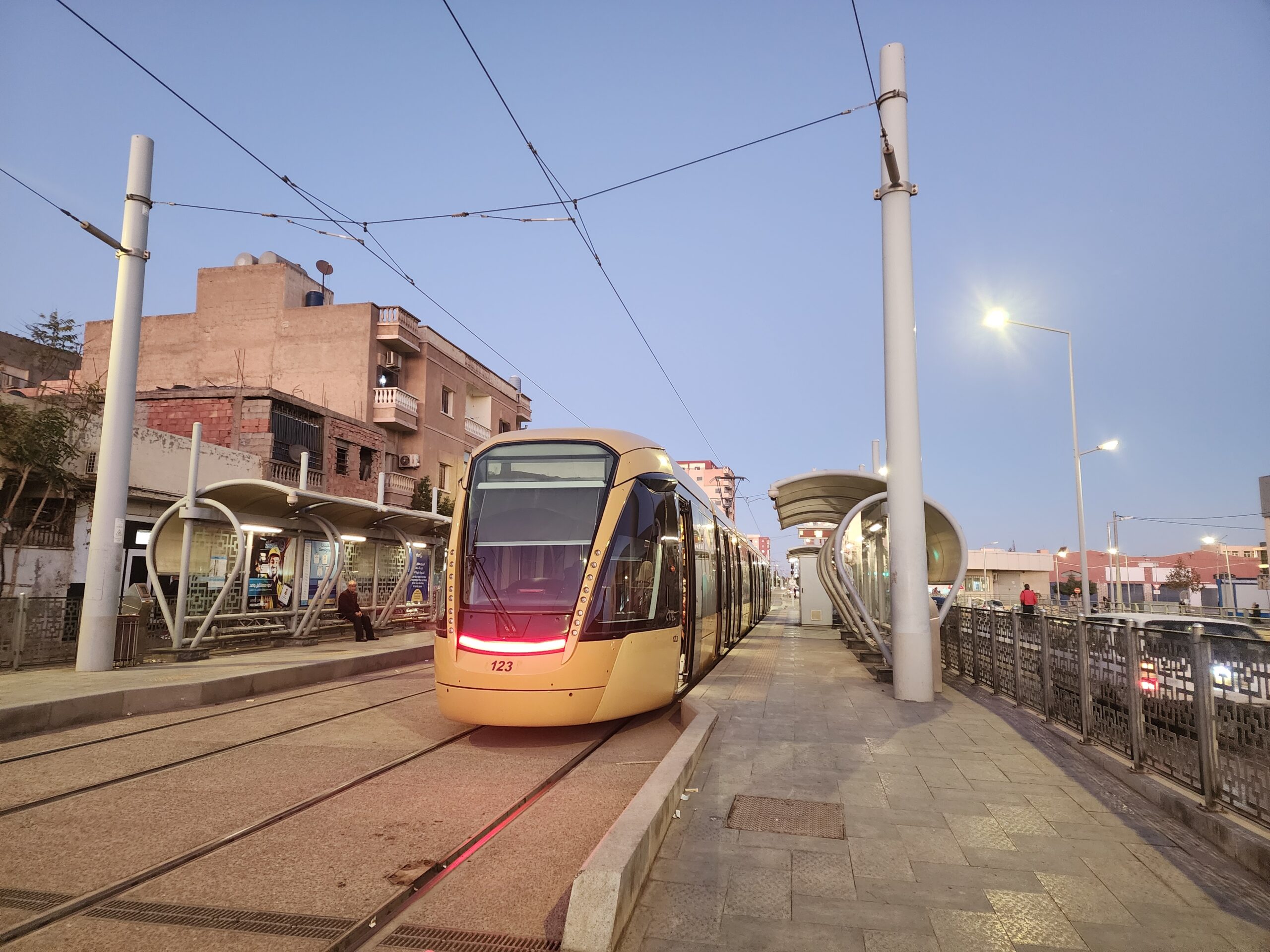 Tramvaje jezdí v intervalu 5 – 10 minut od 5.30 do 23.30 a na zastávkách zjistíte, za jak dlouho přijedou. Jízdné vás vyjde na 30 dinárů, tedy cca 5 Kč. Jízdenku opět koupíte buď v budce na zastávce nebo v automatu na zastávce (tu si ale musíte označit v tramvaji). Na rozdíl od autobusů jsou tramvaje relativně prázdnější a nejsou přeplněné. Celkem tu jezdí 30 tramvají Cital Citadis 402, které se vyrabí v Alžírsku v Annabě, které nápadně připomínají tramvaje Alstom Citadis 402, ze kterých jsou odvozené.