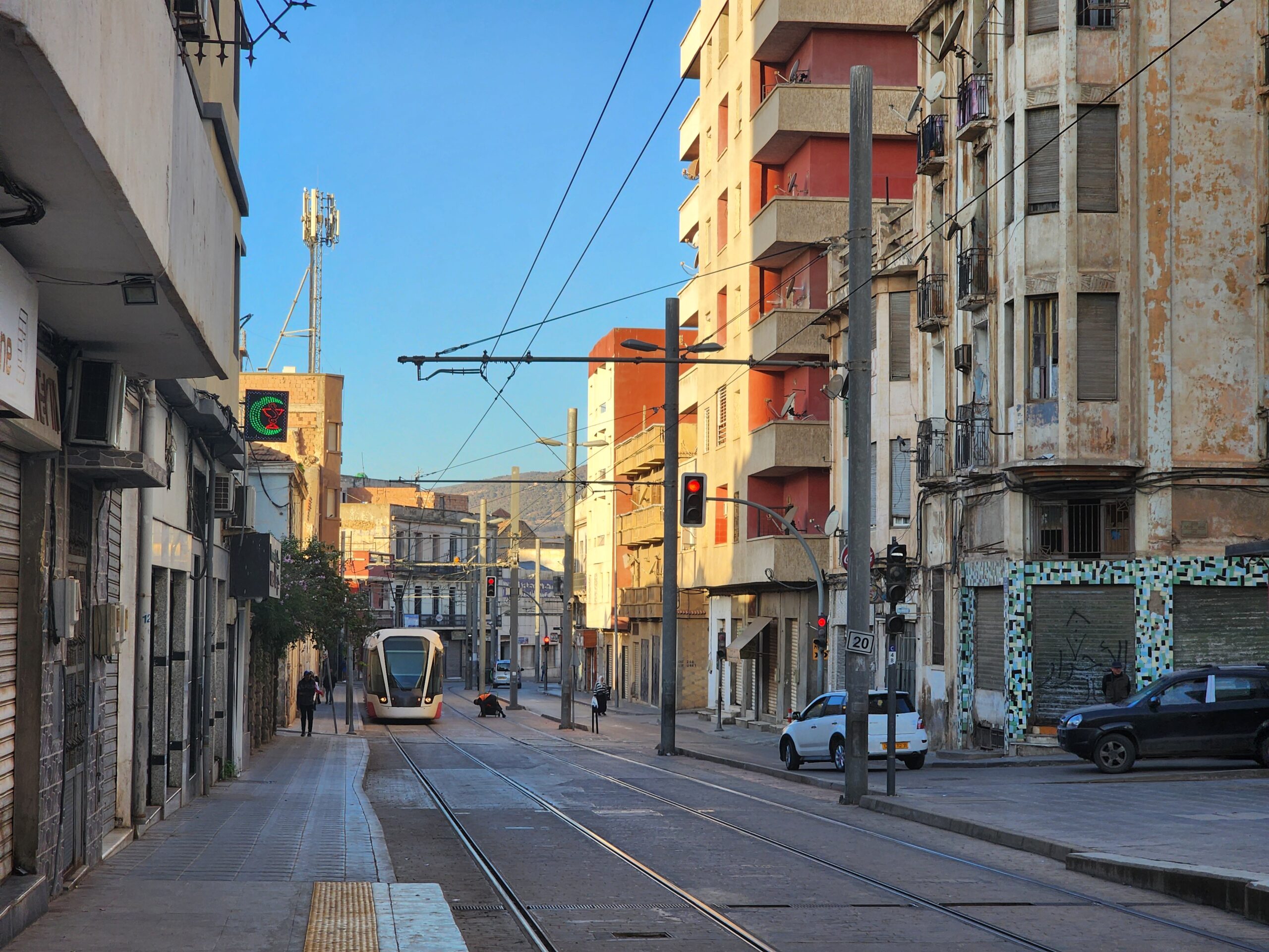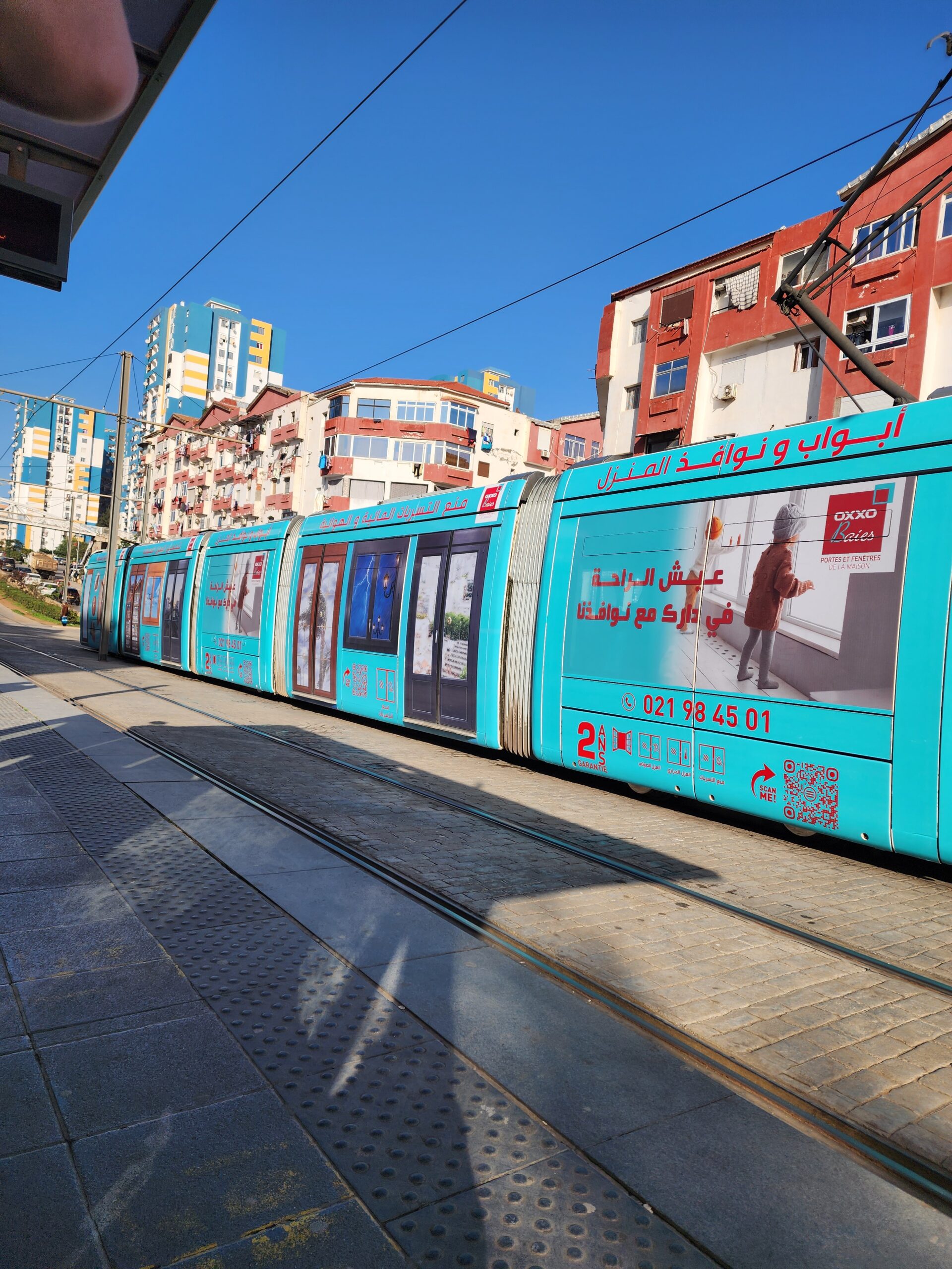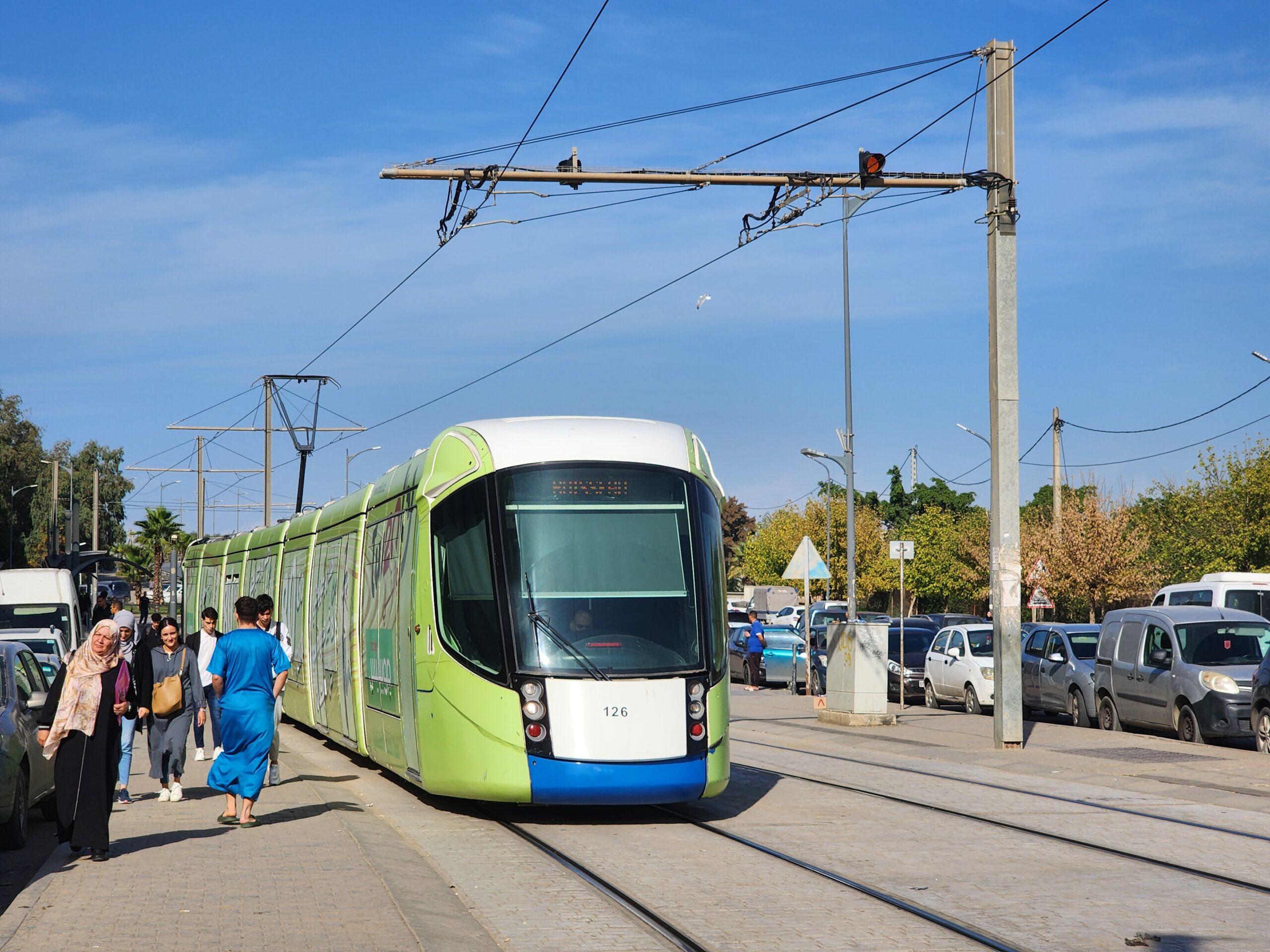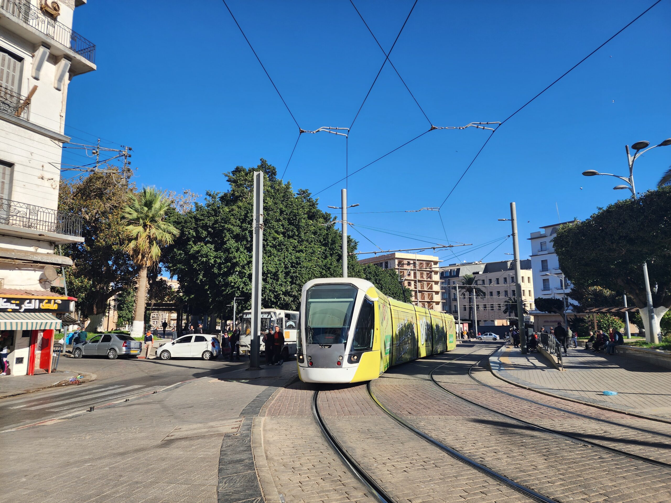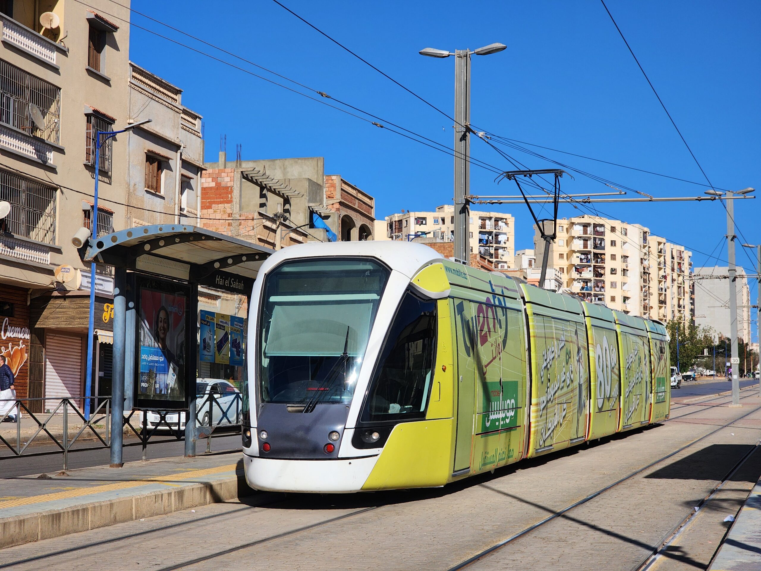 Tramvaje jezdí v intervalu 5 – 10 minut od 5.30 do 23.30 a na zastávkách zjistíte, za jak dlouho přijedou. Jízdné vás vyjde na 30 dinárů, tedy cca 5 Kč. Jízdenku opět koupíte buď v budce na zastávce nebo v automatu na zastávce (tu si ale musíte označit v tramvaji). Na rozdíl od autobusů jsou tramvaje relativně prázdnější a nejsou přeplněné. Celkem tu jezdí 30 tramvají Cital Citadis 402, které se vyrabí v Alžírsku v Annabě, které nápadně připomínají tramvaje Alstom Citadis 402, ze kterých jsou odvozené.