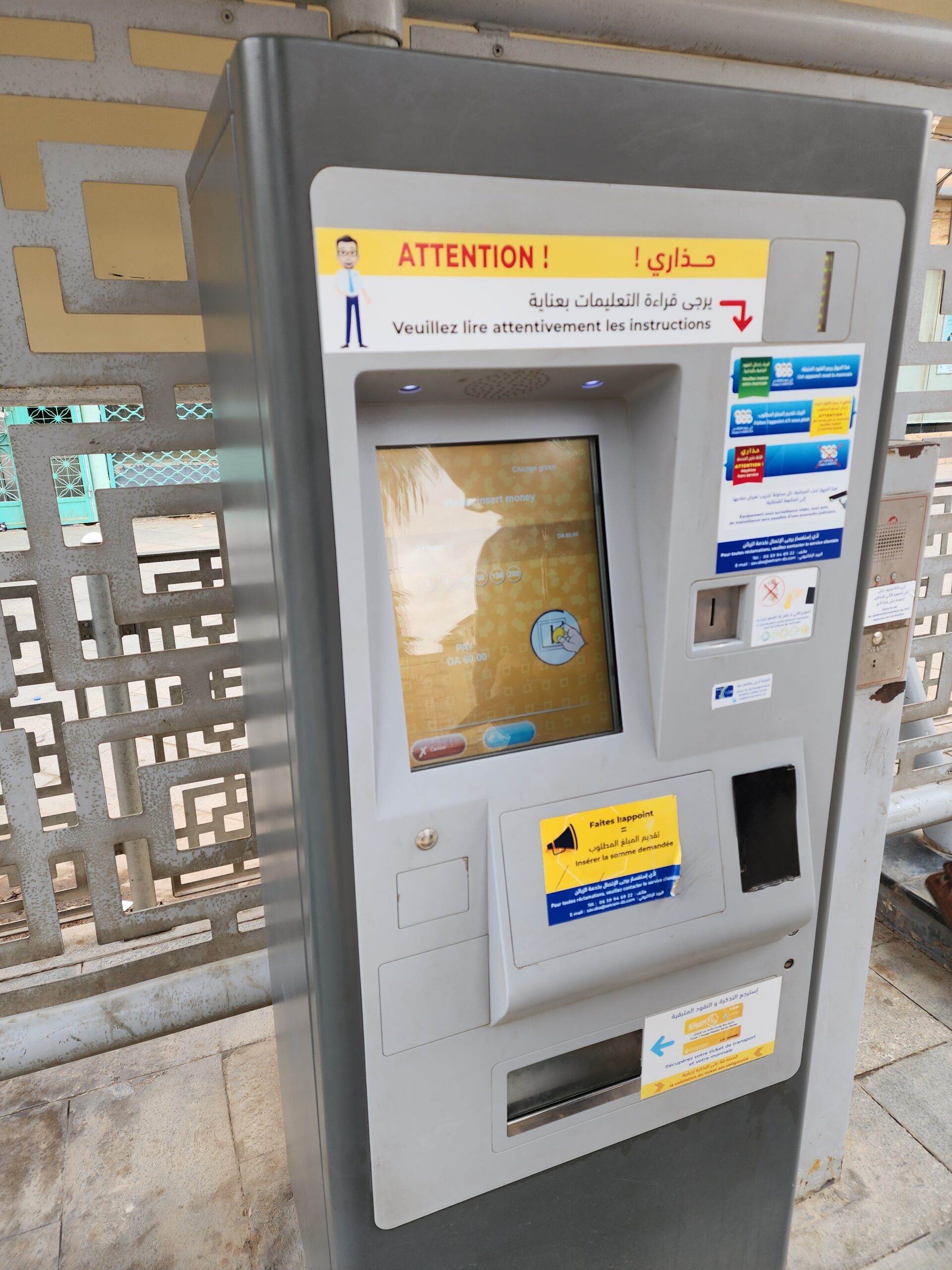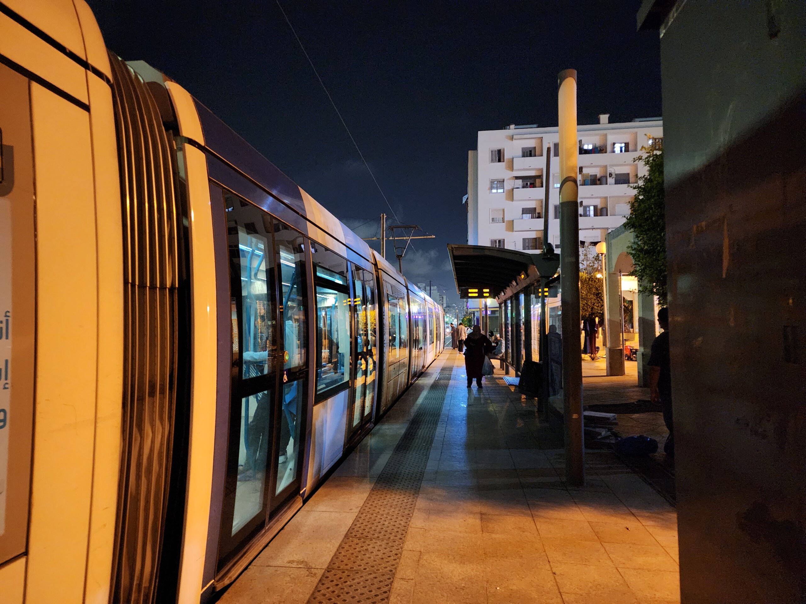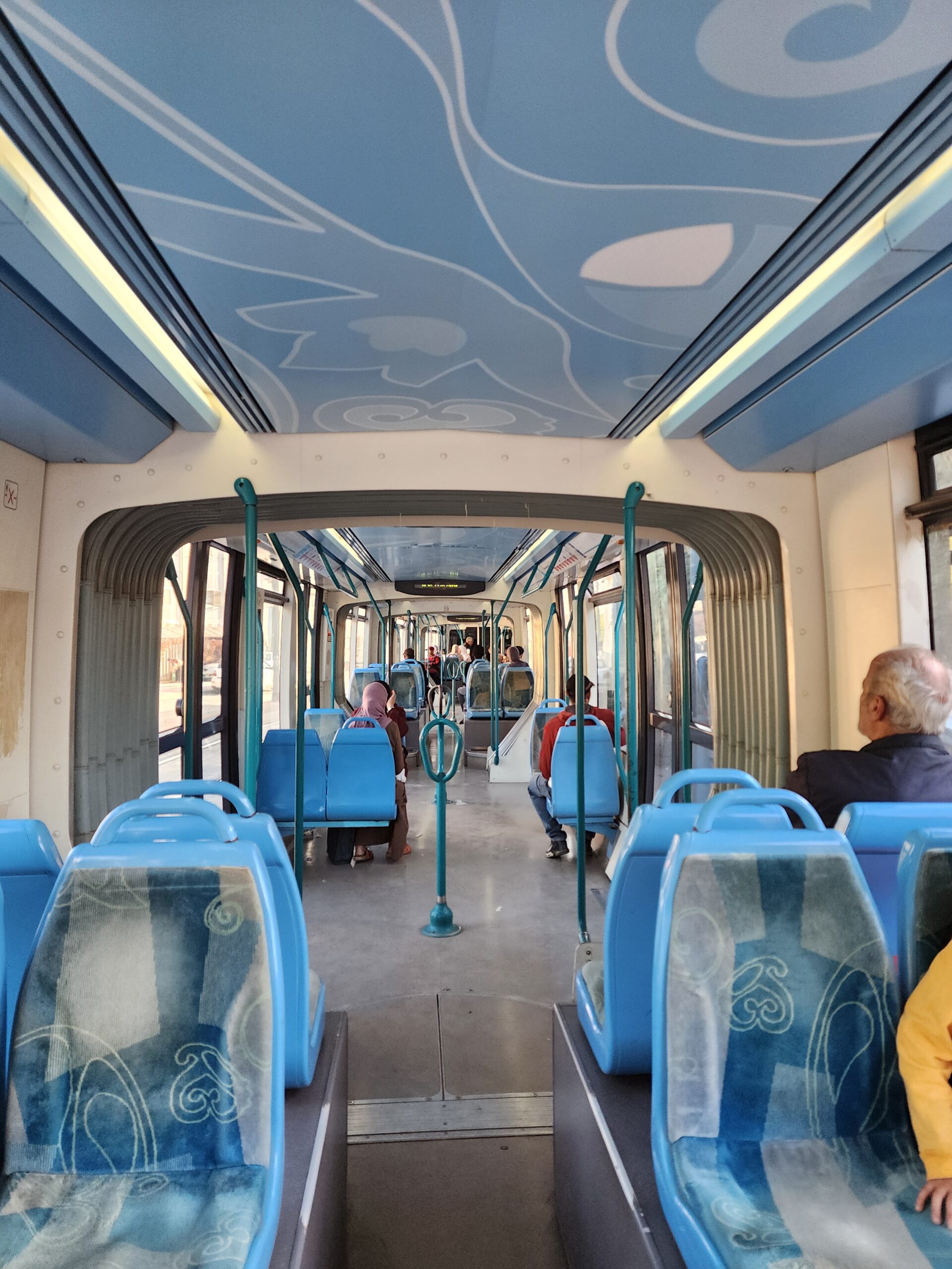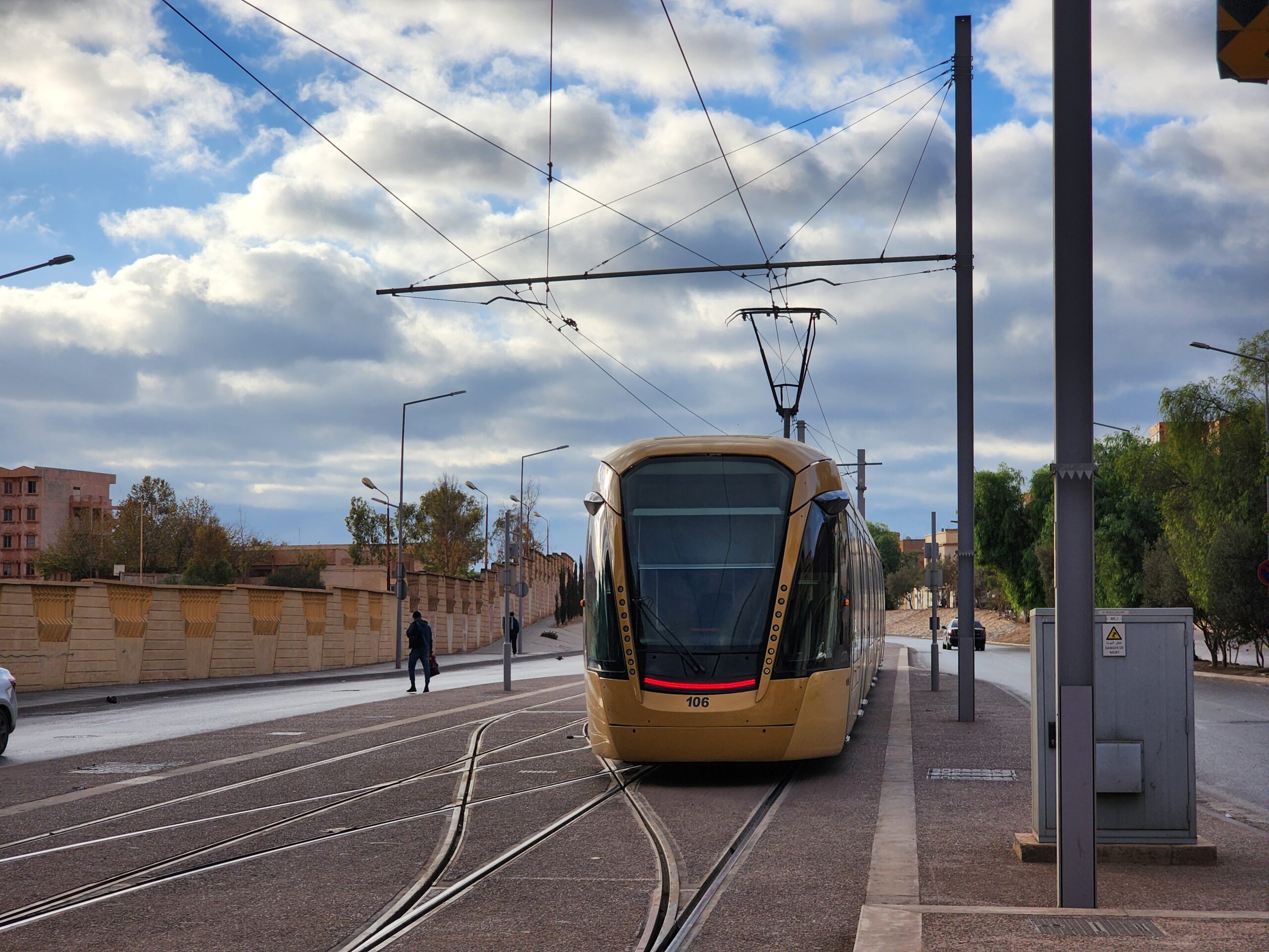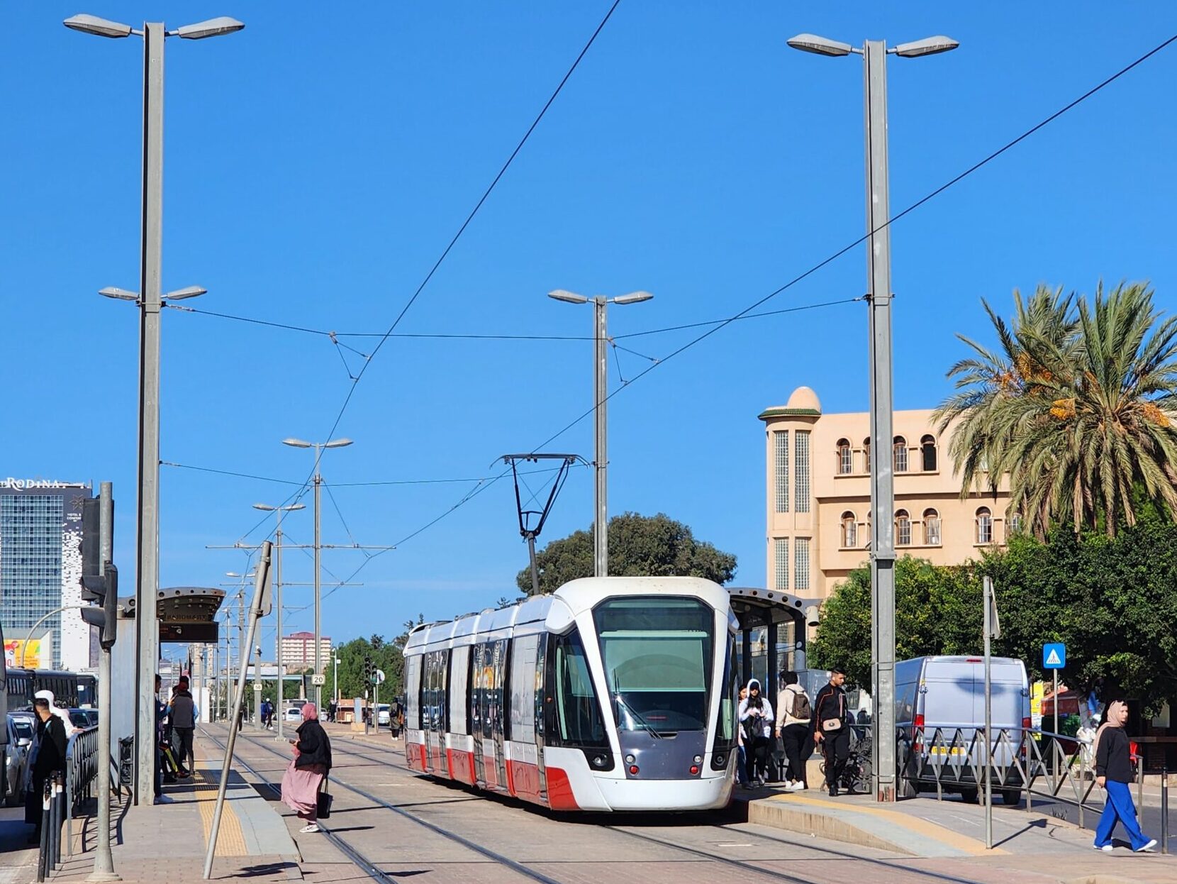 Tramvaje jezdí v intervalu 5 – 10 minut od 5.30 do 23.30 a na zastávkách zjistíte, za jak dlouho přijedou. Jízdné vás vyjde na 30 dinárů, tedy cca 5 Kč. Jízdenku opět koupíte buď v budce na zastávce nebo v automatu na zastávce (tu si ale musíte označit v tramvaji). Na rozdíl od autobusů jsou tramvaje relativně prázdnější a nejsou přeplněné. Celkem tu jezdí 30 tramvají Cital Citadis 402, které se vyrabí v Alžírsku v Annabě, které nápadně připomínají tramvaje Alstom Citadis 402, ze kterých jsou odvozené.
