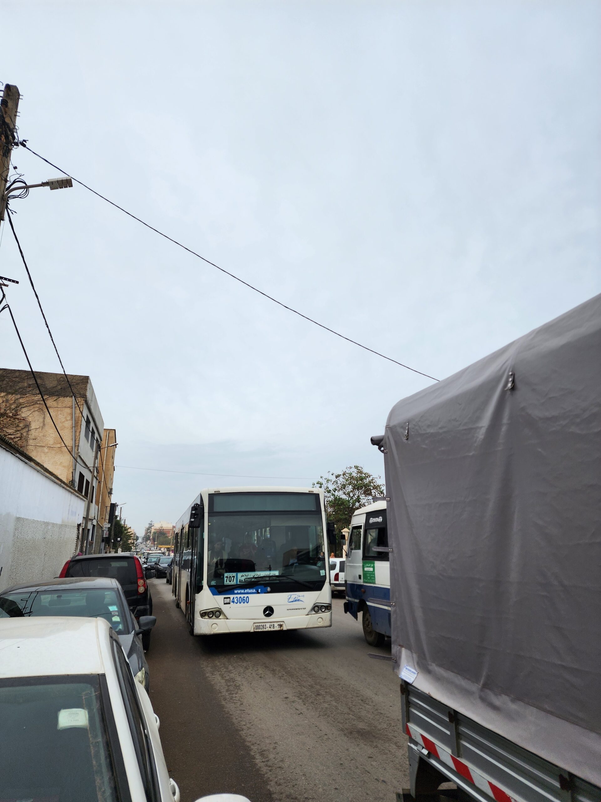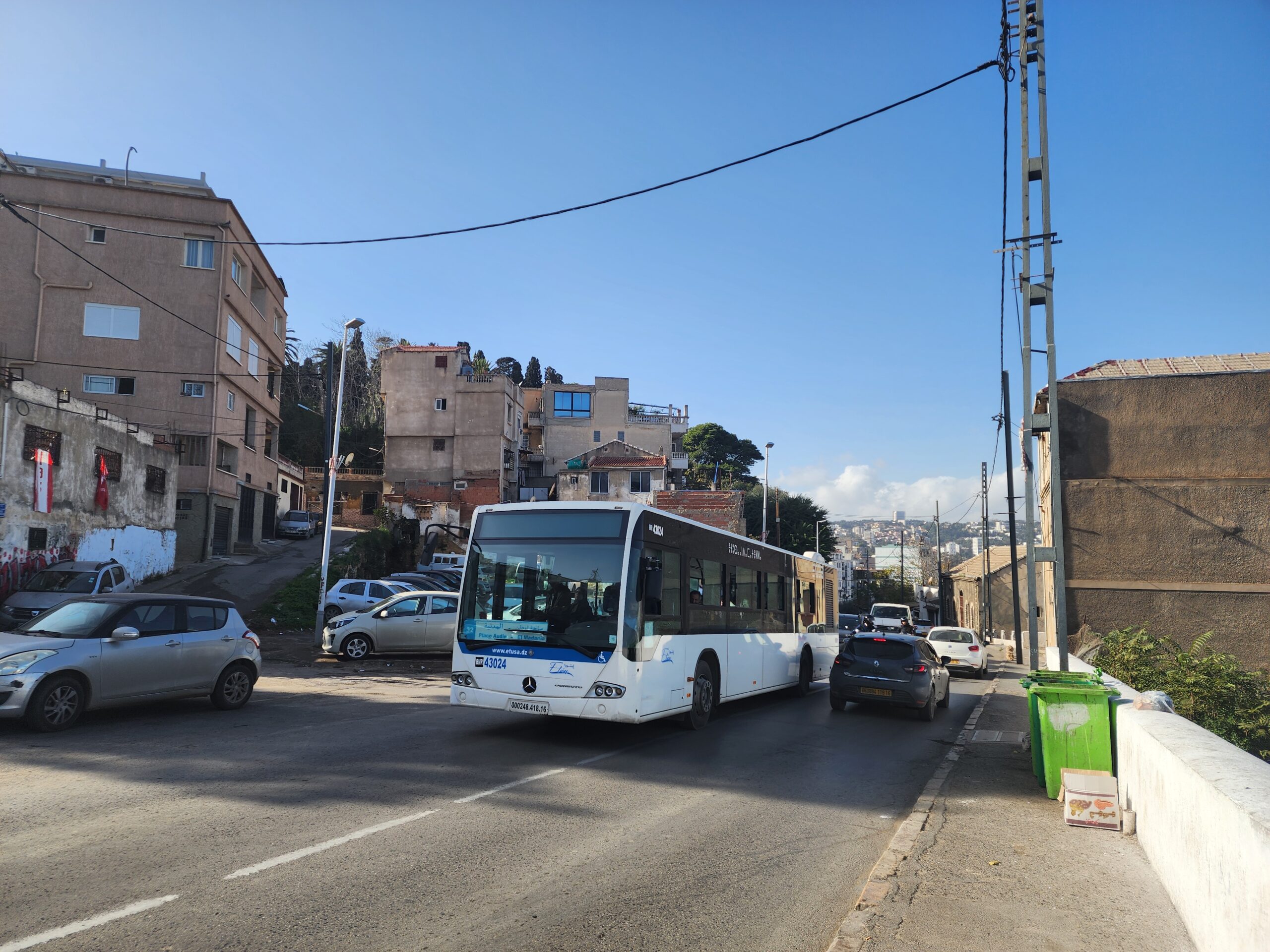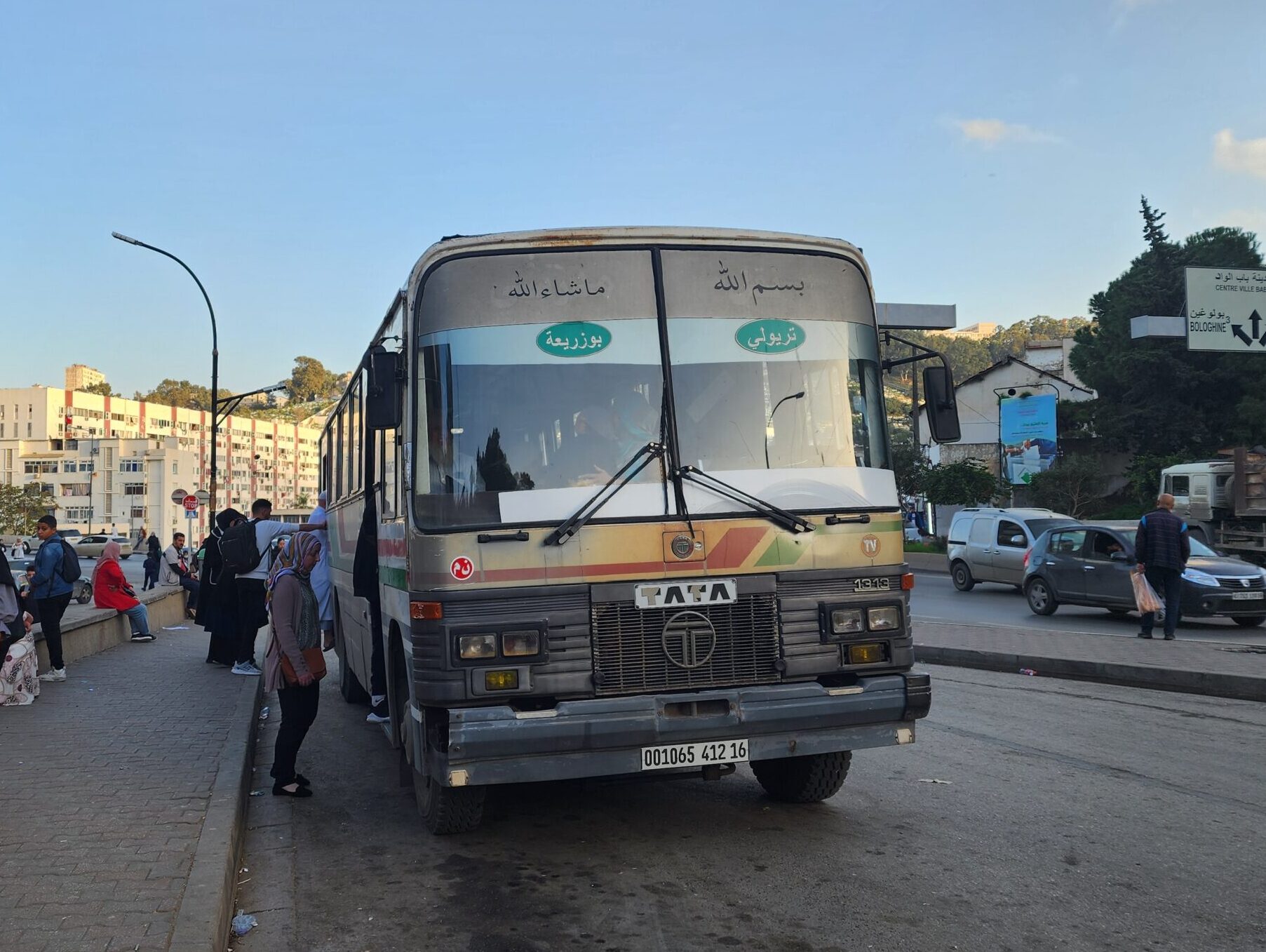 Na lince 163117, která vede od dolní stanice lanovky Triolet (Oued Koriche) k její horní stanici na předměstí Bouzaréah, jsme potkali také indický autobus Tata 1313. Tato linka nyní nahrazuje hlavně lanovku, která je od roku 2023 mimo provoz. Ačkoliv těchto indických autobusů jezdí po Alžíru požehnaně, jedná se o menší osmimetrové autobusy převážně s novější karoserií (Tata 613). Tento by měl pocházet z roku 1999 dle VIN a jedná se o desetimetrový autobus Tata 1313, kterých v Indii nalezneme velké množství.