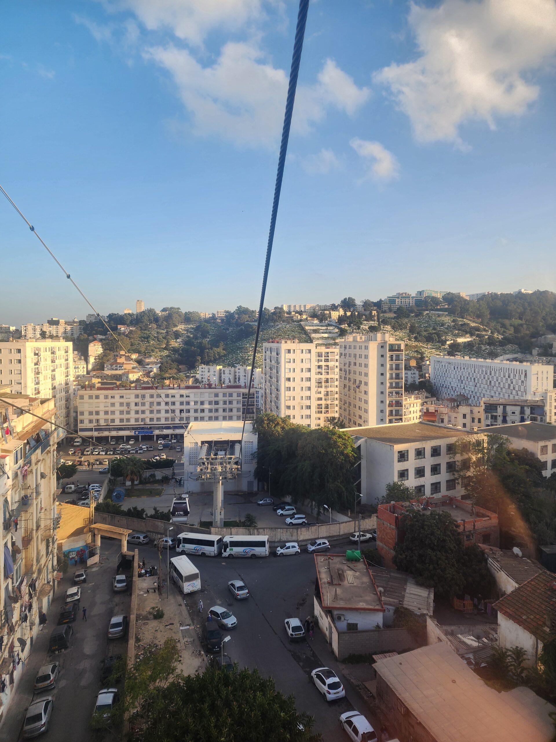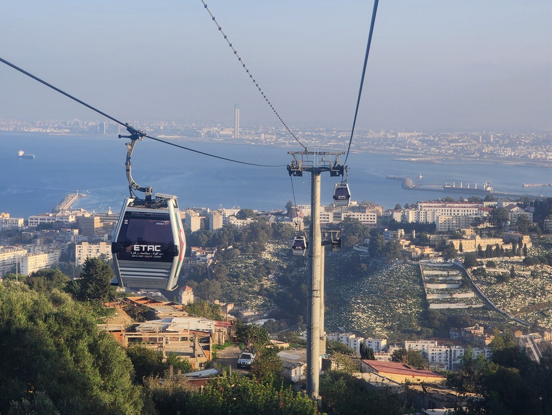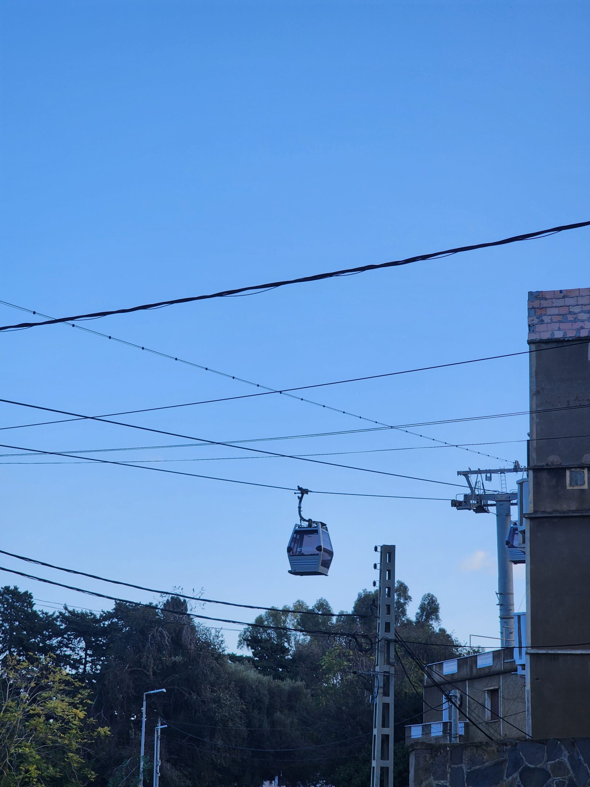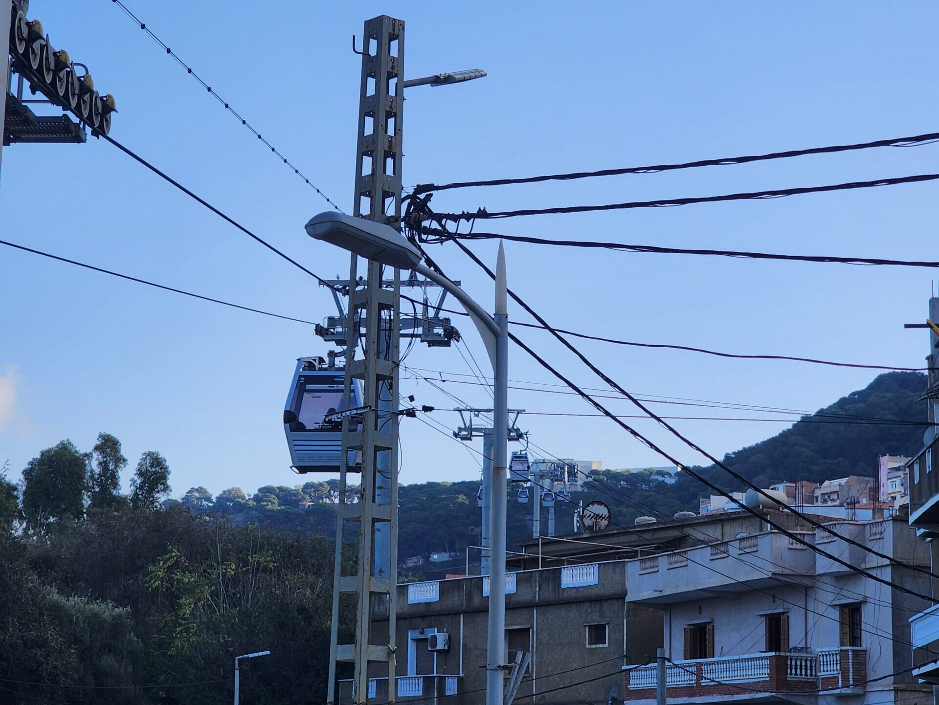 - 3) Télécabine Oued Koriche – neprovozní (minimálně od začátku roku 2023) – Tato lanovka je obdoba předchozí. Propojuje centrum s Bouzareáh a opět má mezizastávku. Vybudována byla v roce 2014, v plánu je její obnova.