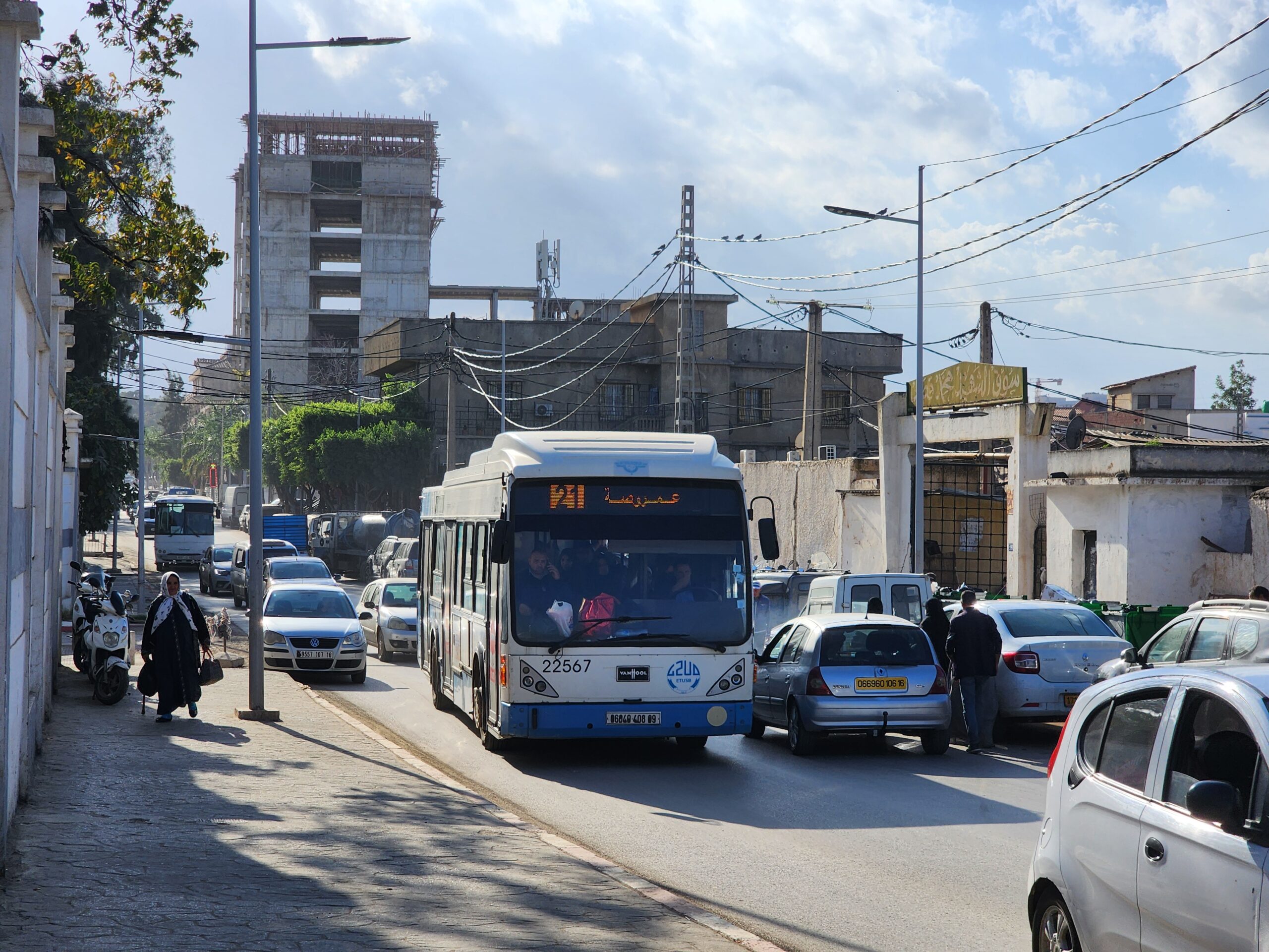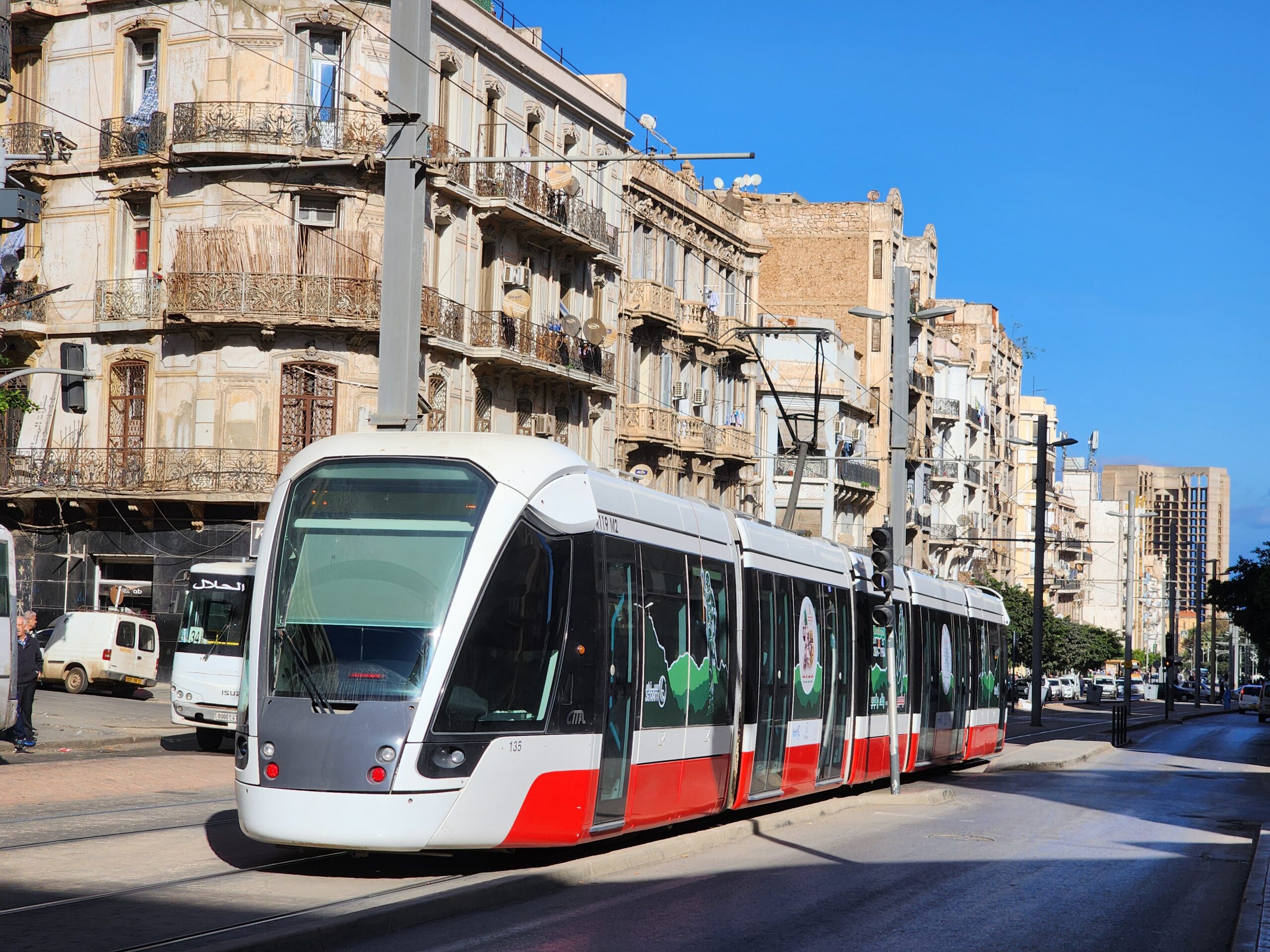 V Constantine (680 000 obyvatel), 6. největším městě Alžírska, jezdí také tramvaje. V provozu jsou od roku 2013 s prodloužením v letech 2019 a 2021 – celkem 18 km. Setkáme se tu s 27 tramvajemi Alstom Citadis 302. I v autobusové dopravě zde existuje městský podnik, který má ve vozovém parku starší autobusy Van Hool A500 (ev.č. 222xx).