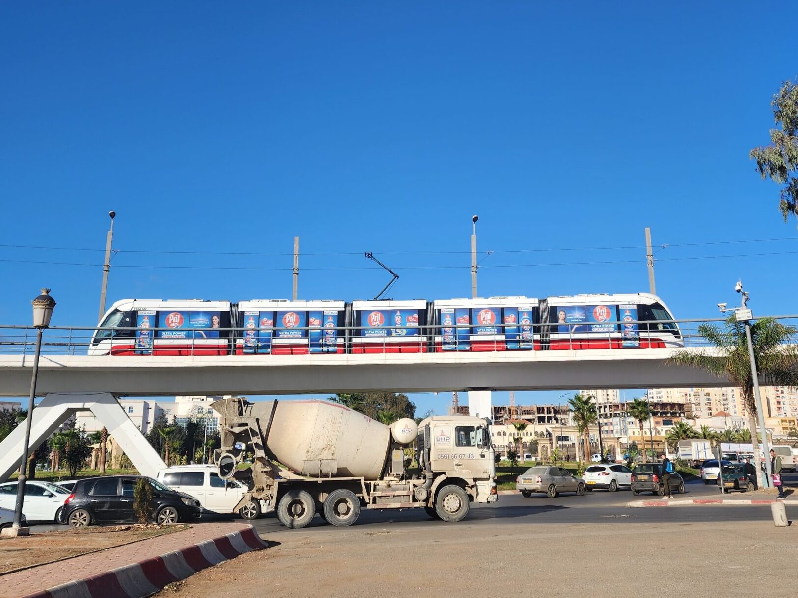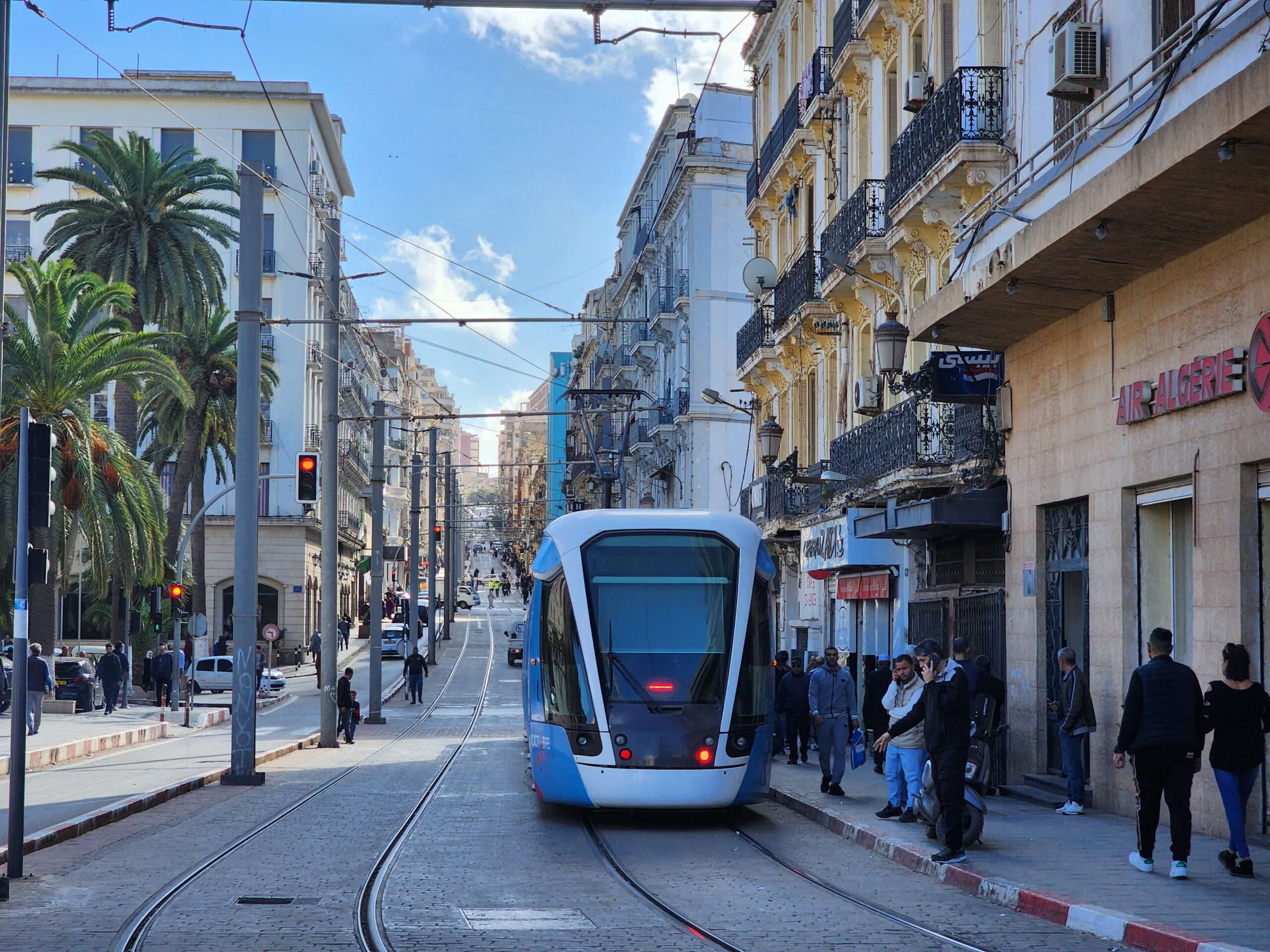 V Alžíru jezdí od roku 2011 jedna tramvajová linka, která jede z centra města od metra na východ na předměstí Bordj El Bahri. Prodloužení pak nastalo 2x, v roce 2014 a 2015. Tramvajová síť má délku 23 km, nachází se na ní 38 stanic a celou ji projedete za 1,5 h, protože tramvaje jsou velmi pomalé a narvané k prasknutí, přestože interval je v závislosti na zpoždění jednotlivých vozidel 5 – 10 minut (mimo špičku pak až po 12 minutách). Do oblouků jedou tramvaje 10 km/h. Průměrná rychlost je tak kolem 15 km/h včetně nástupu a výstupu cestujících (v Praze 20 km/h).