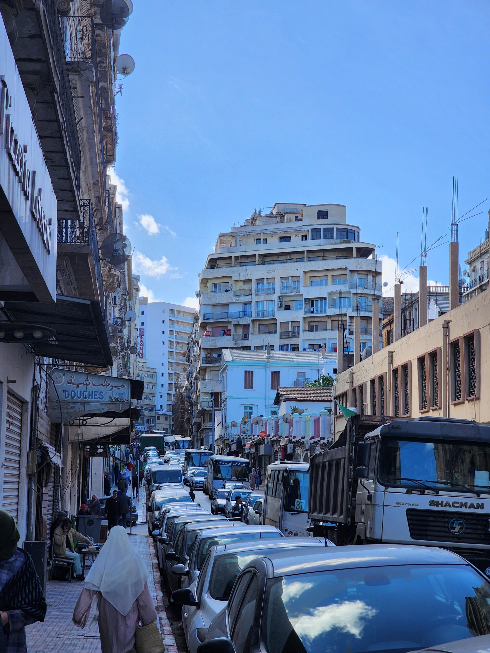 Největším městem Alžírska je hl. m. Alžír, který má kolem 3,6 milionu obyvatel a aglomerace dalších 5 milionů, celkem tedy přes 8 milionů. Na rozdíl od sousedního Maroka a Tuniska tu potkáme hodně staré autobusy z 80. let a 90. let na příměstské dopravě a to ve velkém počtu.
