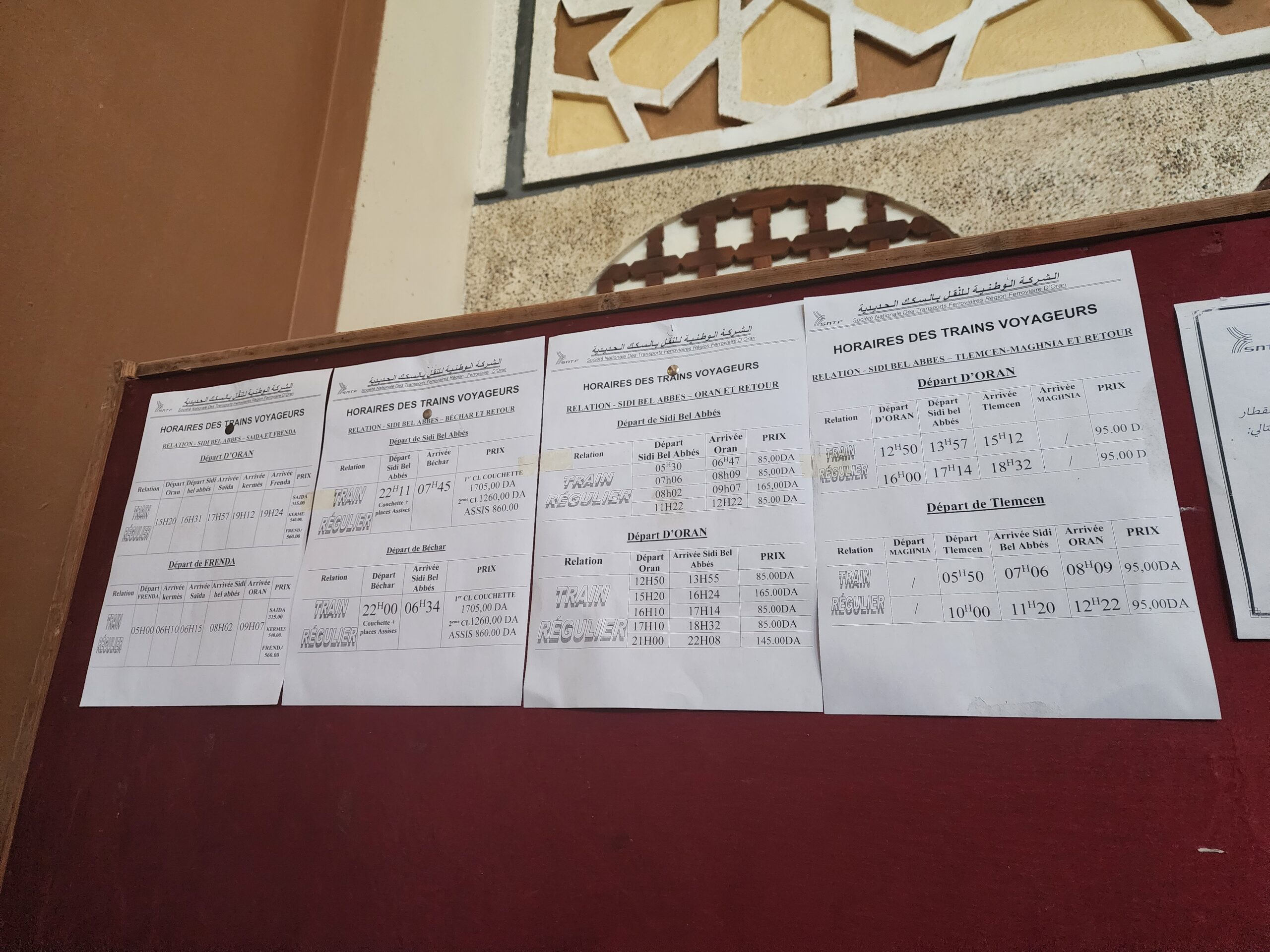 Ze Sidi Bel Abbes do Oranu (82 km), druhého největšího města Alžírska, se dostanete buď vlakem 5x denně (bohužel poslední vlak ze Sidi Bel Abbes jede v 11.22 a první z Oranu do Sidi bel Abbes ve 12.50) nebo příměstským autobusem, kterým cesta trvá znatelně déle a užijete si 2,25 h (vlak jede 1,33 h, autem za 1 h) dlouhou cestu v narvaném autobuse, kde průměrná rychlost činí kolem 35 km/h se všemi zastávkami.