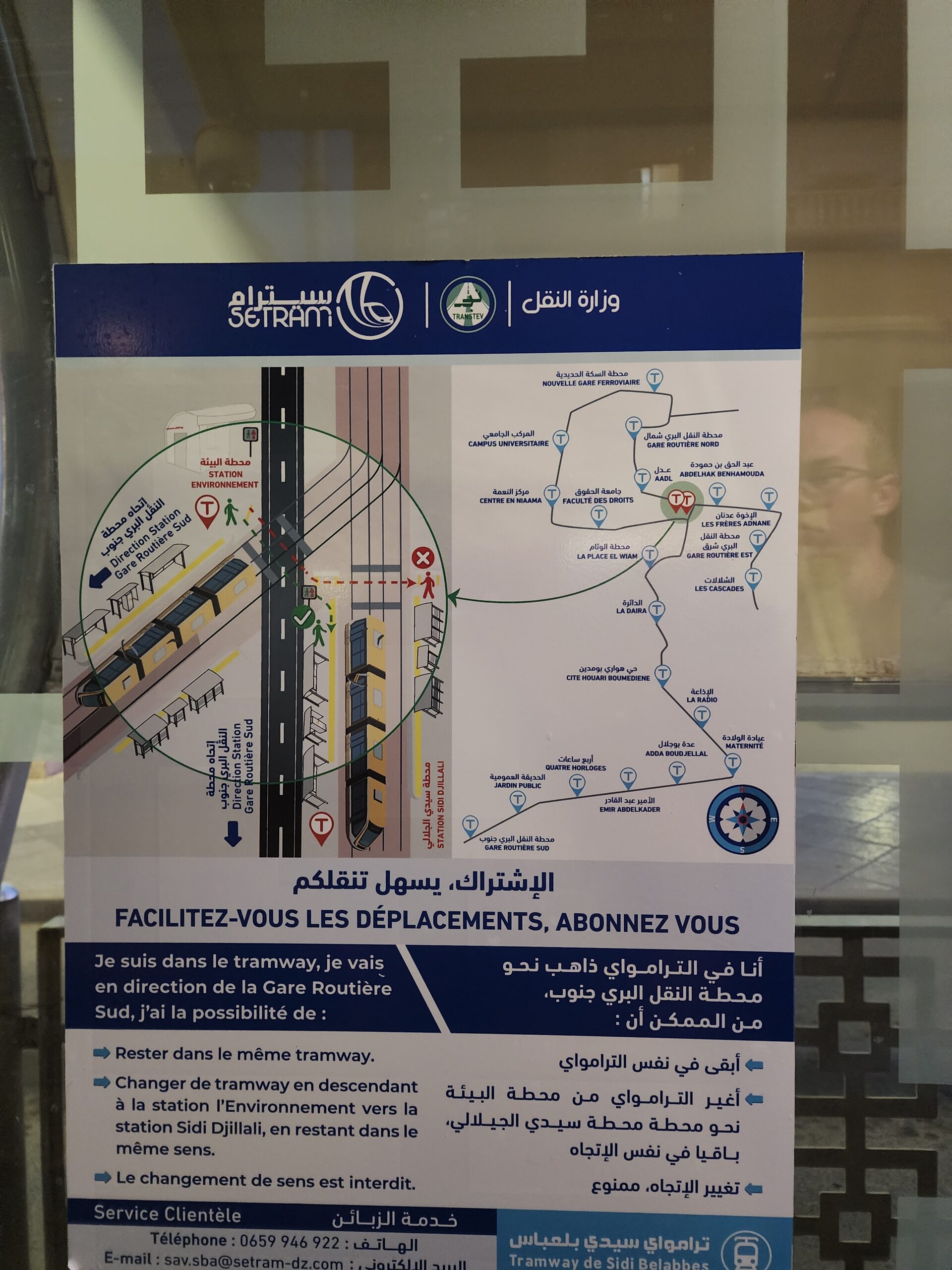 Tramvaje jezdí po 8 minutách, mimo spičku až po 17 minutách a ve špičkách jsou i dosti narvané. V provozu jsou od 5.30 do 22 h (během Ramadánu až do 1 h). Na rozdíl od Alžíru nejsou vždy narvané, nicméně stále jsou pohodlnější než autobusy kvůli menšímu přeplnění, klimatizaci a rychlosti. Na východě města je připraveno odbočení na novou trať na severovýchod. Kdy se začne stavět je ale ve hvězdách.