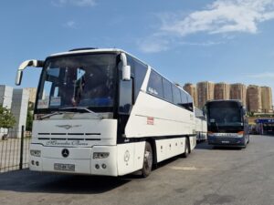 - Baku – Mingachevir: 10 spojů, jízdní doba 5,25 h, 08:00 – 18:00, interval 1 – 3 h (z Mingacheviru 06:00 – 17:00), 12metrové autobusy