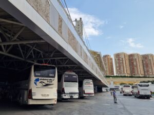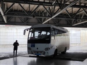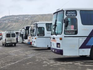 Zde se dostanete luxusními dálkovými autobusy, které jezdí přes den (6 – 23 h) každých 20 minut a přes noc každých 45 minut. V centru jste pak za 30 minut. Autobusy zastavují u stanic metra Koroğlu (na hlavní silnici) a 28. May (na autobusovém terminálu MHD).