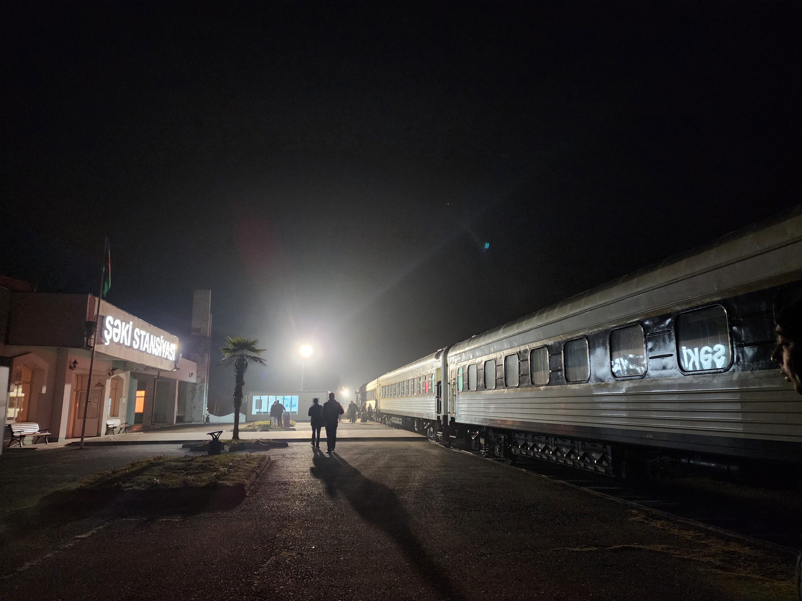 - Baku – Yevlax – Shaki – Balakan (450 km): 1x denně, jízda 8,5 h, noční, od ledna 2025 (obnova), denní vlaky nadále nejezdí (pozastaveny od 2020)