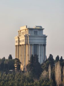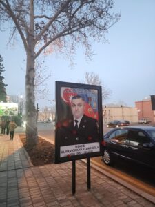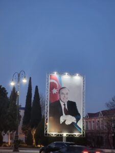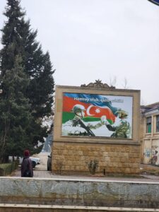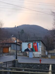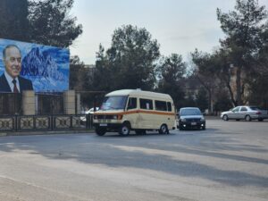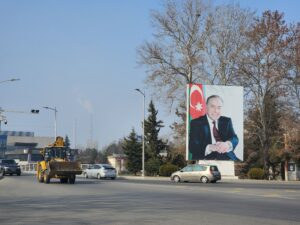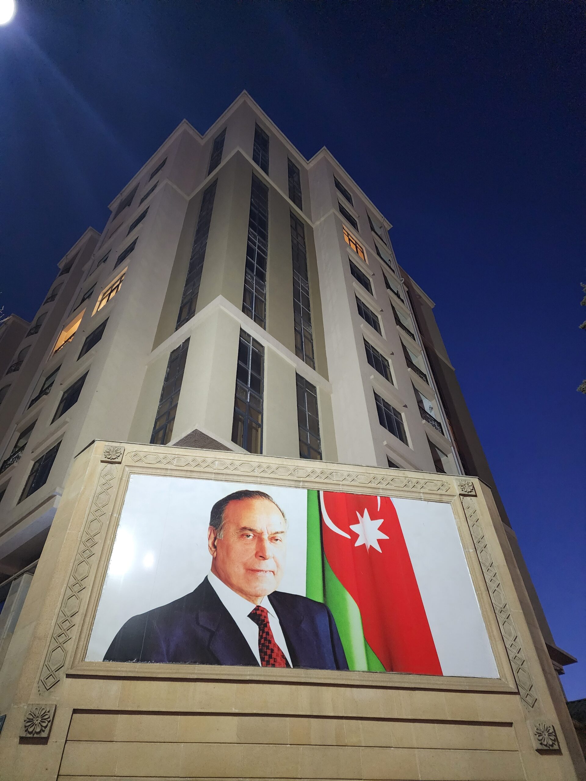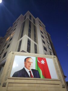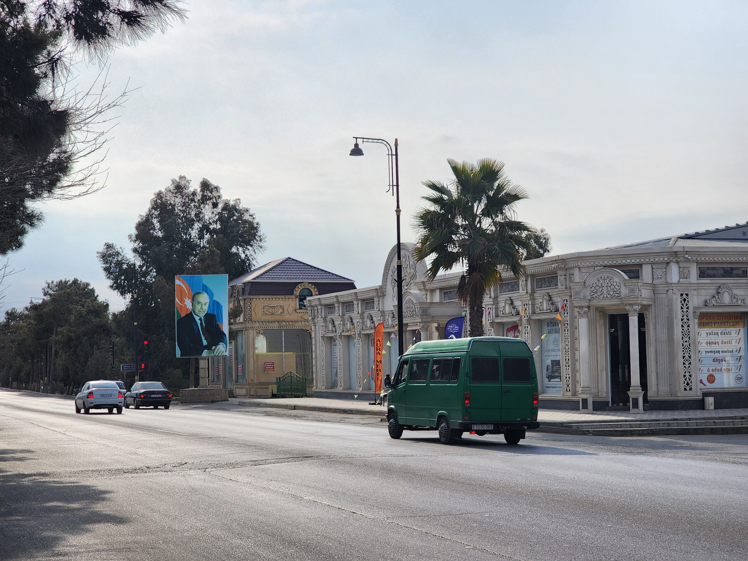- autoritářský režim – volby jsou nedemokratické, ve velkém se oslavuje první prezident Alijev (který vlál od nezávislosti v 90. letech), kterého můžeme potkat na billboardech podél silnic a ve městech (kromě Baku). Zmíněného prezidenta vystřídal po jeho smrti v roce 2003 jeho syn, který vládne dodnes.